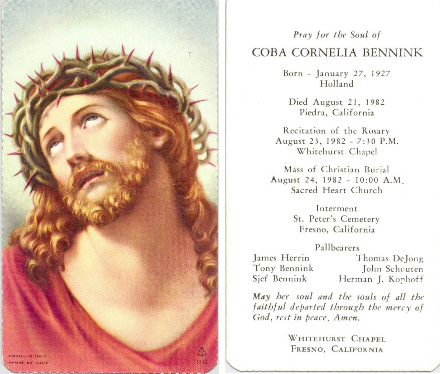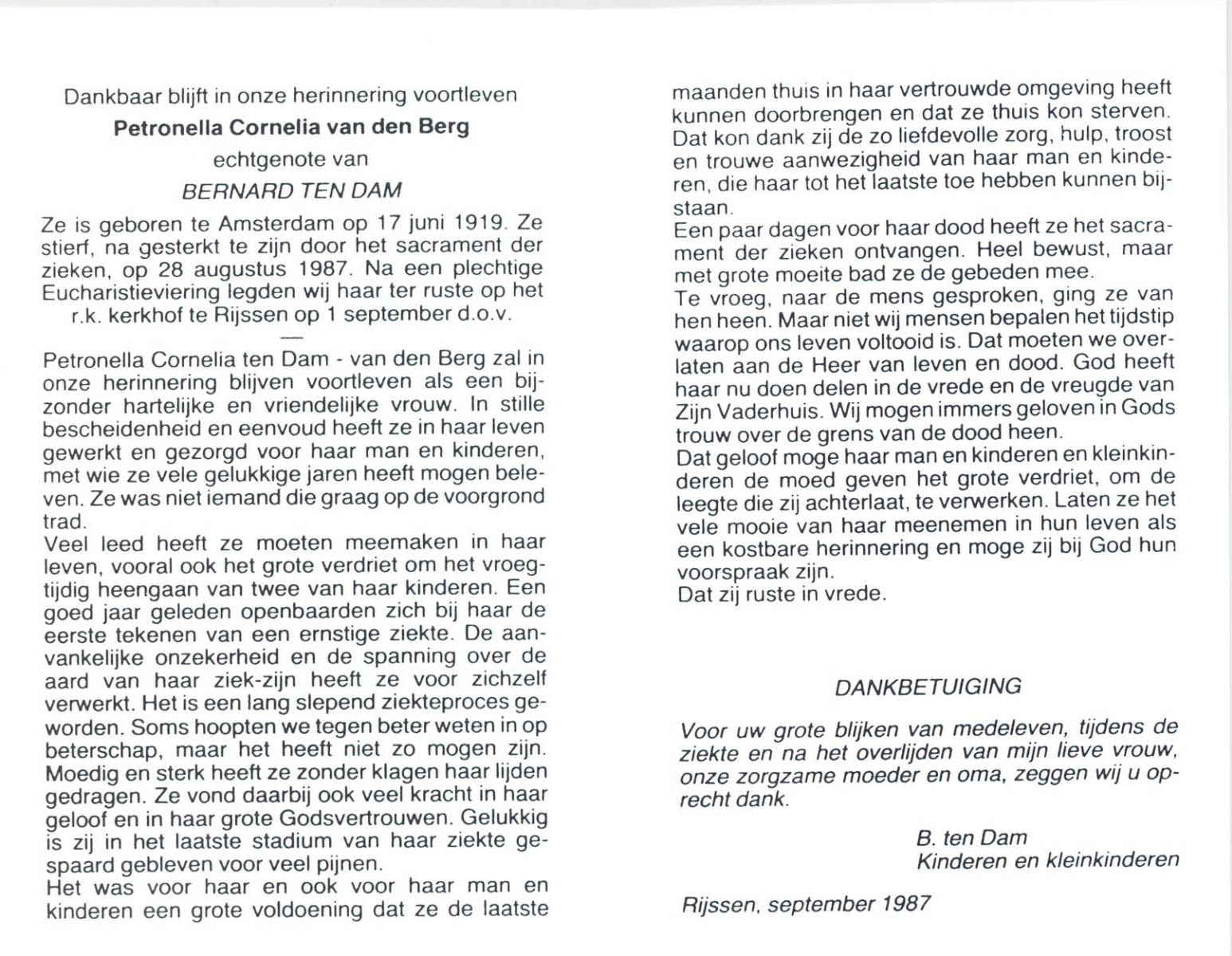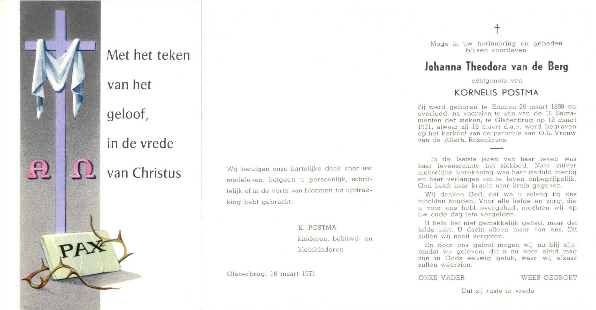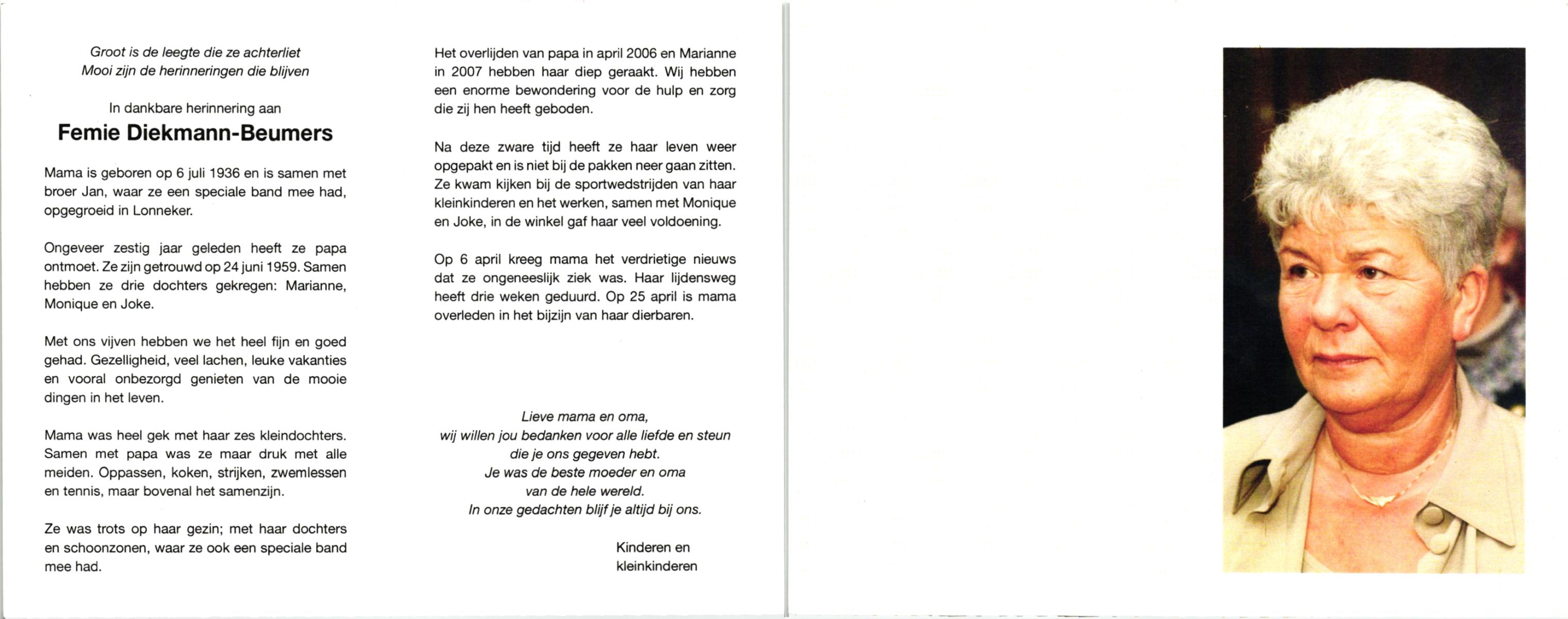 BIEMANS, Bernarda Hermina, geboren op 13-12-1924 te Slagharen, overleden op 6-7-1981 te Hardenberg op 56-jarige leeftijd.