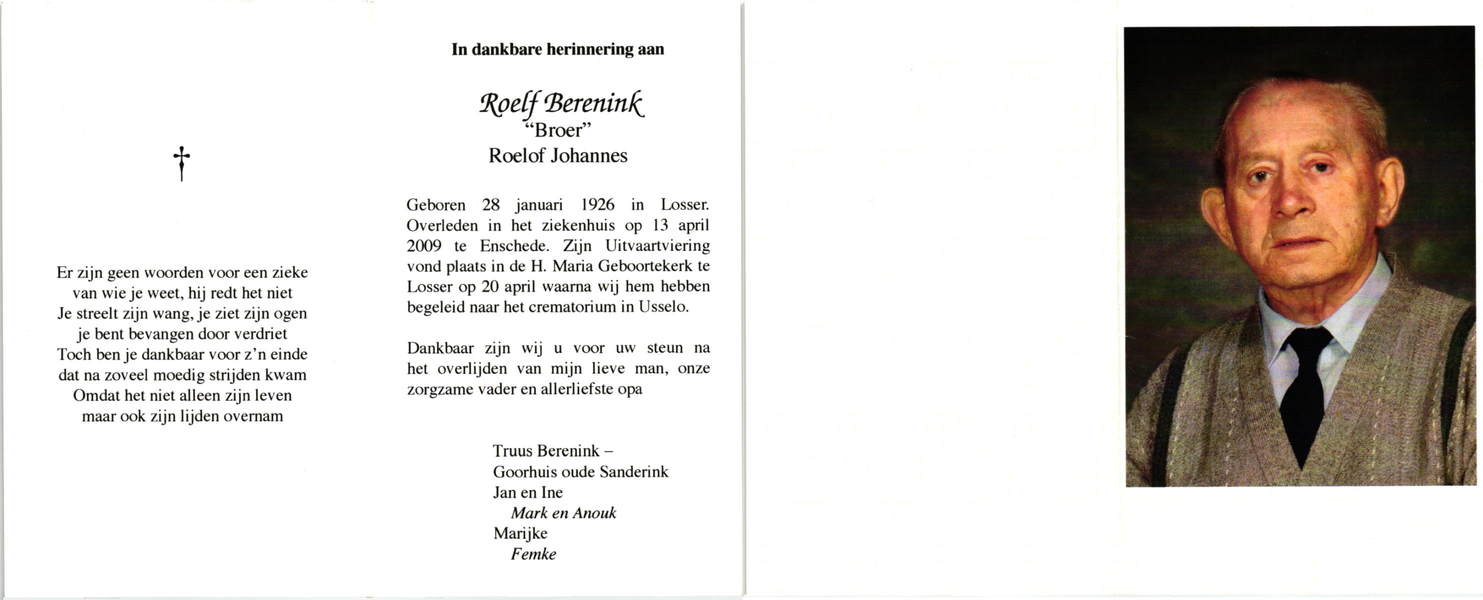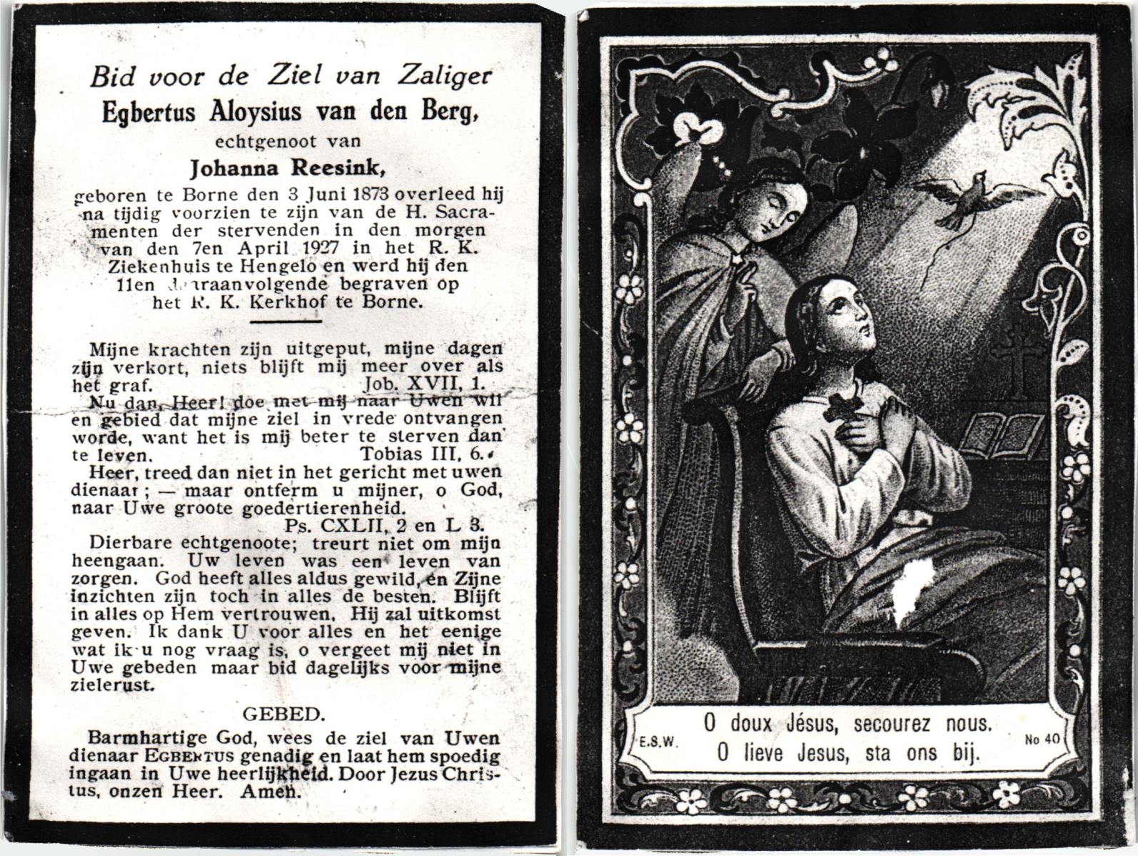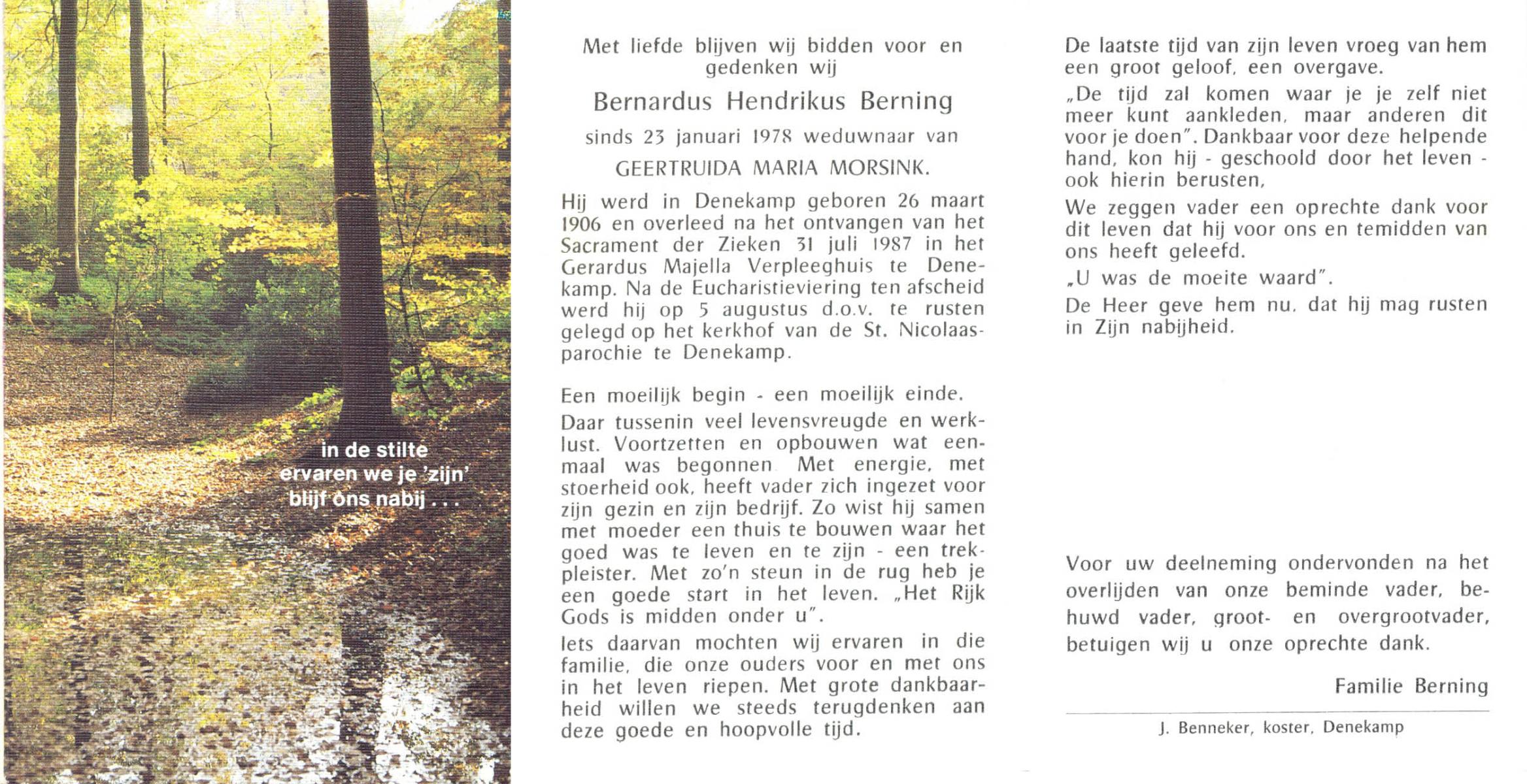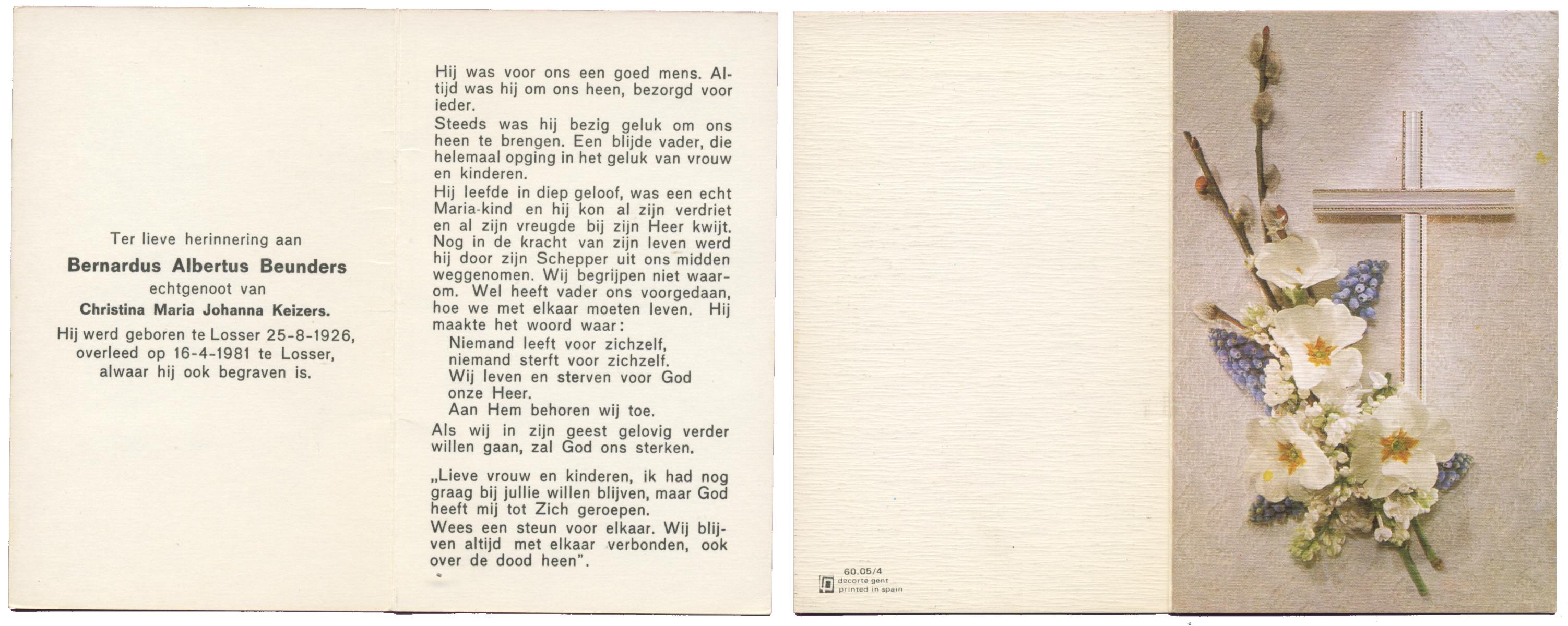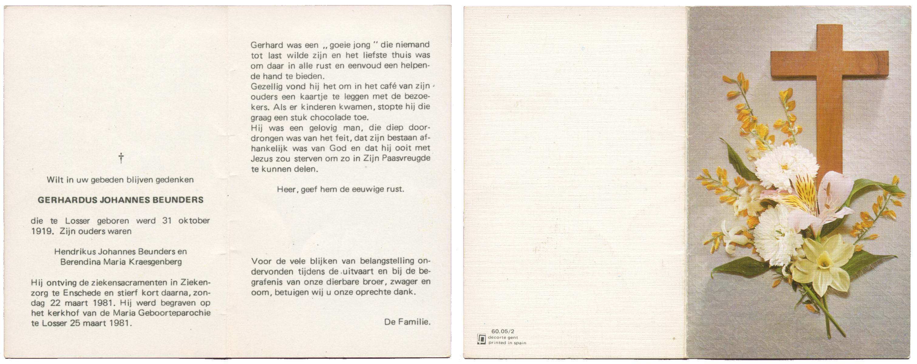 BEVERBORG, Bernard, geboren op 15-5-1908 te Losser, overleden op 7-4-1982 op 73-jarige leeftijd, begraven op 10-4-1982 te Losser.