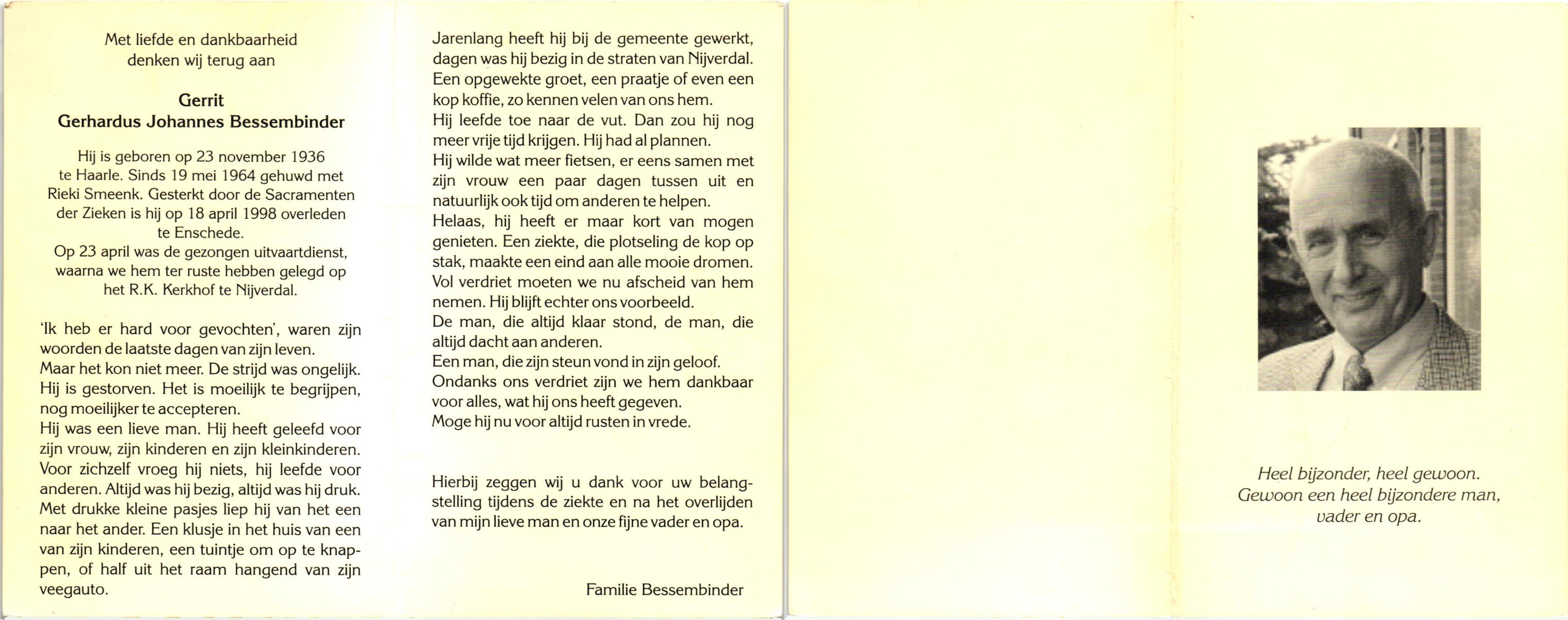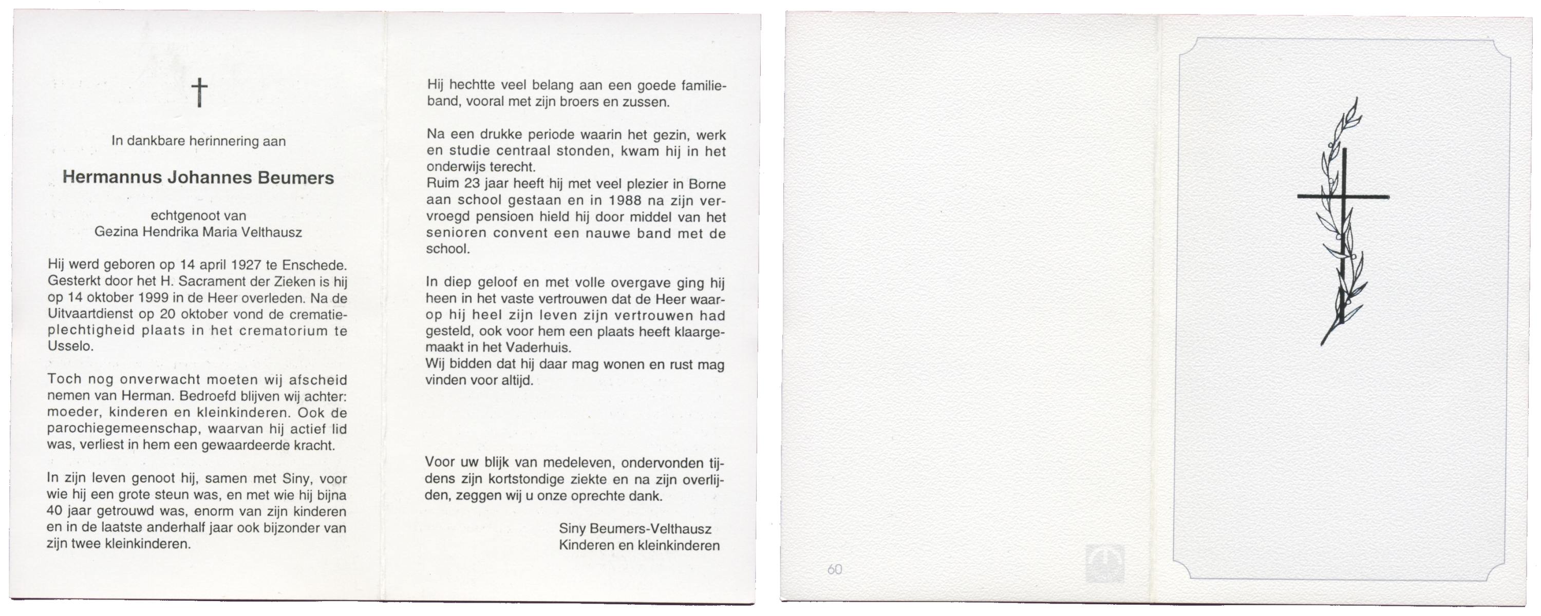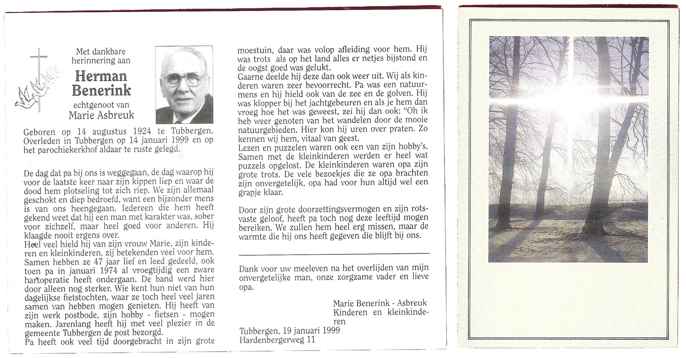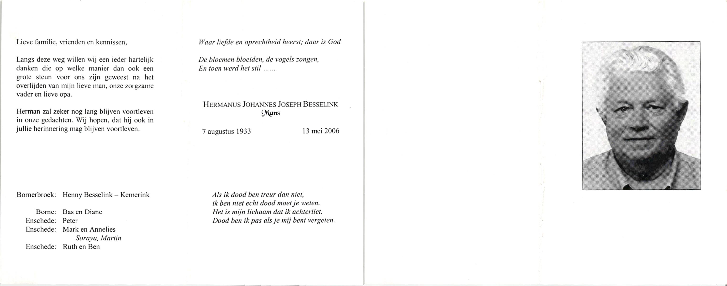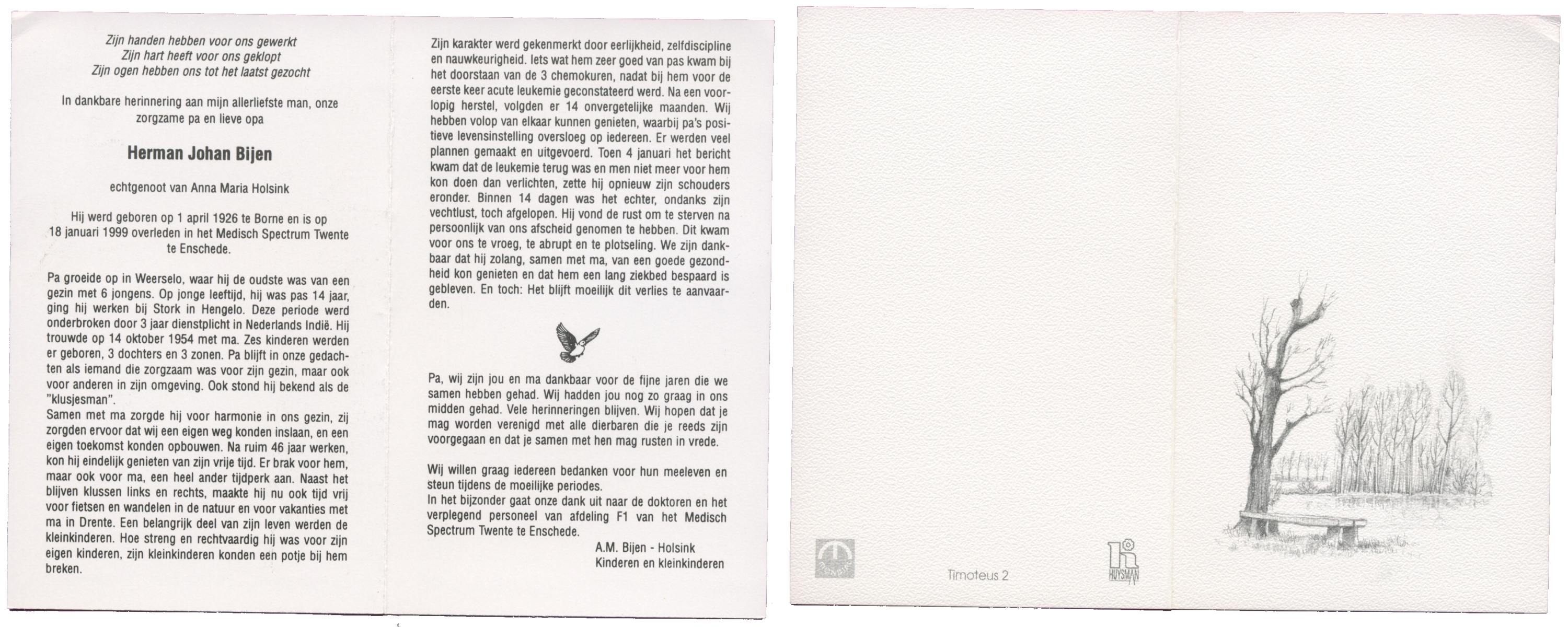 BIJEN, Herman Johan, geboren op 1-4-1926 te Borne, overleden op 18-1-1999 te Enschede op 72-jarige leeftijd.