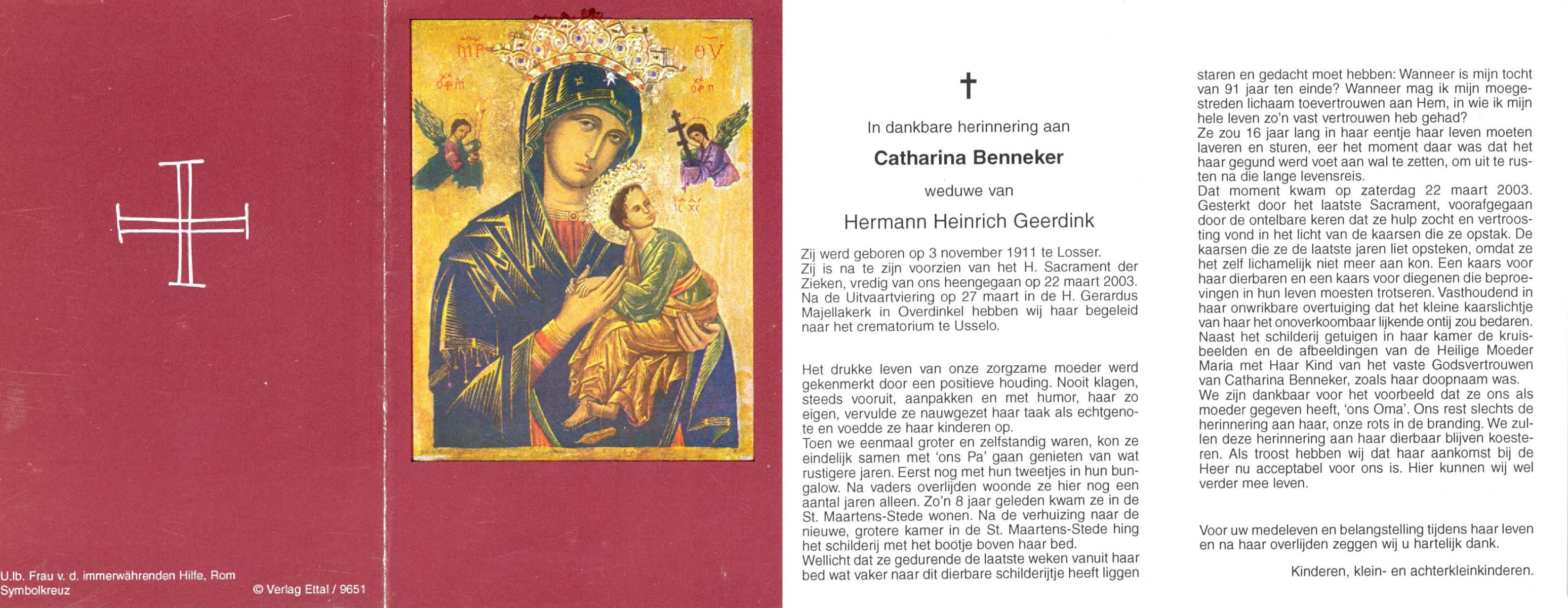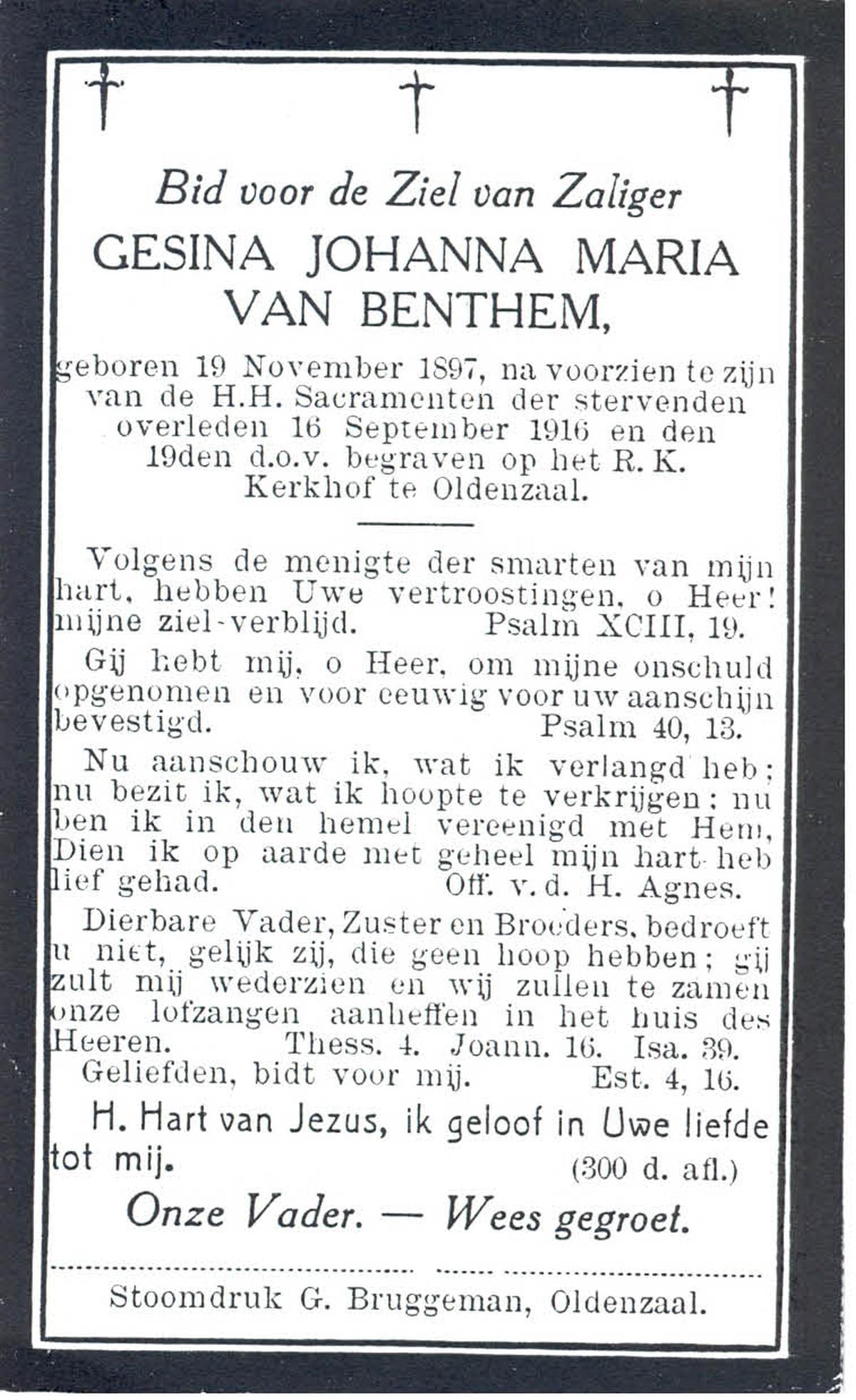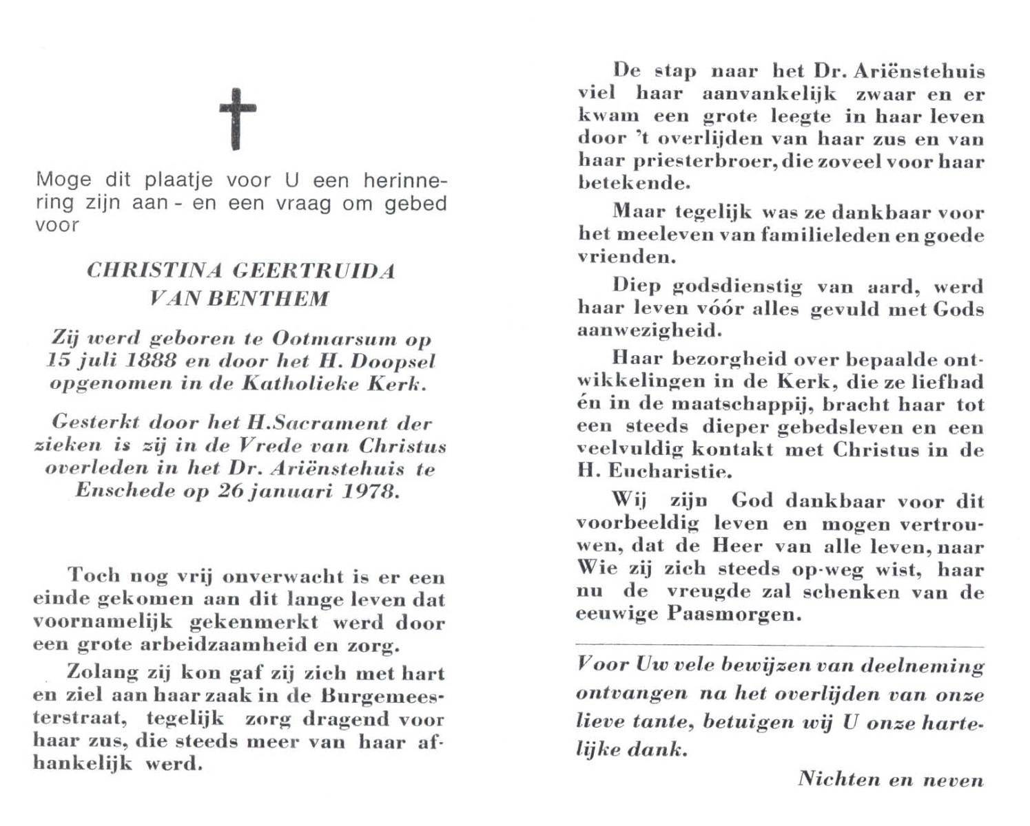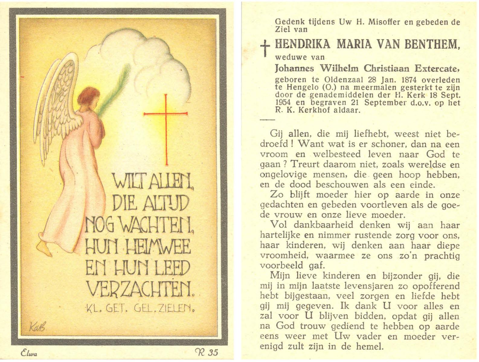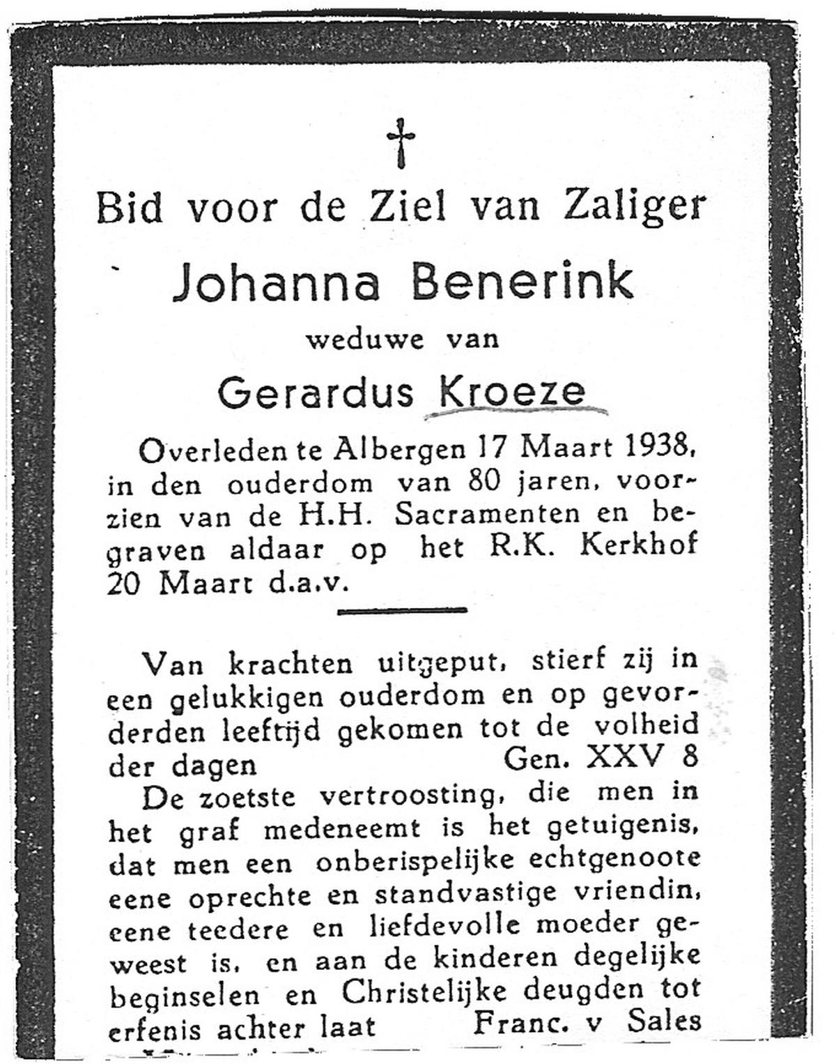 BEUZEN, Gerarda Christina, geboren op 25-12-1881 te Enter, overleden op 29-11-1961 te Enter op 79-jarige leeftijd, begraven op 4-12-1961 te Enter.
