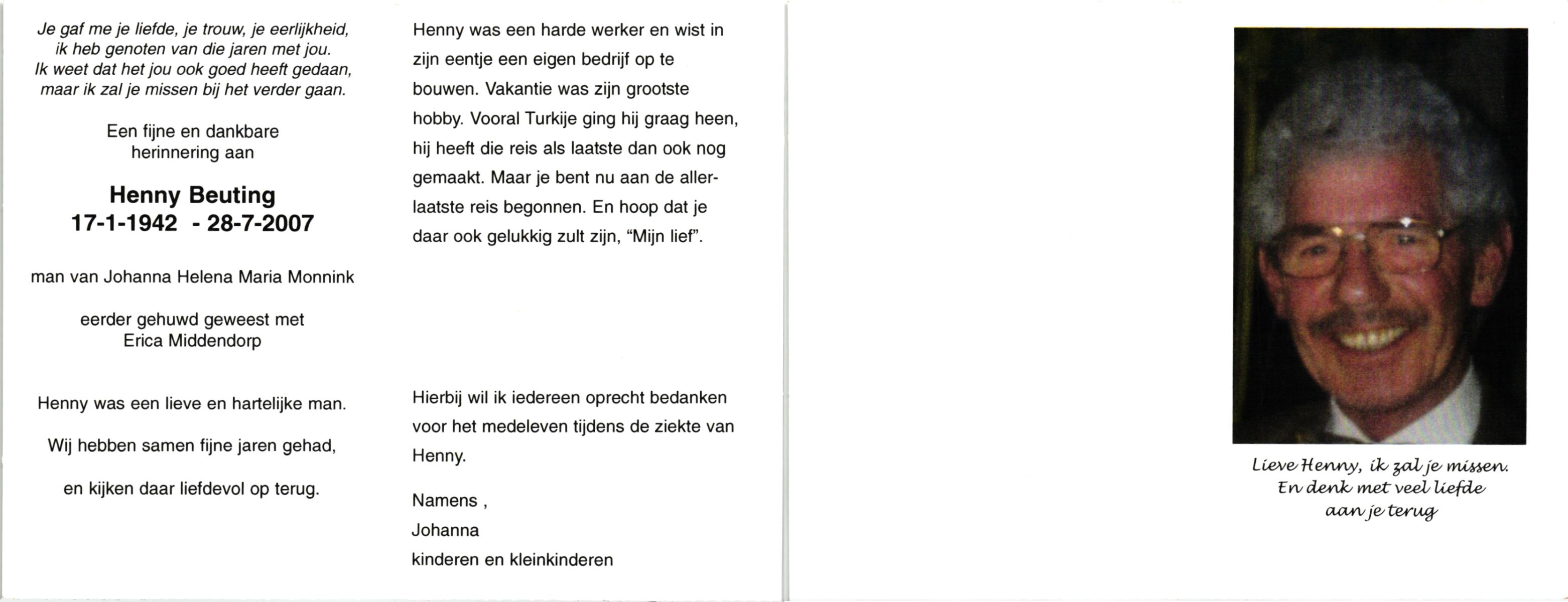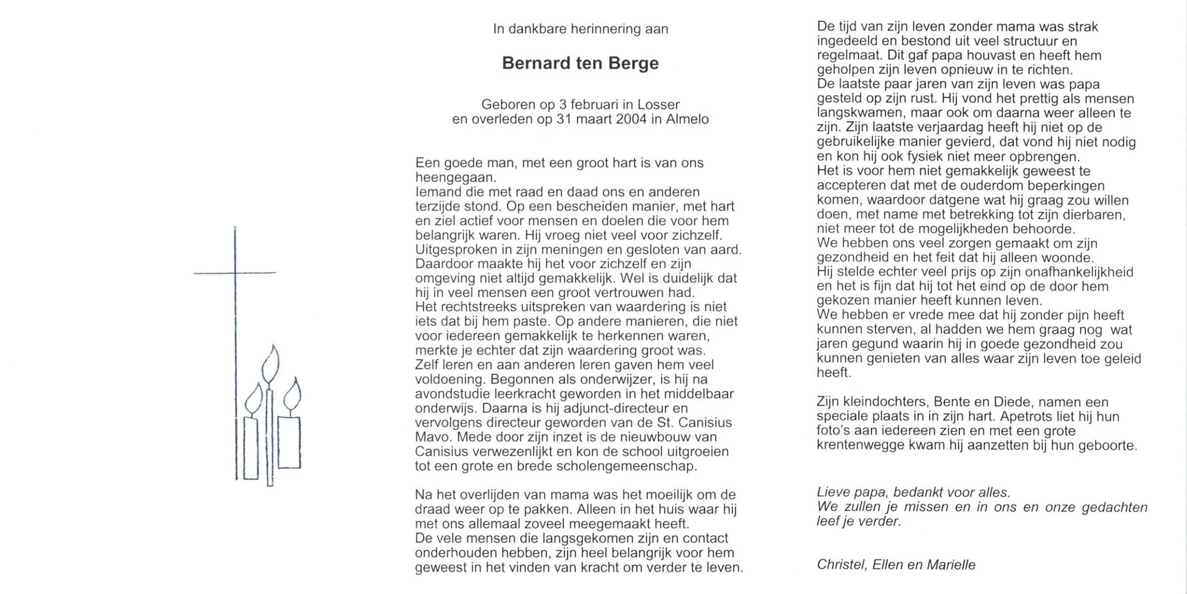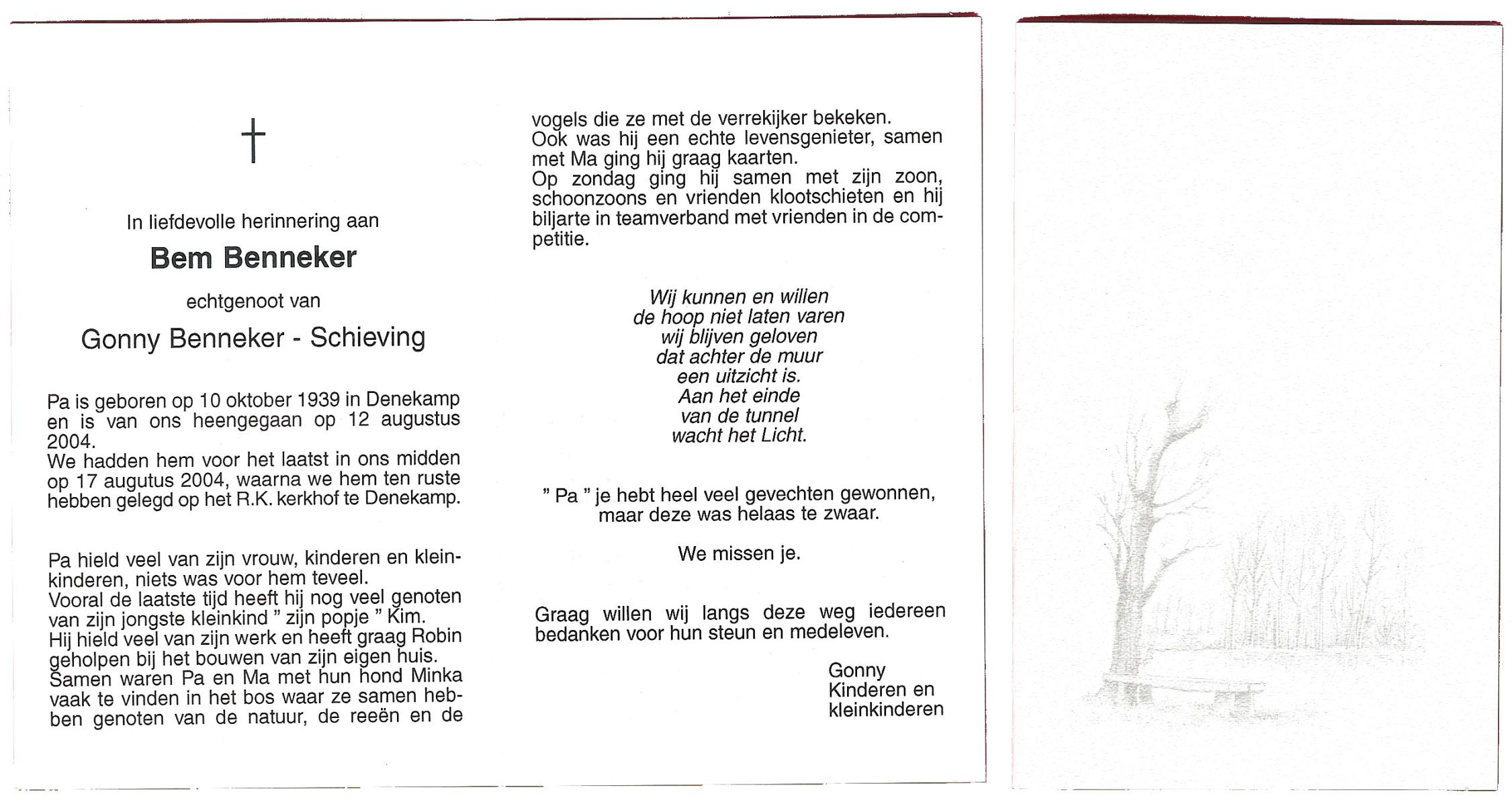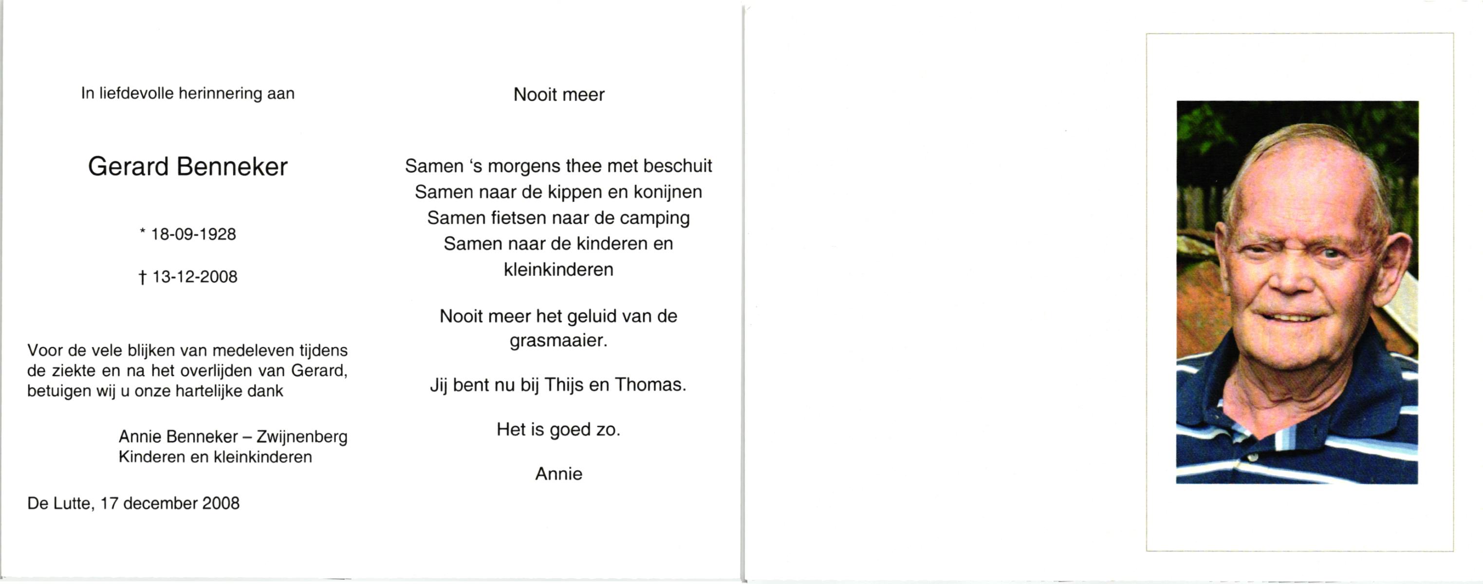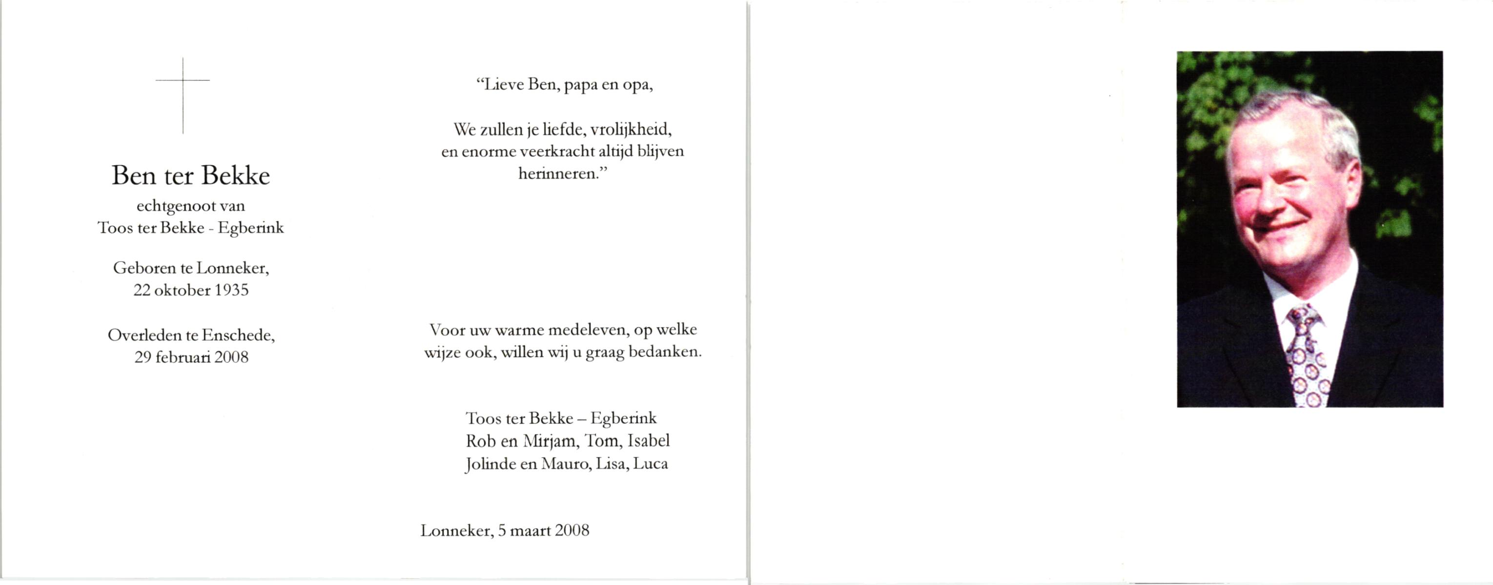 BEKKE, ter, Ben, geboren op 22-10-1935 te Lonneker, overleden op 29-2-2008 te Enschede op 72-jarige leeftijd.