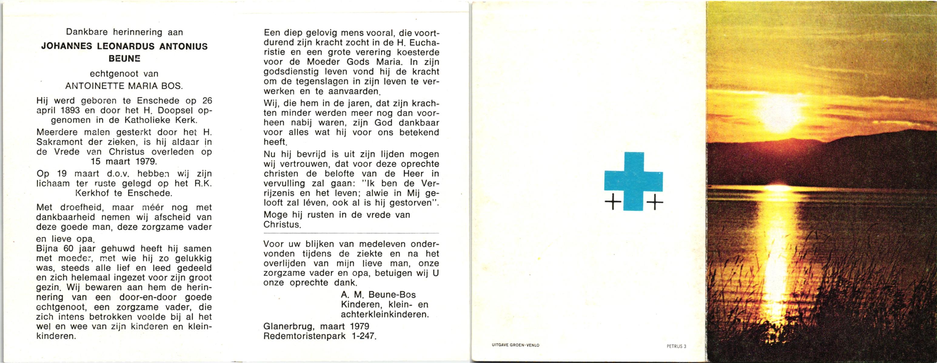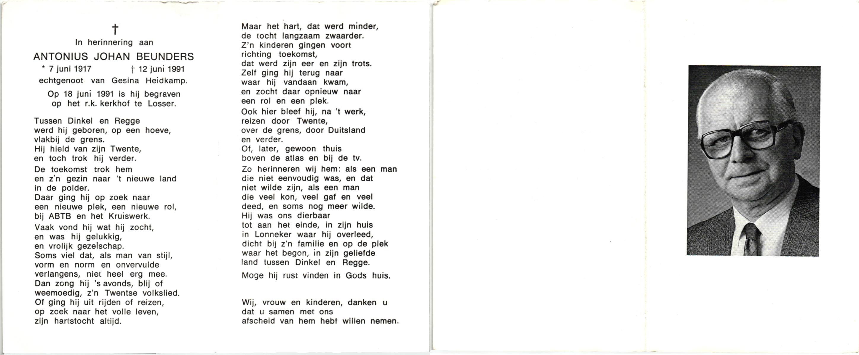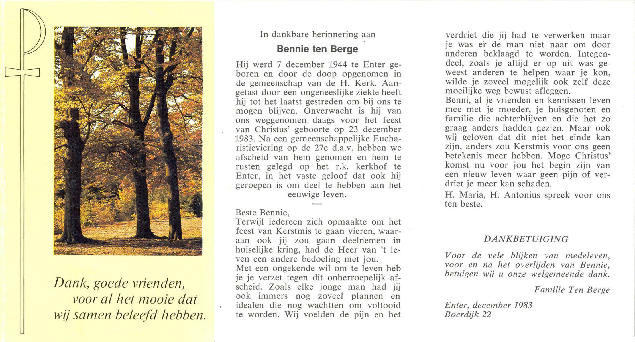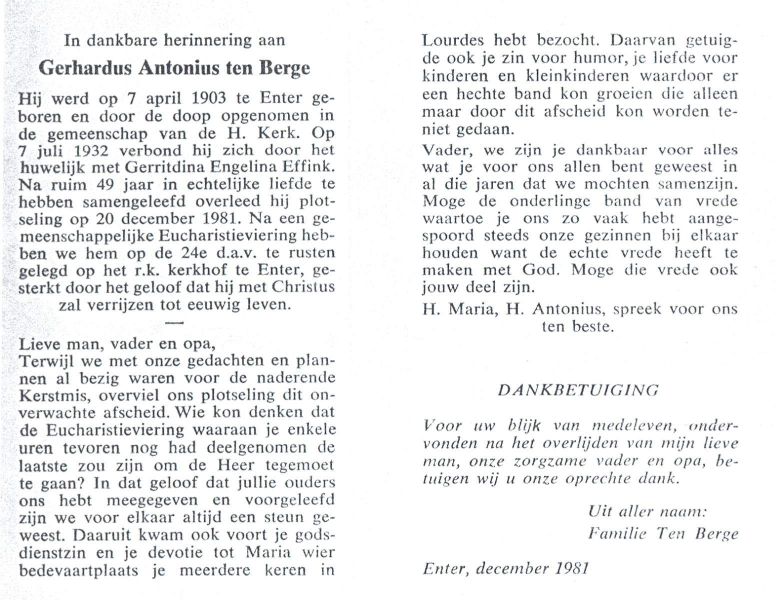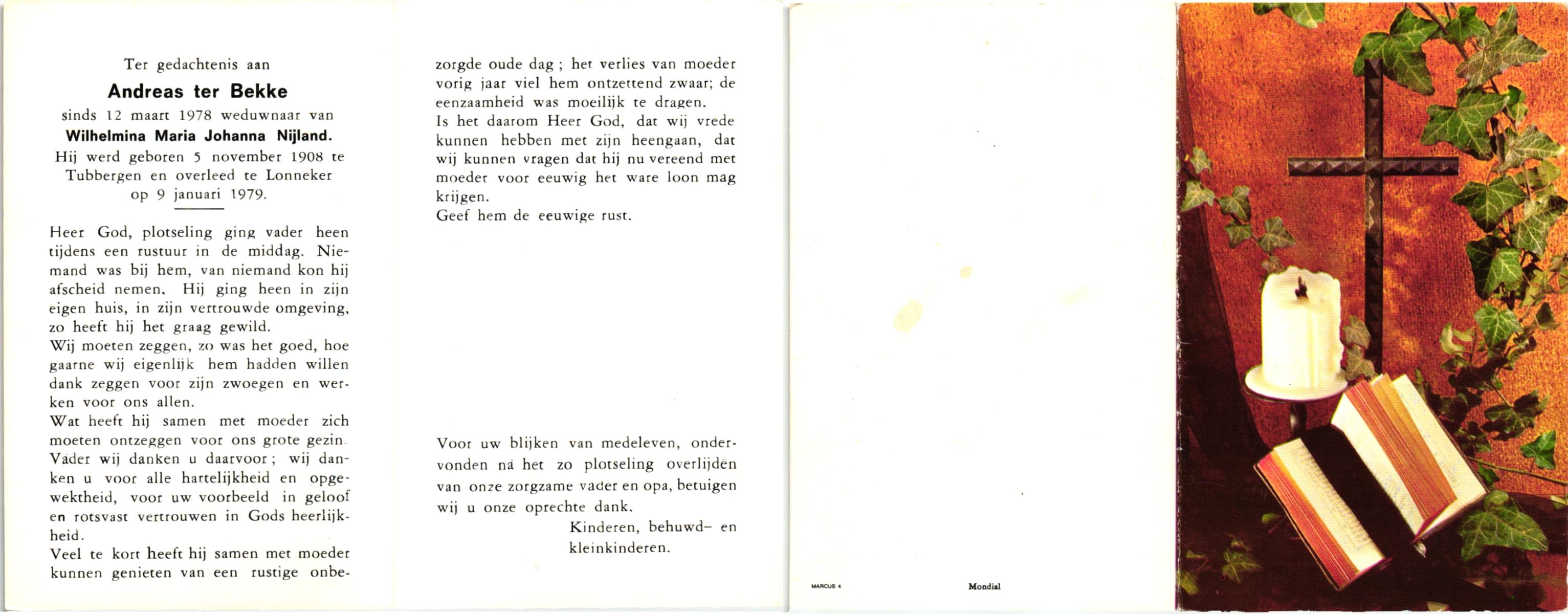 BEKKE, ter, Andreas, geboren op 5-11-1908 te Tubbergen, overleden op 9-1-1979 te Lonneker op 70-jarige leeftijd.