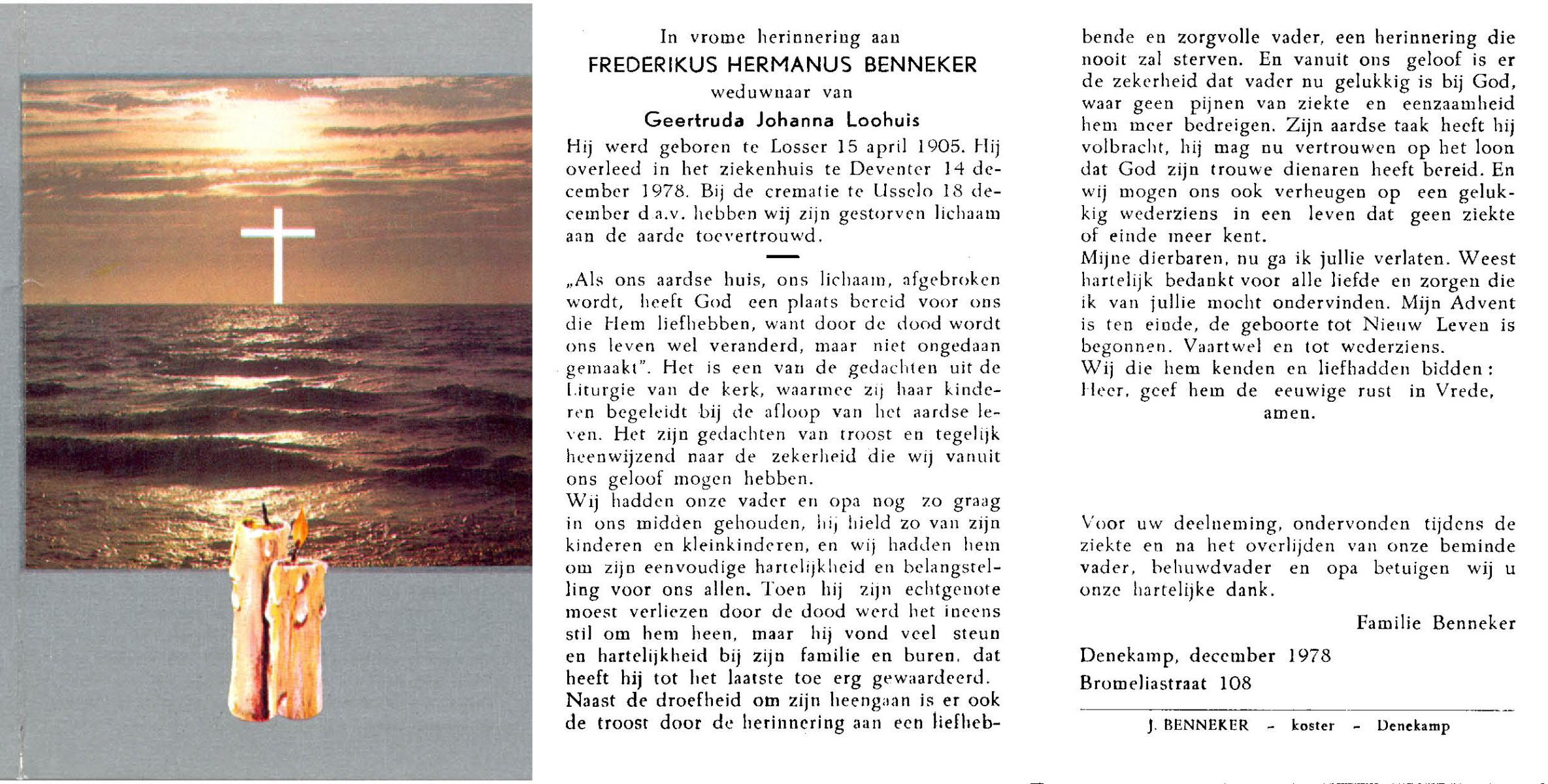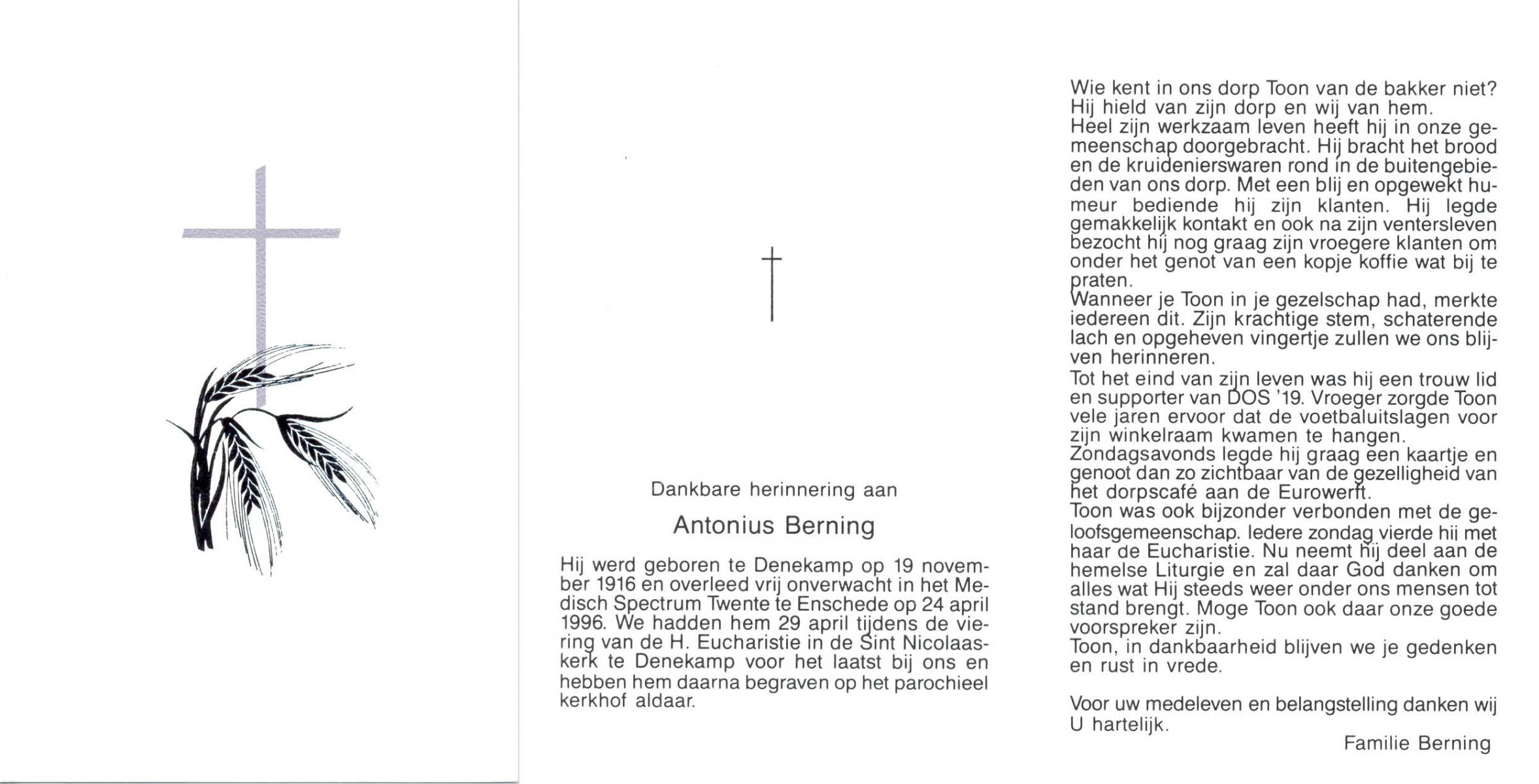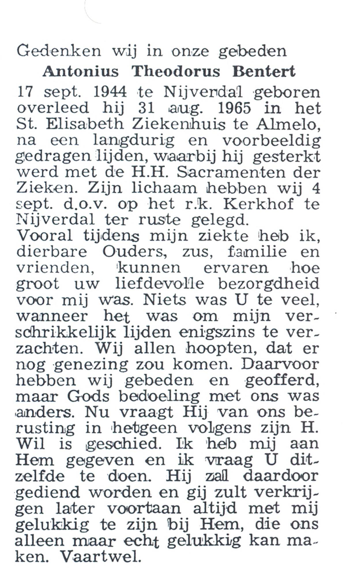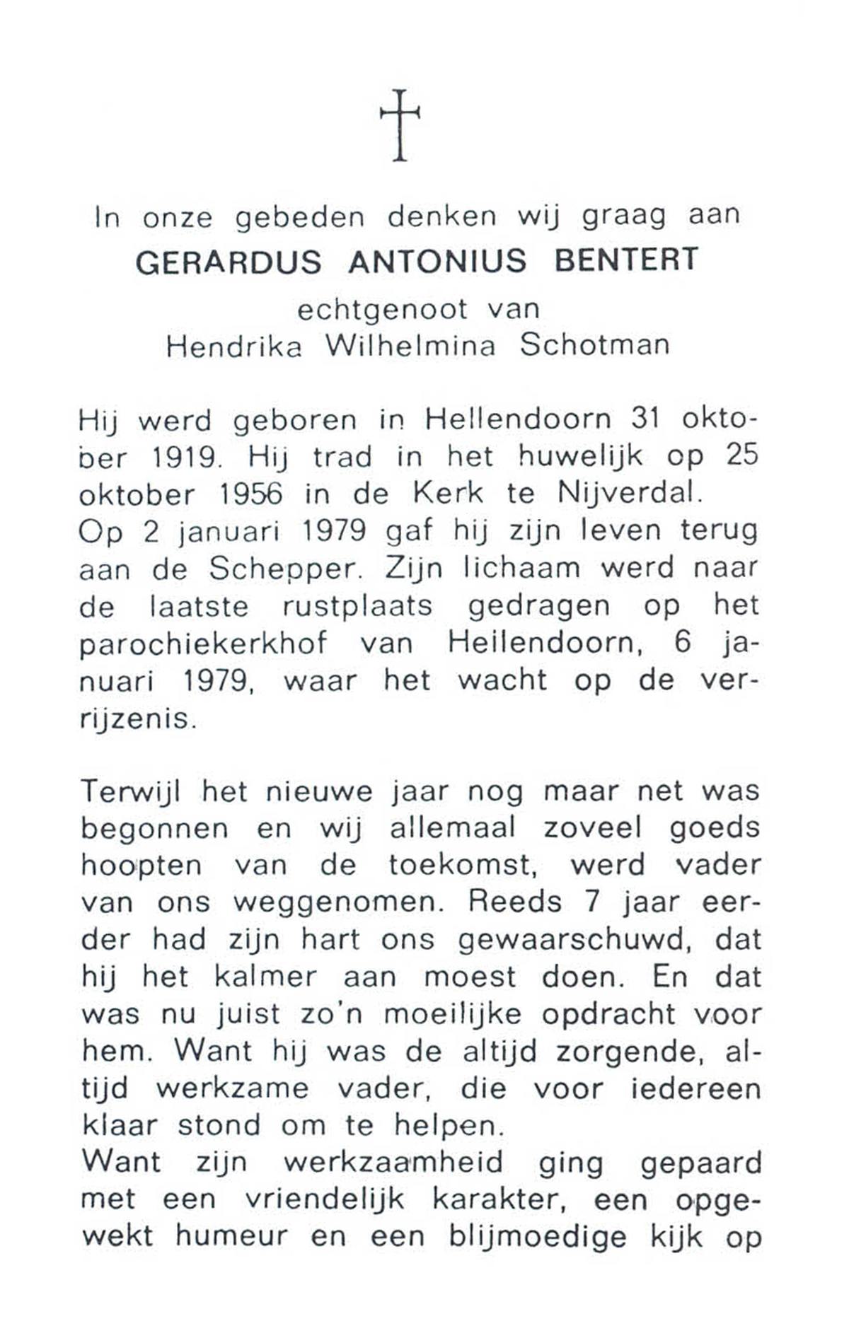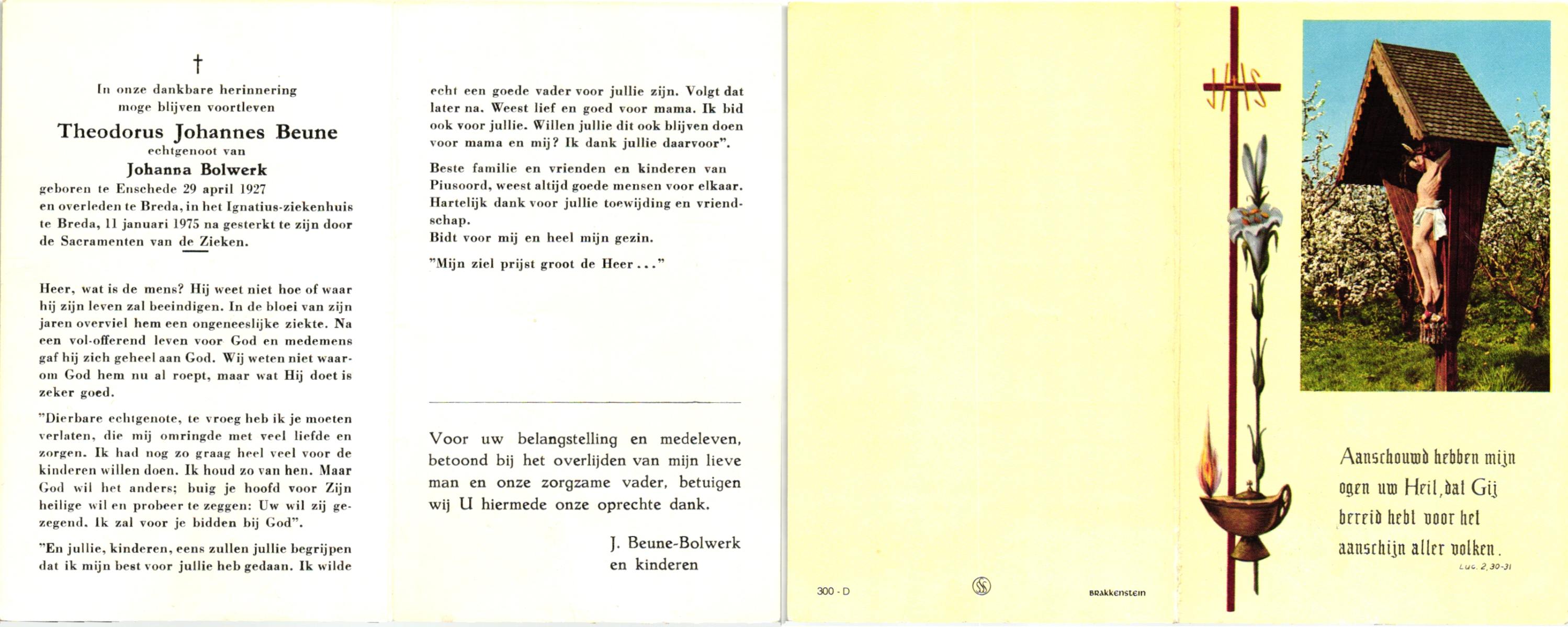 BEKKE, ter, Andreas, geboren op 5-11-1908 te Tubbergen, overleden op 9-1-1979 te Lonneker op 70-jarige leeftijd.