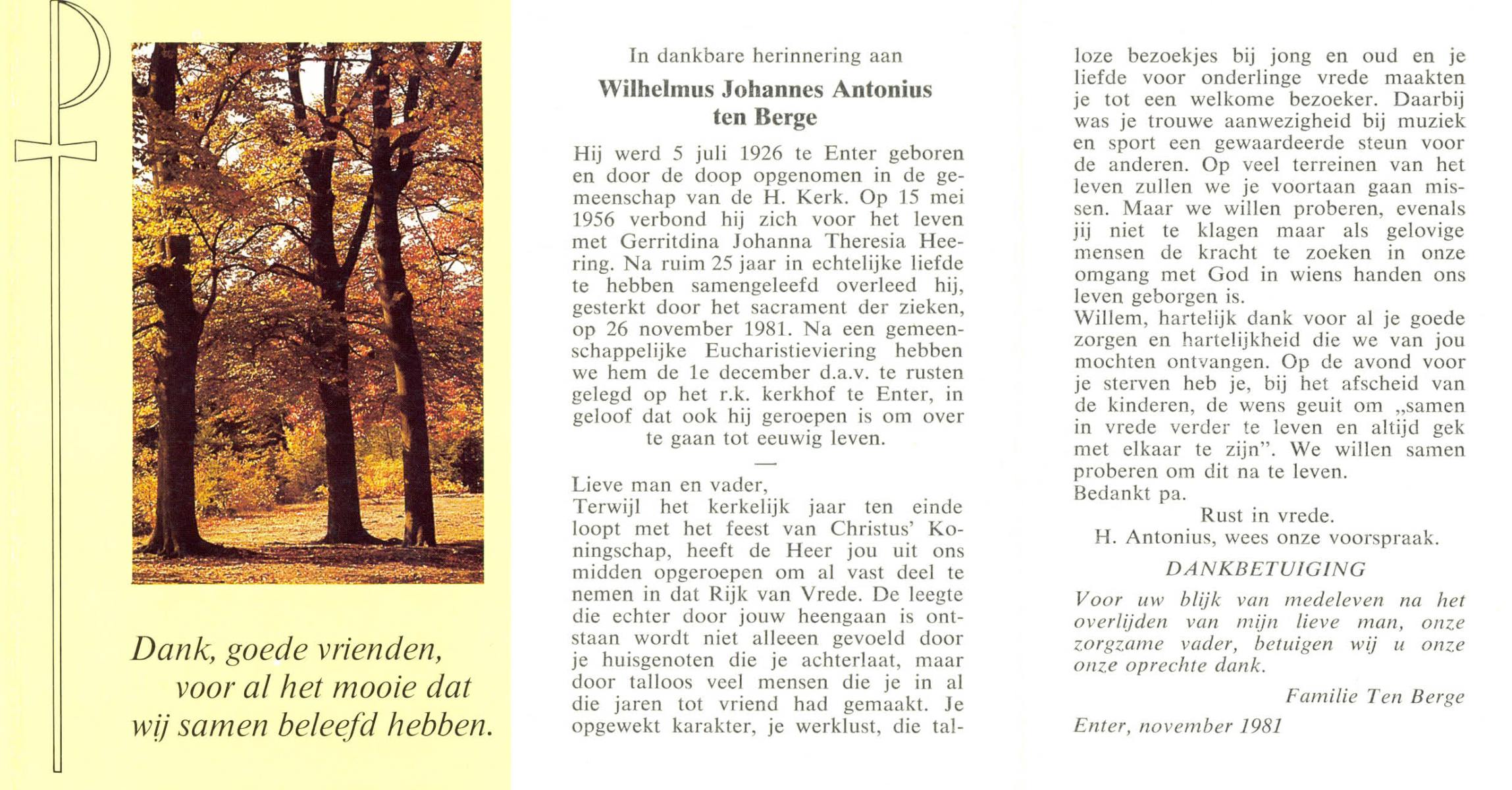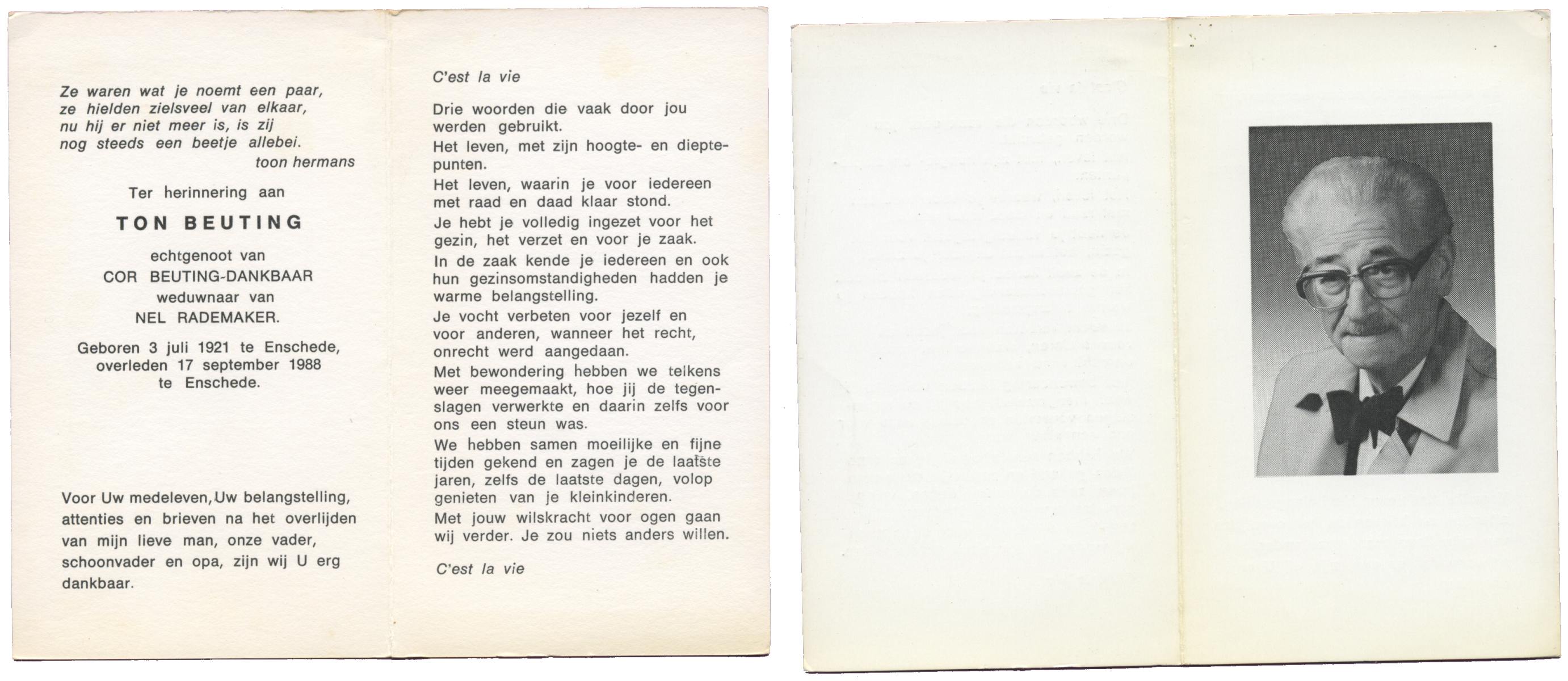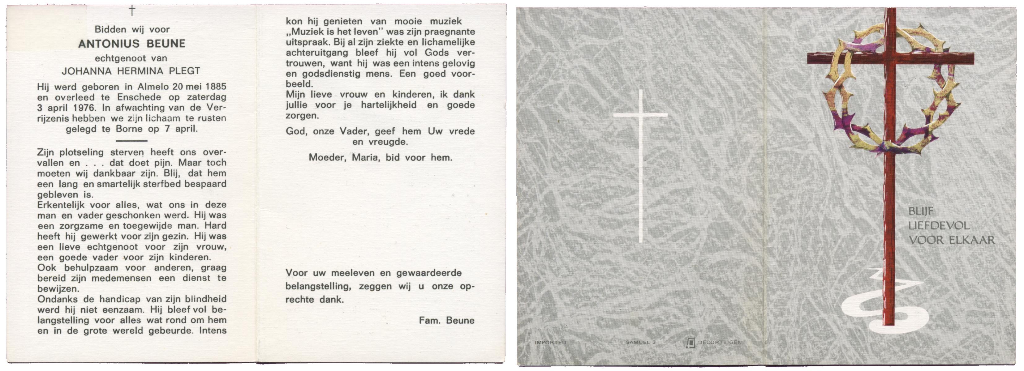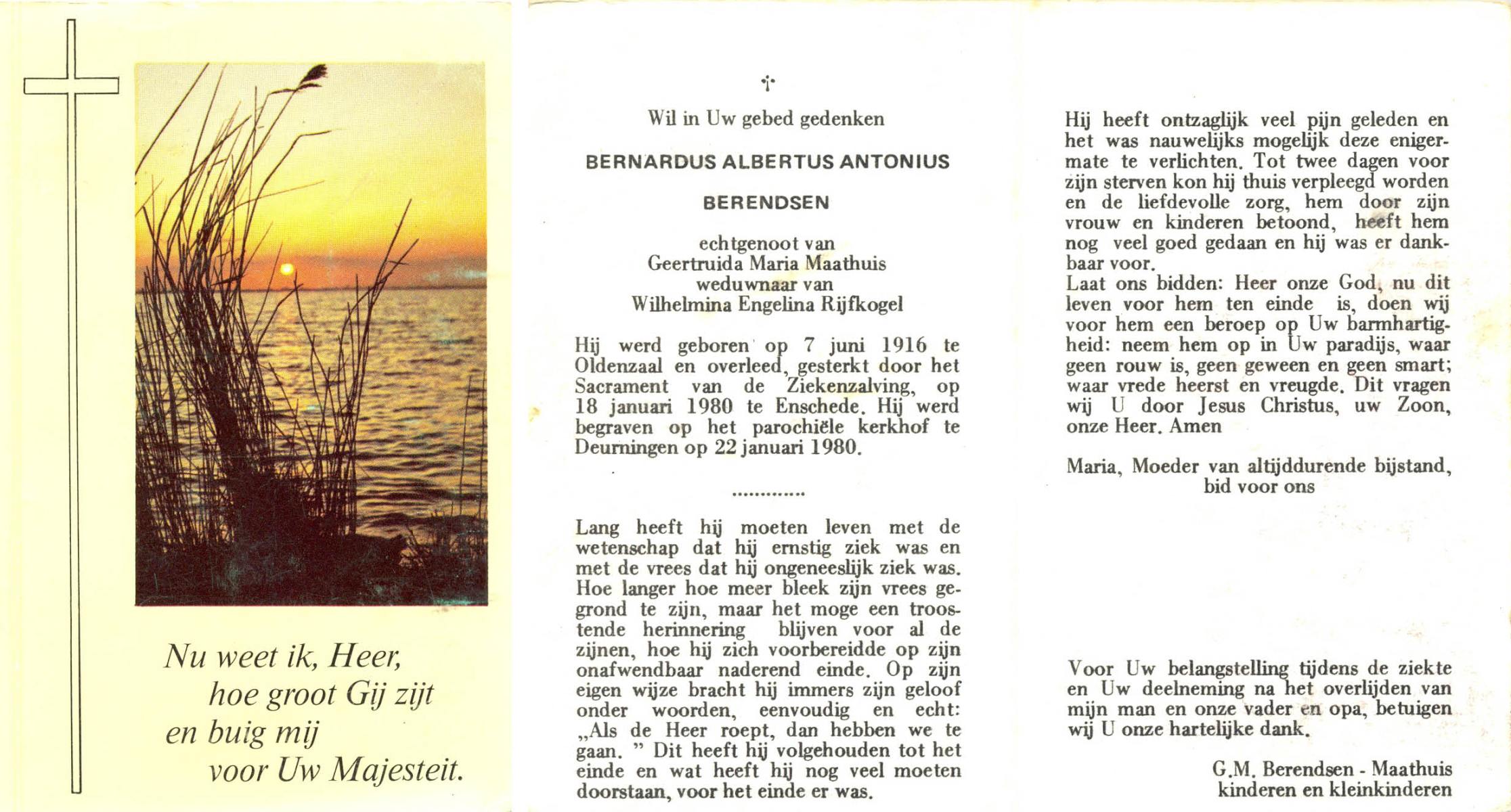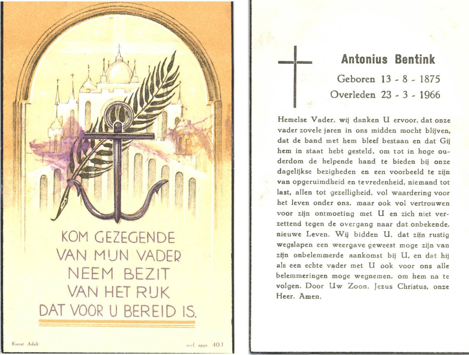 BEKKE, ter, Andreas, geboren op 5-11-1908 te Tubbergen, overleden op 9-1-1979 te Lonneker op 70-jarige leeftijd.