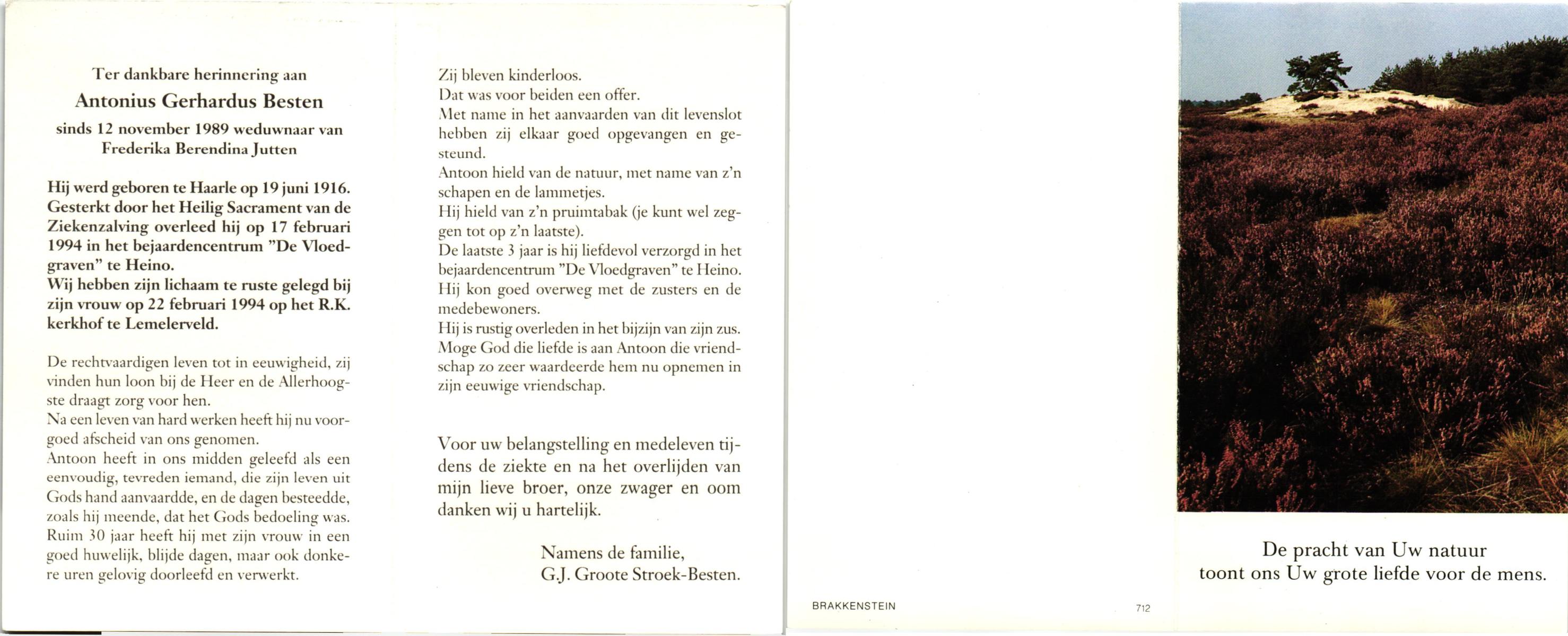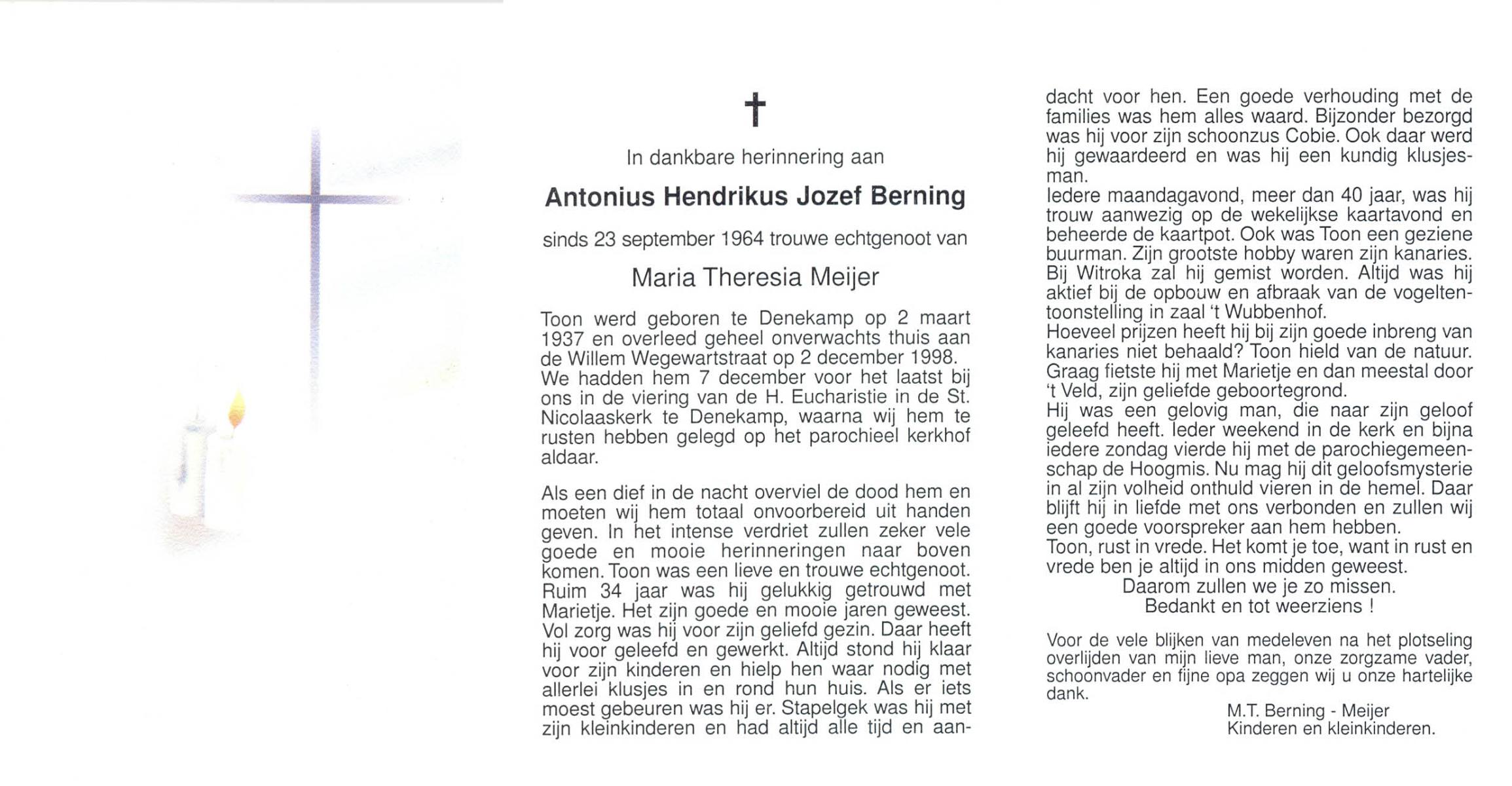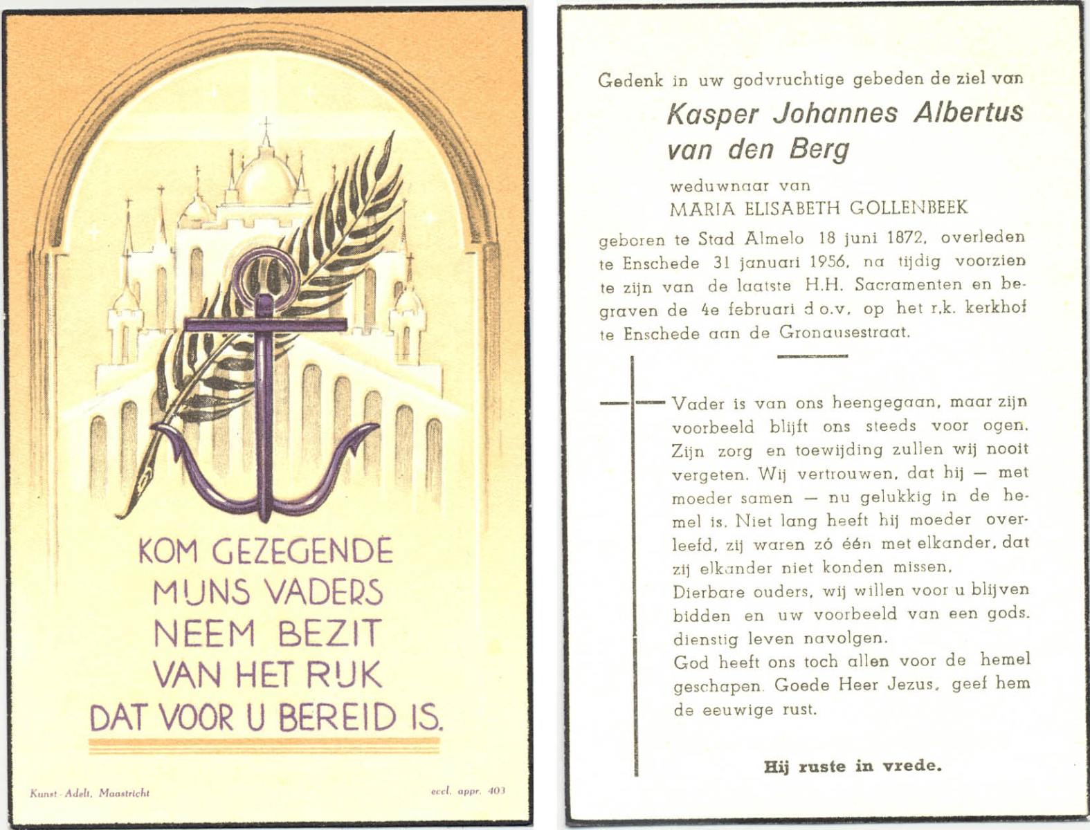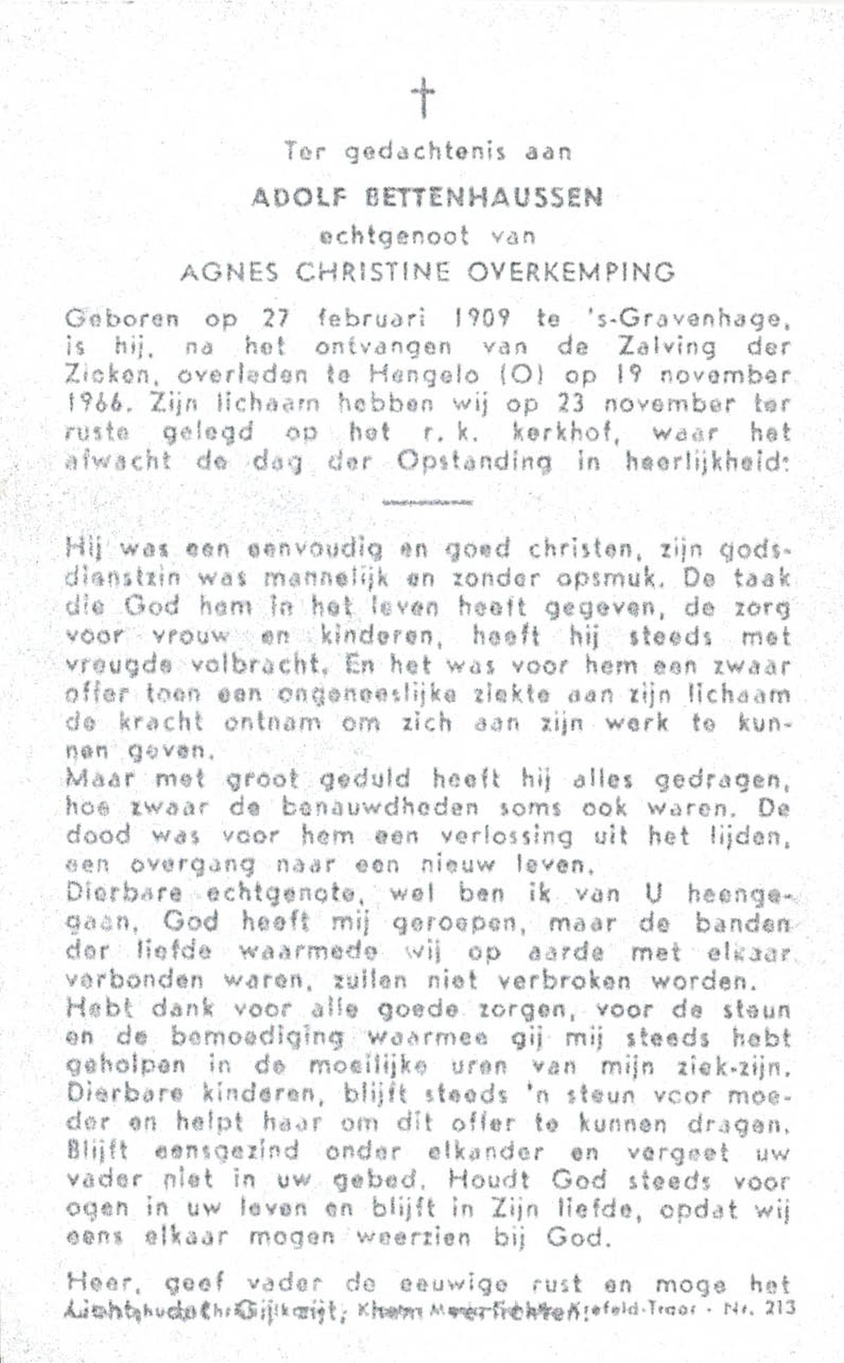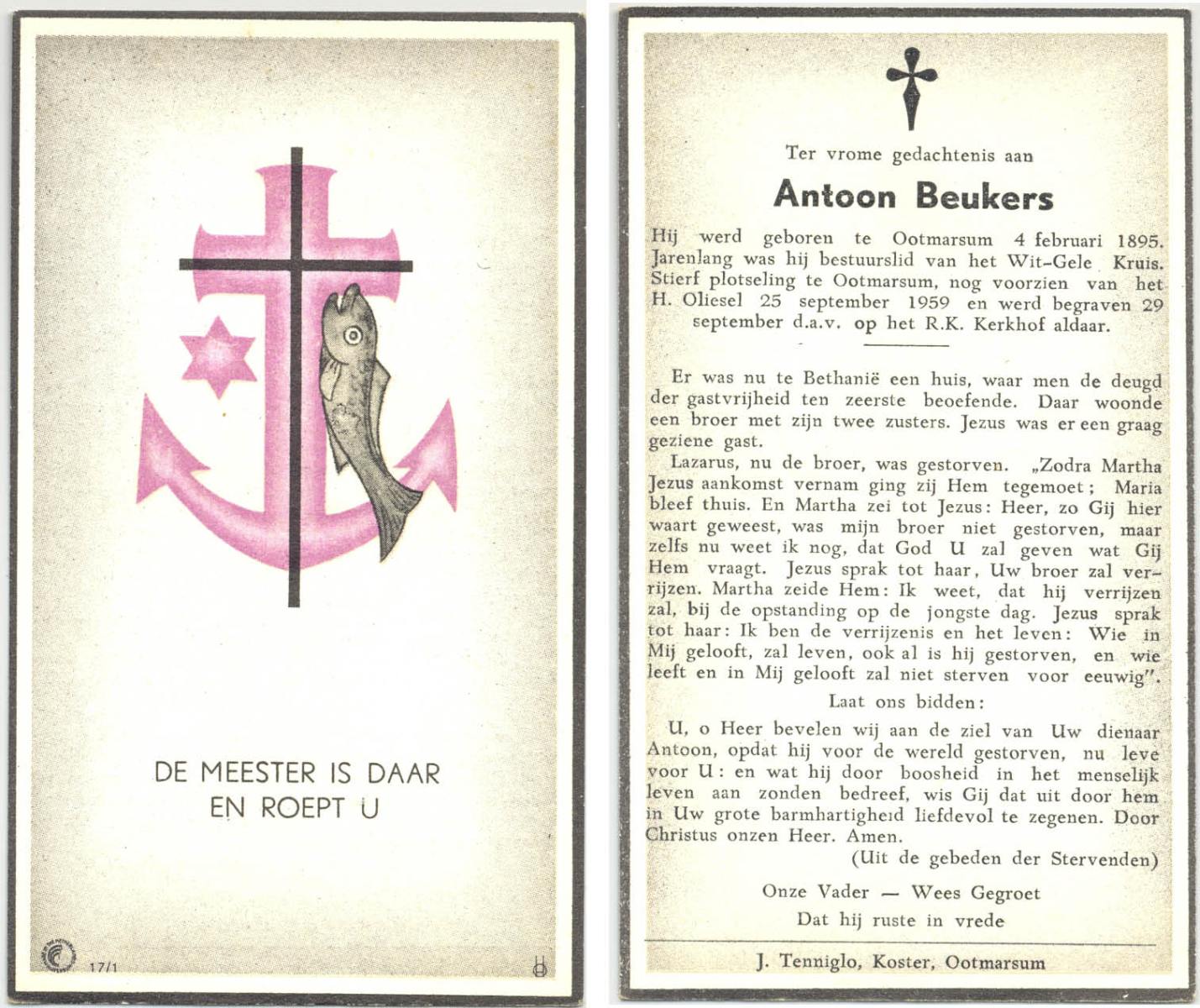 BEKKE, ter, Andreas, geboren op 5-11-1908 te Tubbergen, overleden op 9-1-1979 te Lonneker op 70-jarige leeftijd.