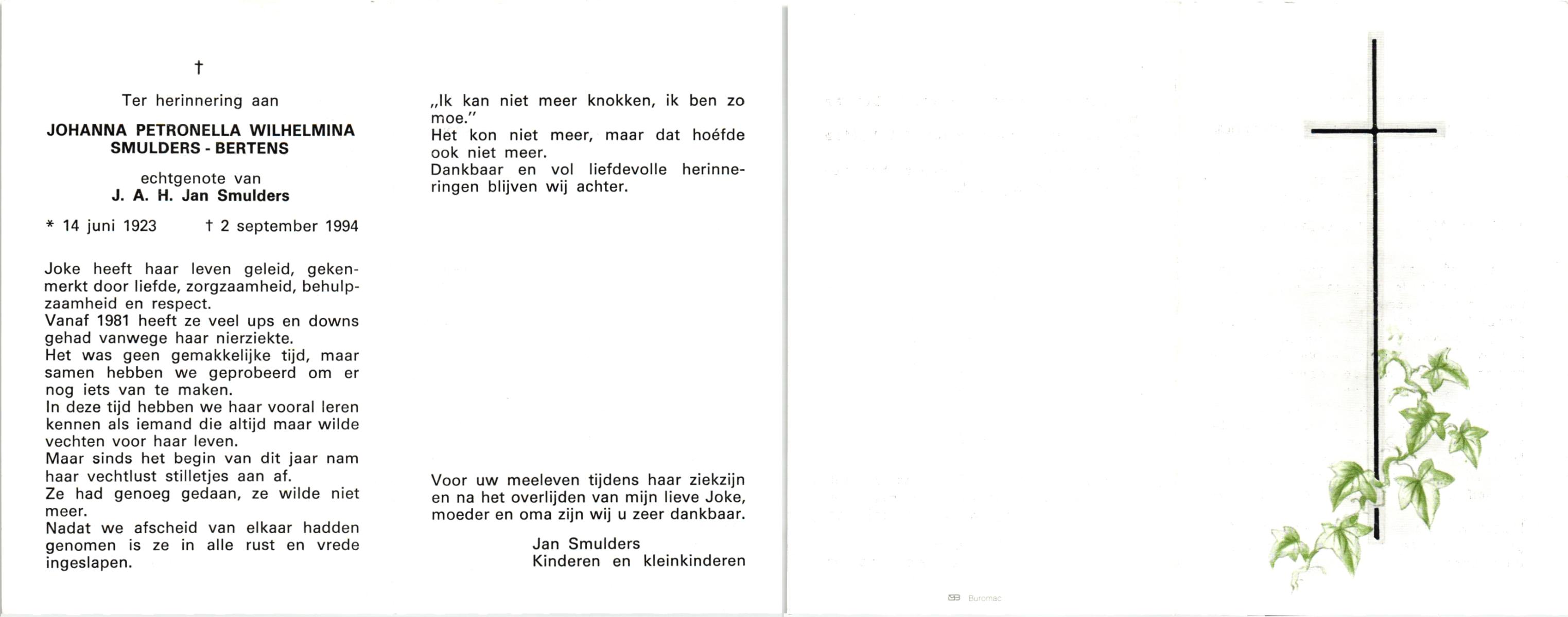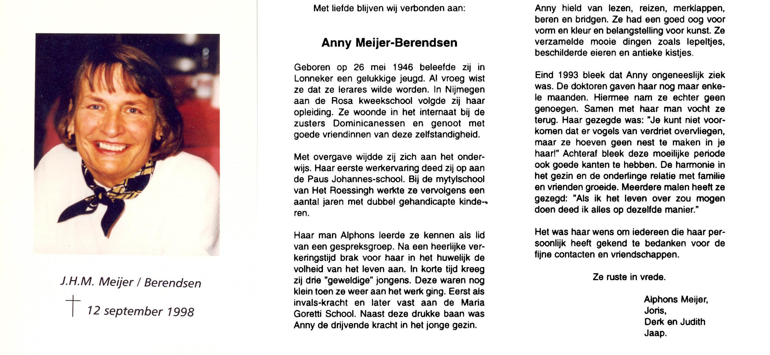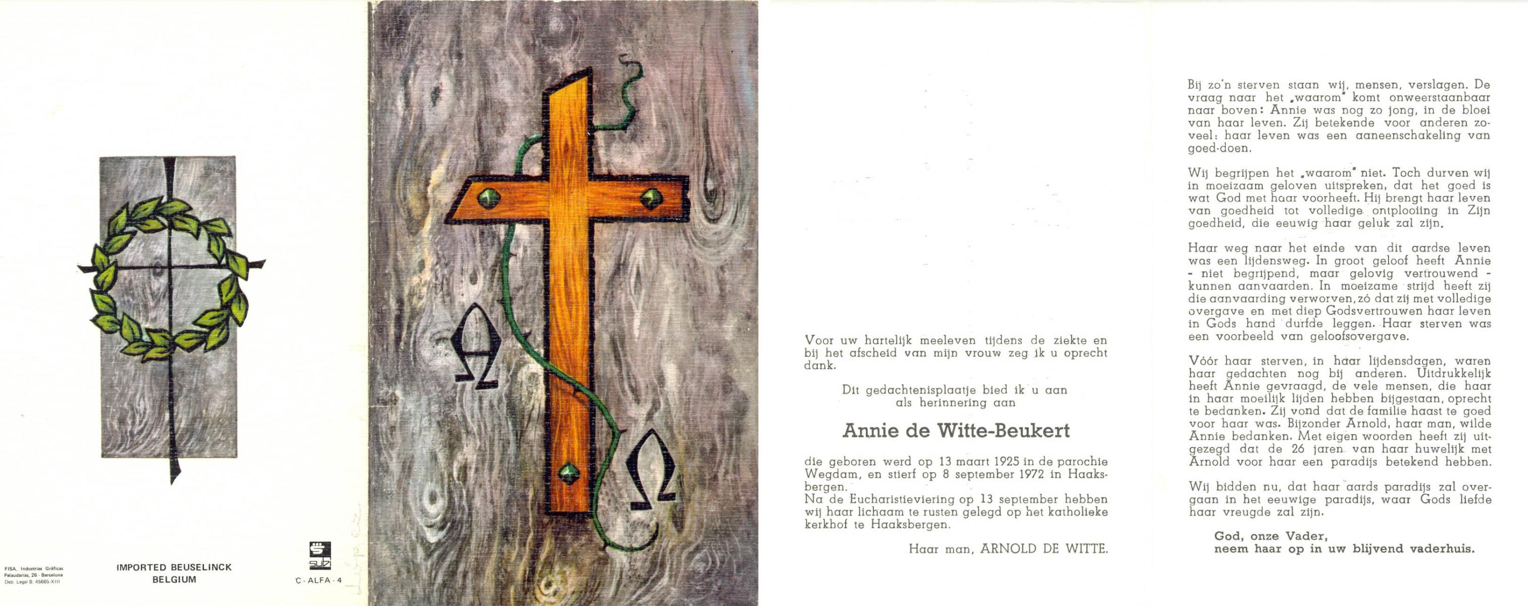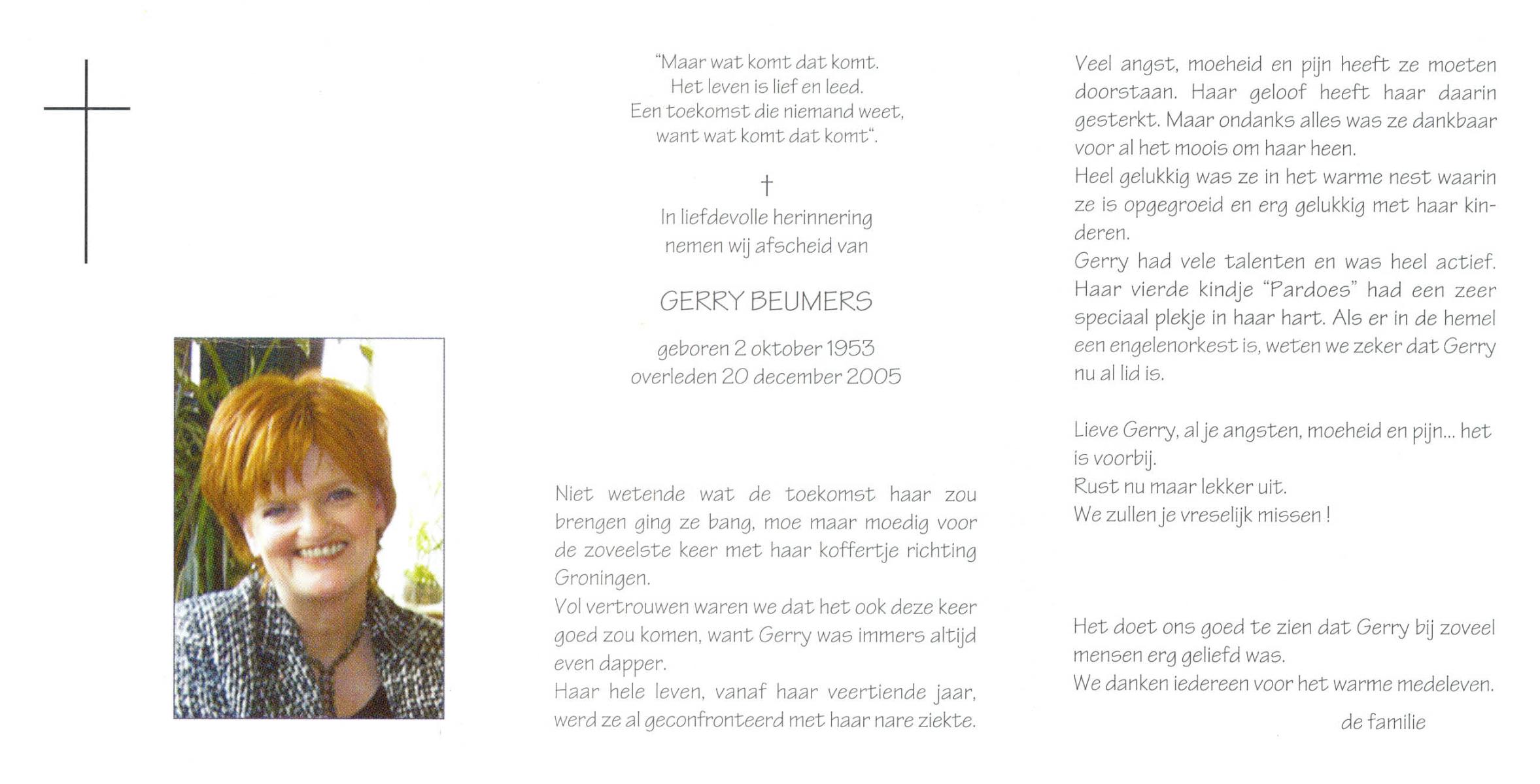 BEVERS, Johanna Wilhelmina (Annie), geboren op 20-9-1946, overleden op 21-4-1998 op 51-jarige leeftijd, gecremeerd op 24-4-1998 te Usselo.