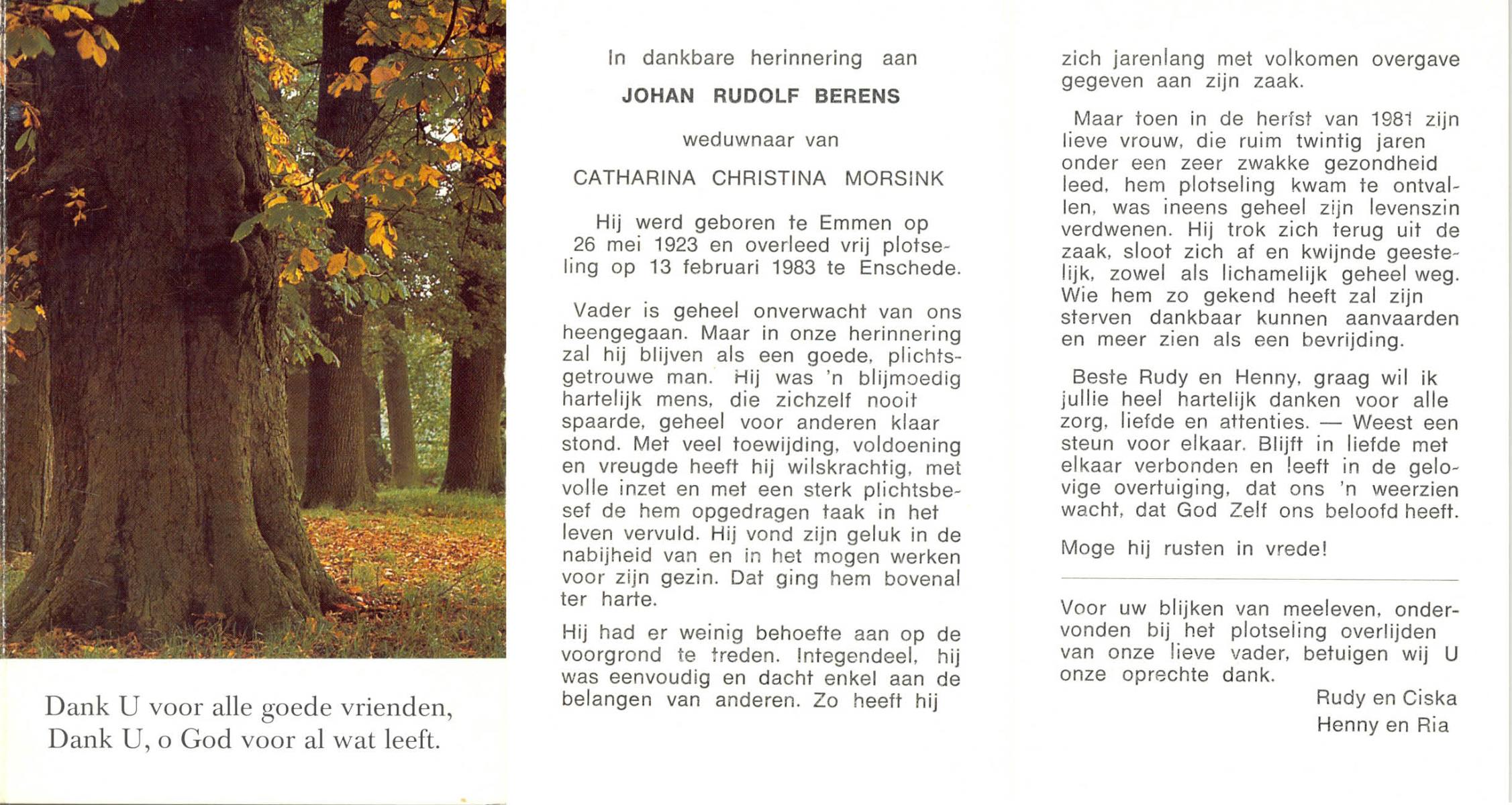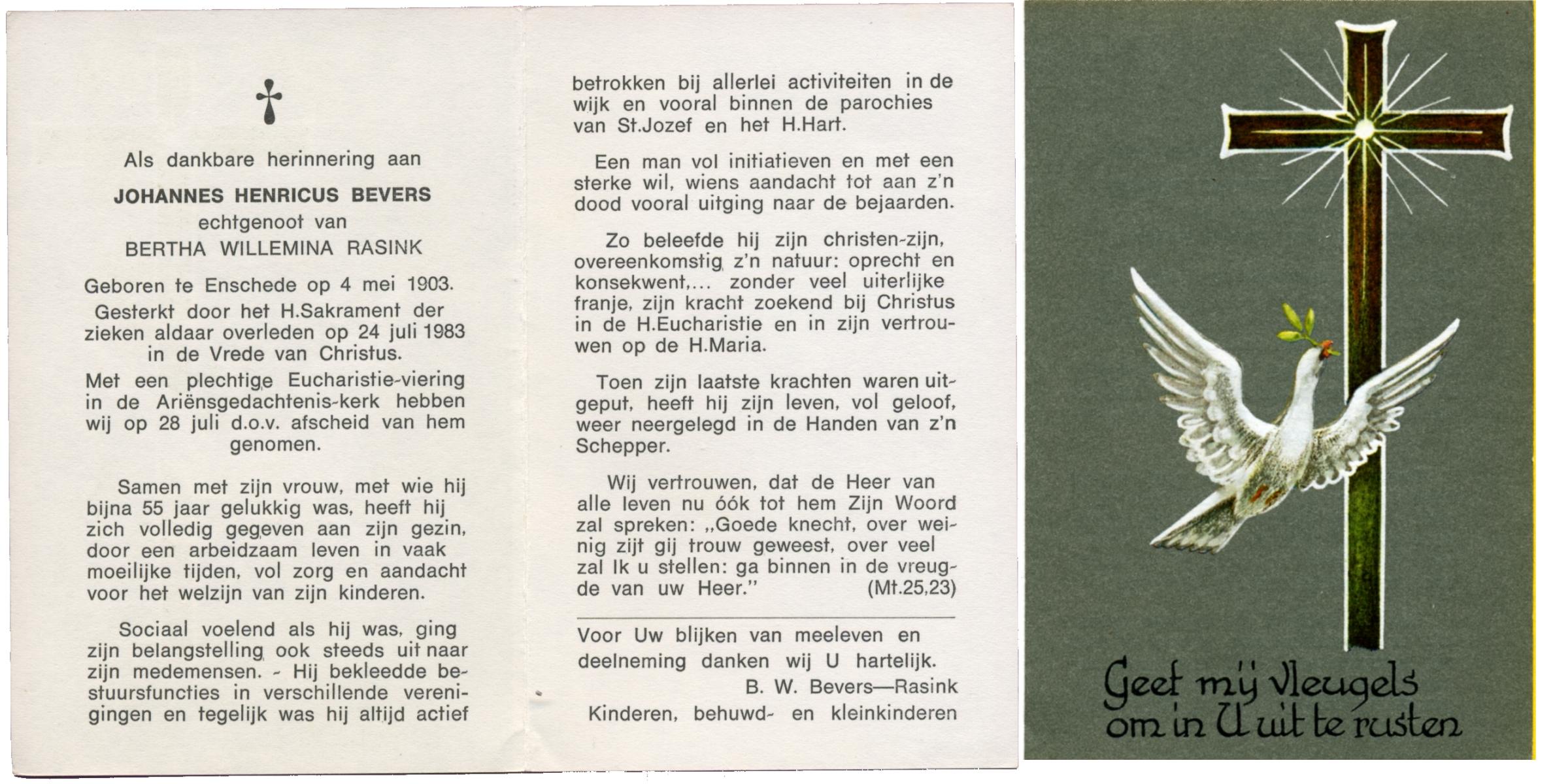 BEVERS, Johannes Henricus, geboren op 4-5-1903 te Enschede, overleden op 24-7-1983 te Enschede op 80-jarige leeftijd, begraven op 28-7-1983 te Enschede.