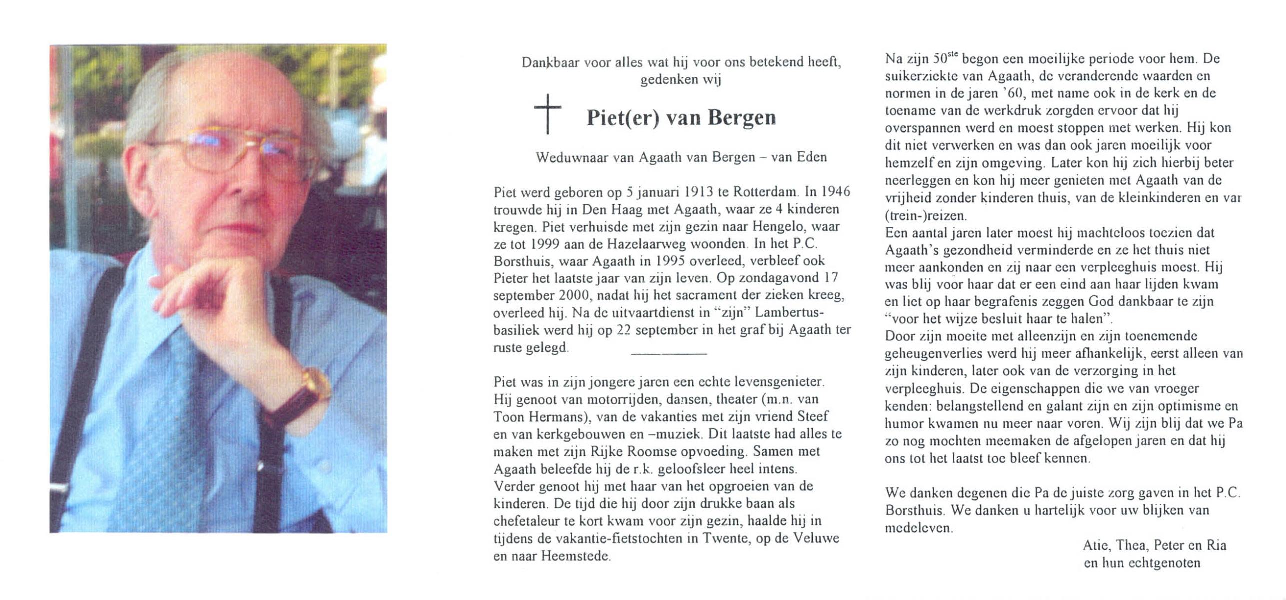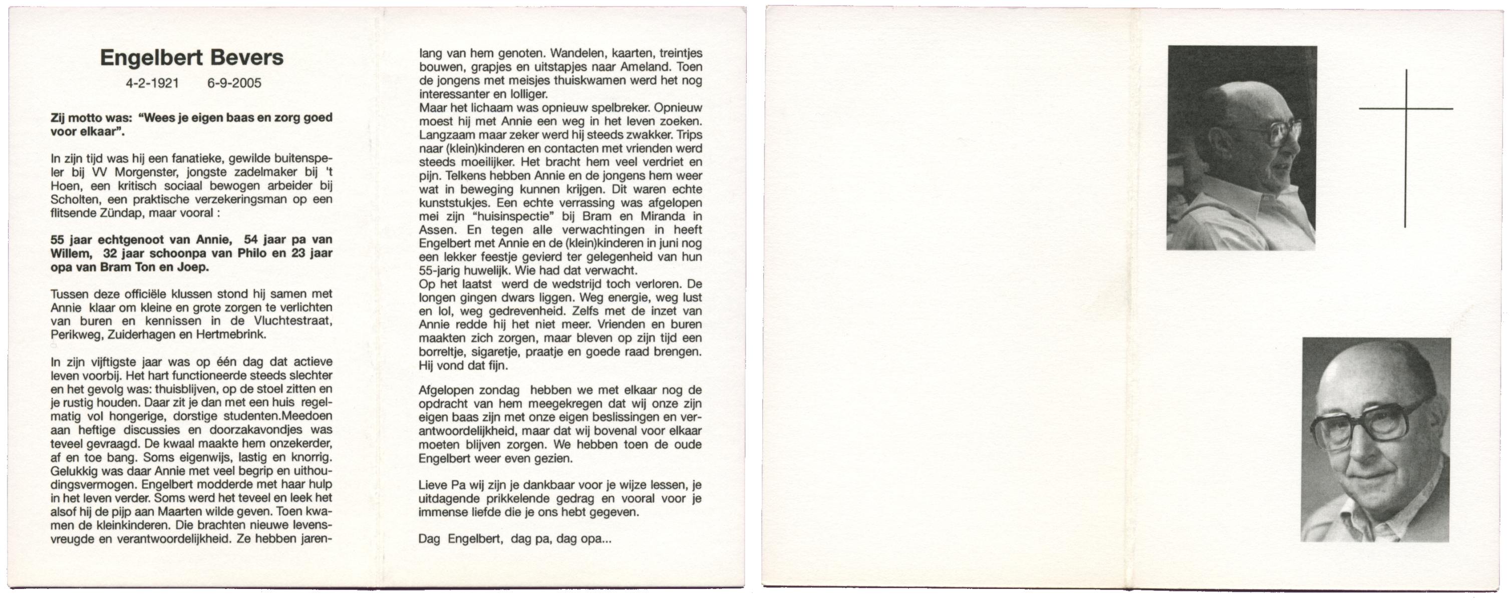 BEVERS, Engelbert, geboren op 4-2-1921, overleden op 6-9-2005 te Enschede op 84-jarige leeftijd.