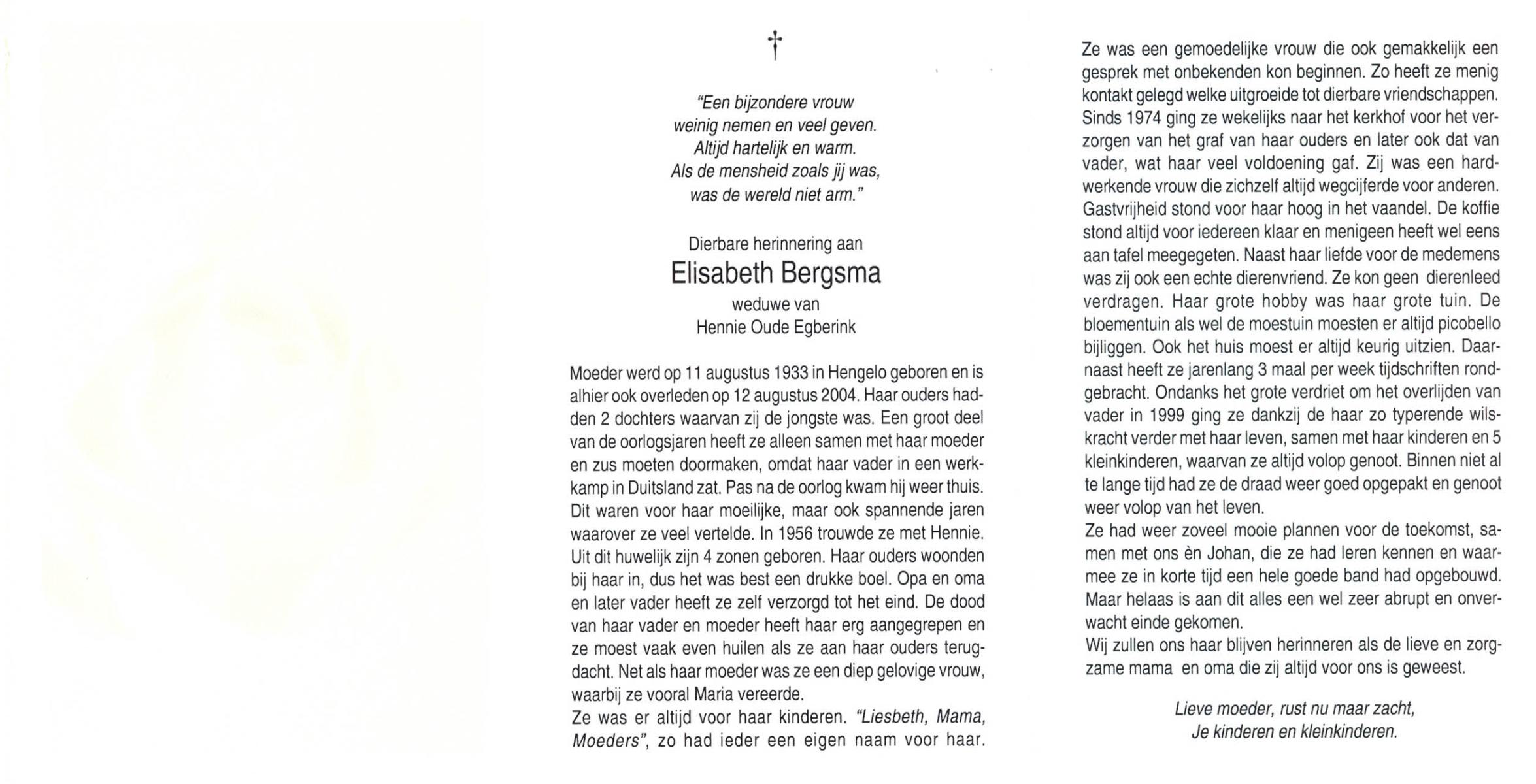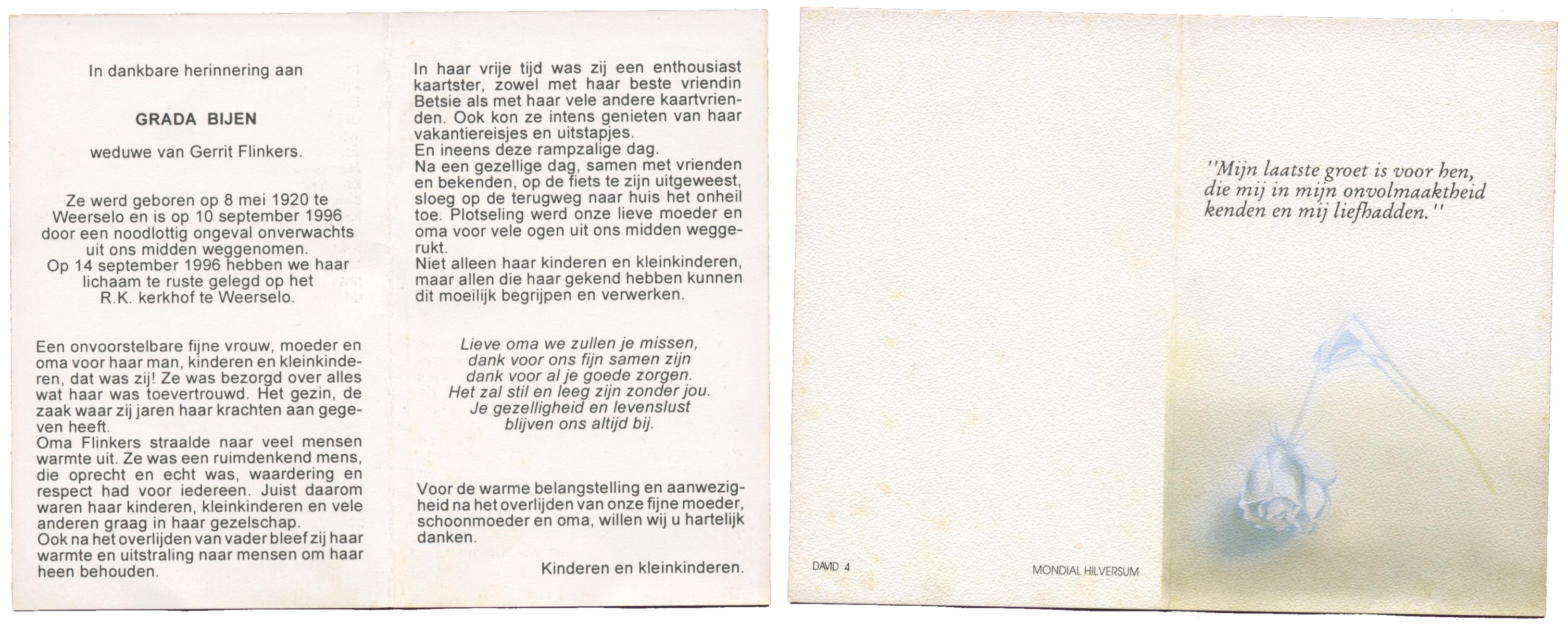 BIJEN, Grada, geboren op 8-5-1920 te Weerselo, overleden op 10-9-1996 op 76-jarige leeftijd, begraven op 14-9-1996 te Weerselo.