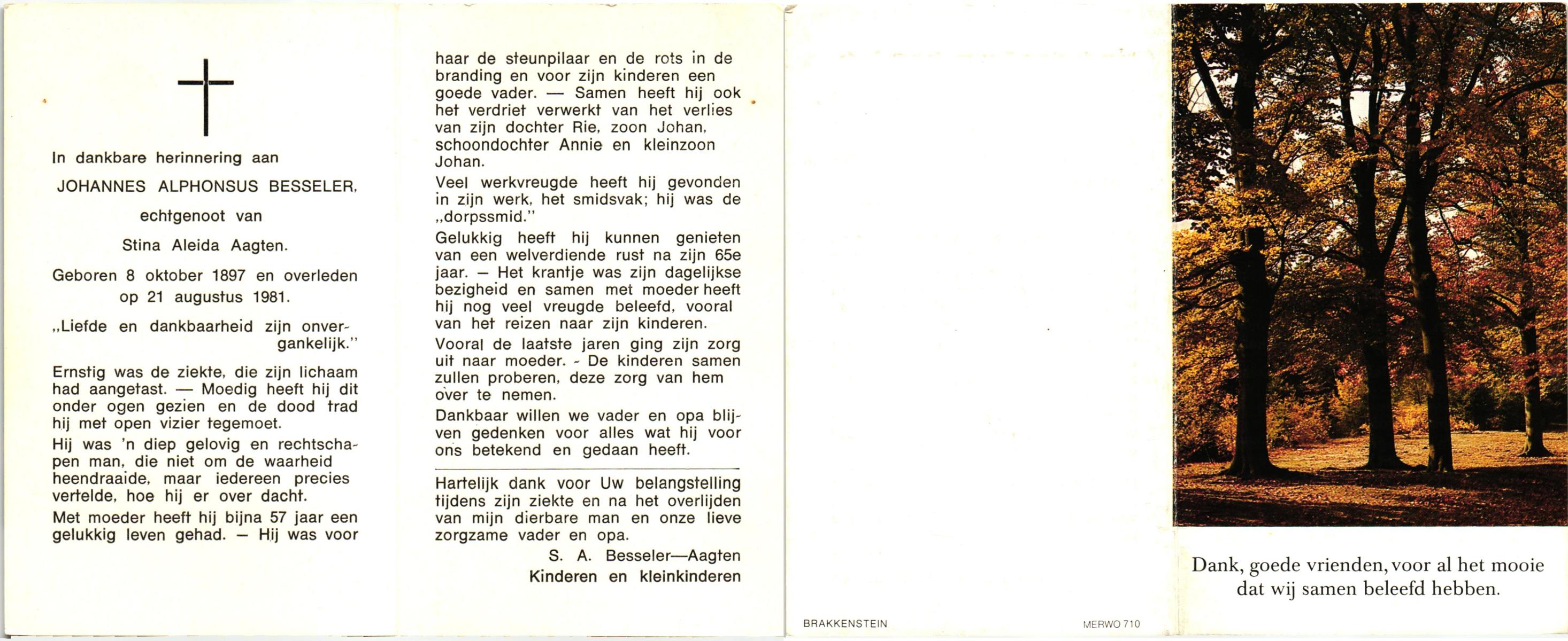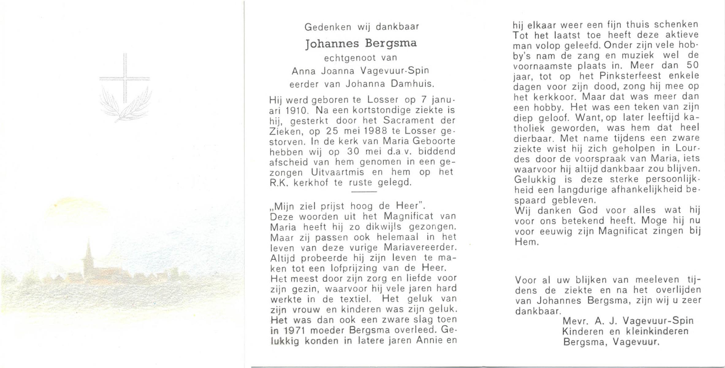 BEKKE, Johannes, geboren op 04-03-1888 te Langeveen, overleden op 14-08-1971 te Losser op 83-jarige leeftijd.