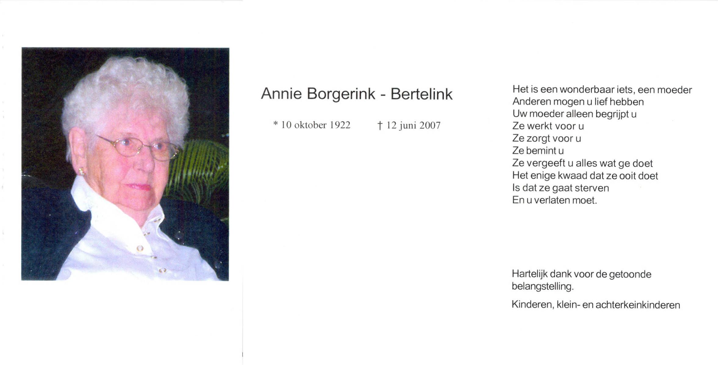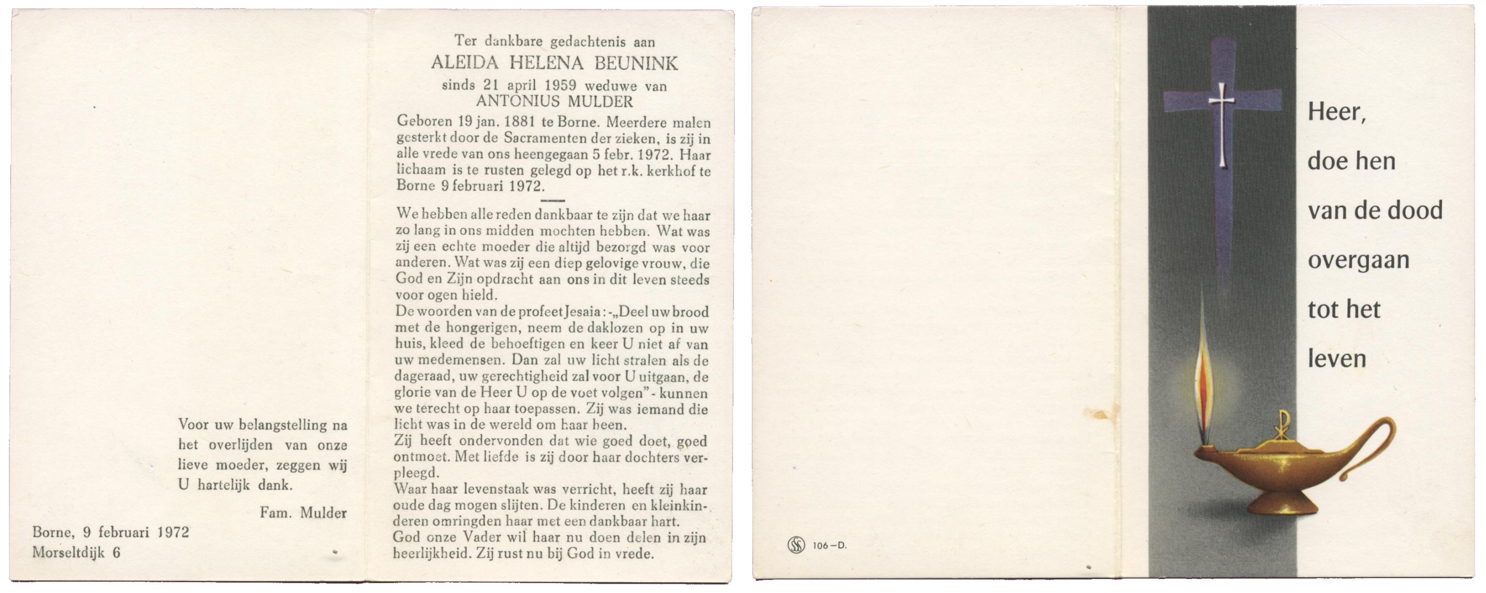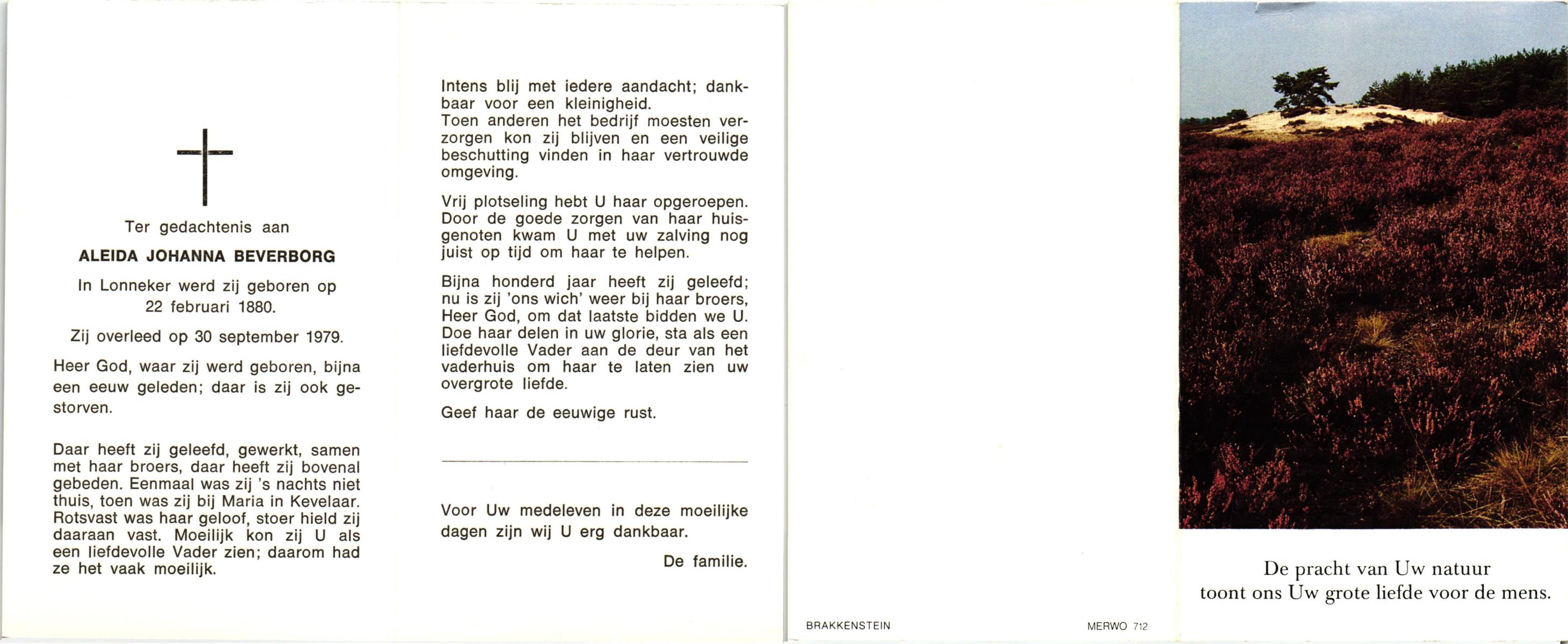 BEVERBORG, Aleida Johanna, geboren op 22-02-1880 te Lonneker, overleden op 30-9-1979 op 99-jarige leeftijd.