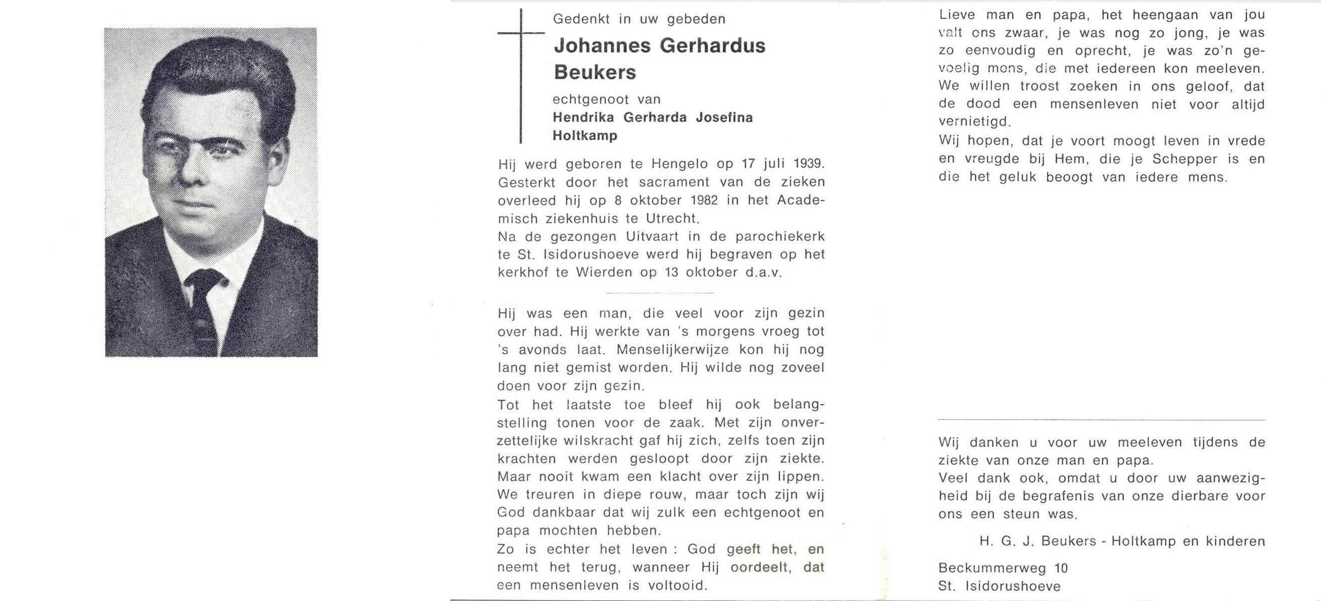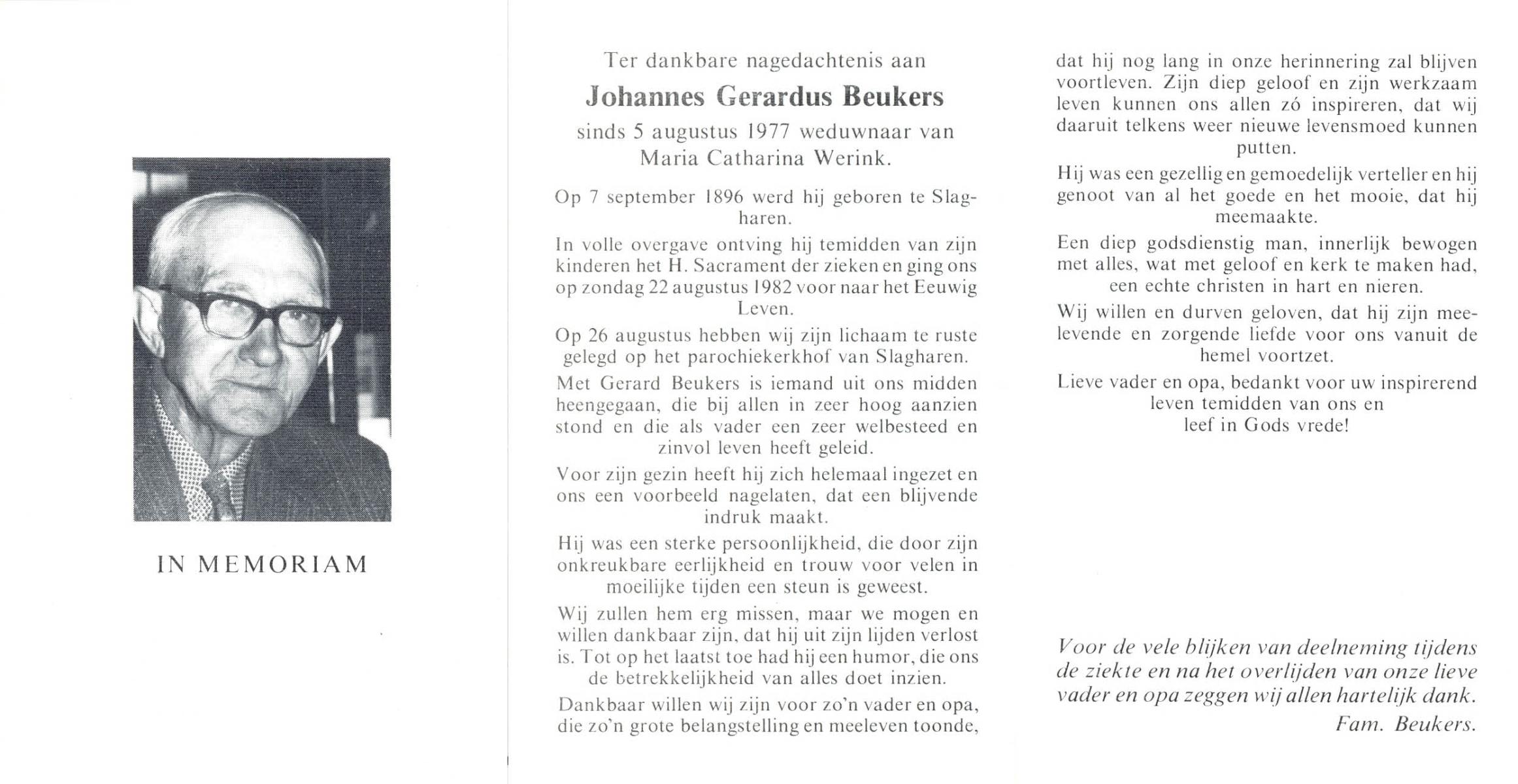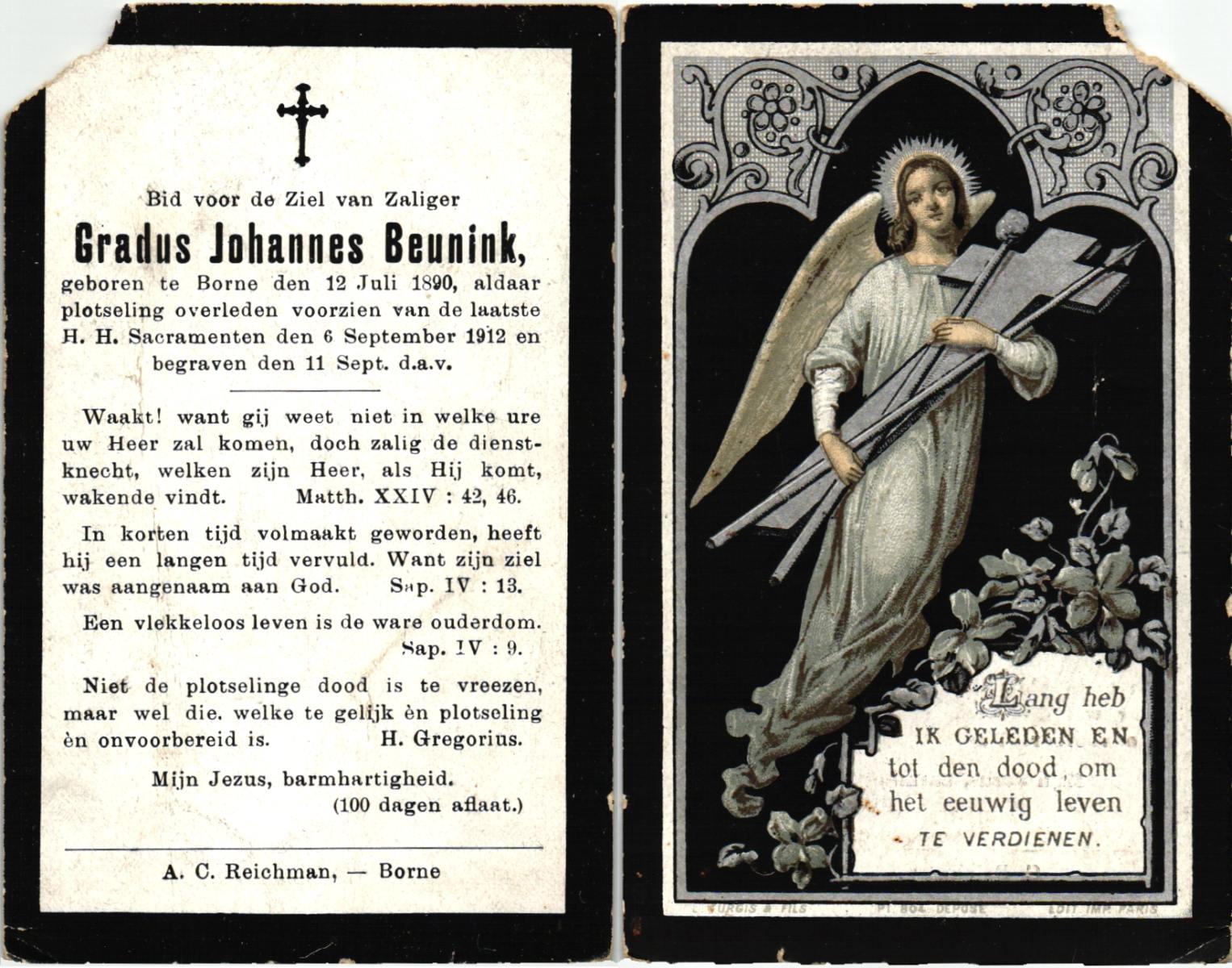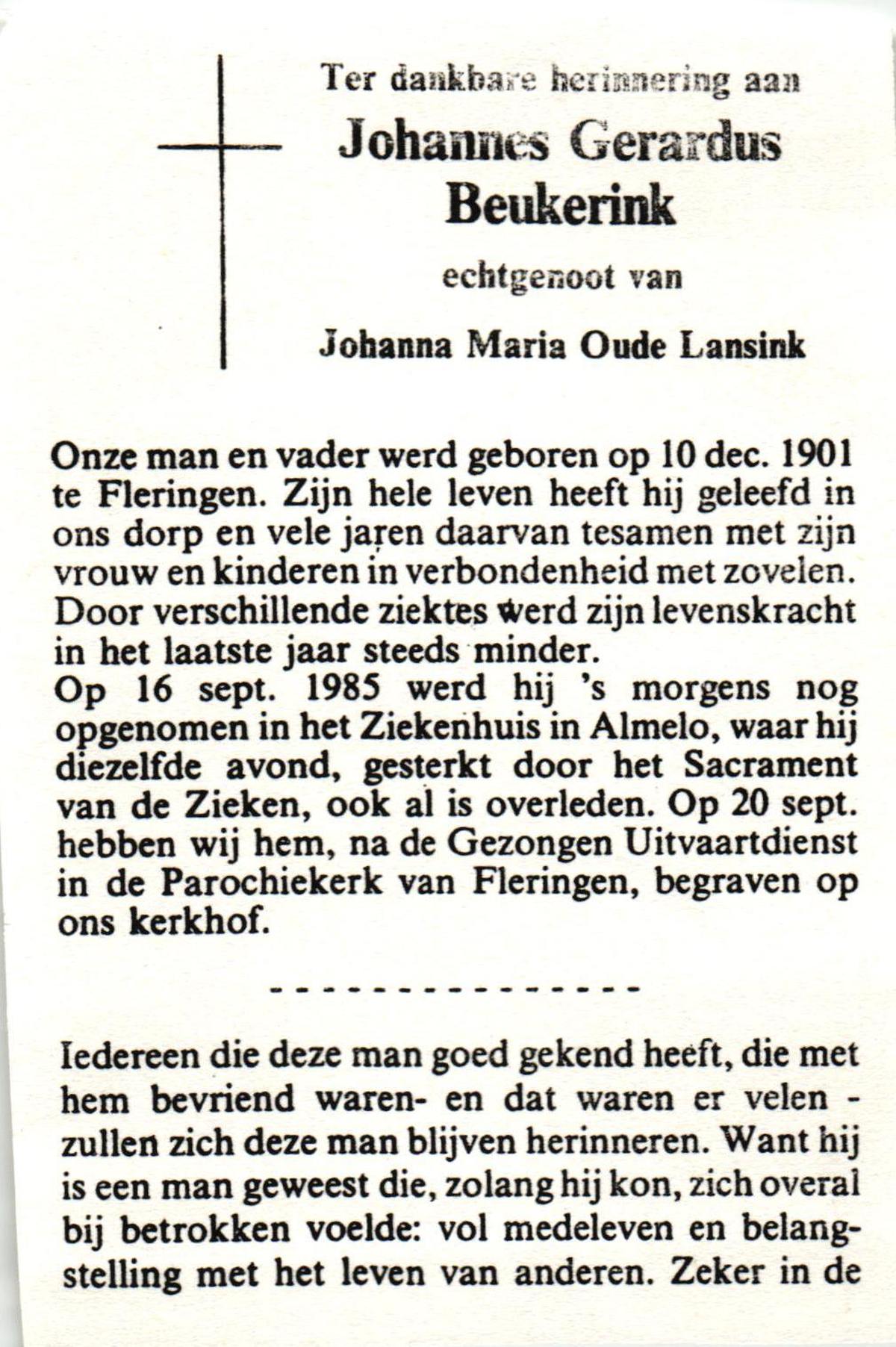 BEUVINK, Gerardus Johannes, geboren op 12-7-1909 te Oldenzaal, overleden op 26-6-1975 te Hengelo (Ov.) op 65-jarige leeftijd.