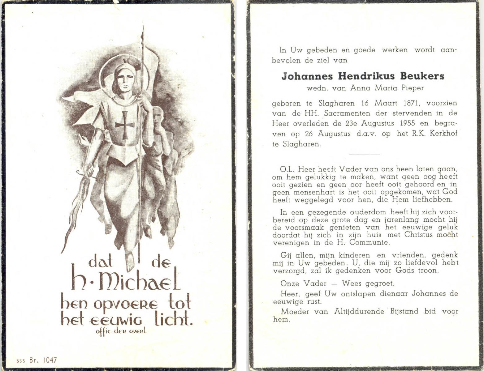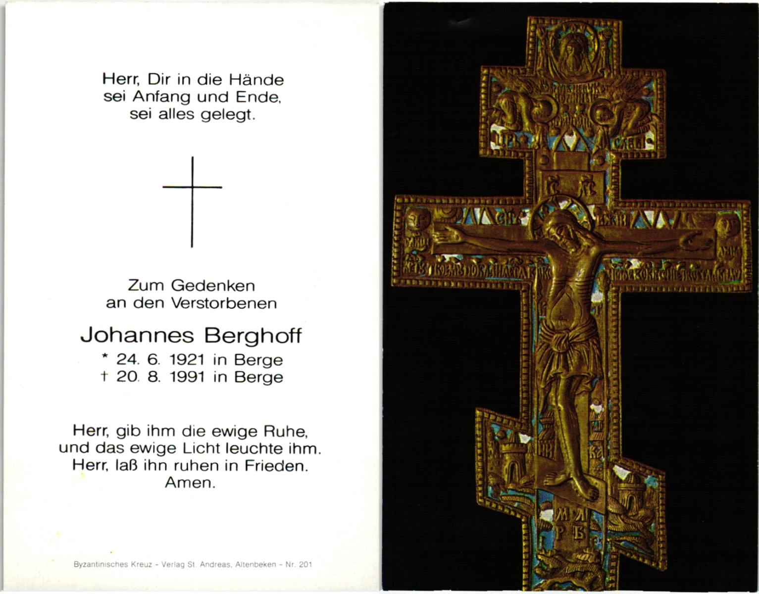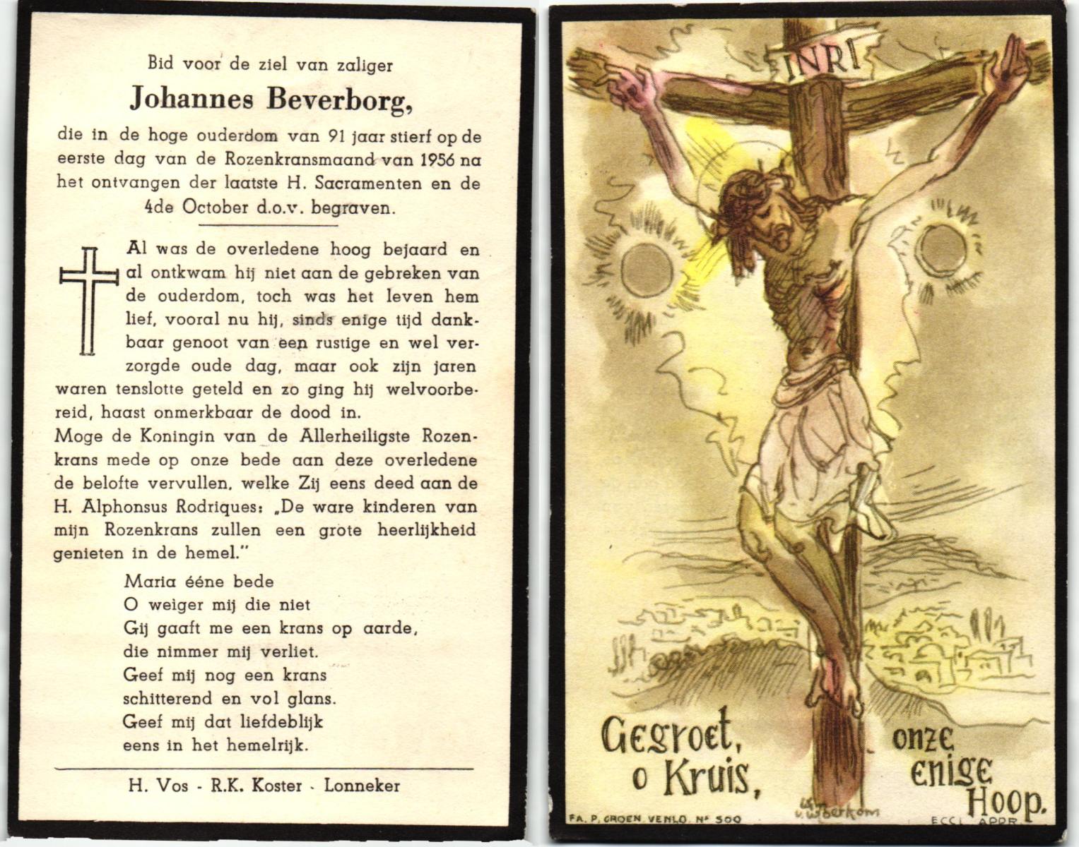 BEVERBORG, Johannes, overleden op 1-10-1956 op 91-jarige leeftijd, begraven op 4-10-1956 te Lonneker.