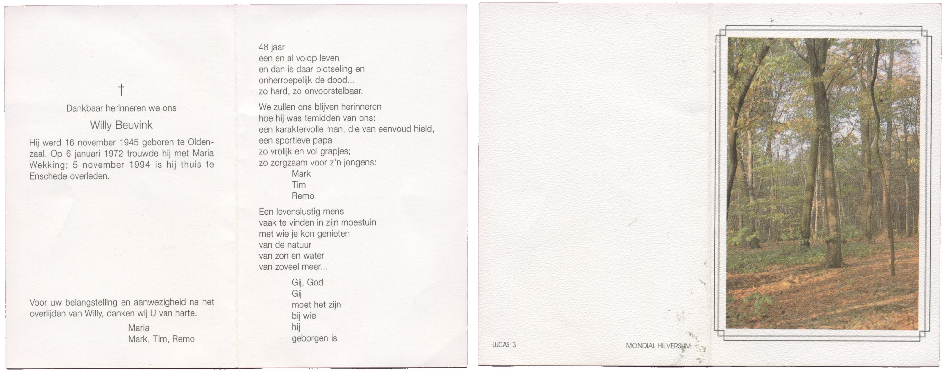 BEUVINK, Willy, geboren op 16-11-1945 te Oldenzaal, overleden op 5-11-1994 te Enschede op 48-jarige leeftijd.