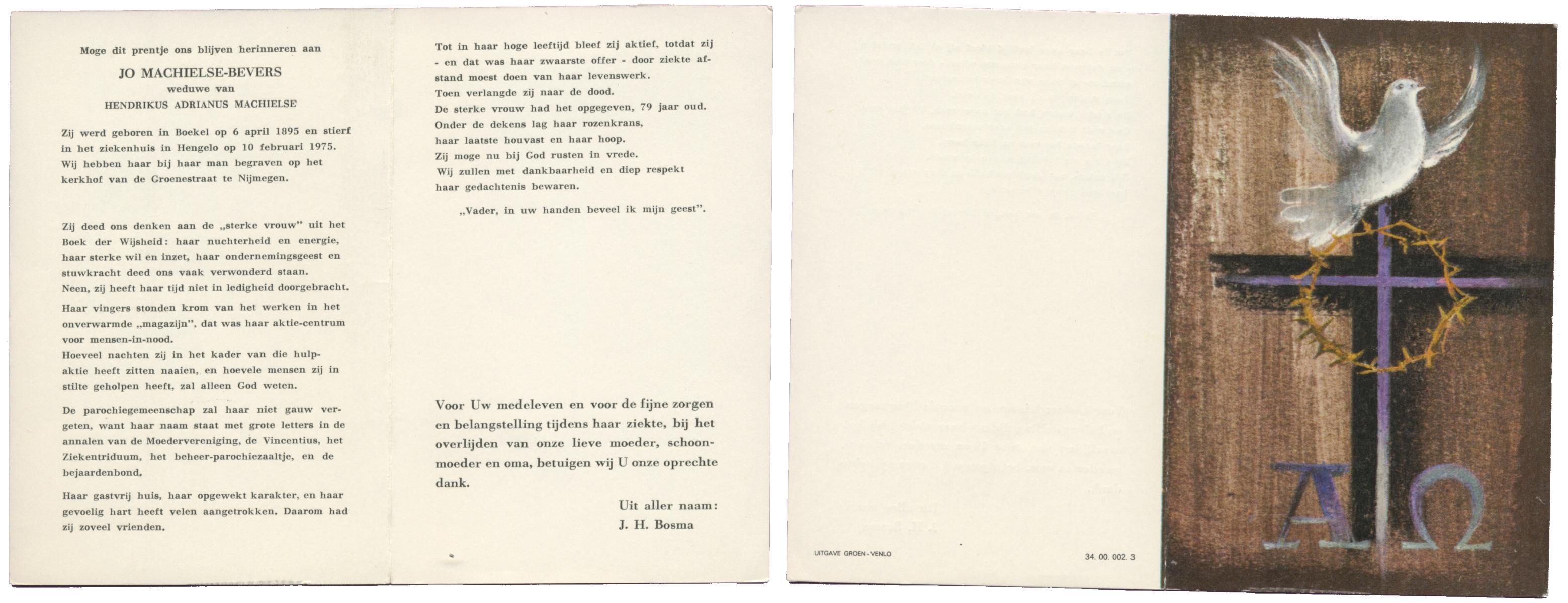 BEVERS, Jo, geboren op 06-04-1895 te Boekel, overleden op 10-2-1975 te Hengelo (Ov.) op 79-jarige leeftijd, begraven te Nijmegen.