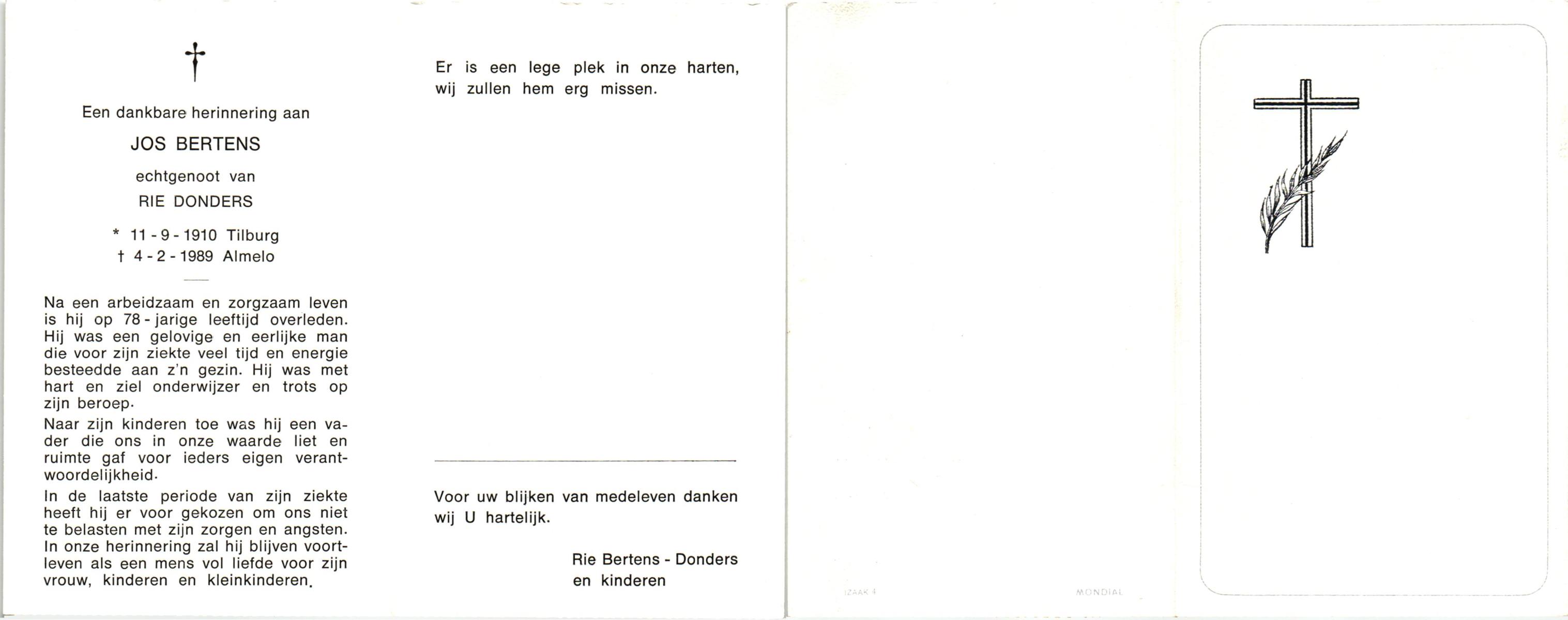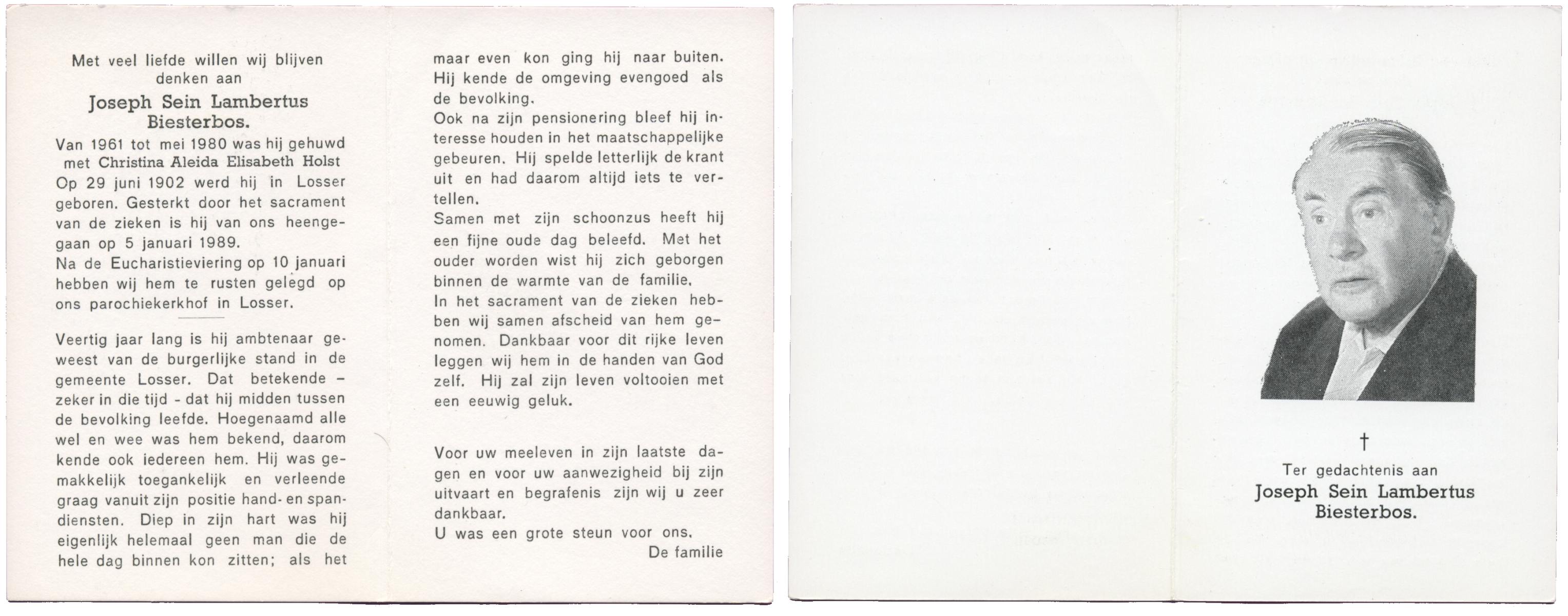 BIESTERBOS, Joseph Sein Lambertus, geboren op 29-6-1902 te Losser, overleden op 5-1-1989 op 86-jarige leeftijd, begraven op 10-1-1989 te Losser.