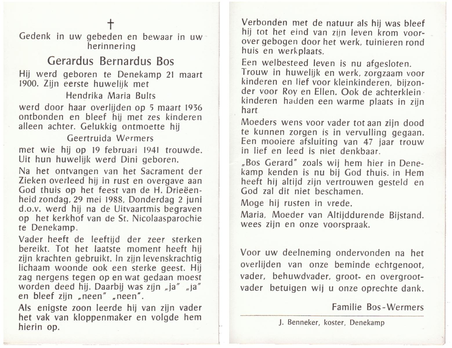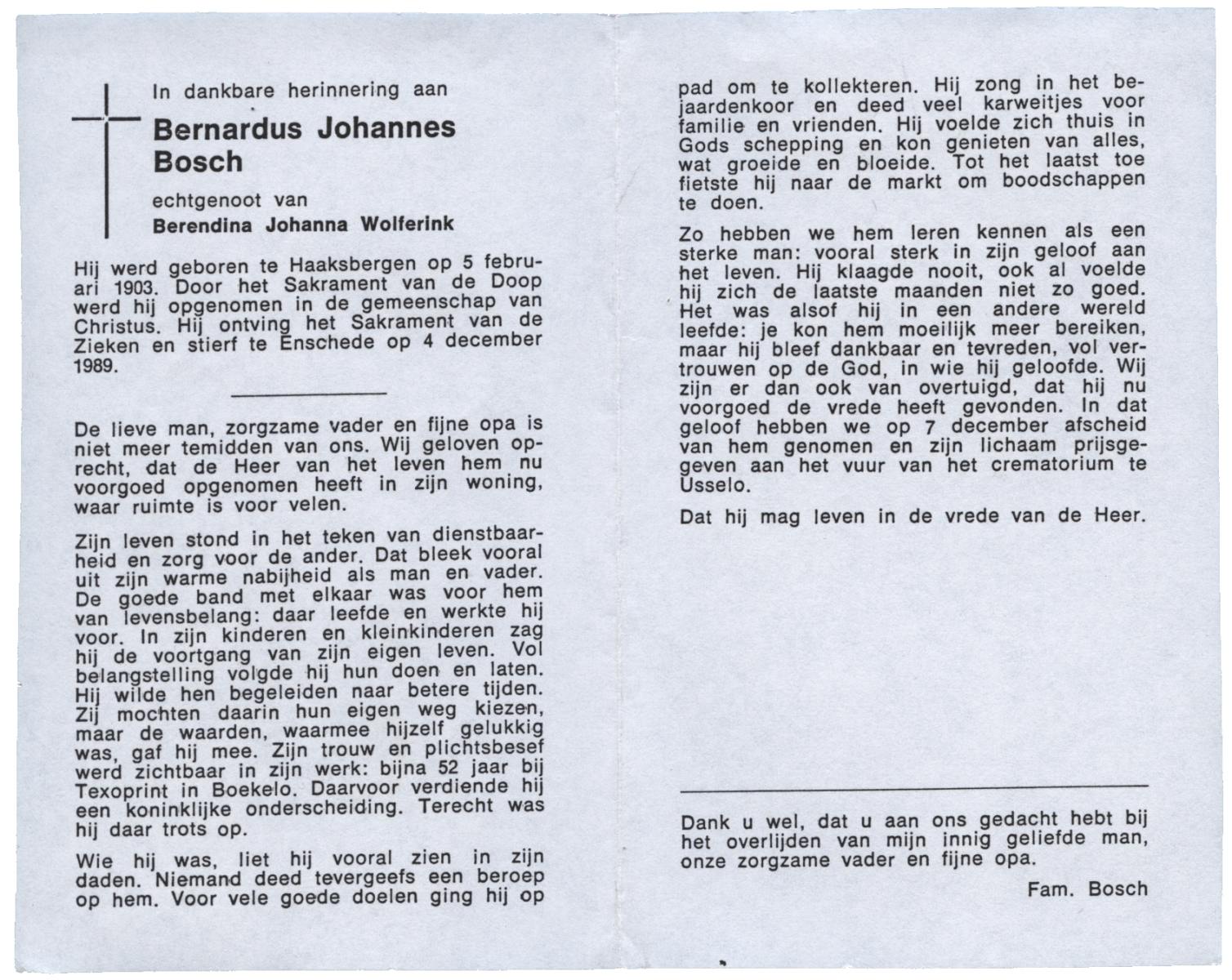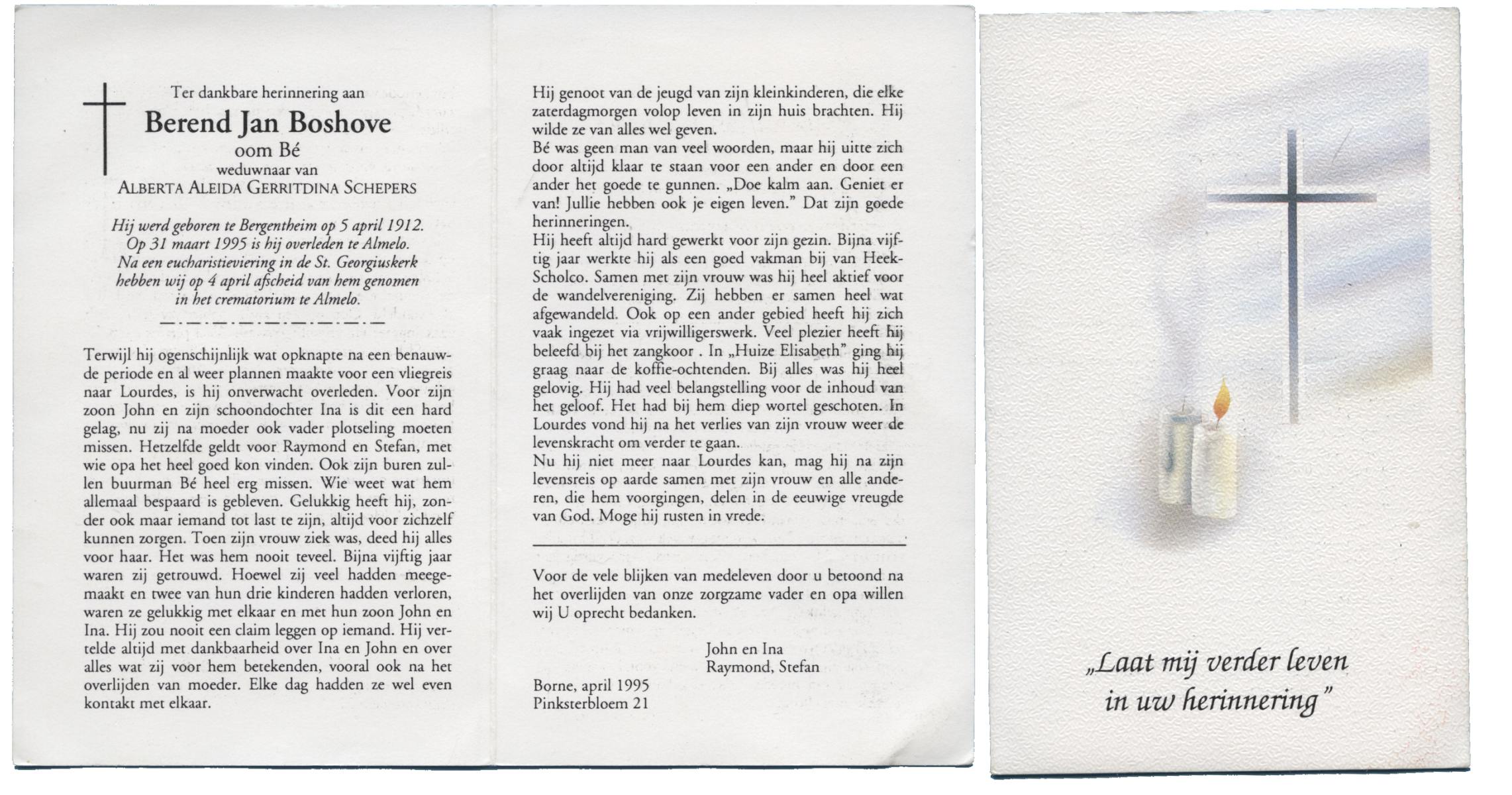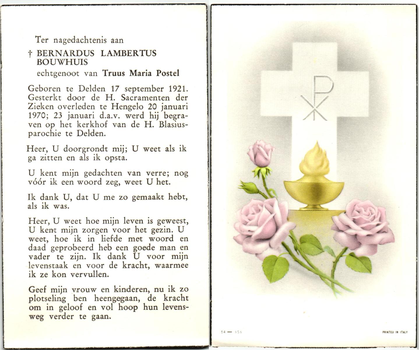 BOOMKAMP, Bernardus Gregorius, geboren op 24-8-1914 te Borne, overleden op 16-9-1977 op 63-jarige leeftijd, begraven op 20-9-1977 te Borne.
