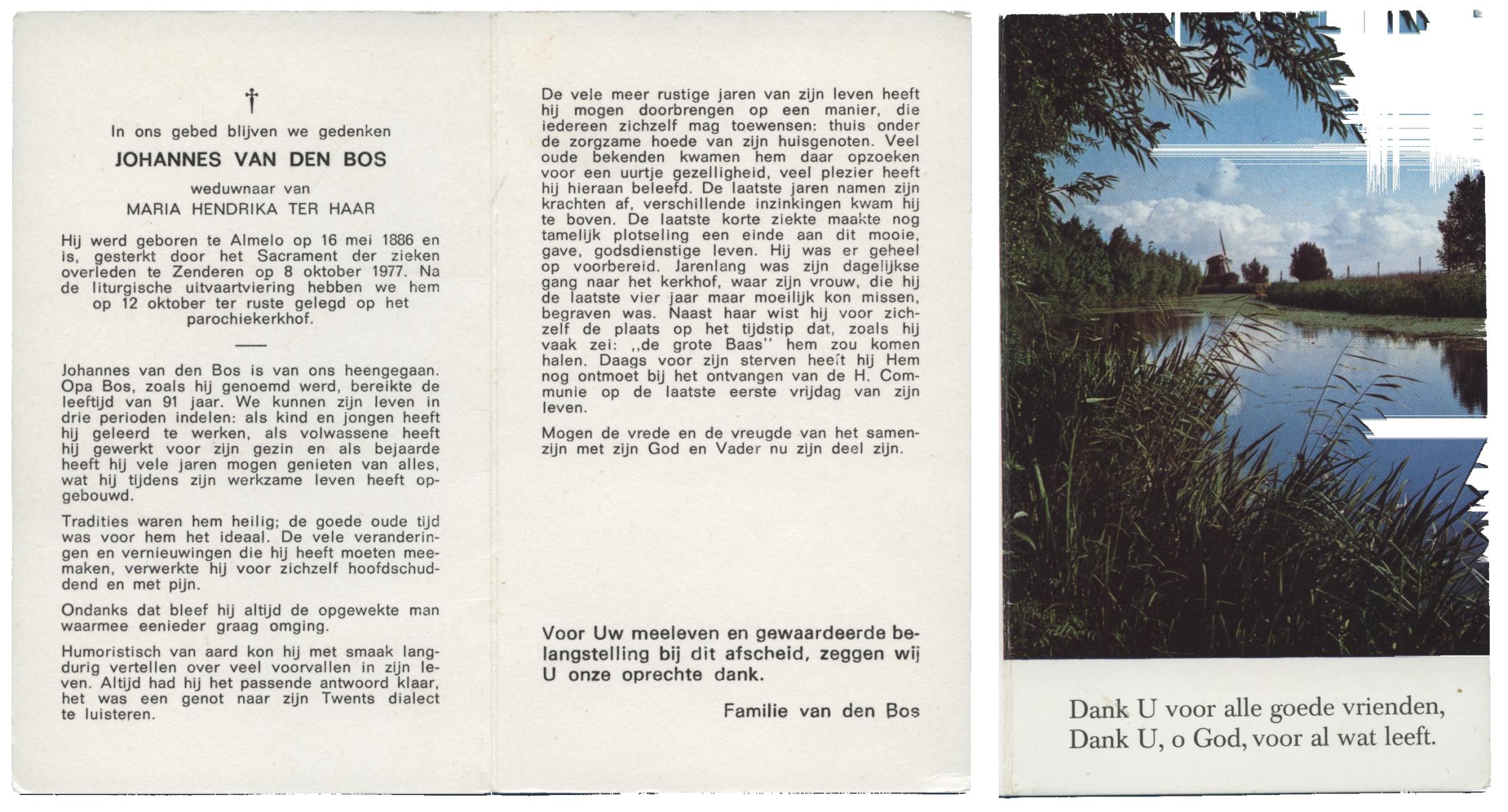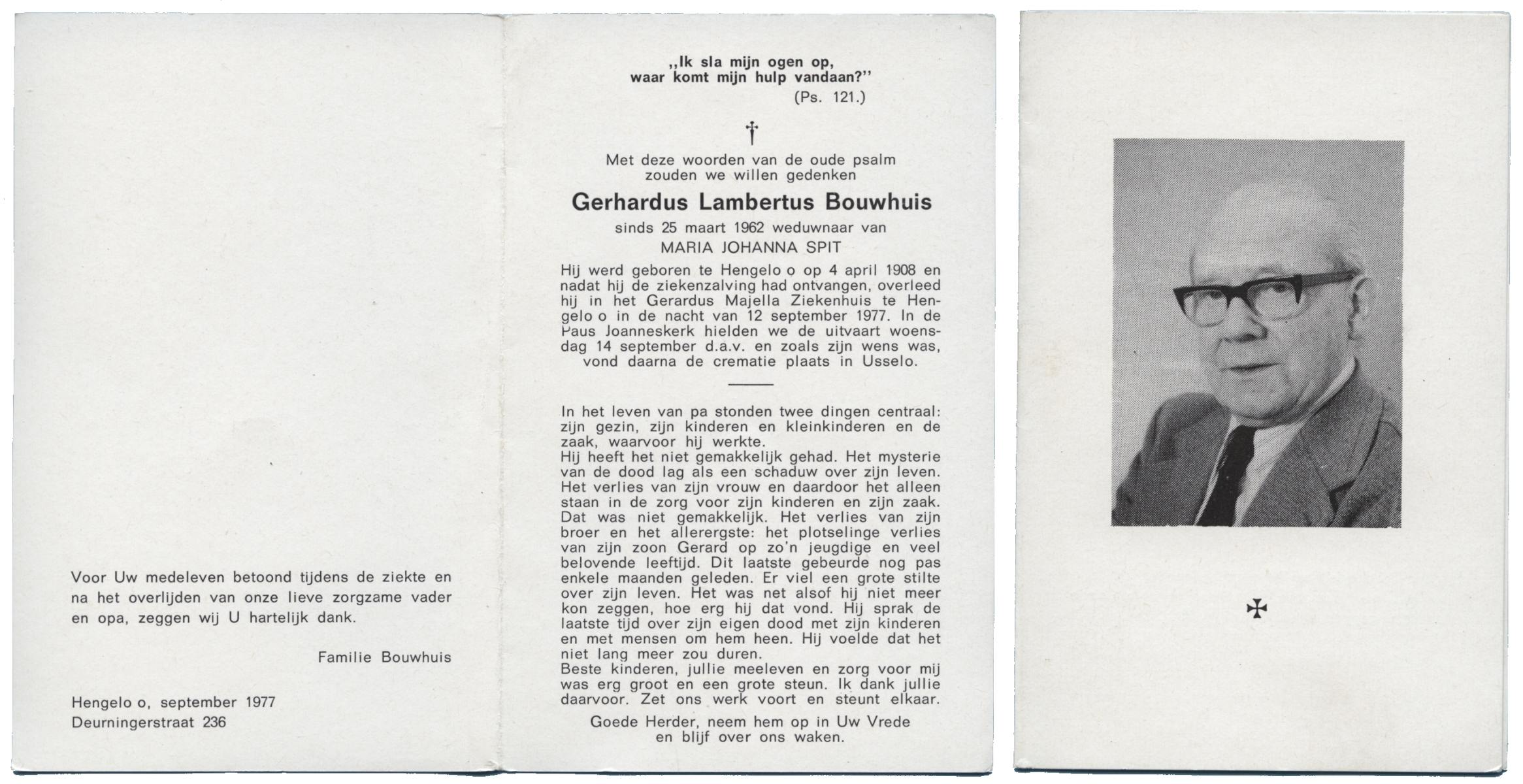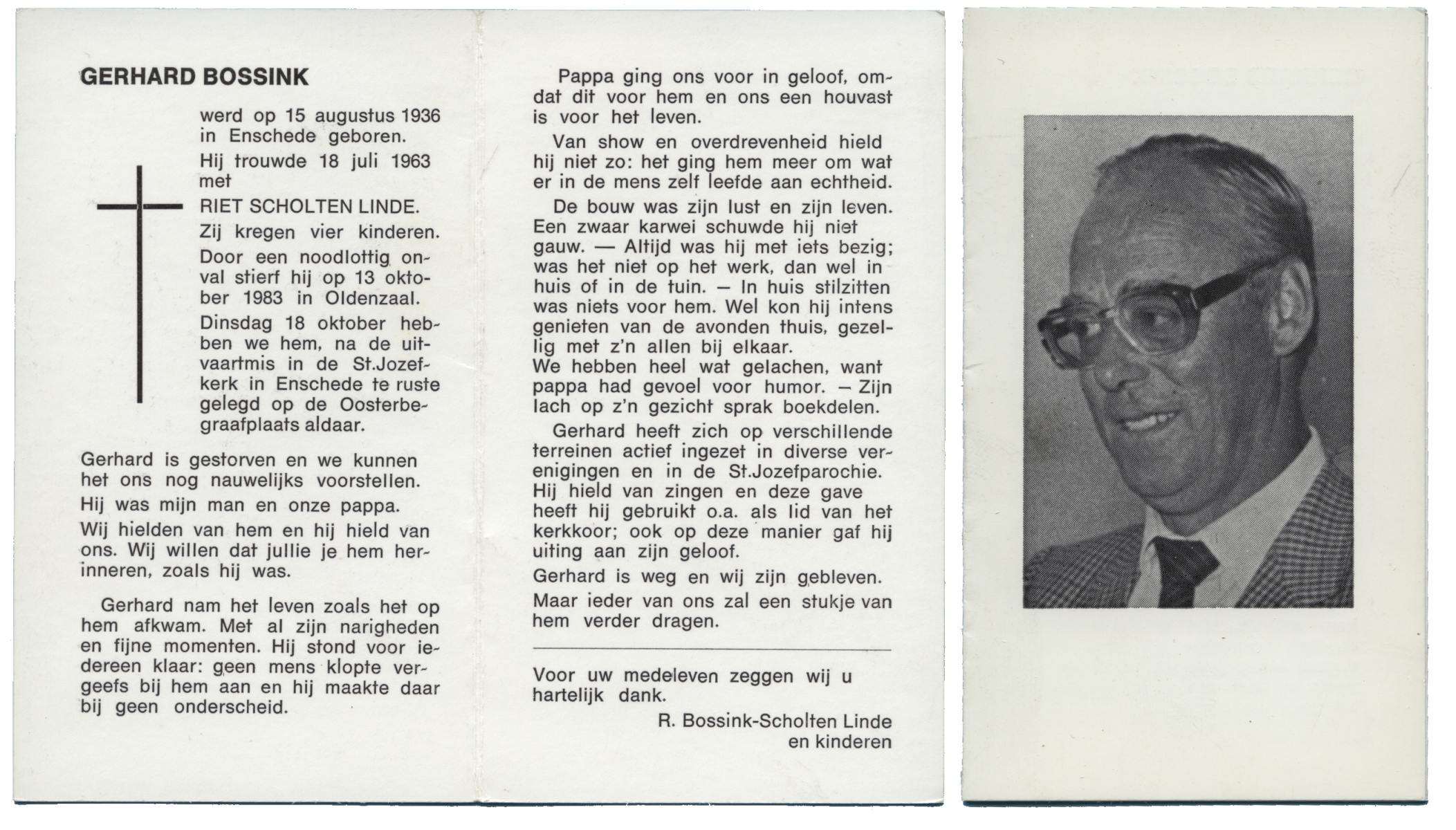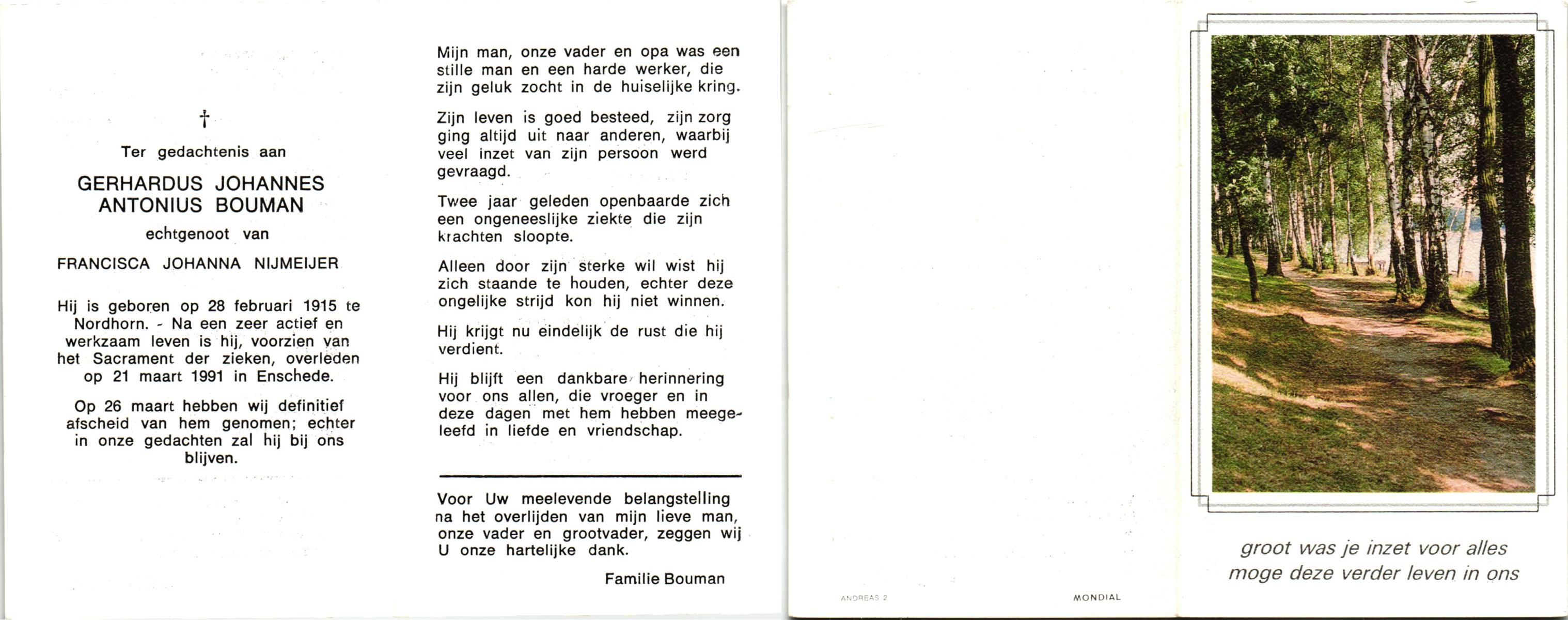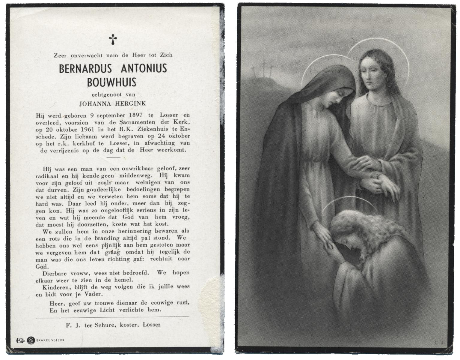 BOOMKAMP, Bernardus Gregorius, geboren op 24-8-1914 te Borne, overleden op 16-9-1977 op 63-jarige leeftijd, begraven op 20-9-1977 te Borne.