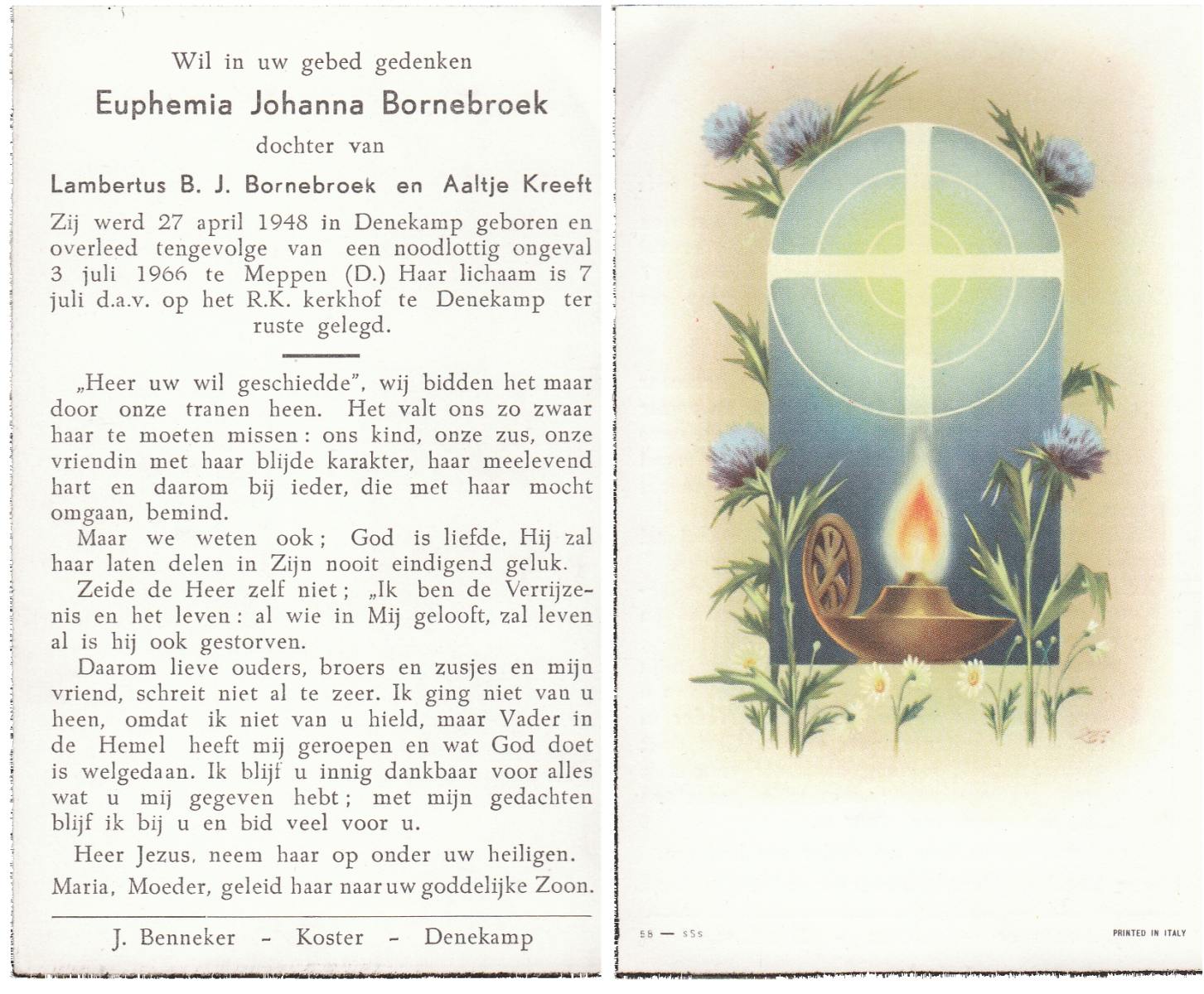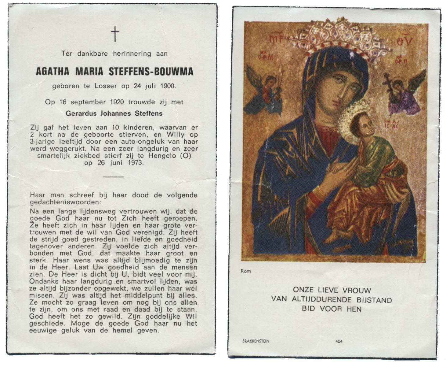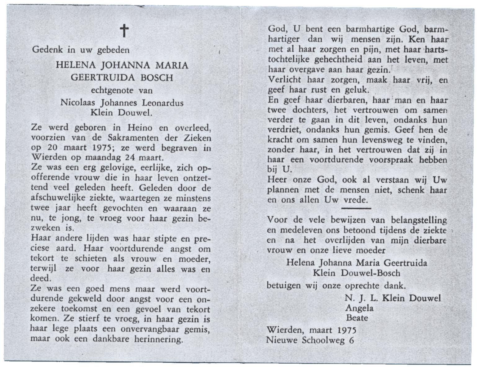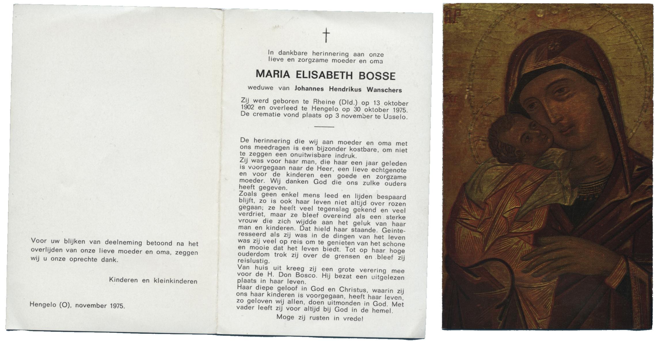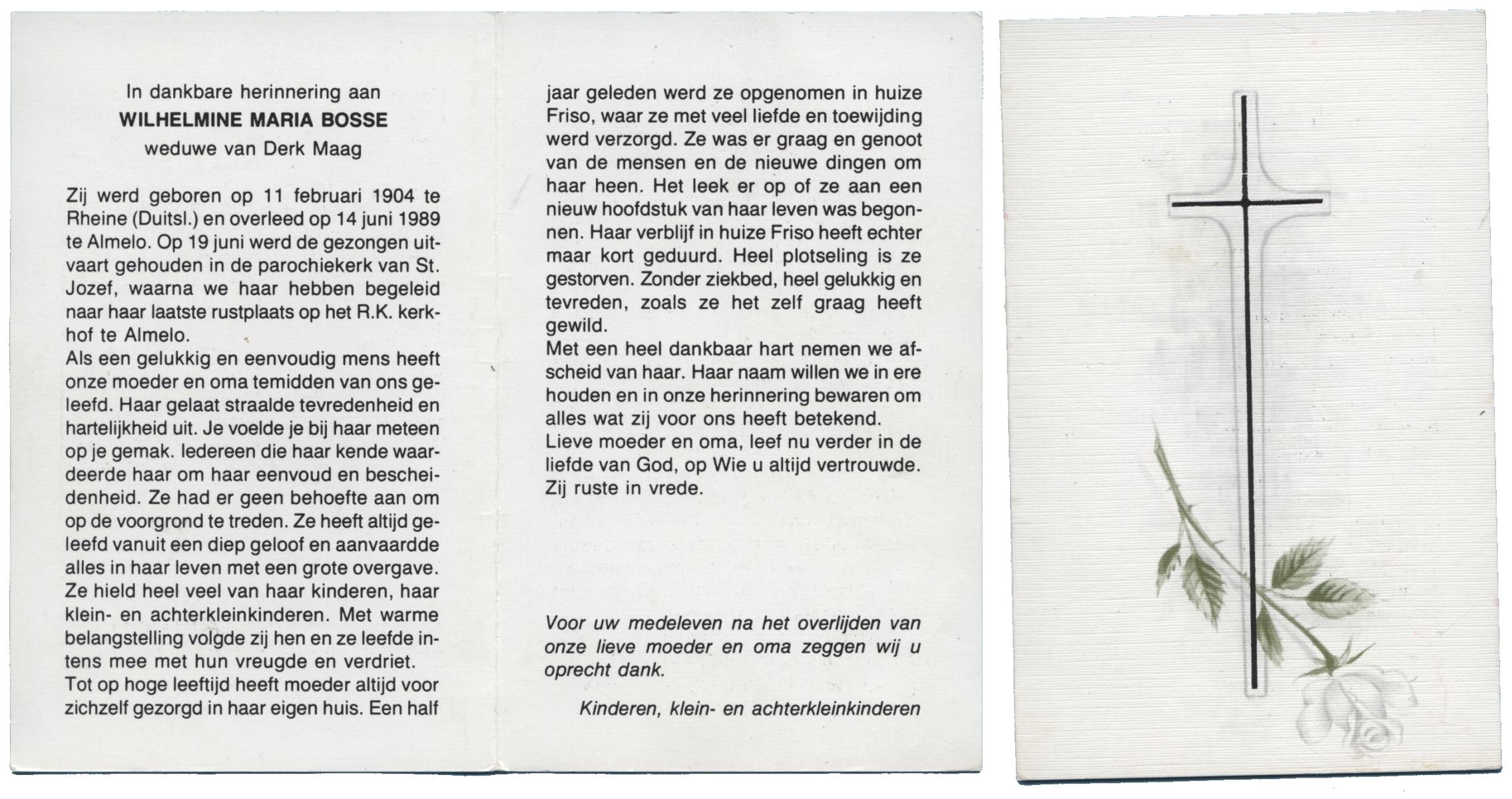 BOOMKAMP, Geertruida Margaretha, geboren op 20-7-1916 te Borne, overleden op 25-7-1970 te Hengelo (Ov.) op 54-jarige leeftijd, begraven op 29-7-1970 te Borne.