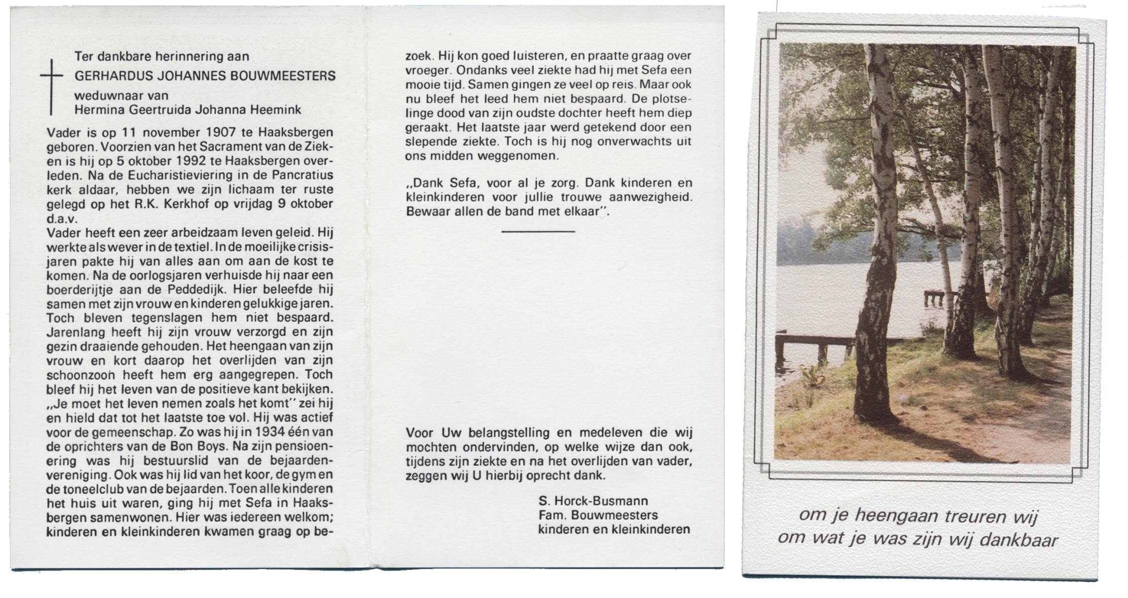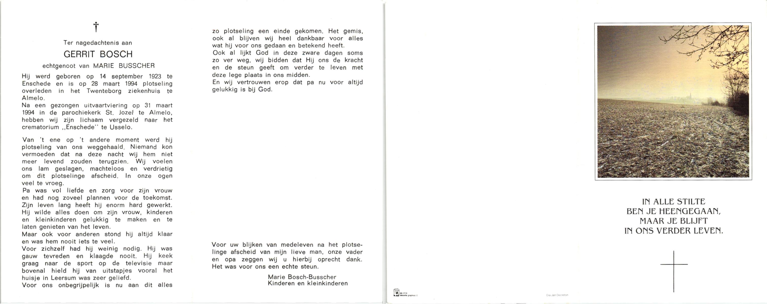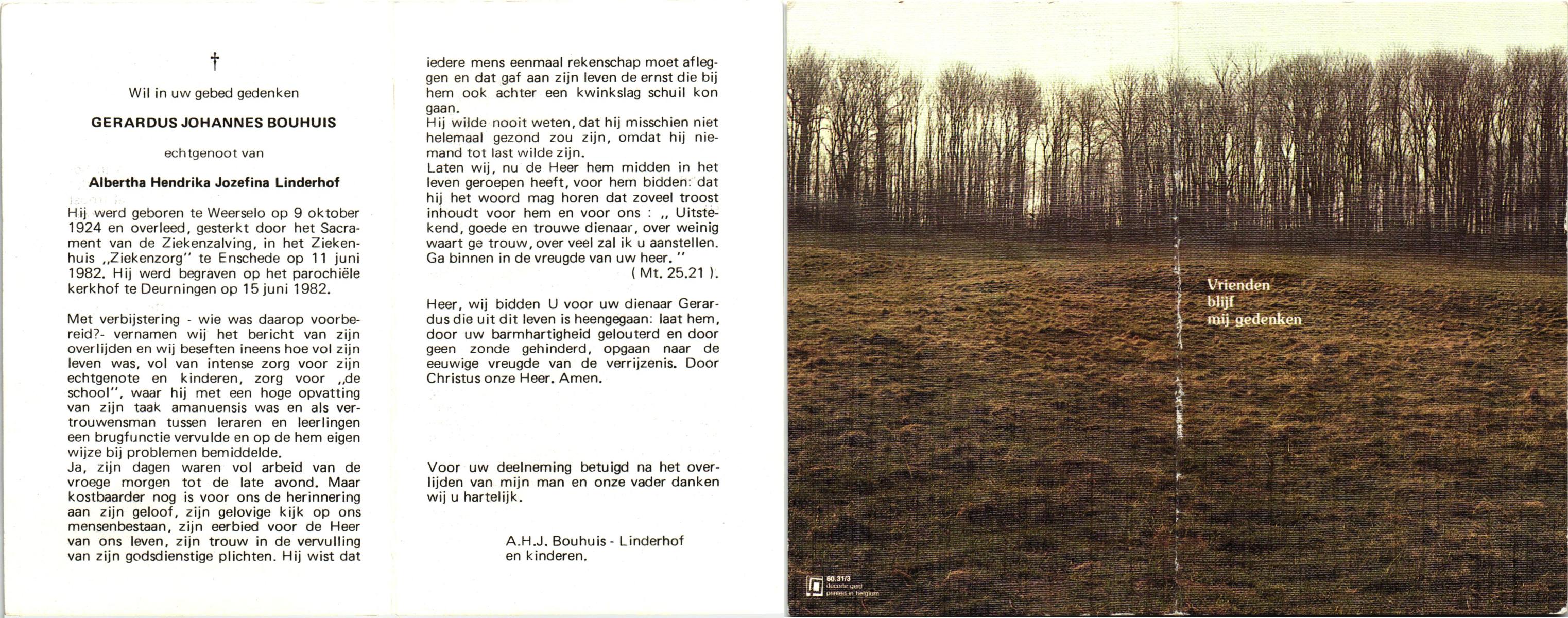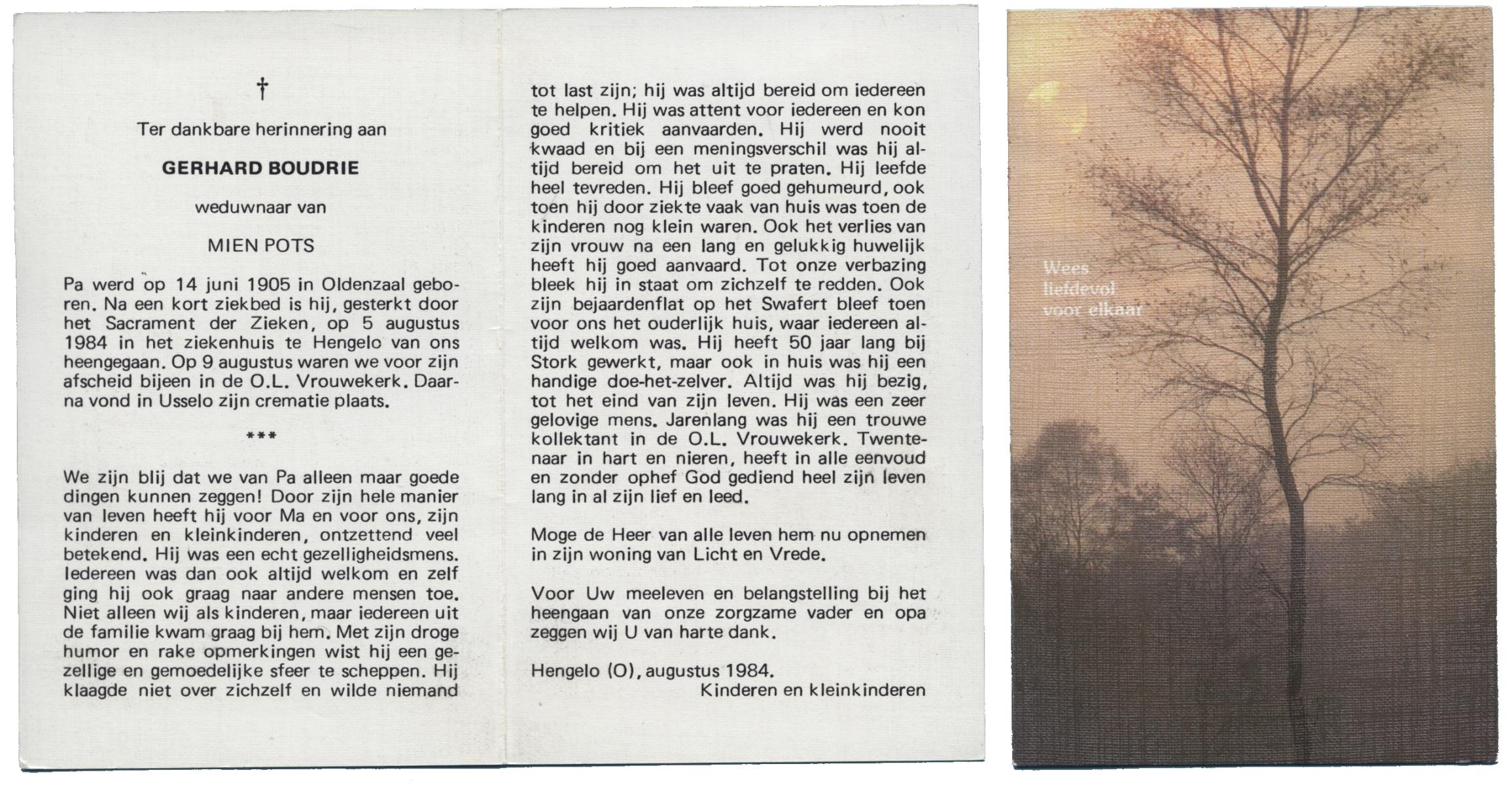 BOOMKAMP, Gerhardus Johannes, geboren op 19-9-1912 te Hertme, overleden op 14-7-1982 te Hengelo (Ov.) op 69-jarige leeftijd, begraven op 19-7-1982 te Borne.