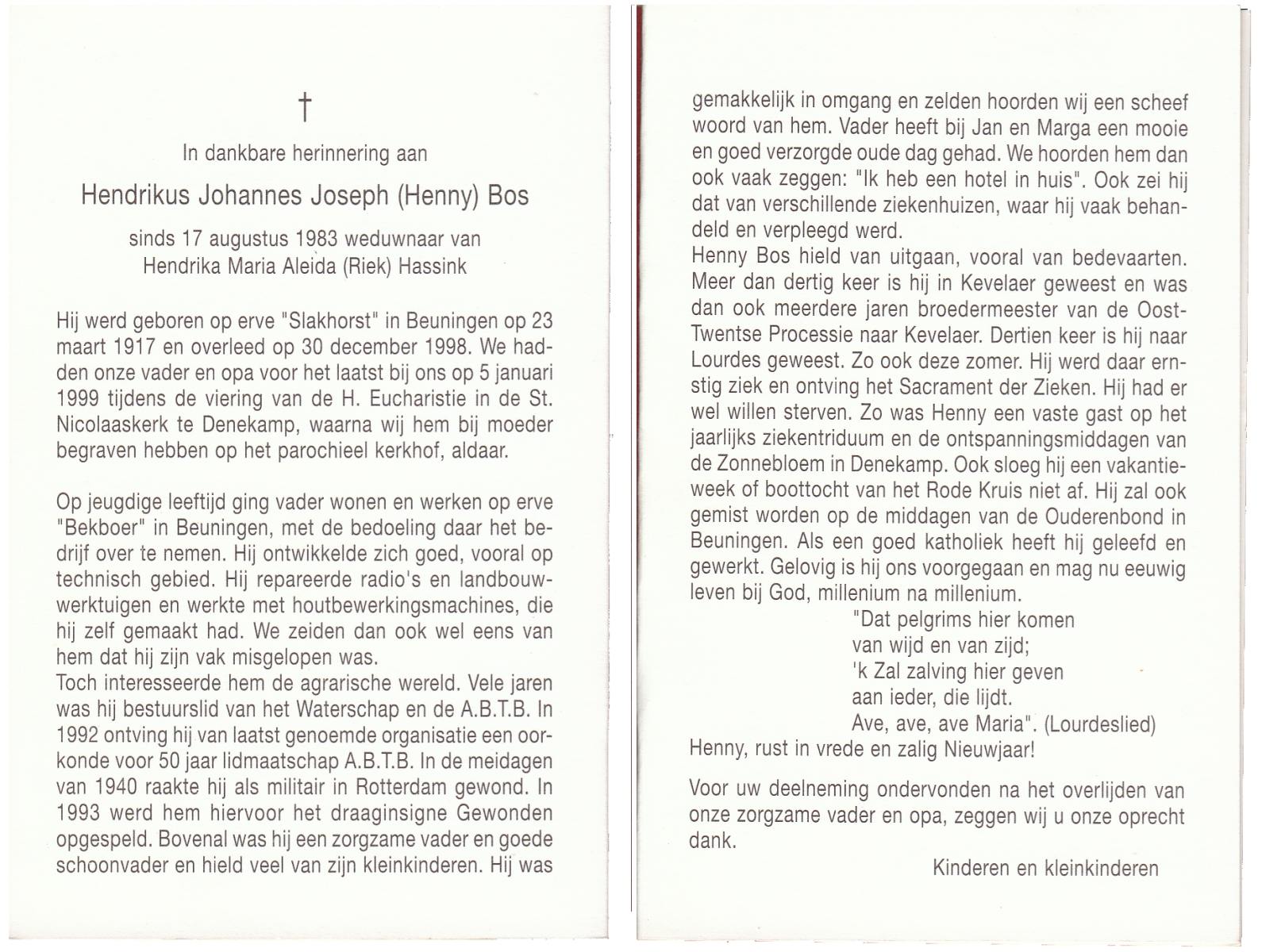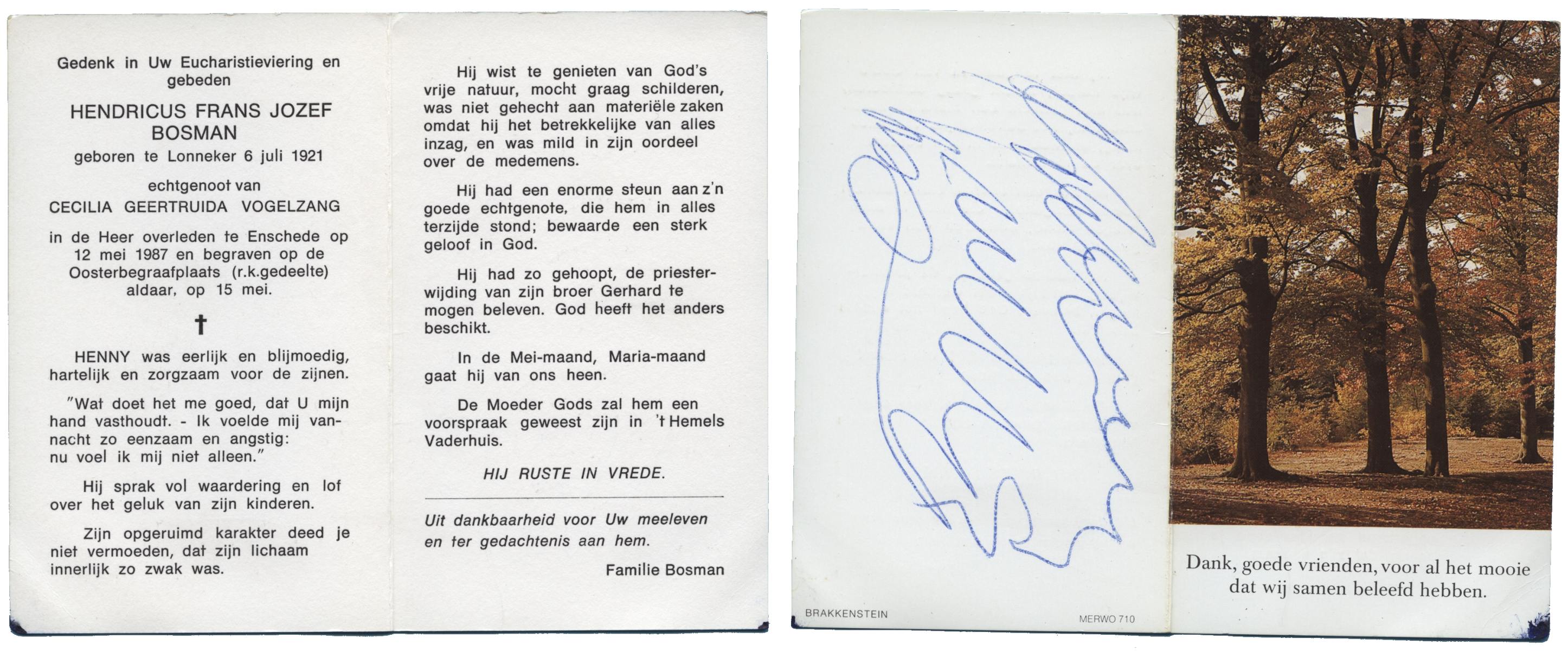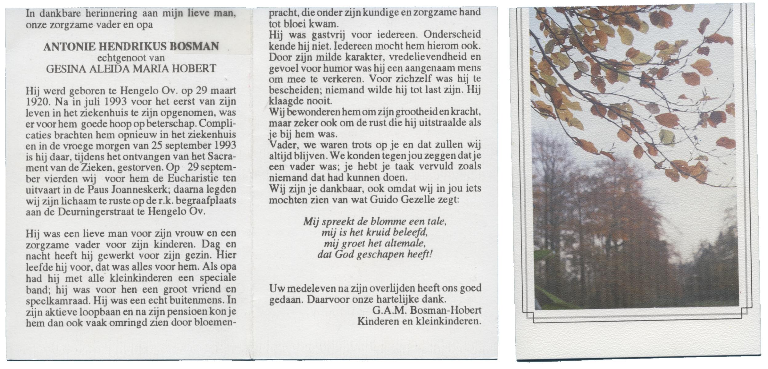 BOOMKAMP, Hendrikus Bernardus (Hendrik), geboren op 5-11-1918 te Saasveld, overleden op 25-6-1990 te Hengelo (Ov.) op 71-jarige leeftijd, begraven op 28-6-1990 te Saasveld.