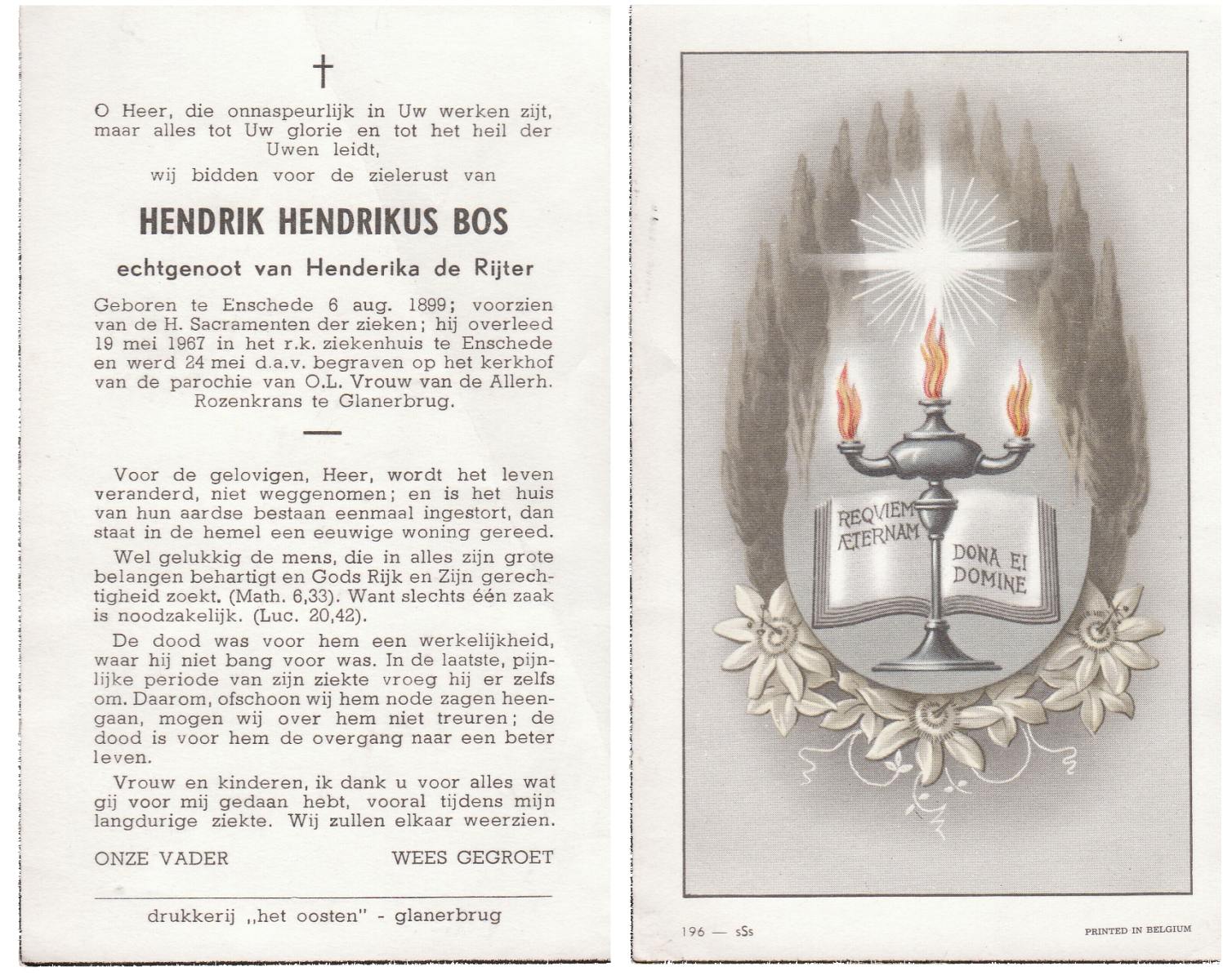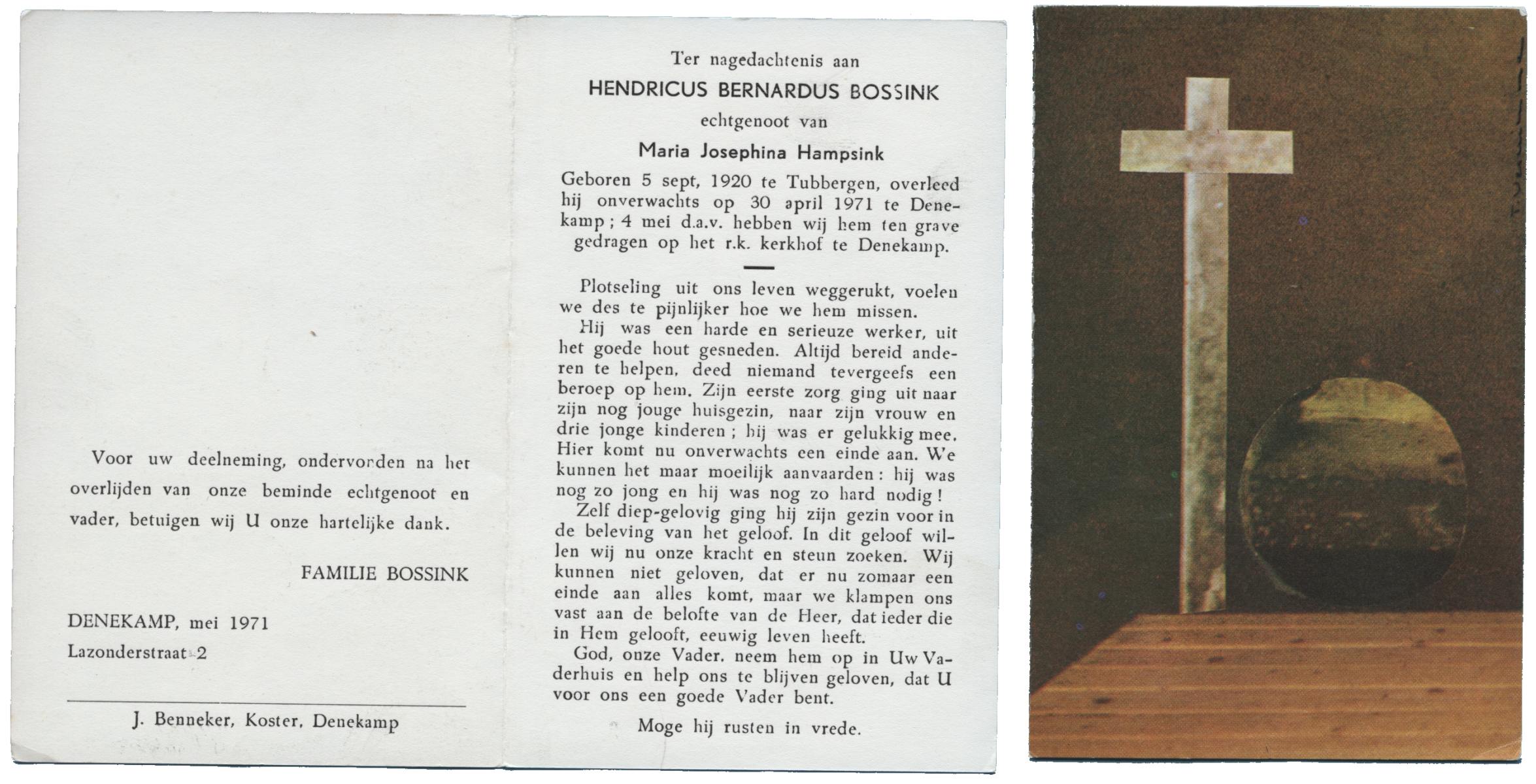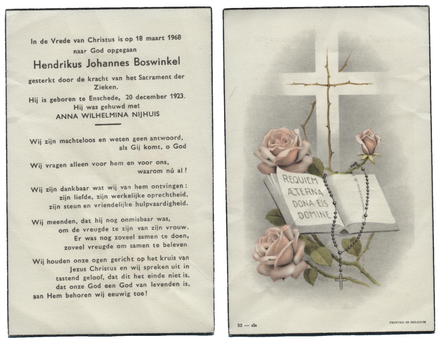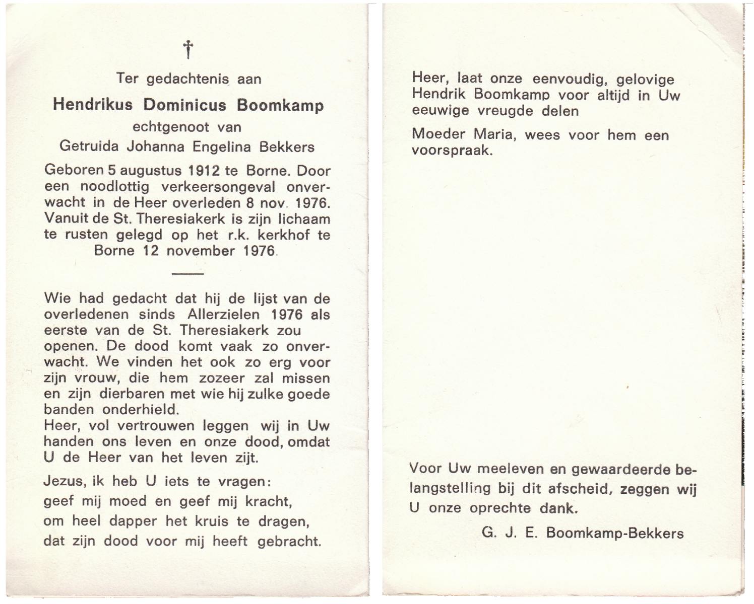BOOMKAMP, Hendrikus Dominicus, geboren op 5-8-1912 te Borne, overleden op 8-11-1976 op 64-jarige leeftijd, begraven op 12-11-1976 te Borne.
