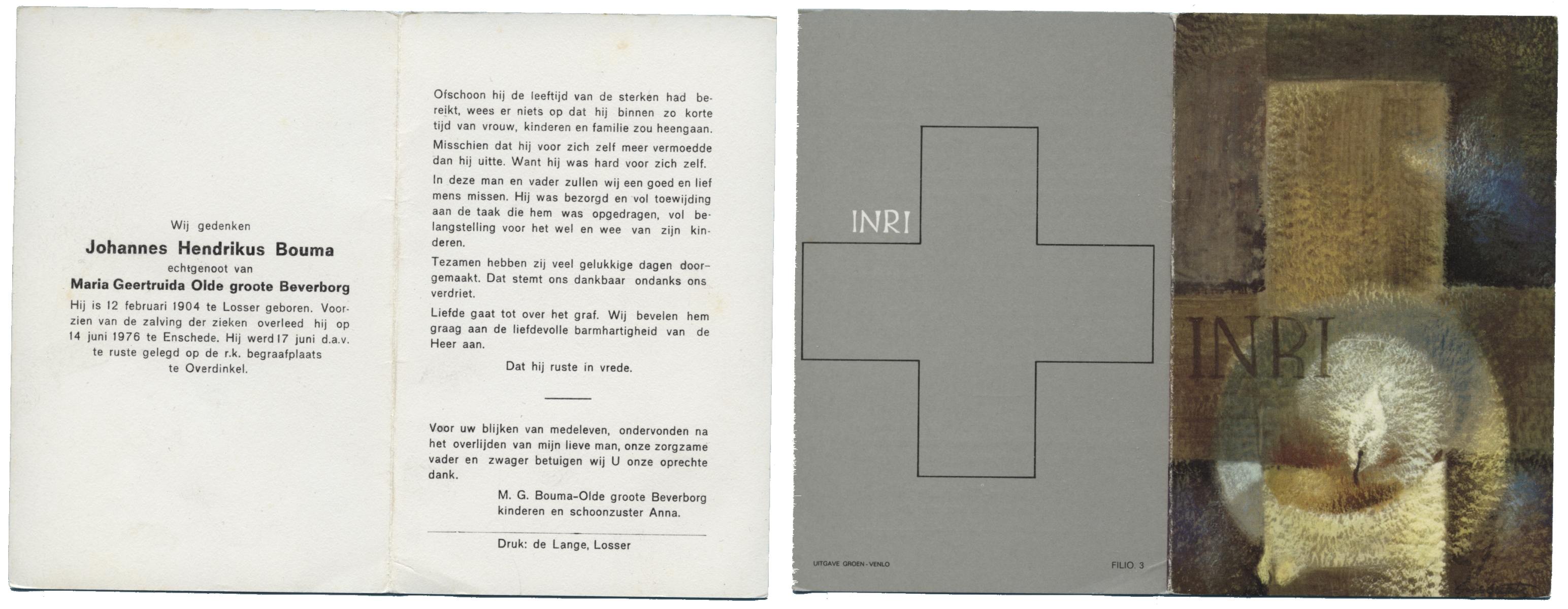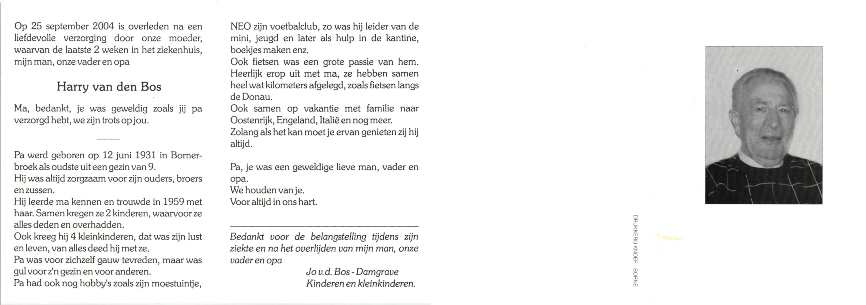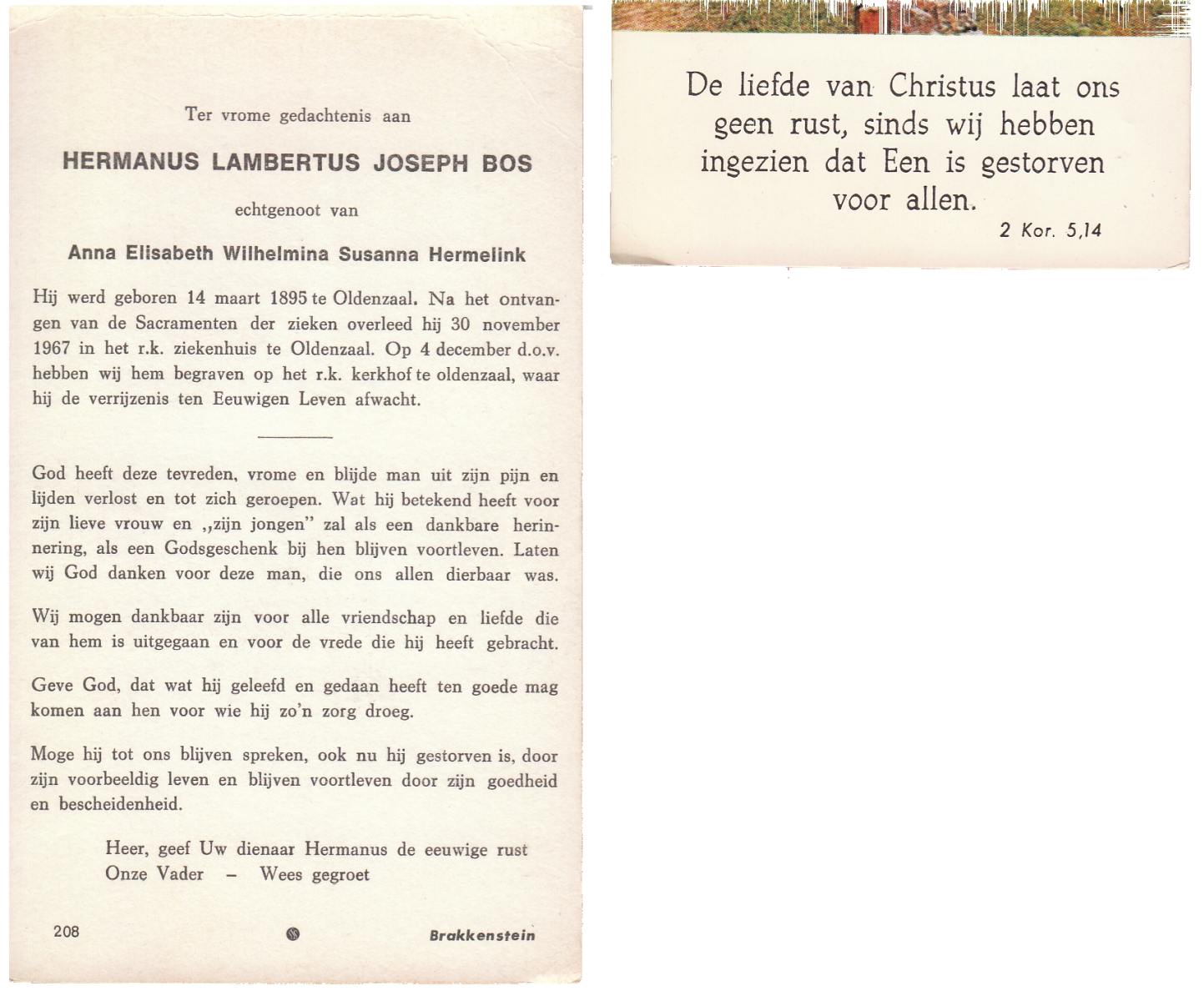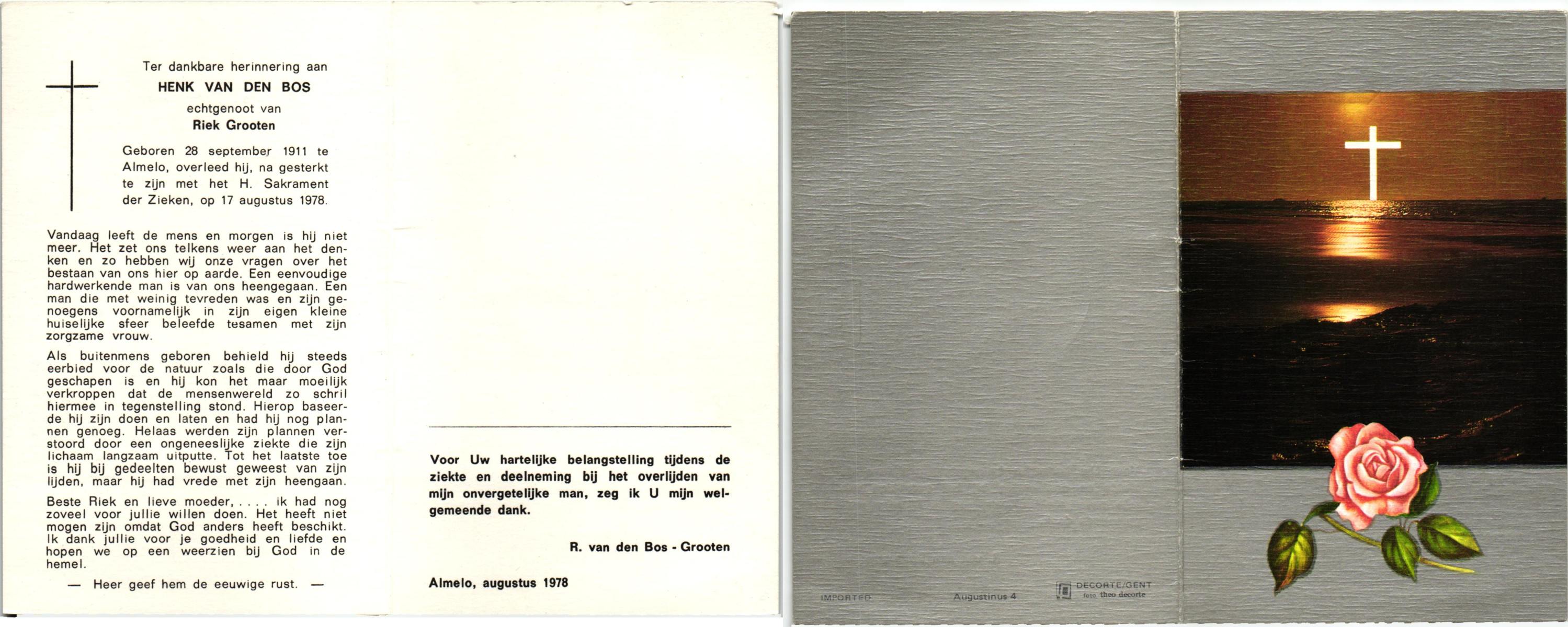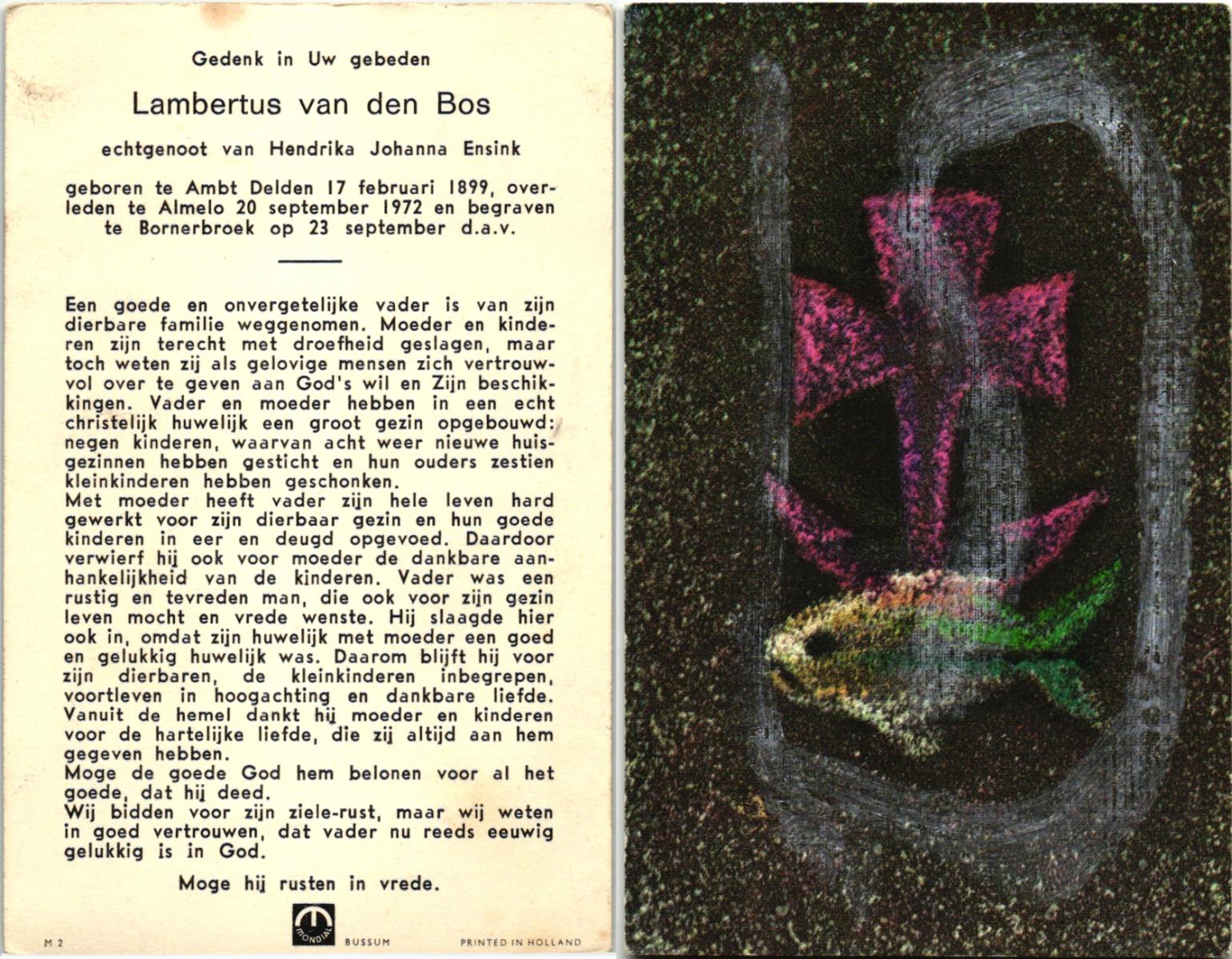 BOOMKAMP, Hendrikus Dominicus, geboren op 5-8-1912 te Borne, overleden op 8-11-1976 op 64-jarige leeftijd, begraven op 12-11-1976 te Borne.
