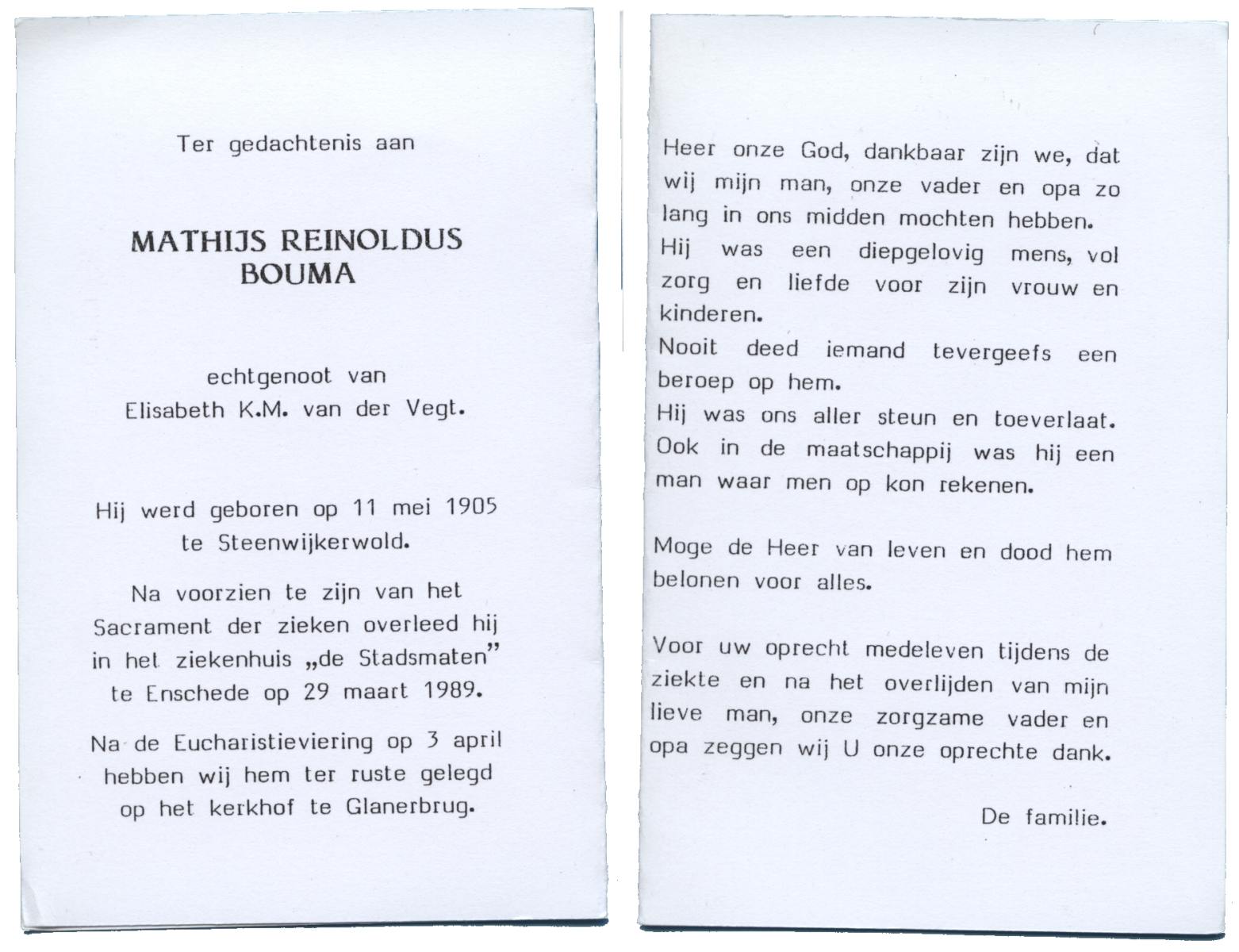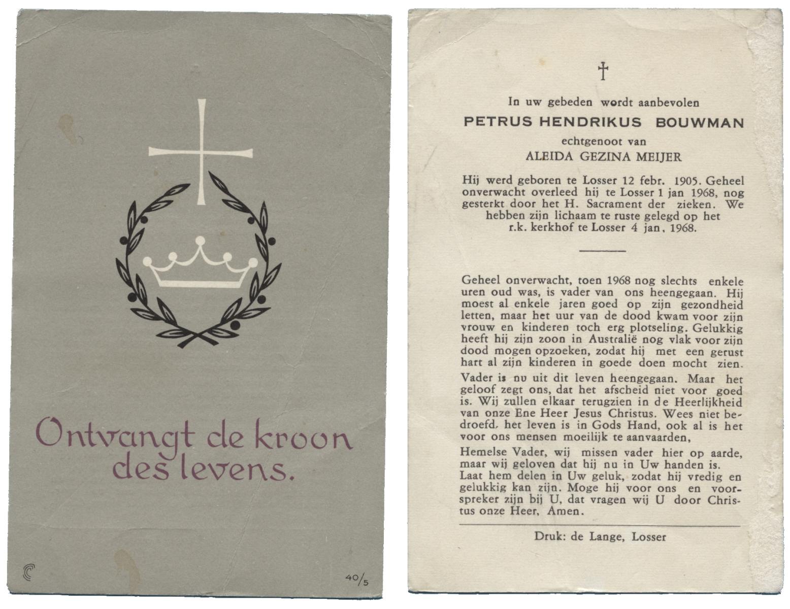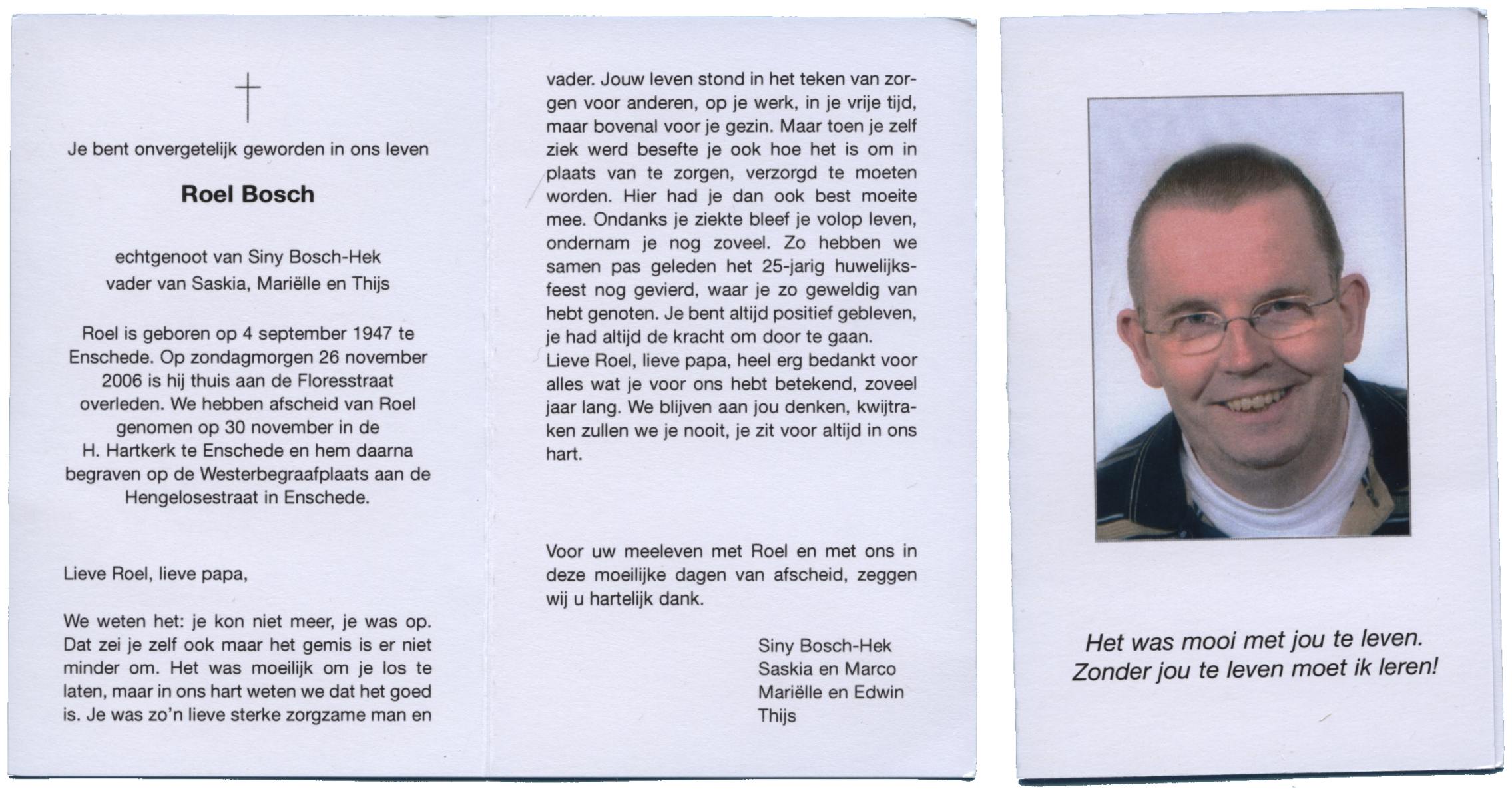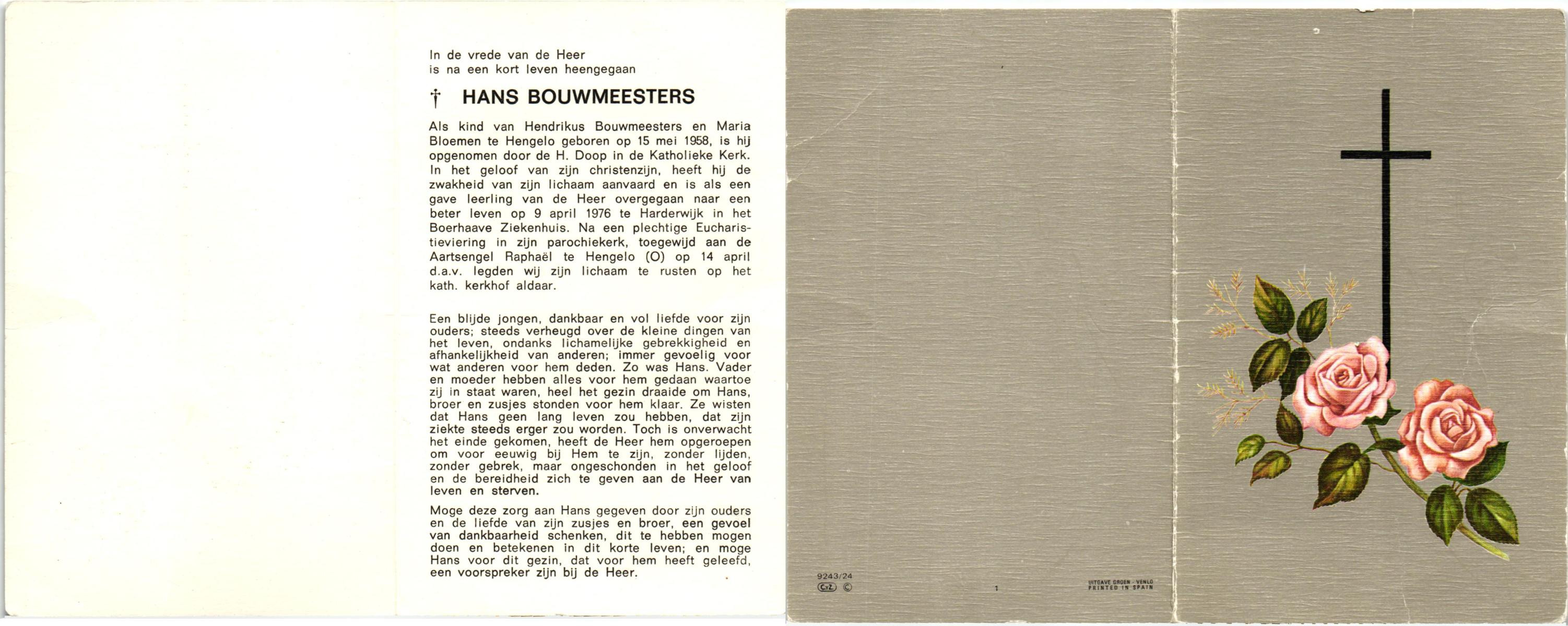 BOOMKAMP, Hendrikus Dominicus, geboren op 5-8-1912 te Borne, overleden op 8-11-1976 op 64-jarige leeftijd, begraven op 12-11-1976 te Borne.