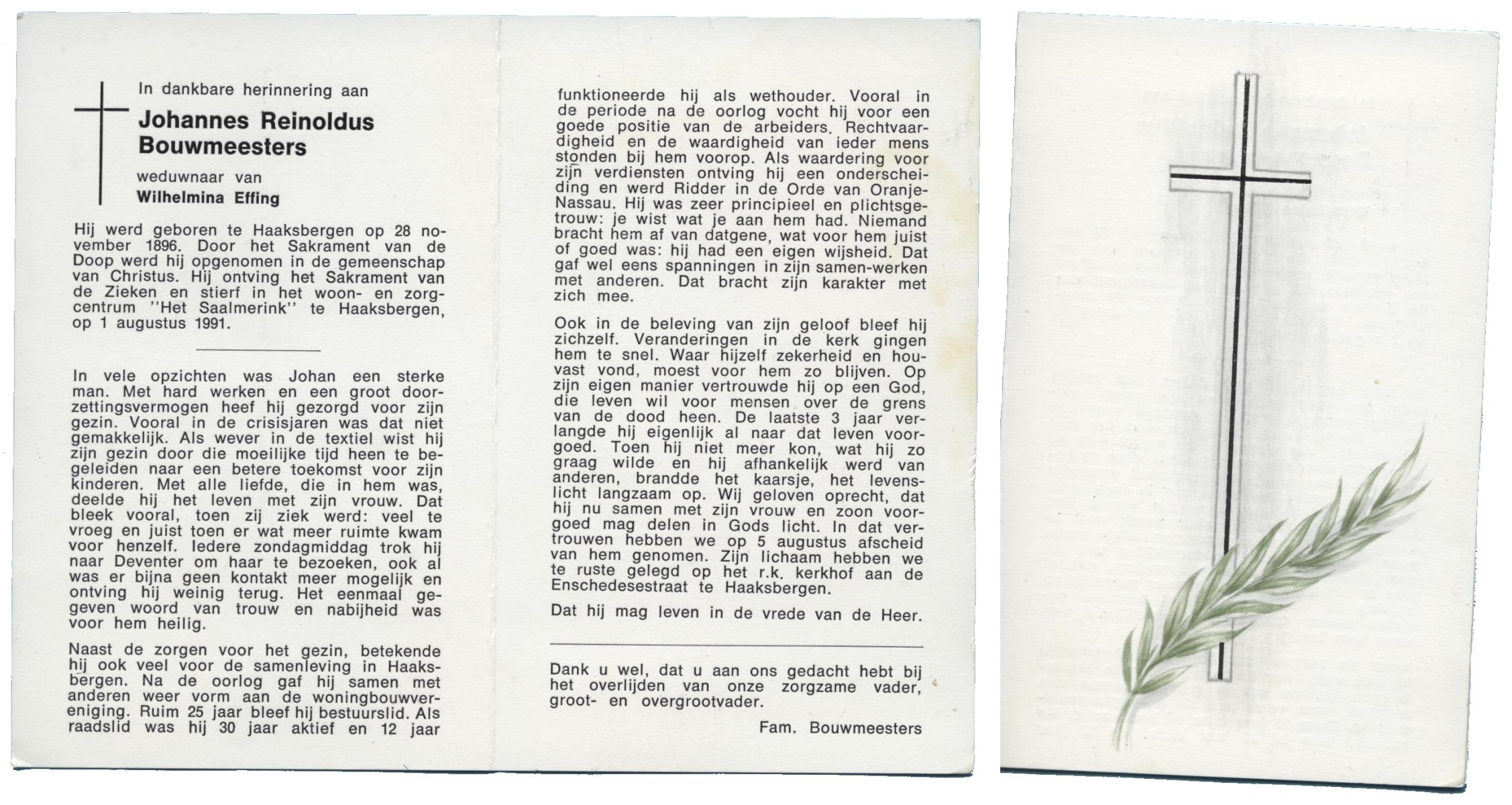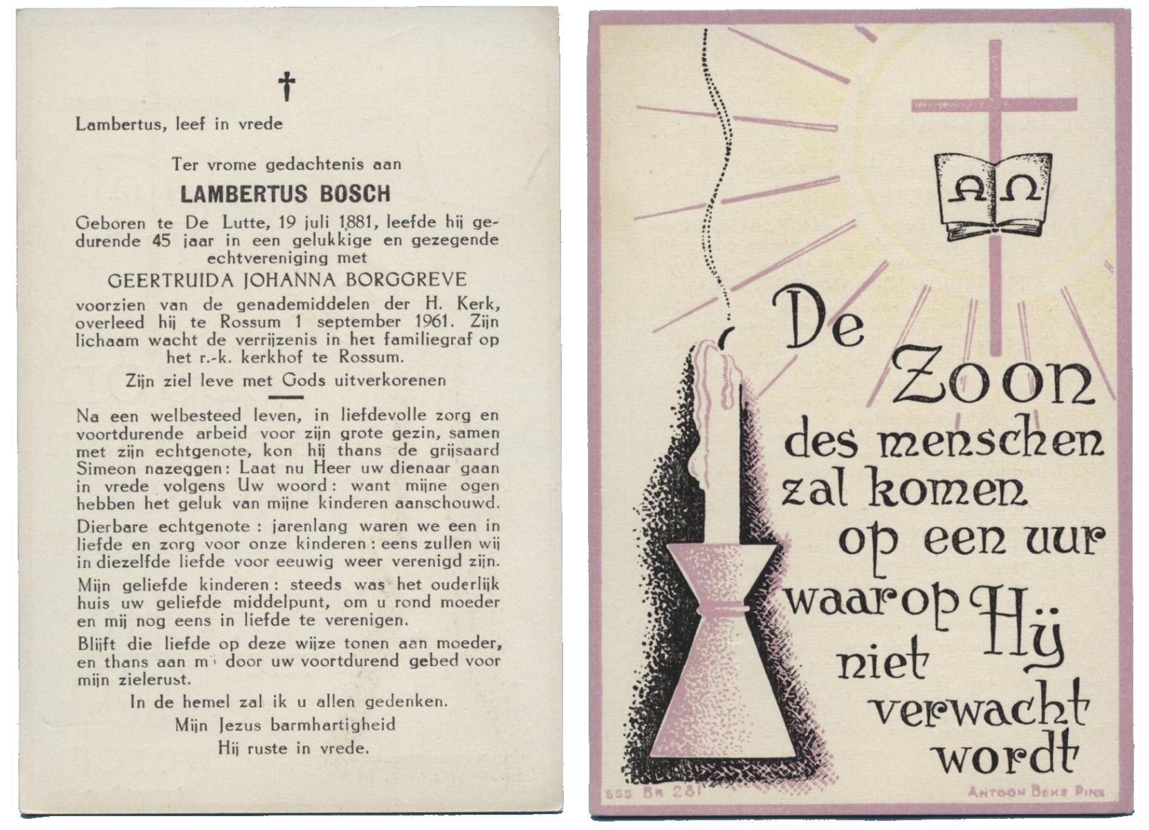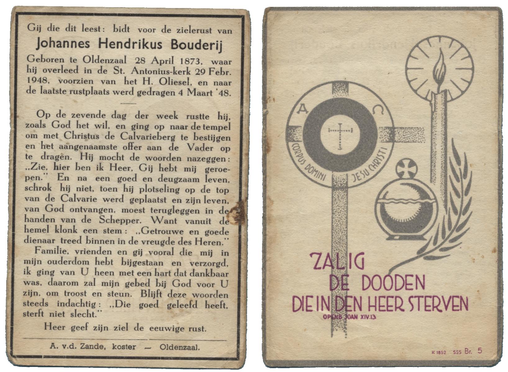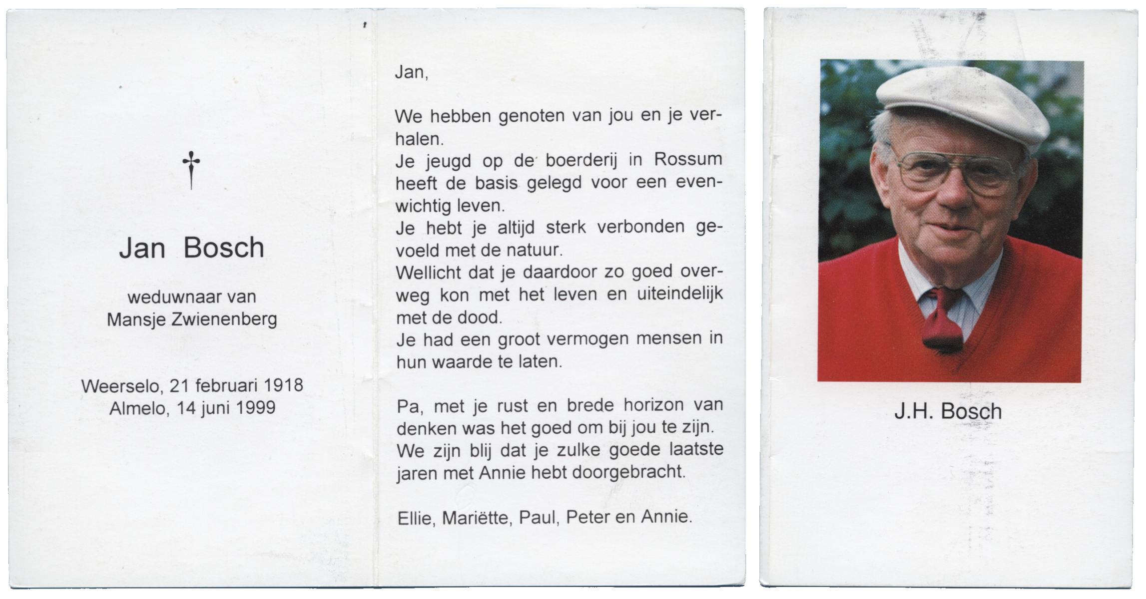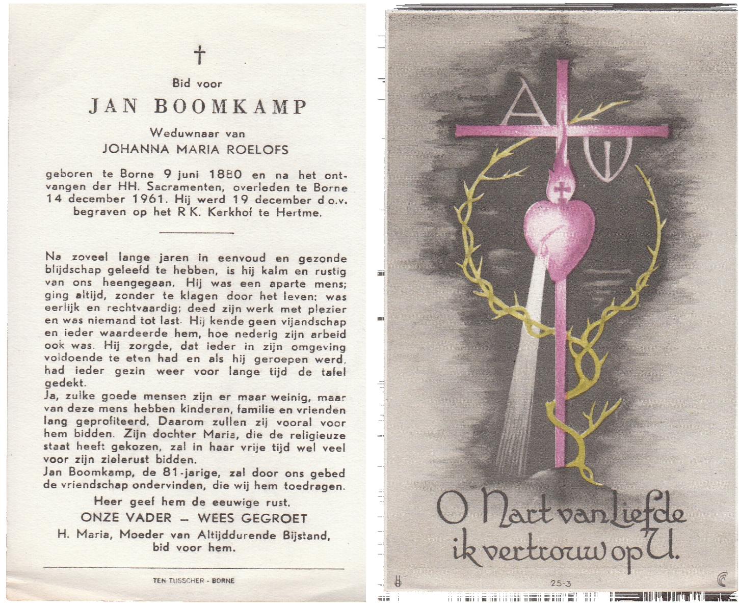 BOOMKAMP, Jan, geboren op 09-06-1880 te Borne, overleden op 14-12-1961 te Borne op 81-jarige leeftijd, begraven op 19-12-1961 te Borne.