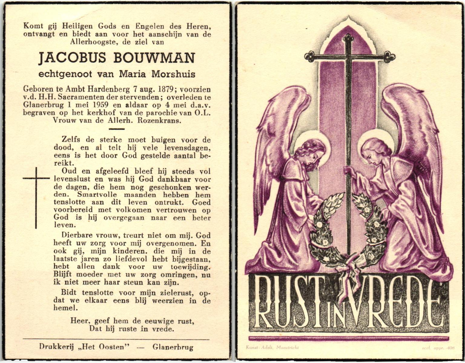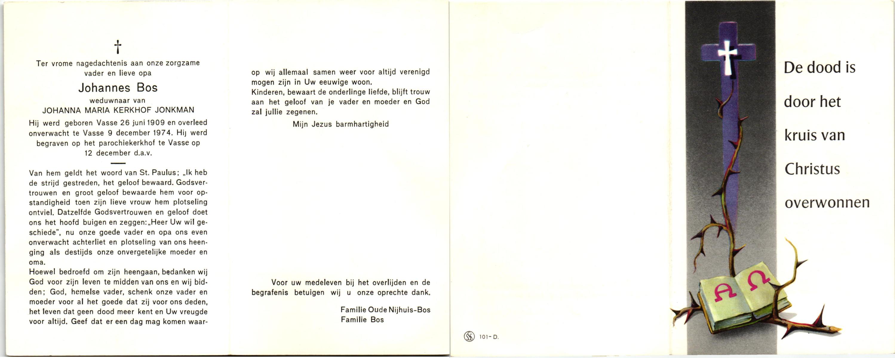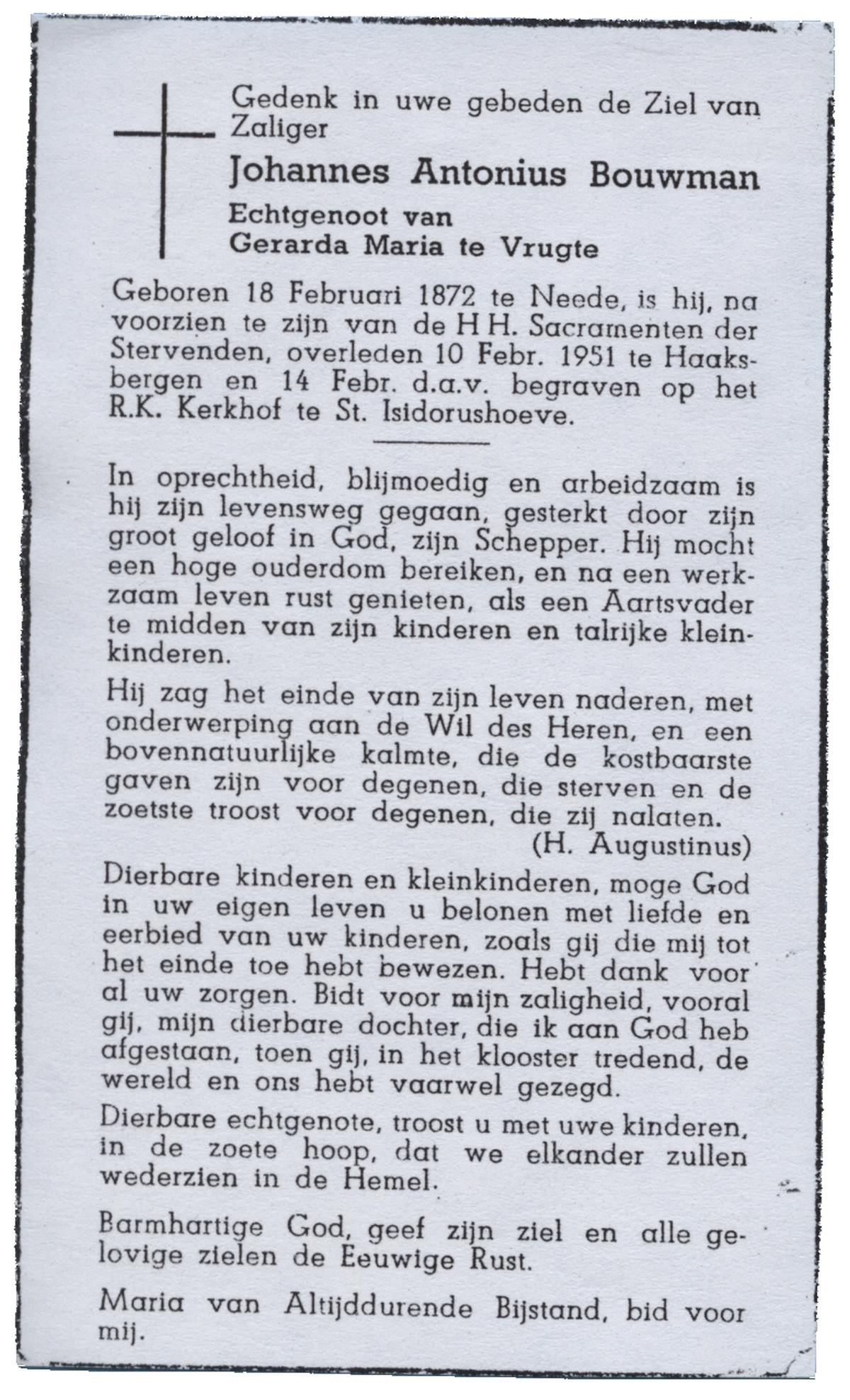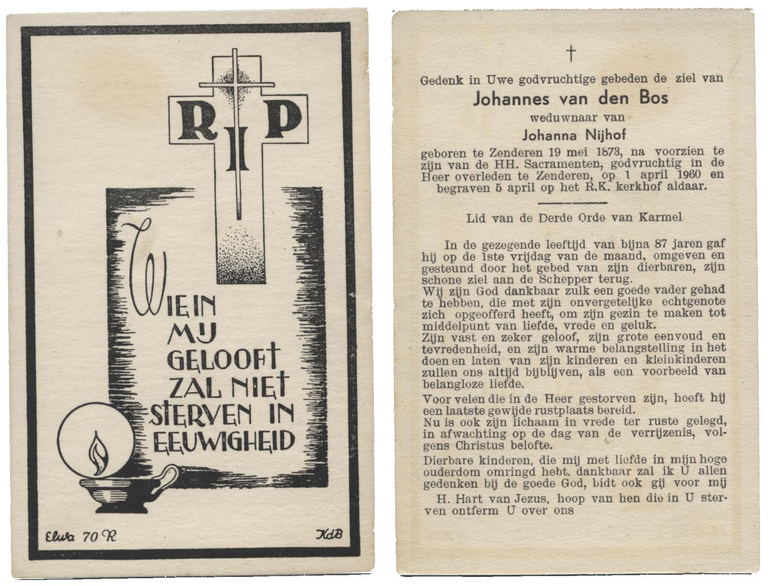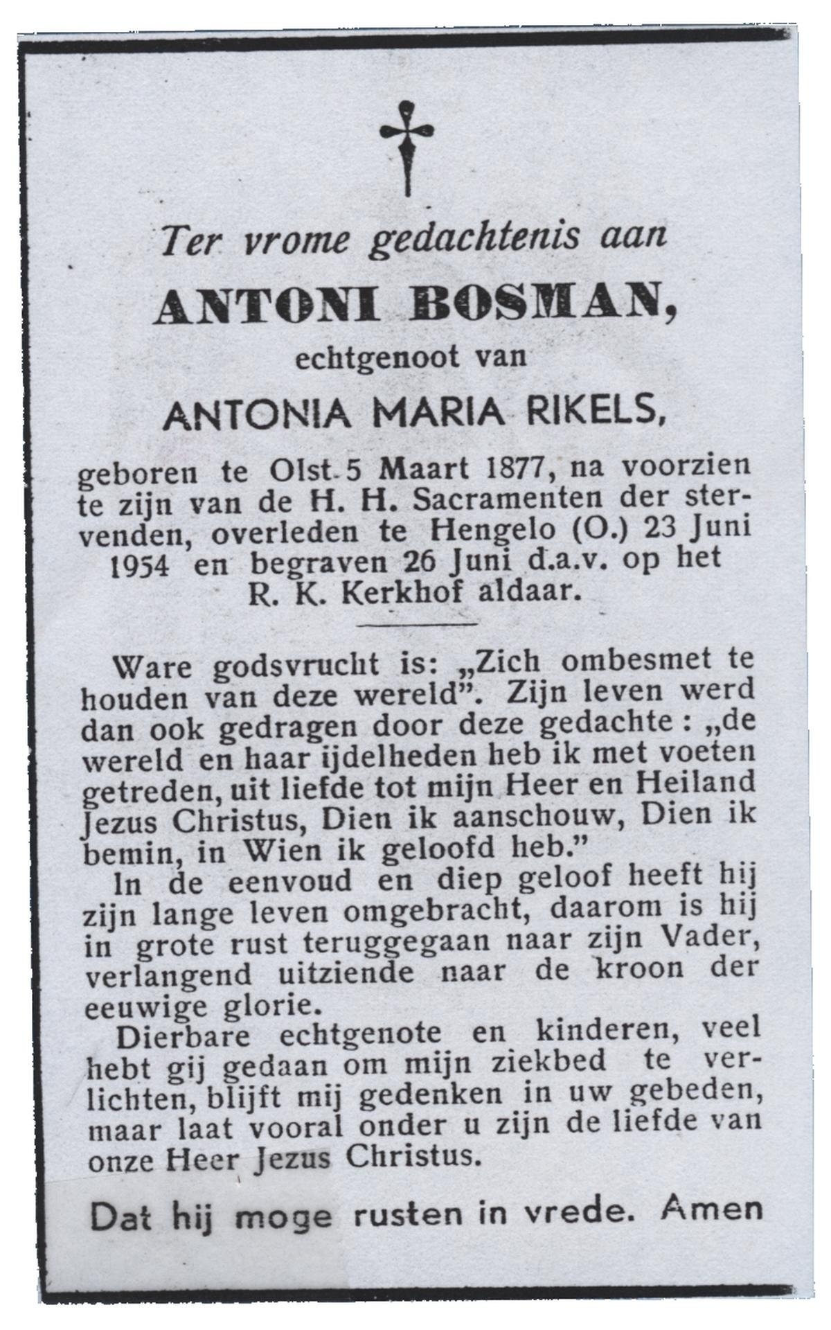 BOOMKAMP, Jan, geboren op 09-06-1880 te Borne, overleden op 14-12-1961 te Borne op 81-jarige leeftijd, begraven op 19-12-1961 te Borne.