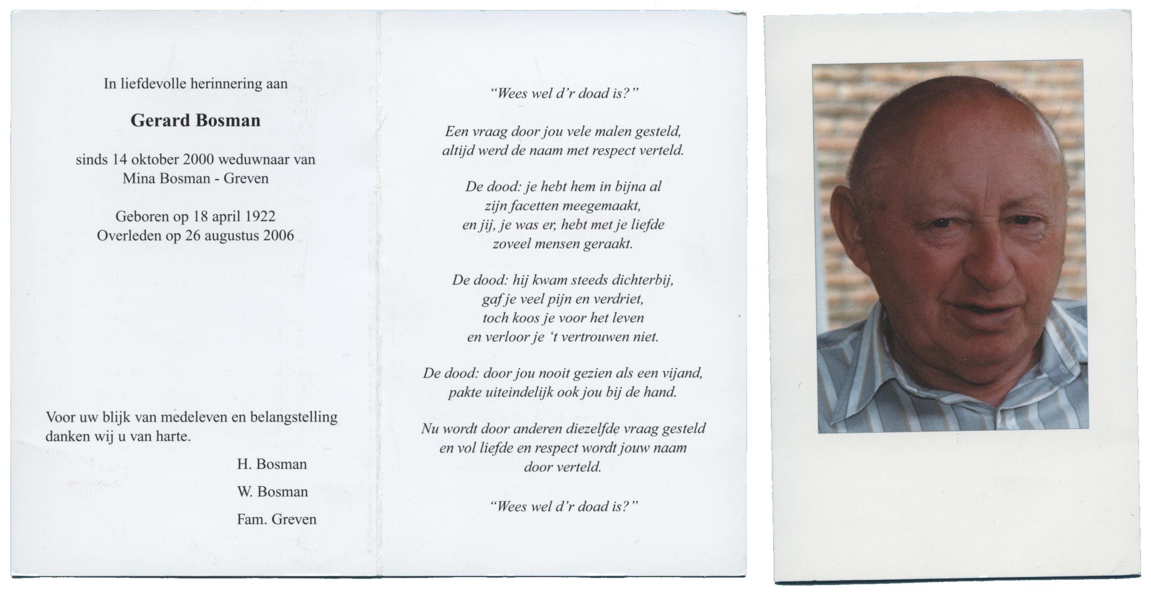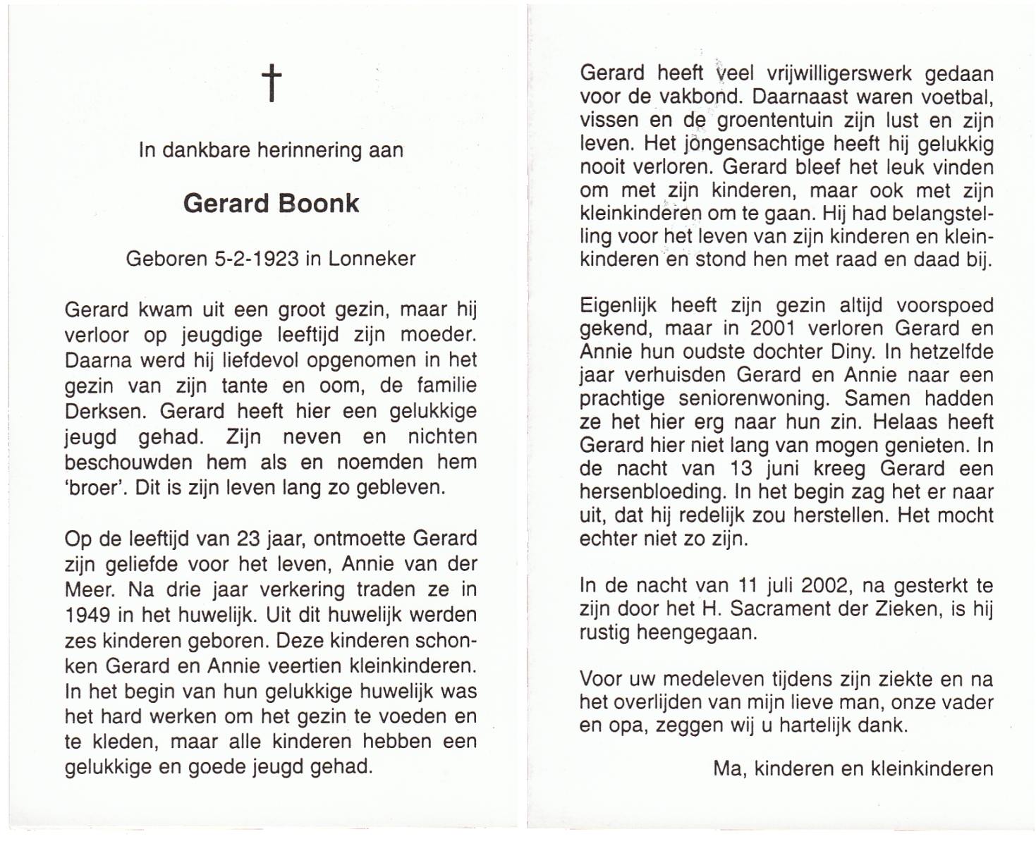 BOONK, Gerard, geboren op 5-2-1923 te LOnneker, overleden op 11-7-2002 op 79-jarige leeftijd.