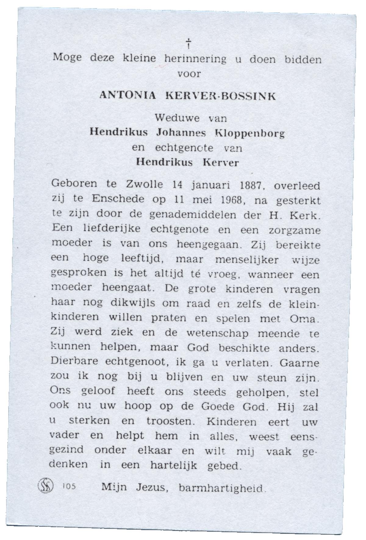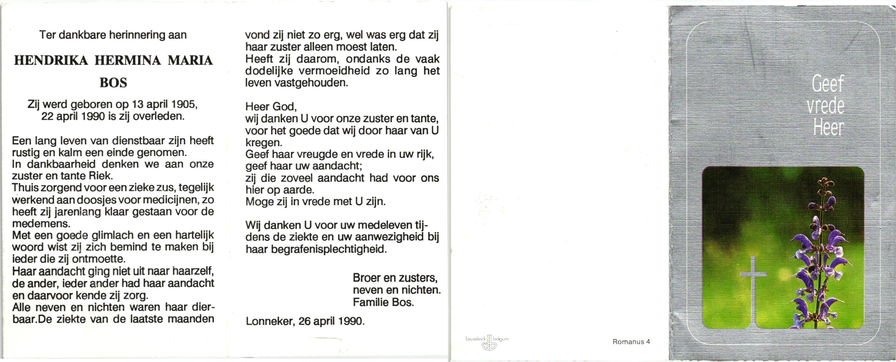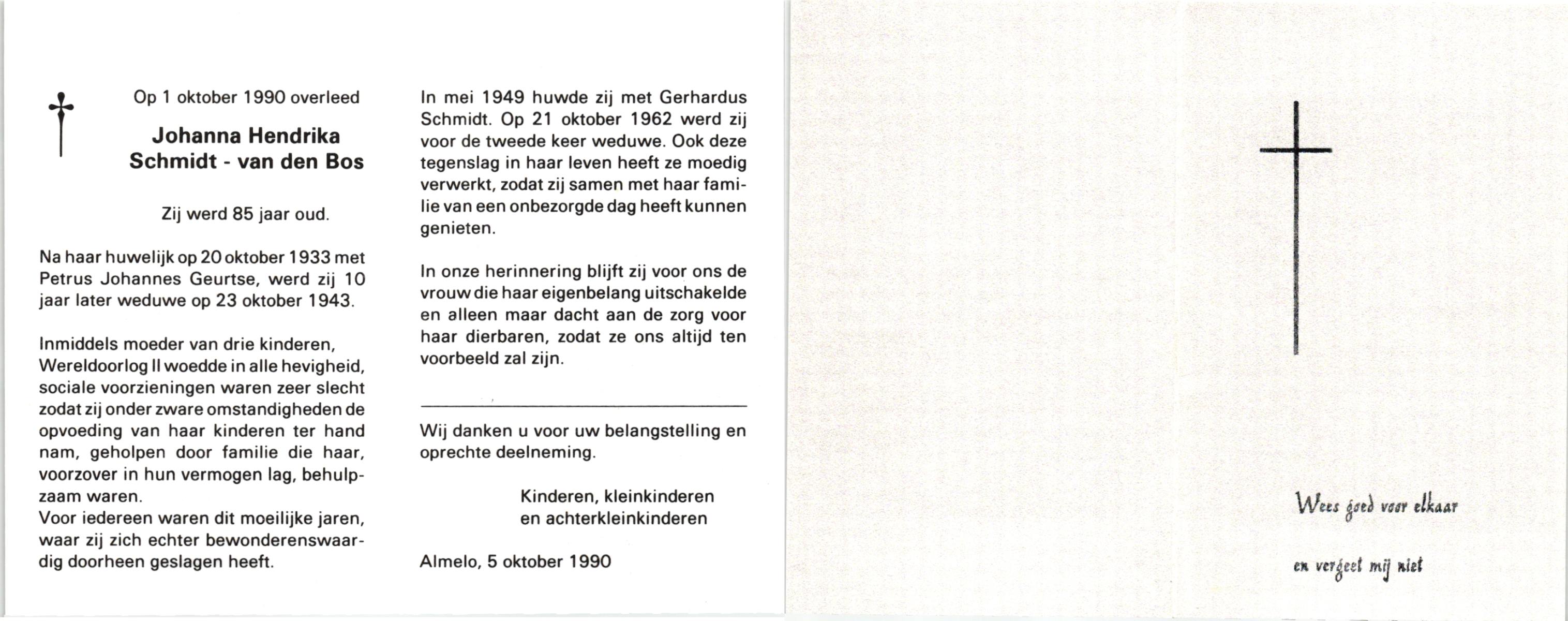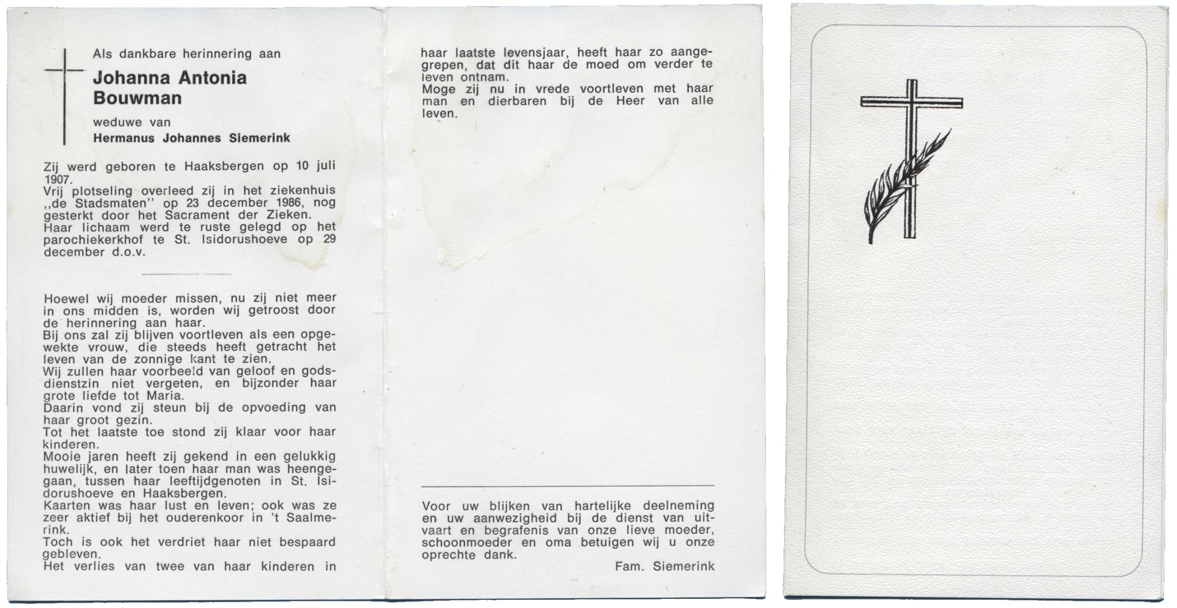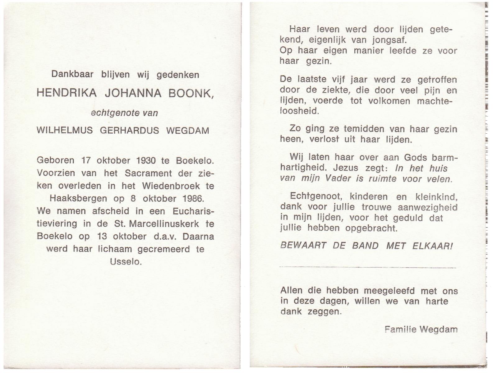 BOONK, Hendrika Johanna, geboren op 17-10-1930 te Boekelo, overleden op 8-10-1986 te Haaksbergen op 55-jarige leeftijd, gecremeerd op 13-10-1986 te Usselo.