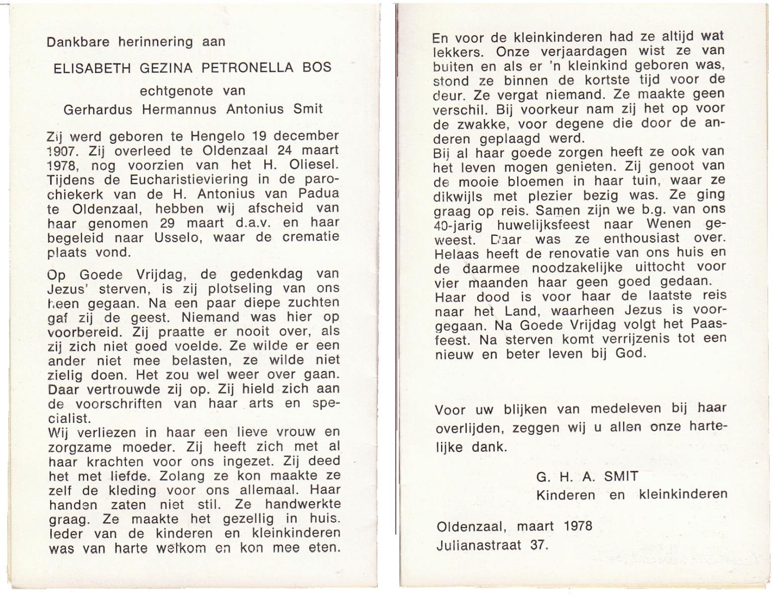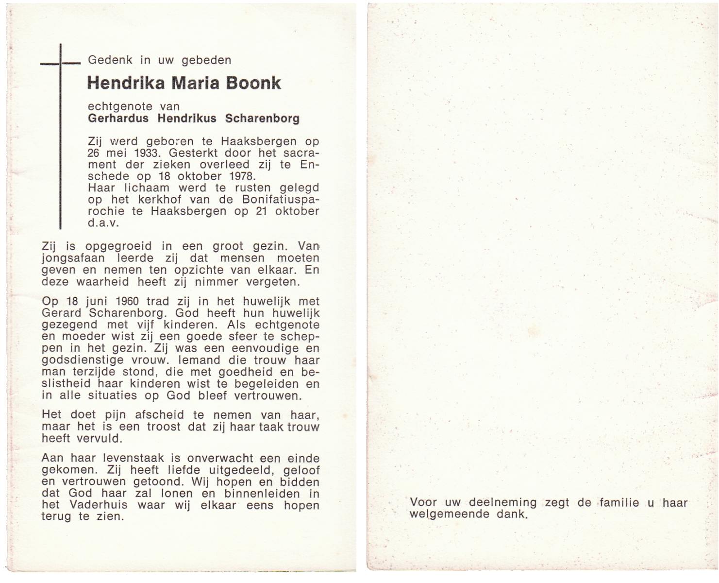 BOONK, Hendrika Maria, geboren op 26-5-1933 te Haaksbergen, overleden op 18-10-1978 te Enschede op 45-jarige leeftijd, begraven op 21-10-1978 te Enschede.