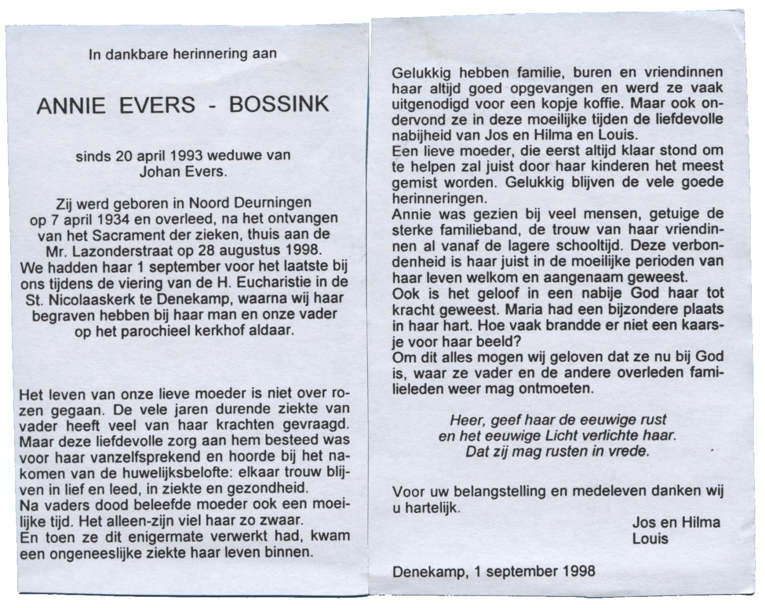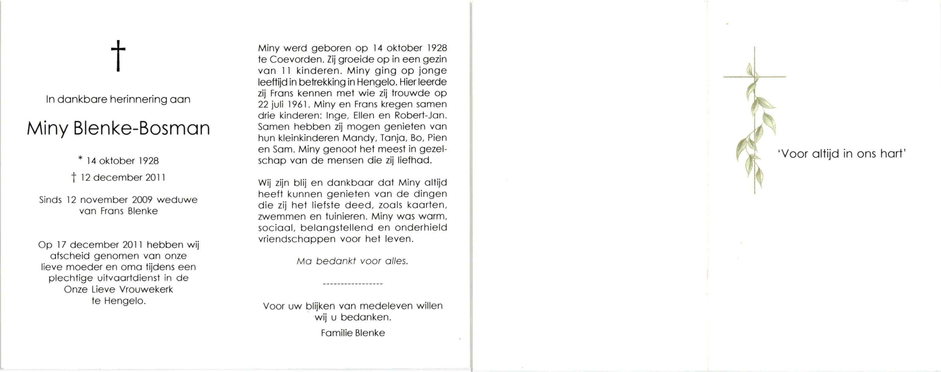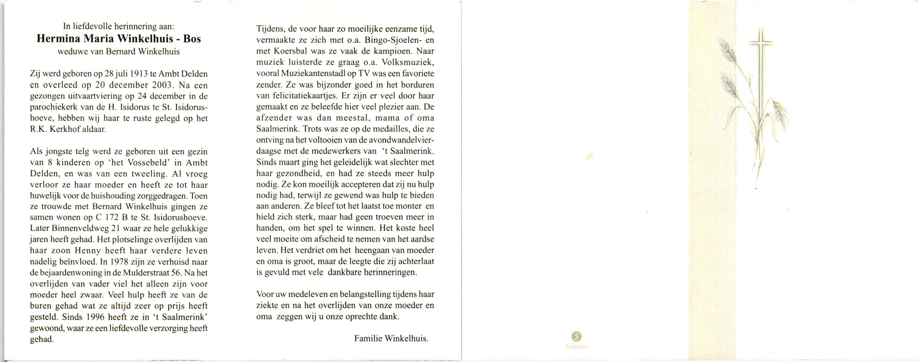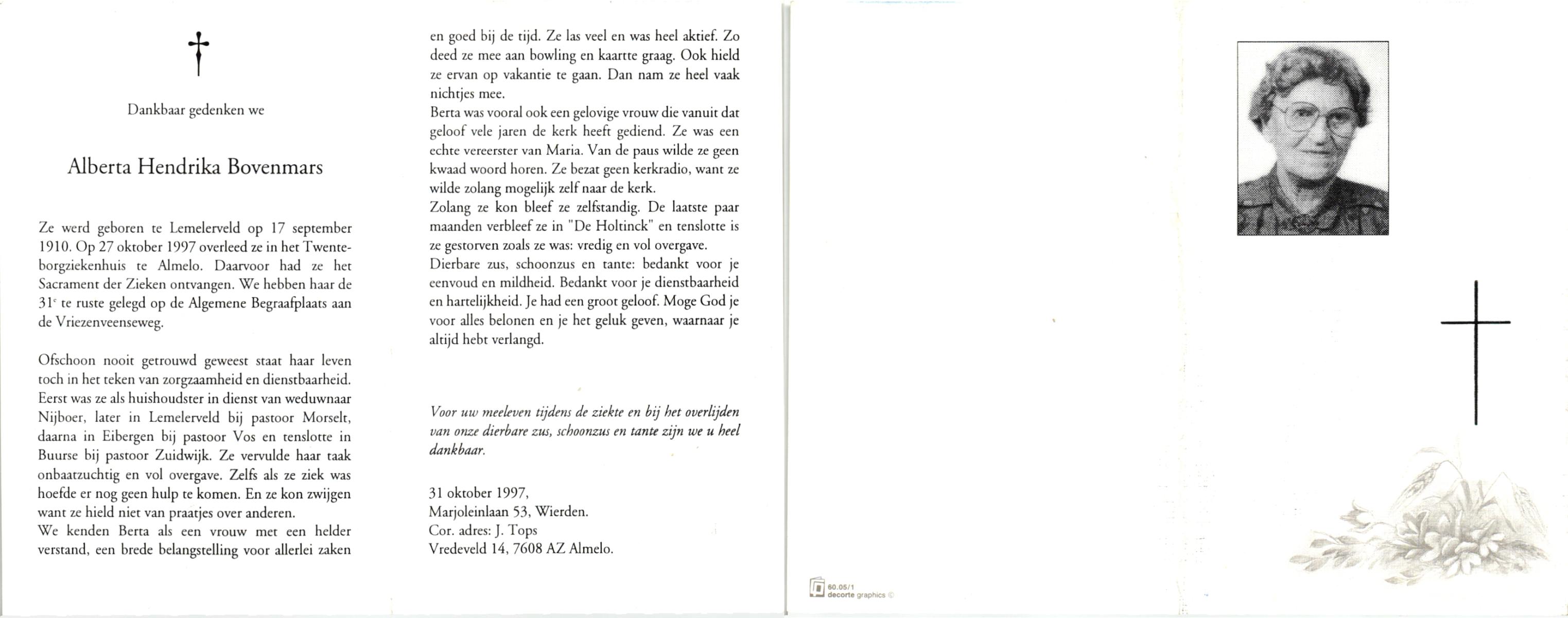 BOONK, Hermian Josephina, geboren op 7-3-1926 te Haaksbergen, overleden op 14-1-1998 te Haaksbergen op 71-jarige leeftijd, begraven op 19-1-1998 te Haaksbergen.
