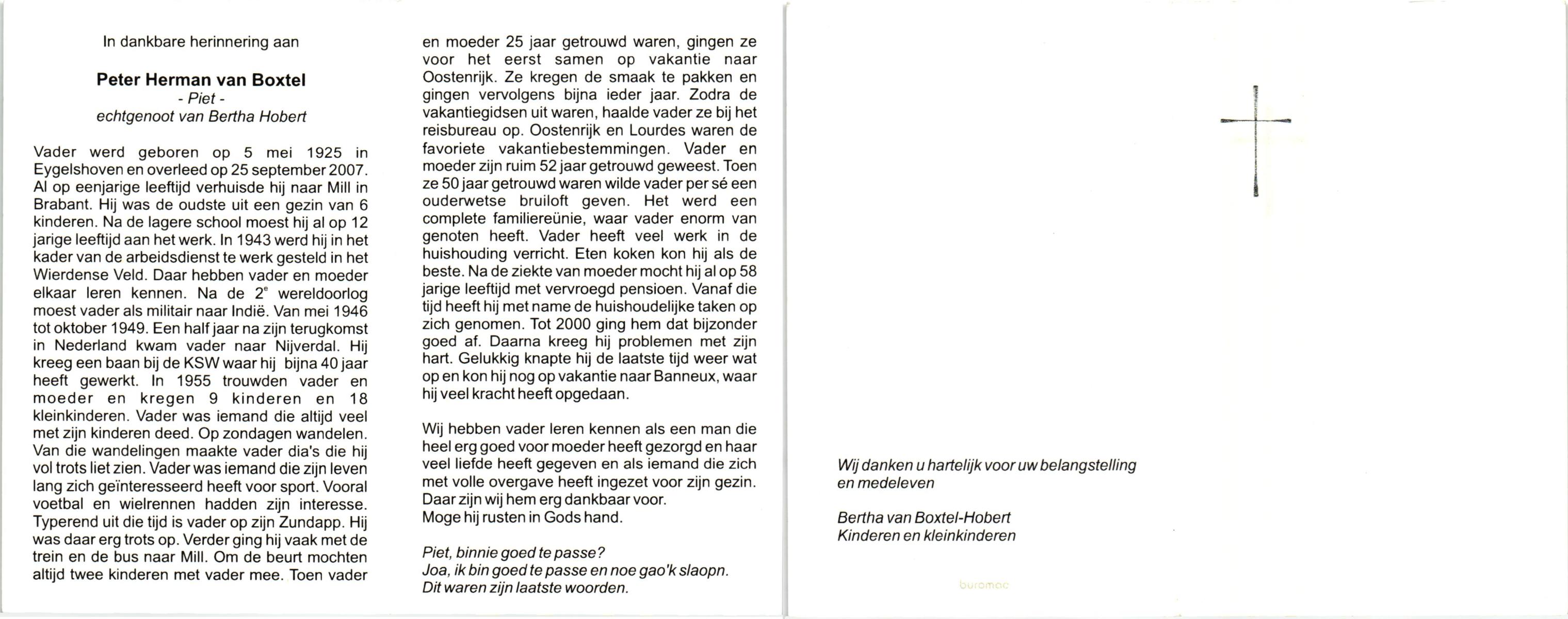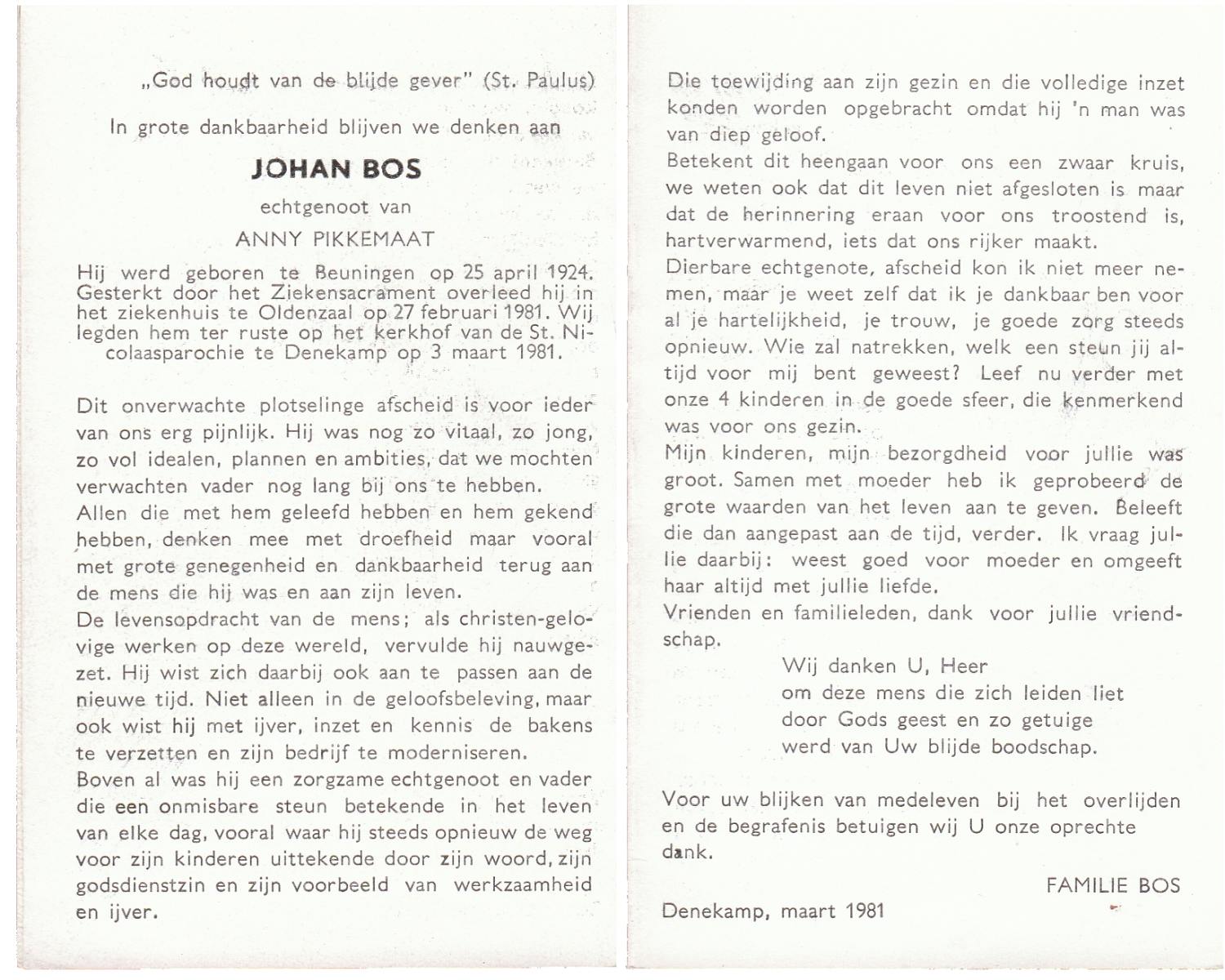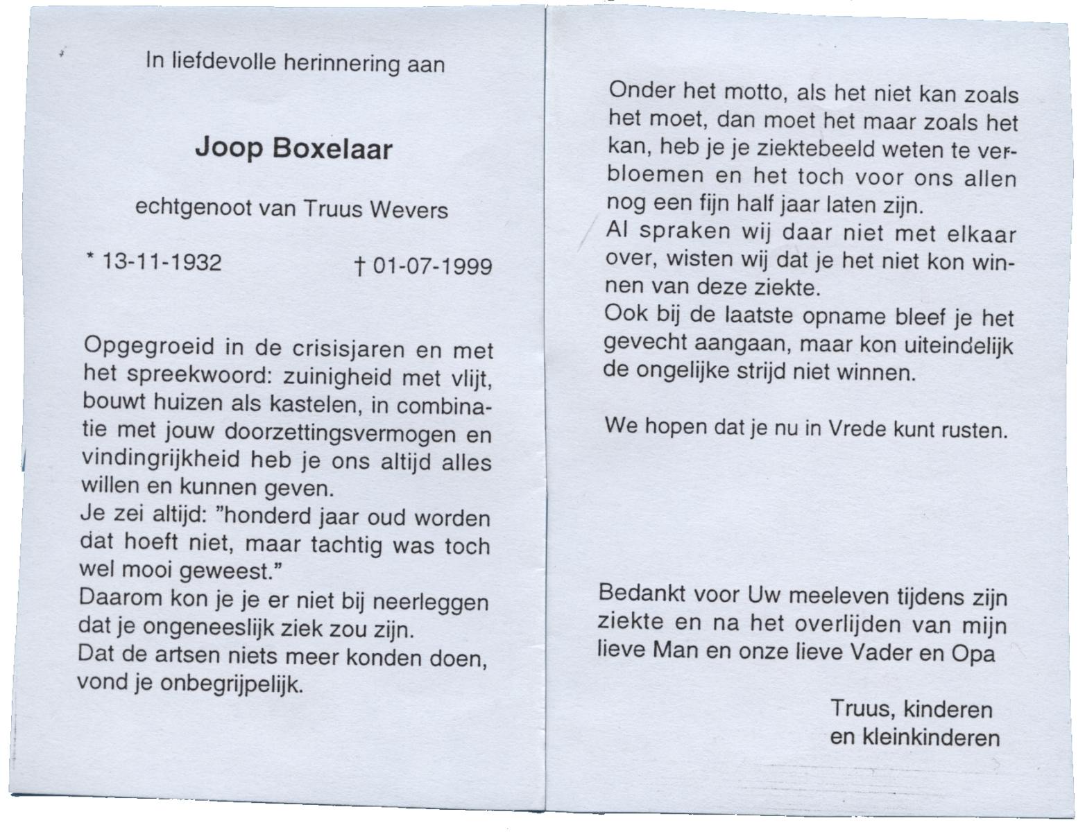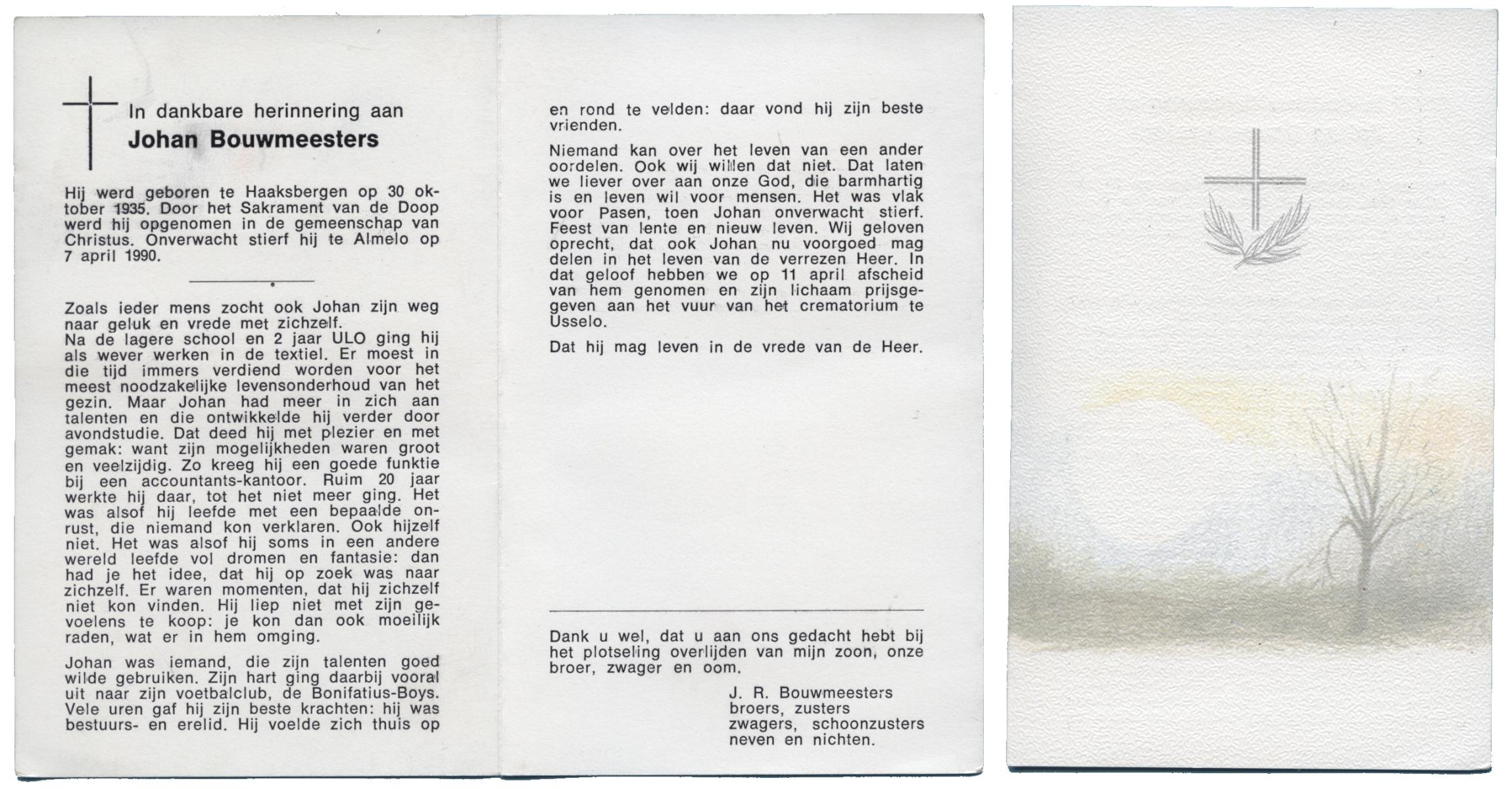 BOONK, Johannes Hermannes, geboren op 5-1-1922 te Haaksbergen, overleden op 25-9-1988 te Enschede op 66-jarige leeftijd, begraven op 29-9-1988 te Haaksbergen, Bonifatiuskerk.
