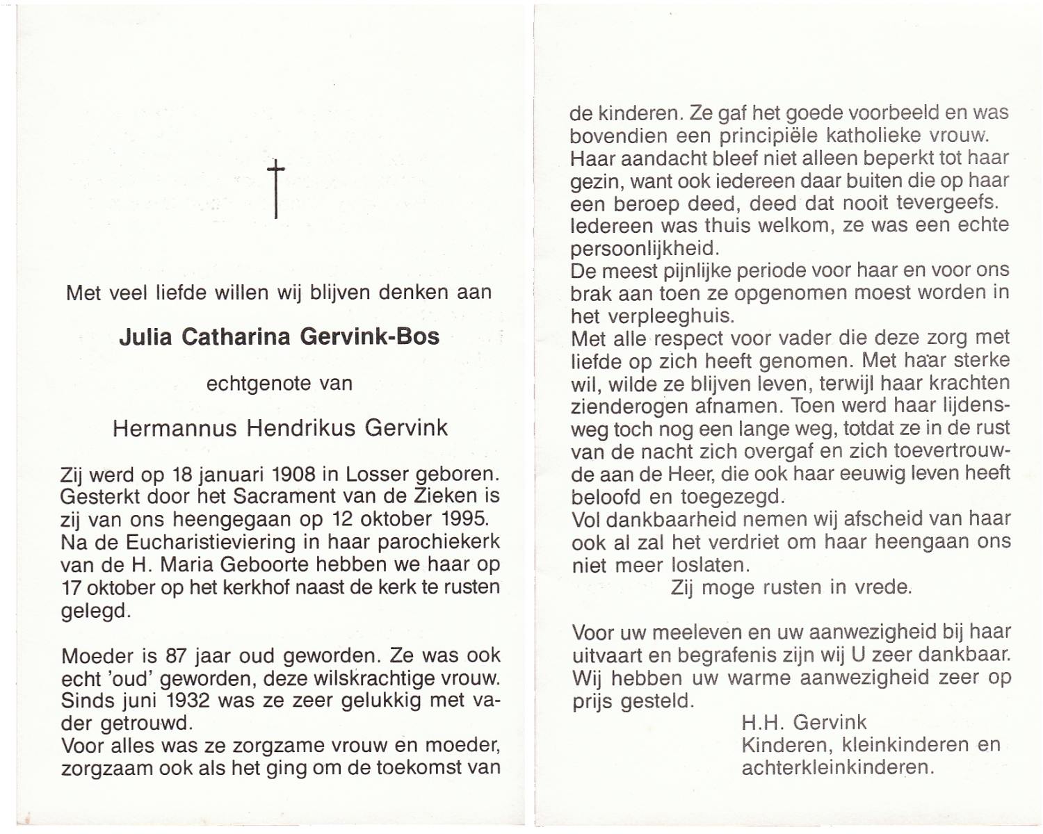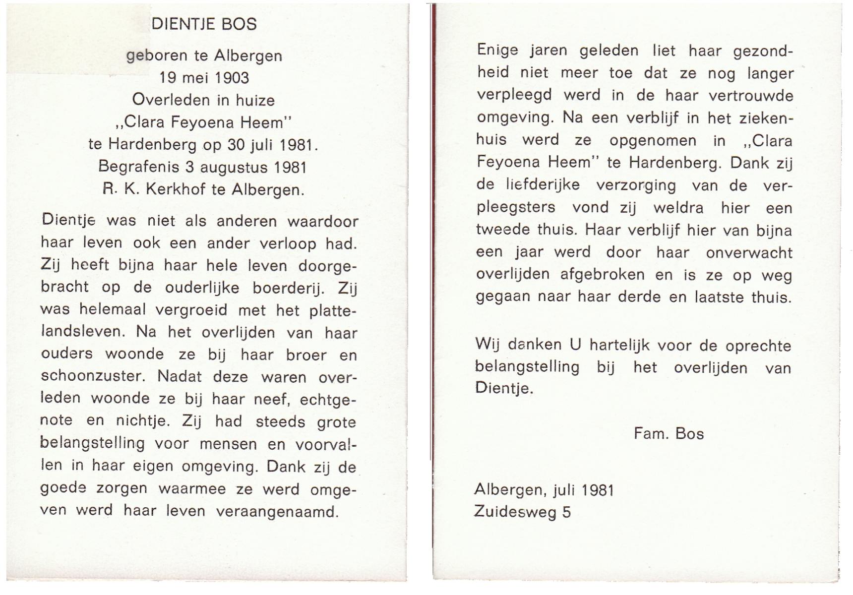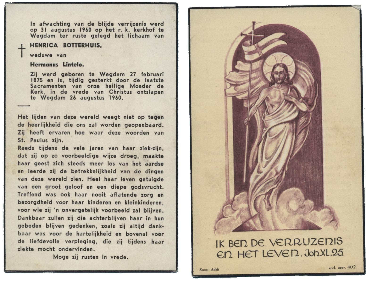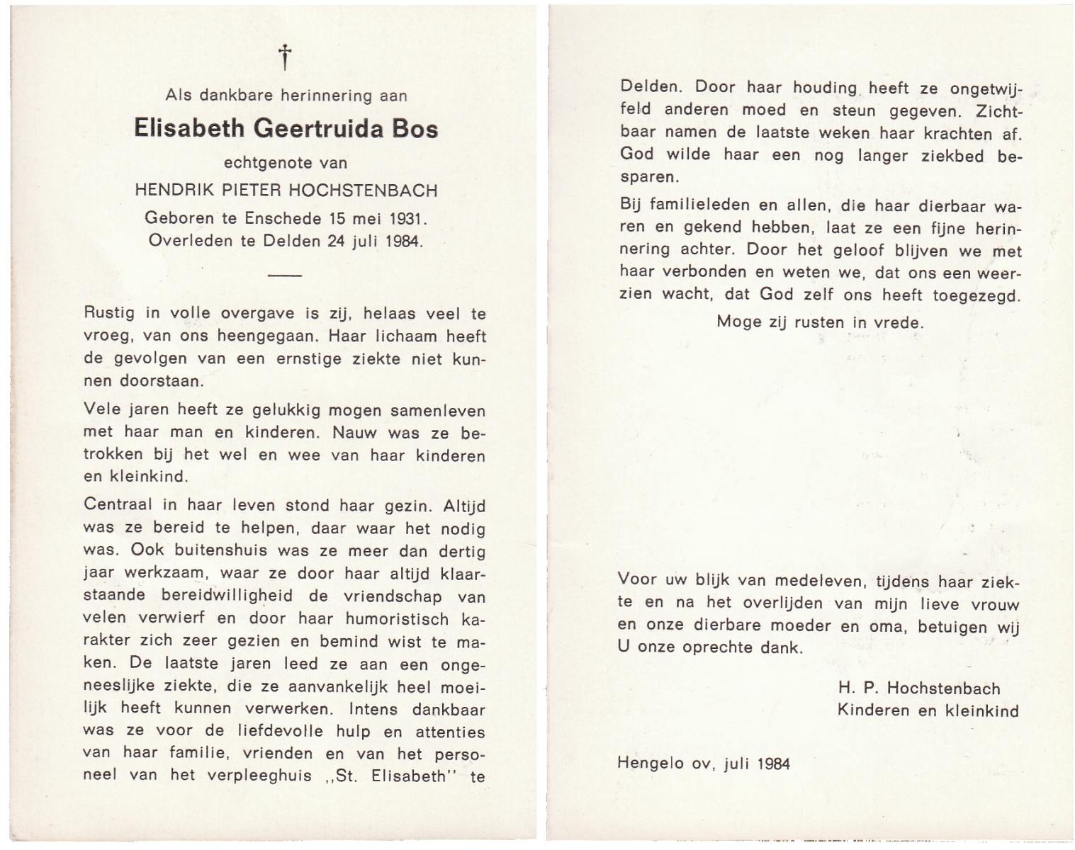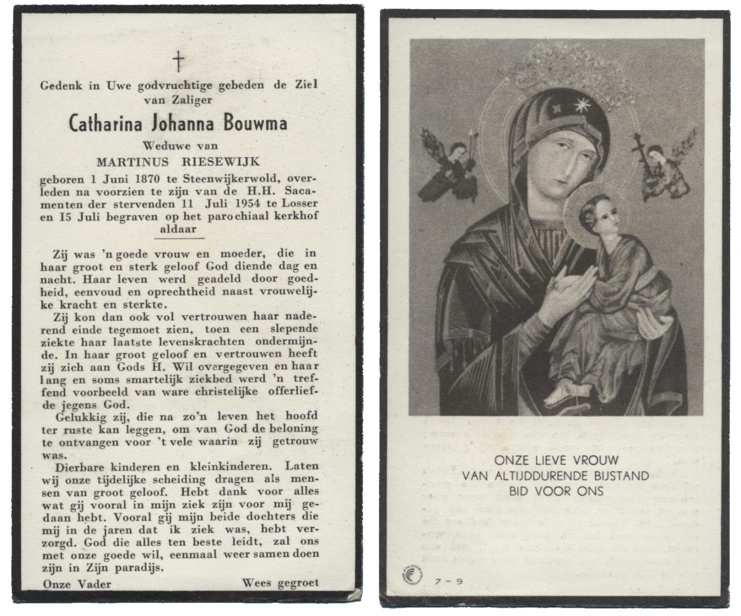 BOOTSVELD, Catharina, geboren op 9-5-1904 te Hellendoorn, overleden op 13-7-1984 te Deventer op 80-jarige leeftijd, begraven op 18-7-1984 te Rijssen.