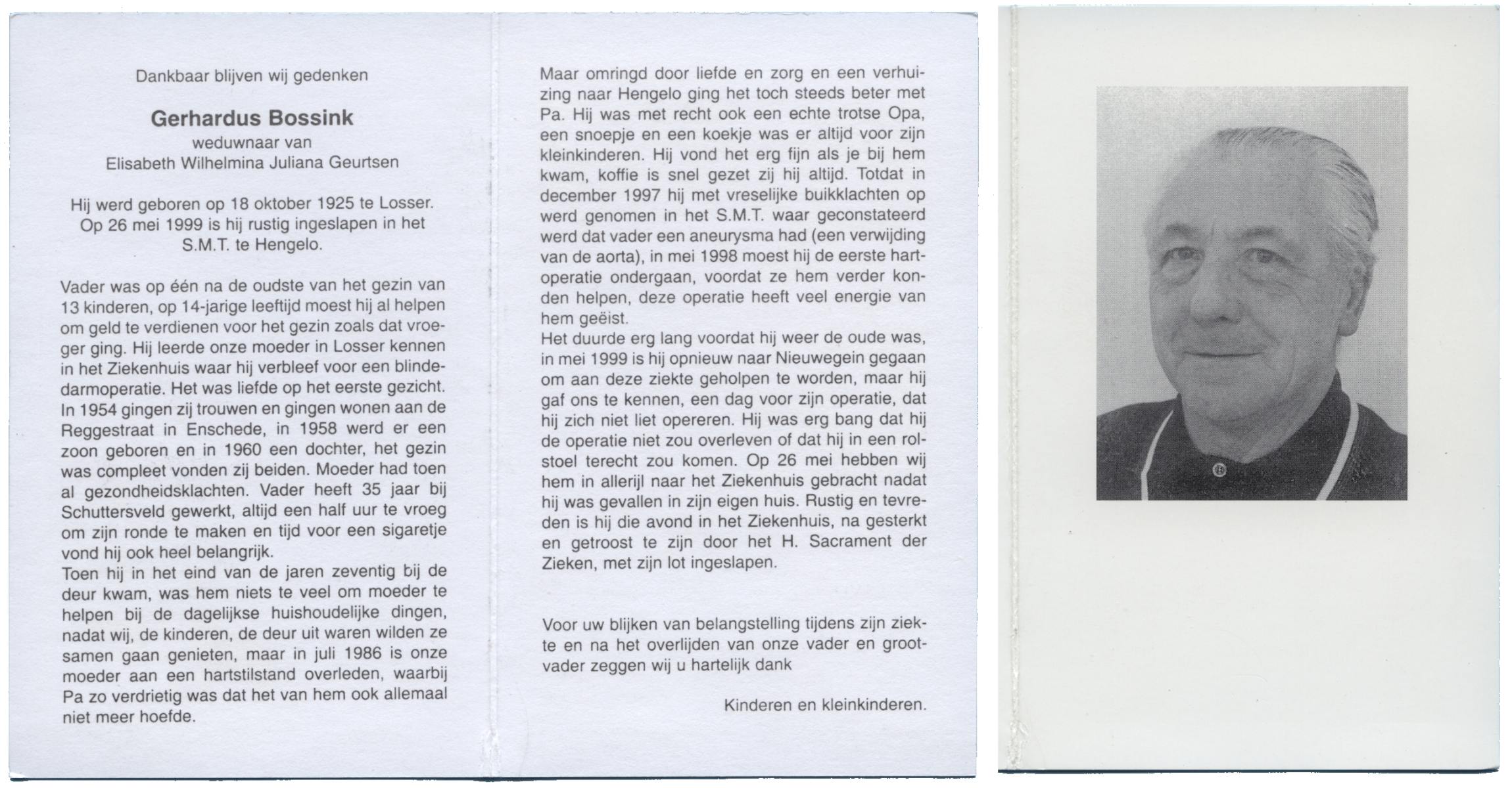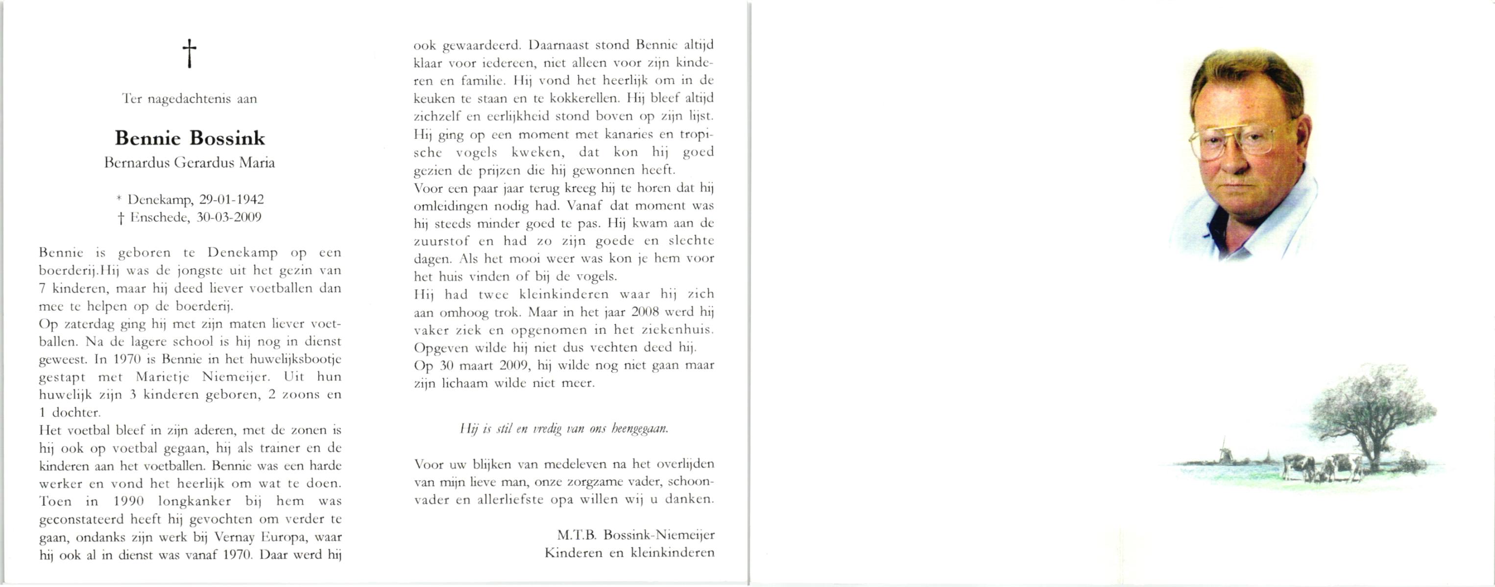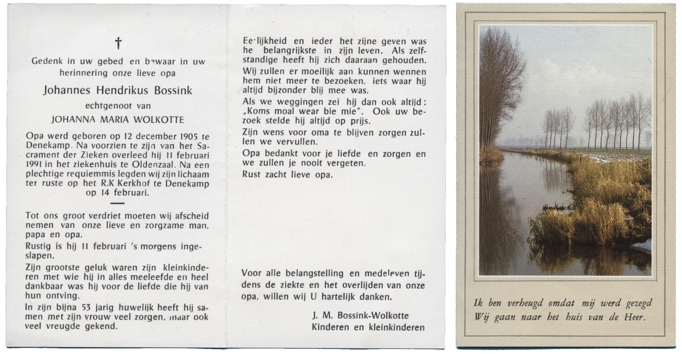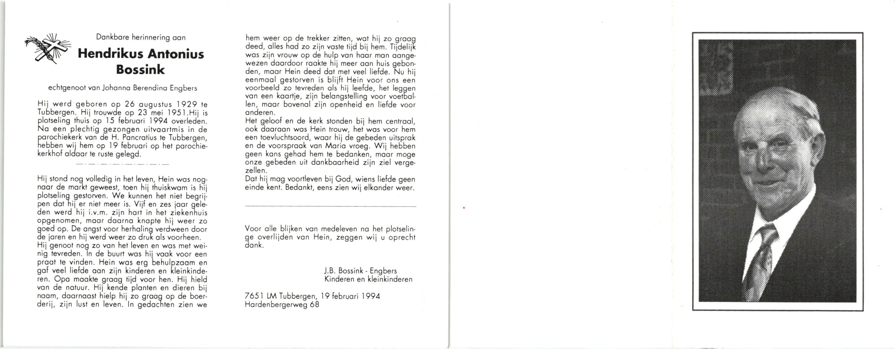 BOOYINK, Bernardus Antonius, geboren op 24-10-1914 te Fleringen, overleden op 11-8-1990 te Fleringen op 75-jarige leeftijd, begraven op 15-8-1990 te Fleringen.