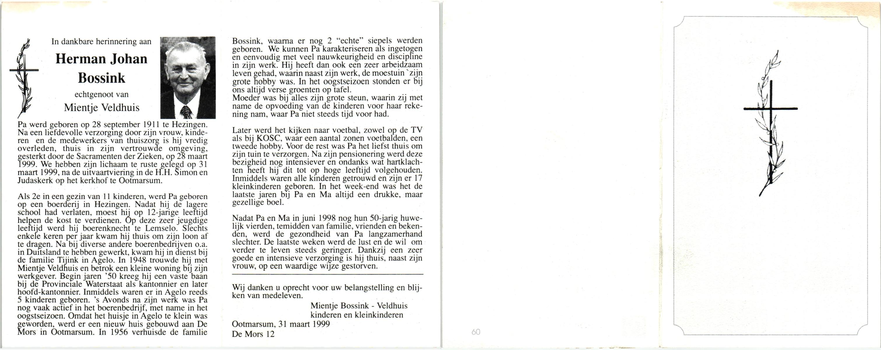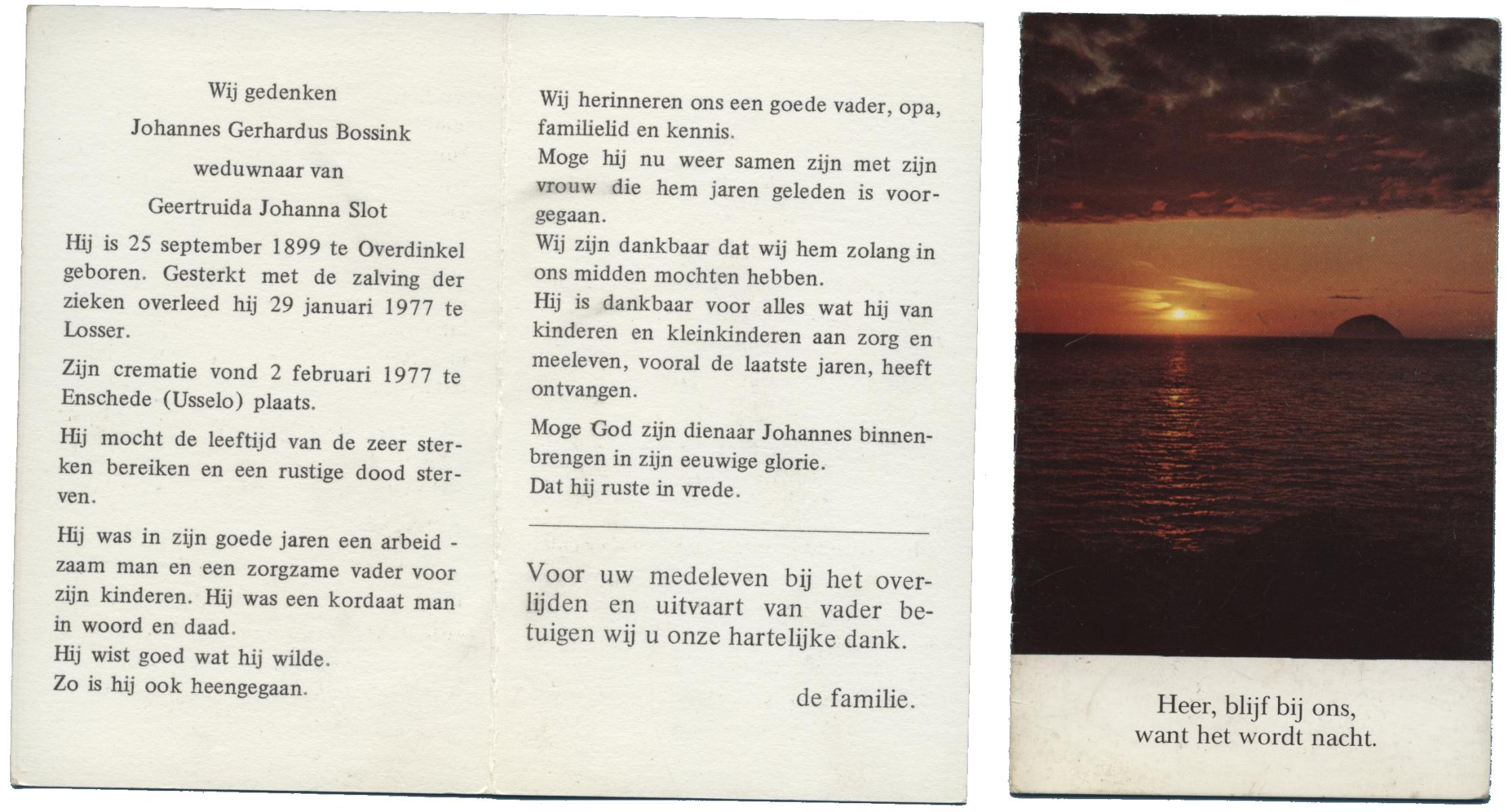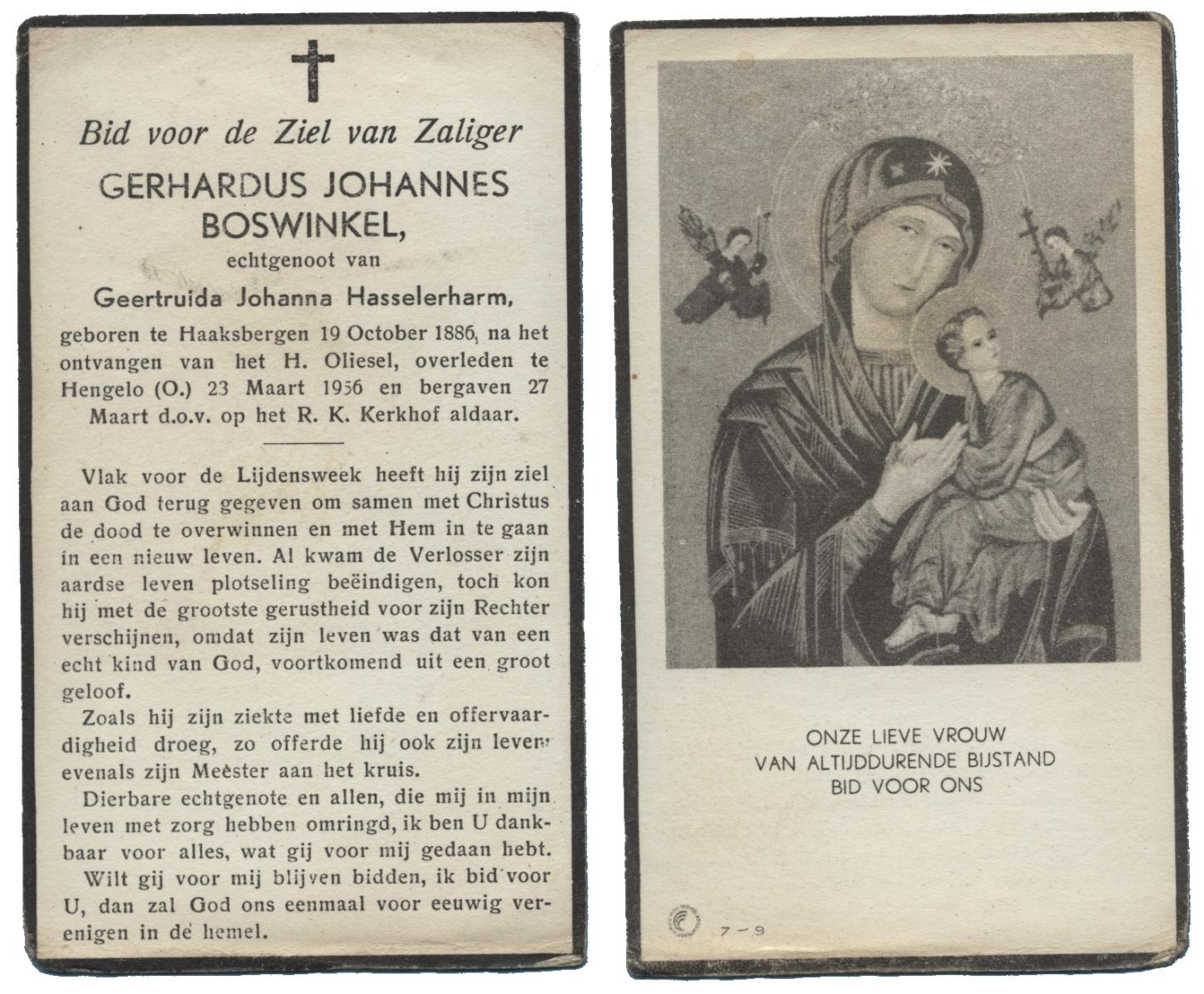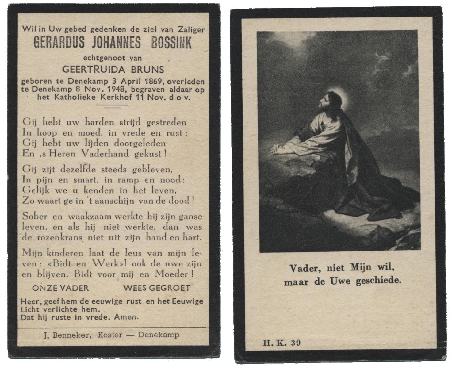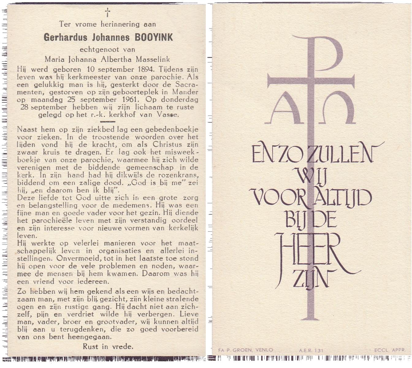 BOOYINK, Gerhardus Johannes, geboren op 10-09-1894 te Mander, overleden op 25-9-1961 te Mander op 67-jarige leeftijd, begraven op 28-9-1961 te Vasse.