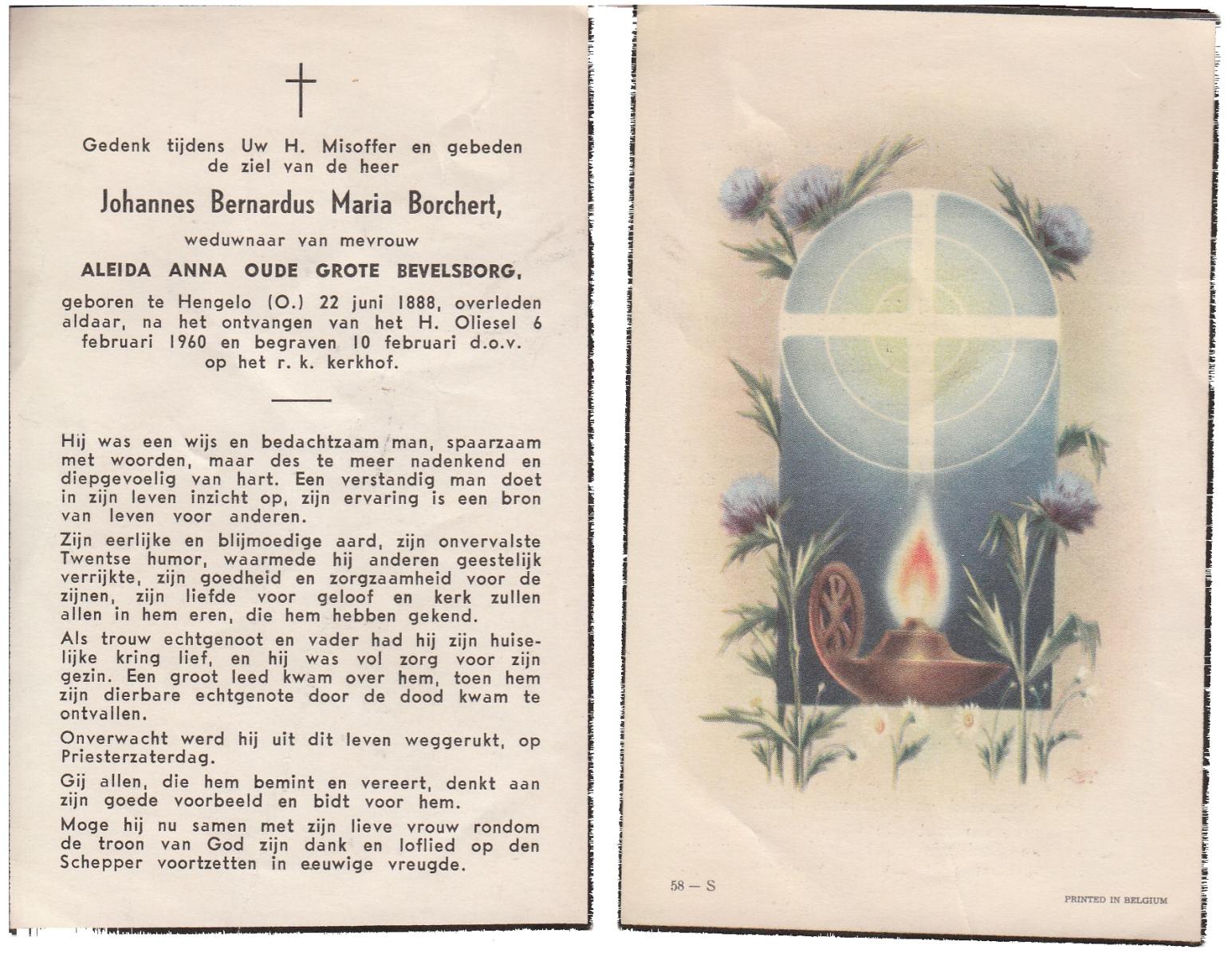 BORCHERT, Johannes Bernardus Maria, geboren op 22-06-1888 te Hengelo (O), overleden op 6-2-1960 te Hengelo (Ov.) op 71-jarige leeftijd, begraven op 10-2-1960 te Hengelo (Ov.).