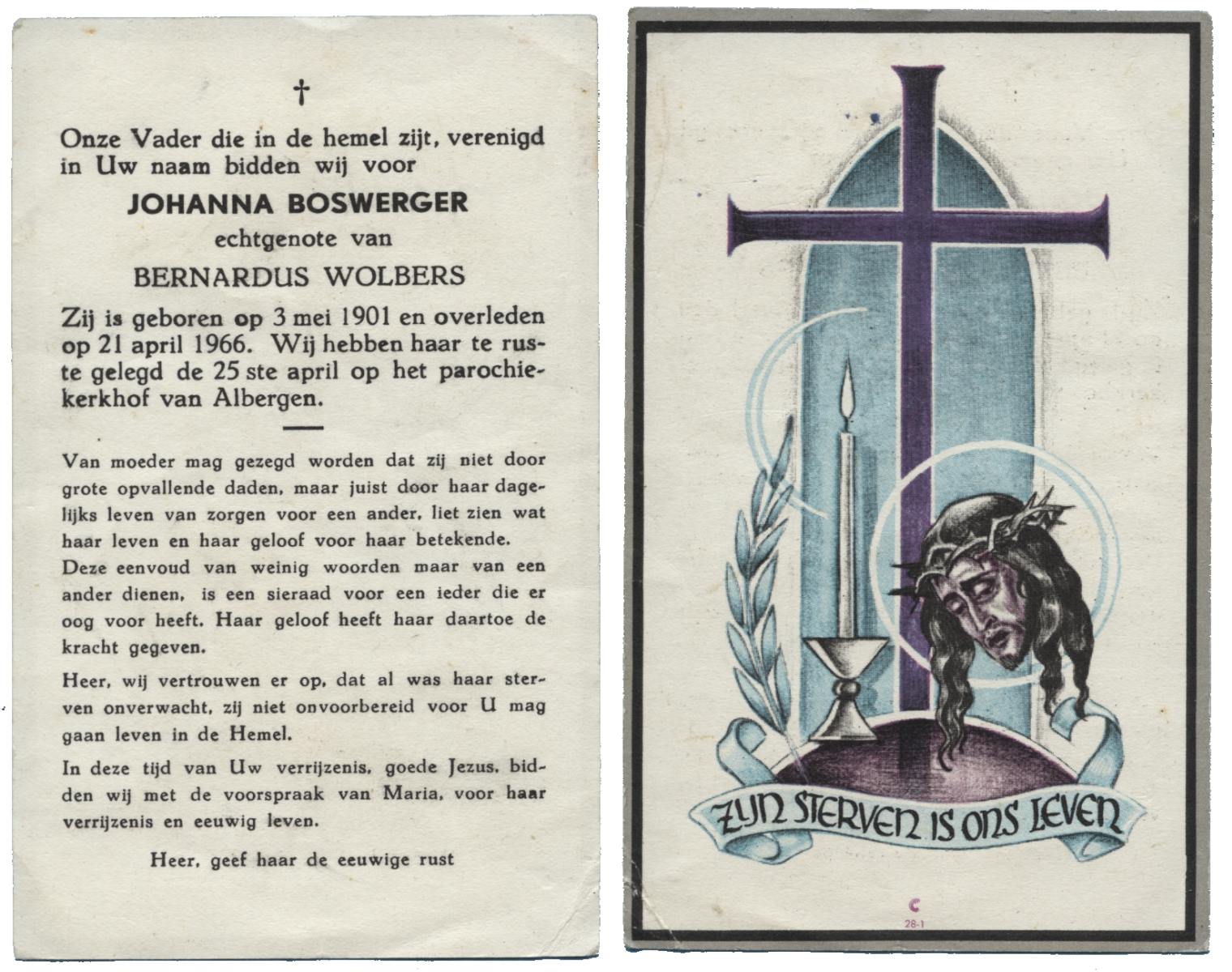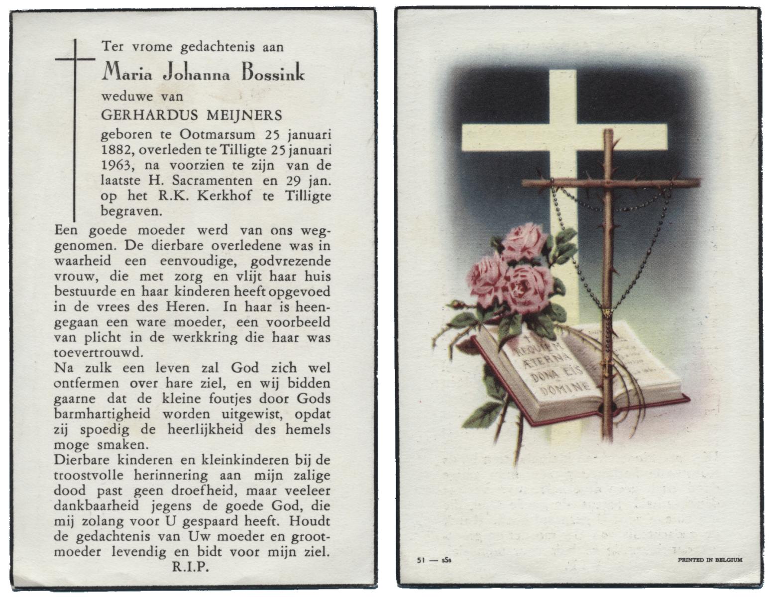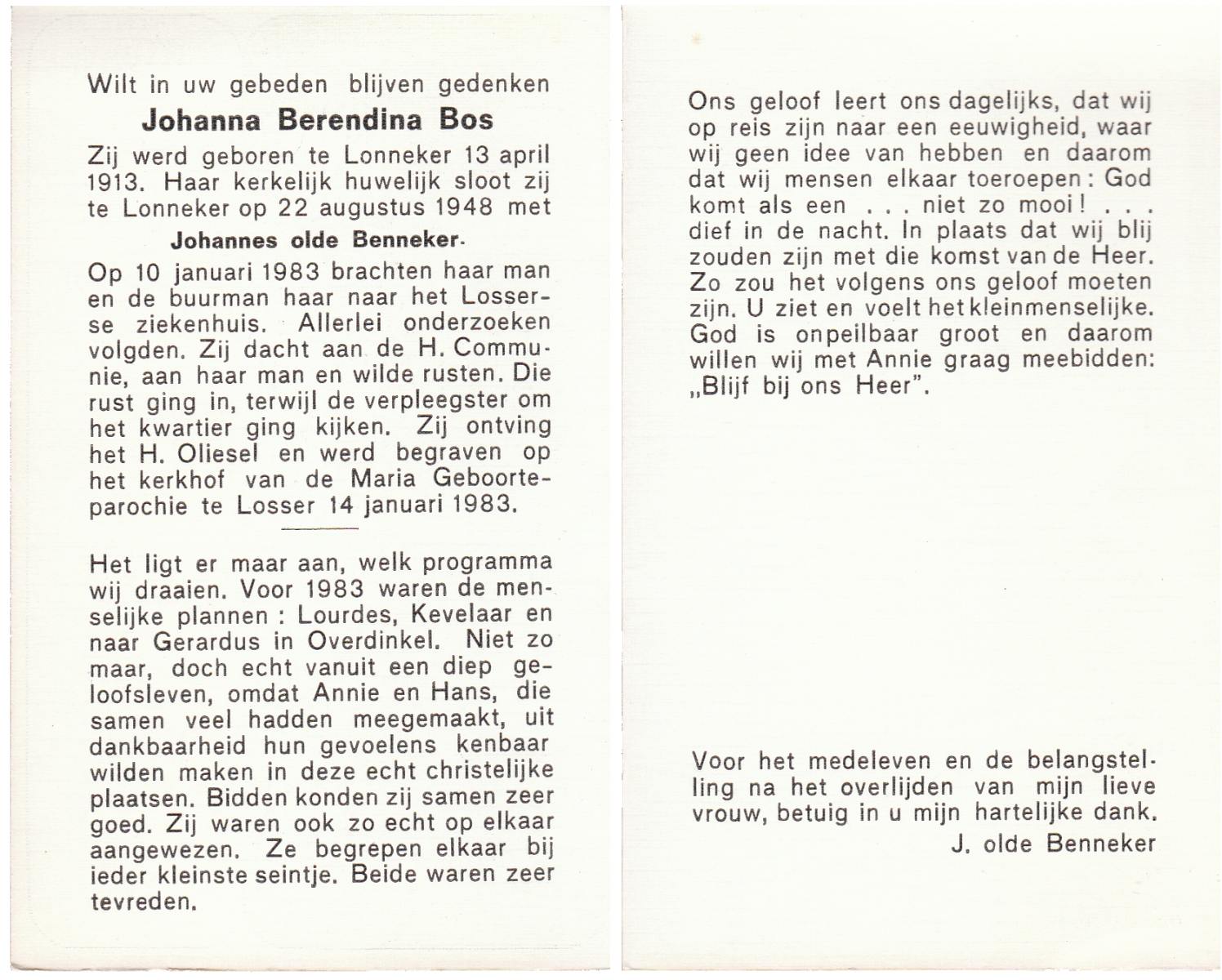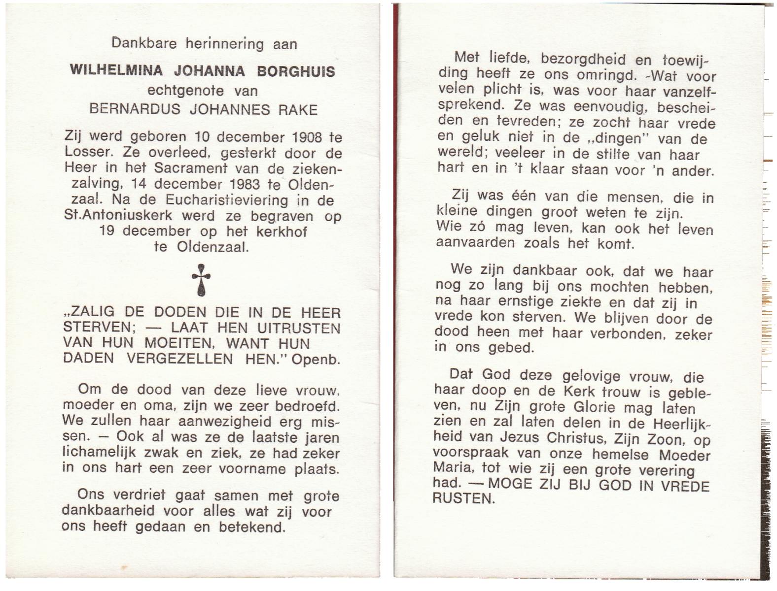 BORG, Maria Johanna, geboren op 14-11-1917 te Losser, overleden op 19-5-1980 op 62-jarige leeftijd, begraven op 22-5-1980 te Losser.