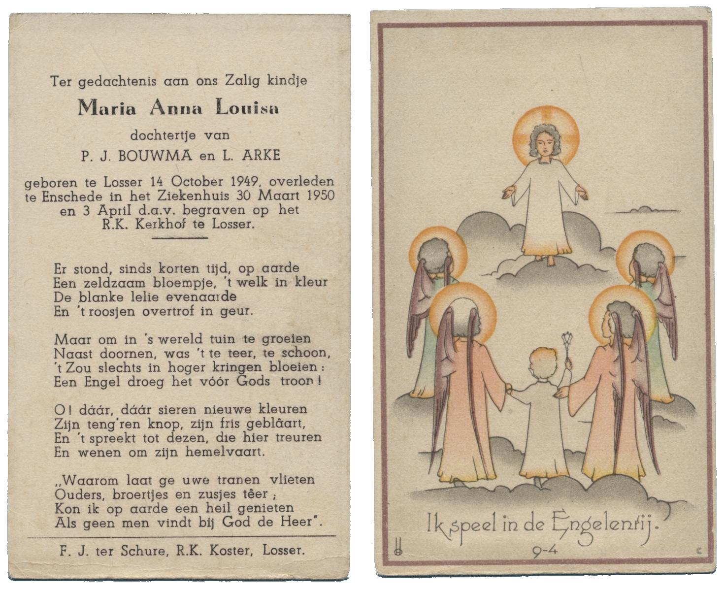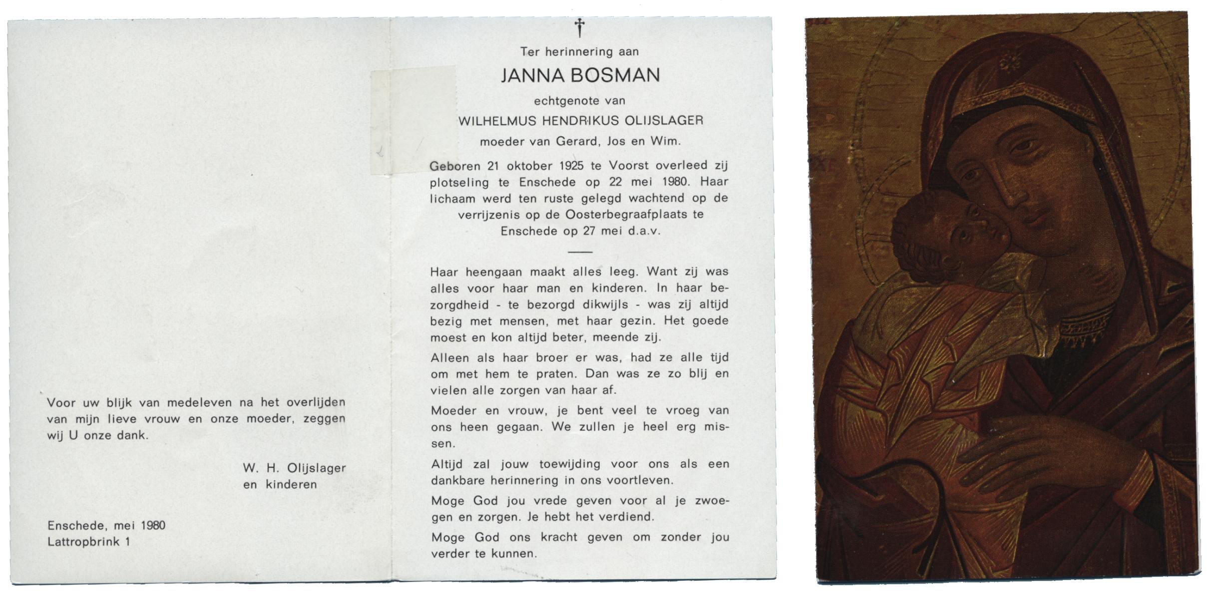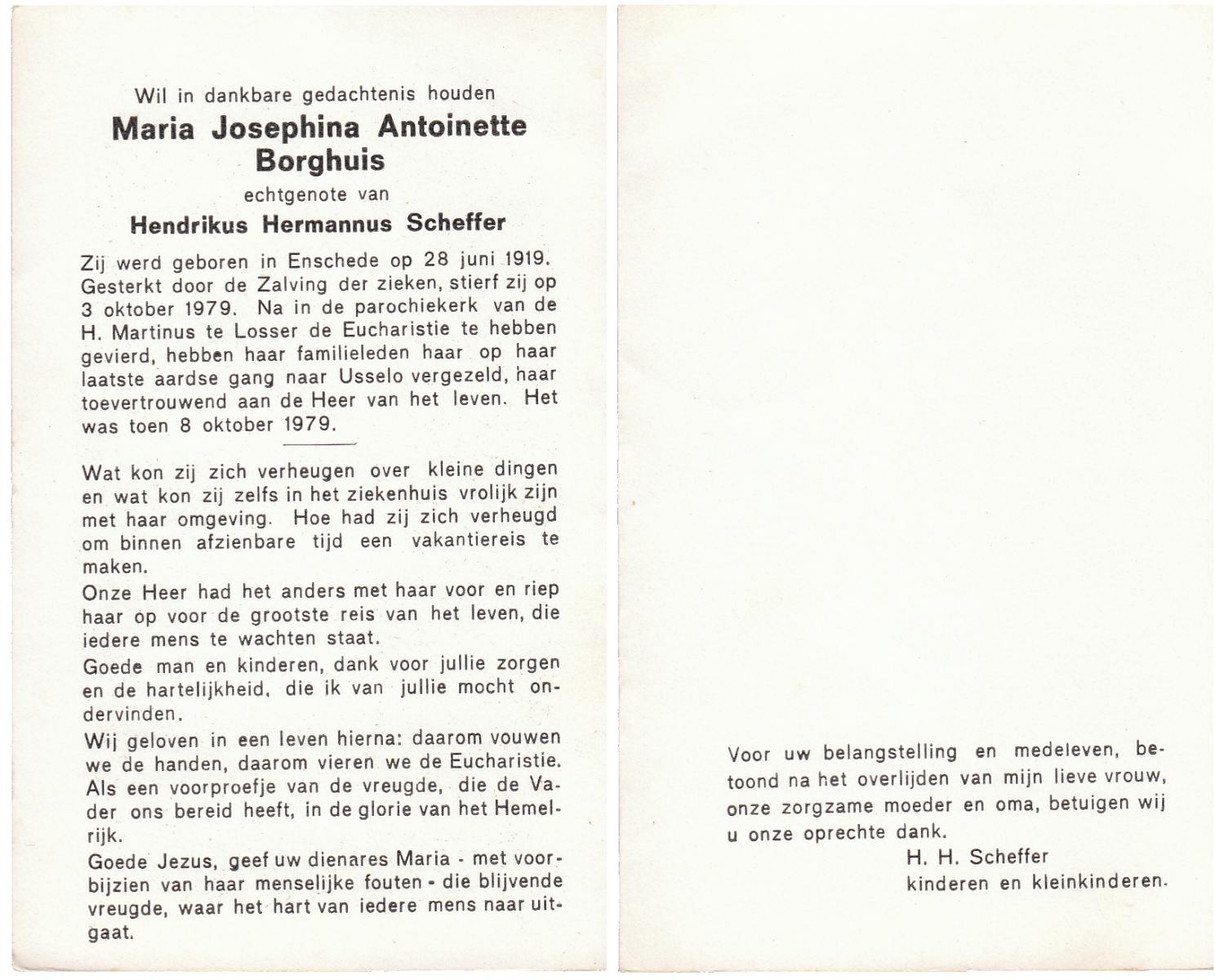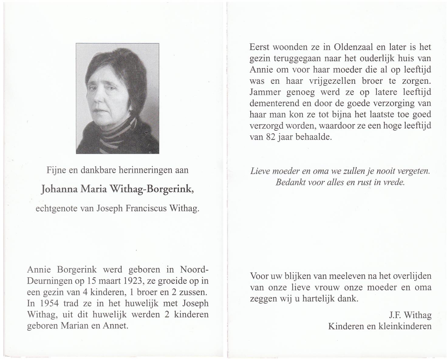 BORG, Maria Johanna, geboren op 14-11-1917 te Losser, overleden op 19-5-1980 op 62-jarige leeftijd, begraven op 22-5-1980 te Losser.