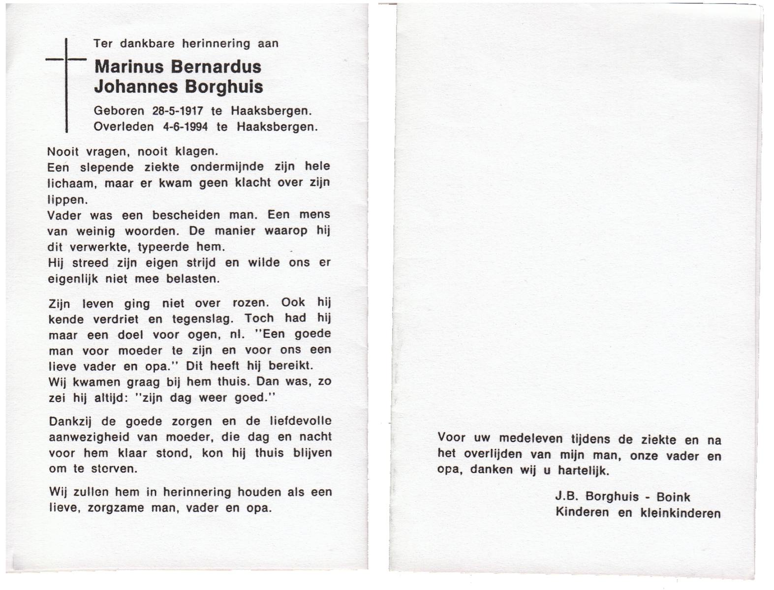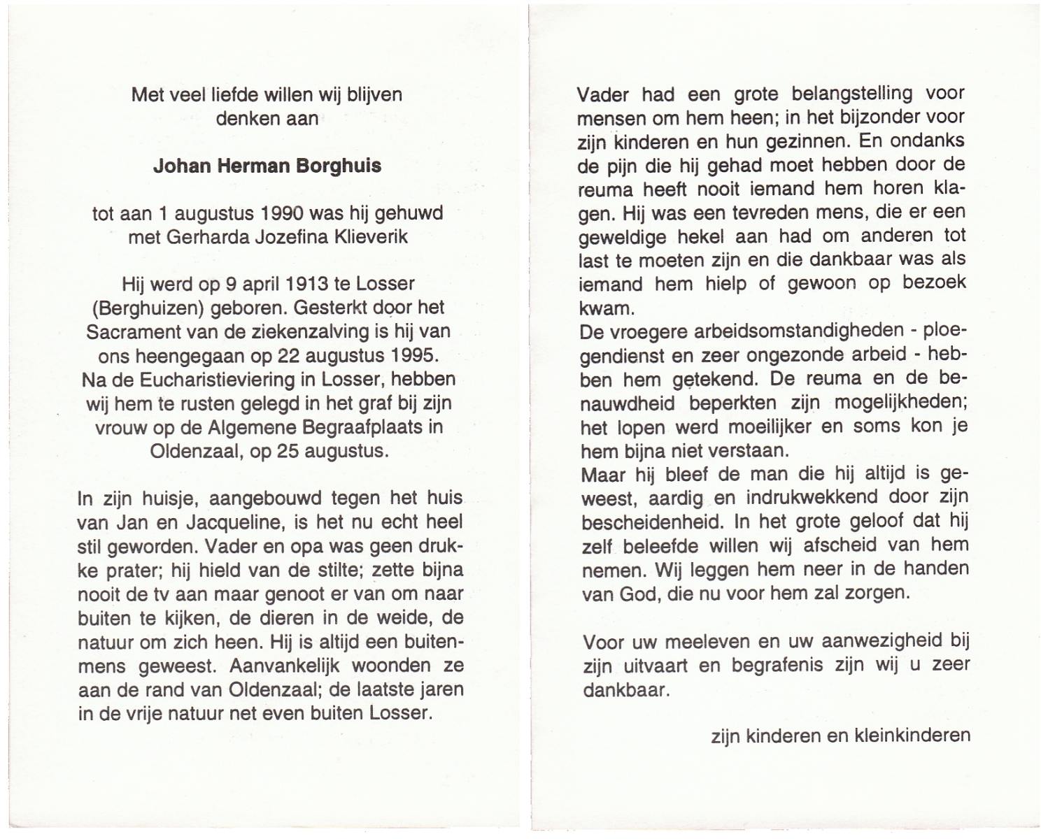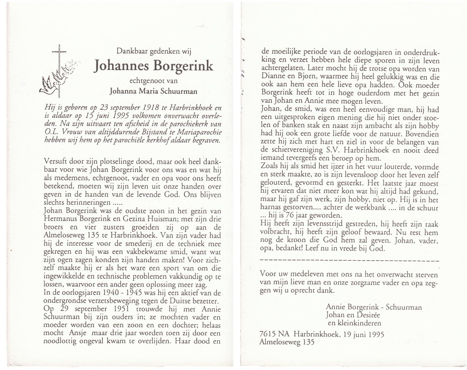 BORGERINK, Johannes, geboren op 23-9-1918 te Harbrinkhoek, overleden op 15-6-1995 te Harbrinkhoek op 76-jarige leeftijd, begraven te Mariaparochie.