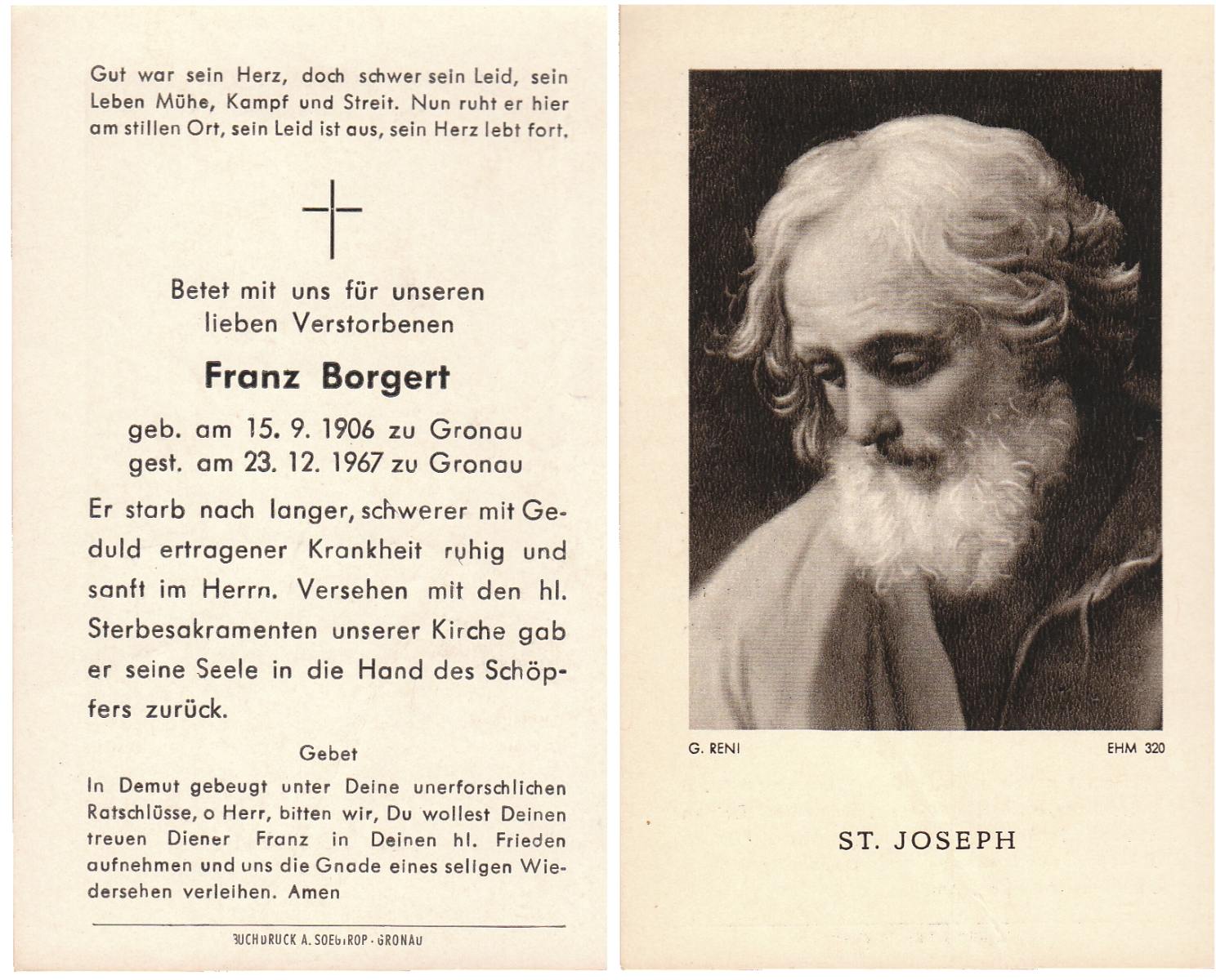 BORGERT, Franz, geboren op 15-9-1906 te Gronau (Dld.), overleden op 23-12-1967 te Gronau, Westf. (Dld.) op 61-jarige leeftijd.