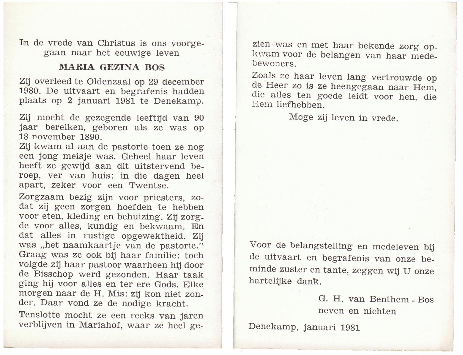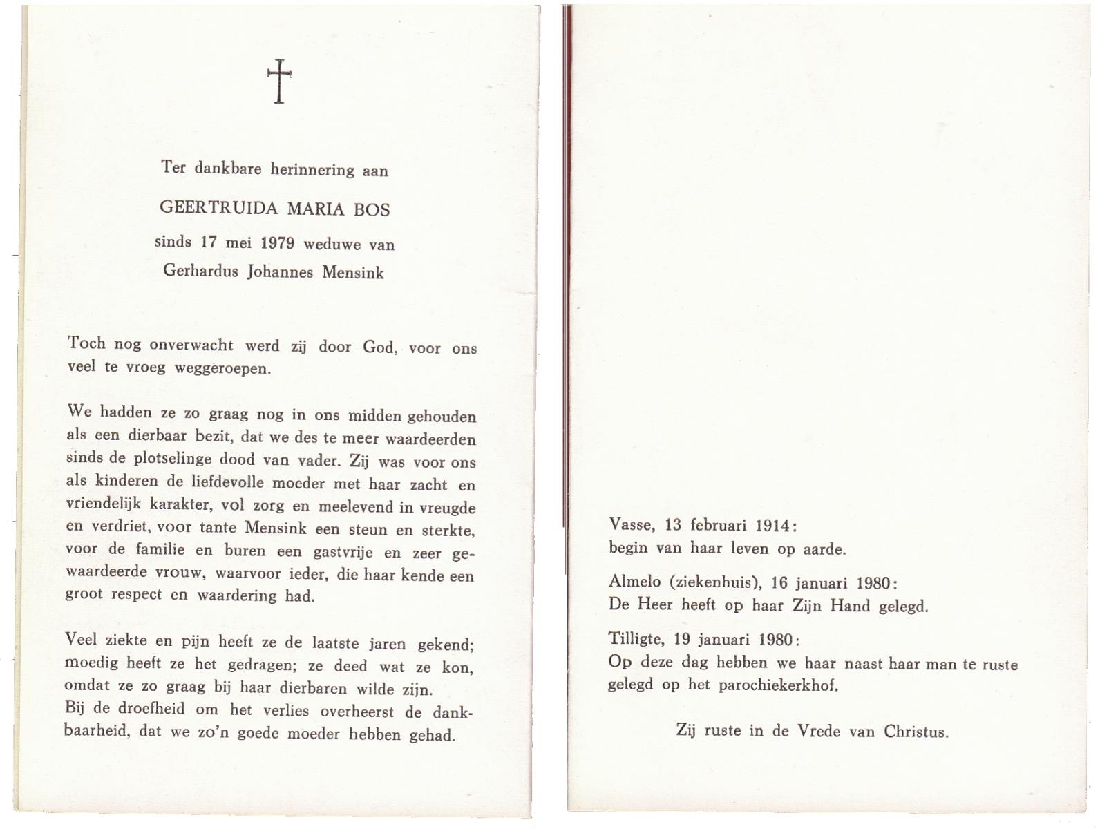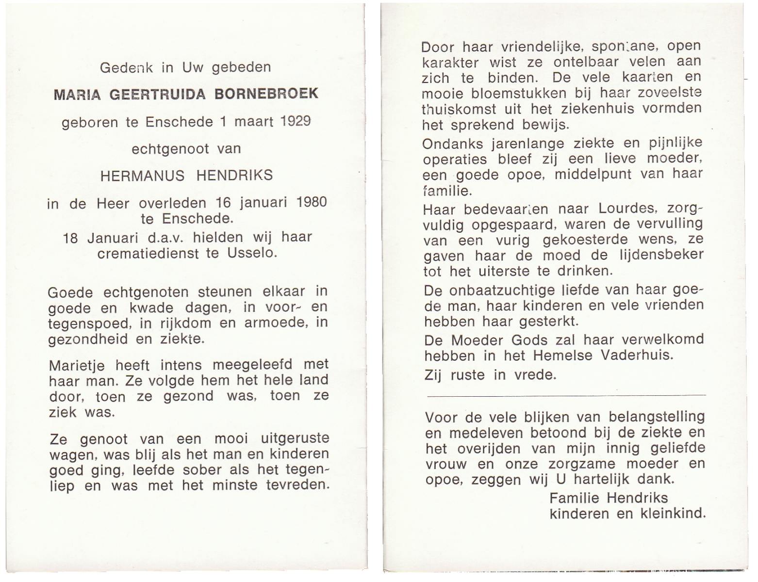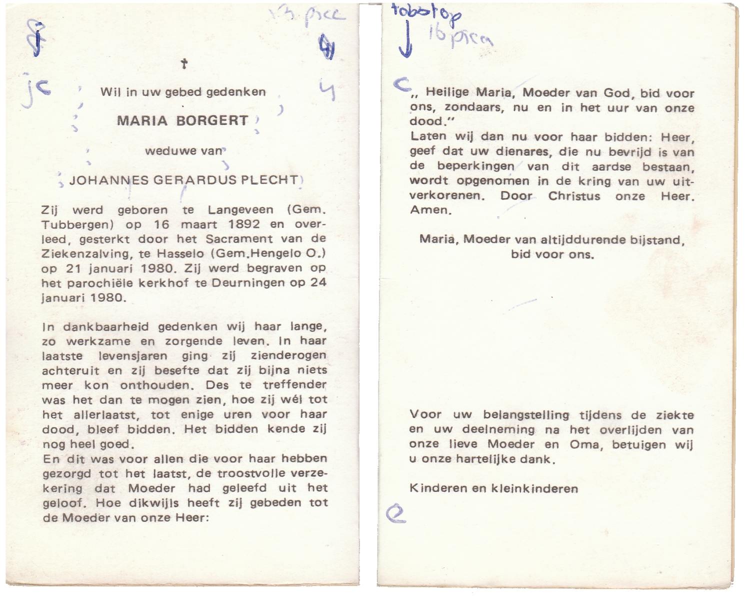 BORGERT, Maria, geboren op 16-03-1892 te Langeveen, overleden op 21-1-1980 te Hasselo op 87-jarige leeftijd, begraven op 24-1-1980 te Deurningen.
