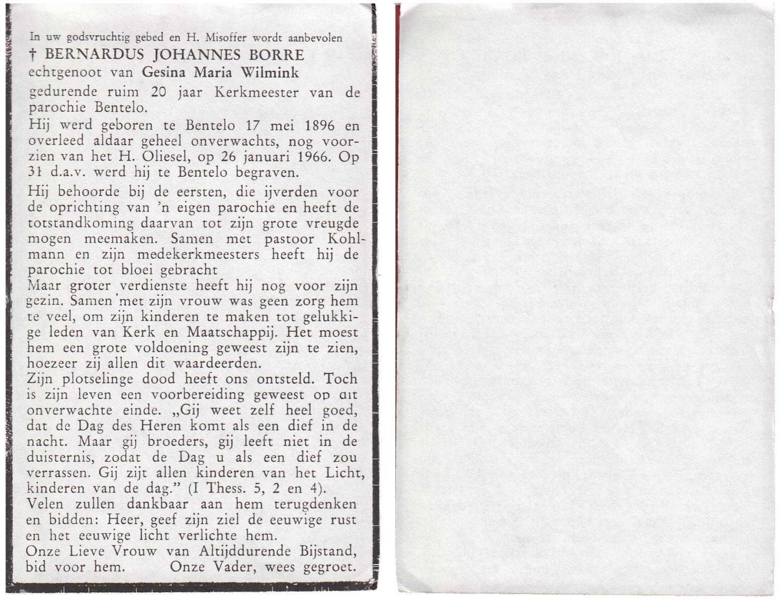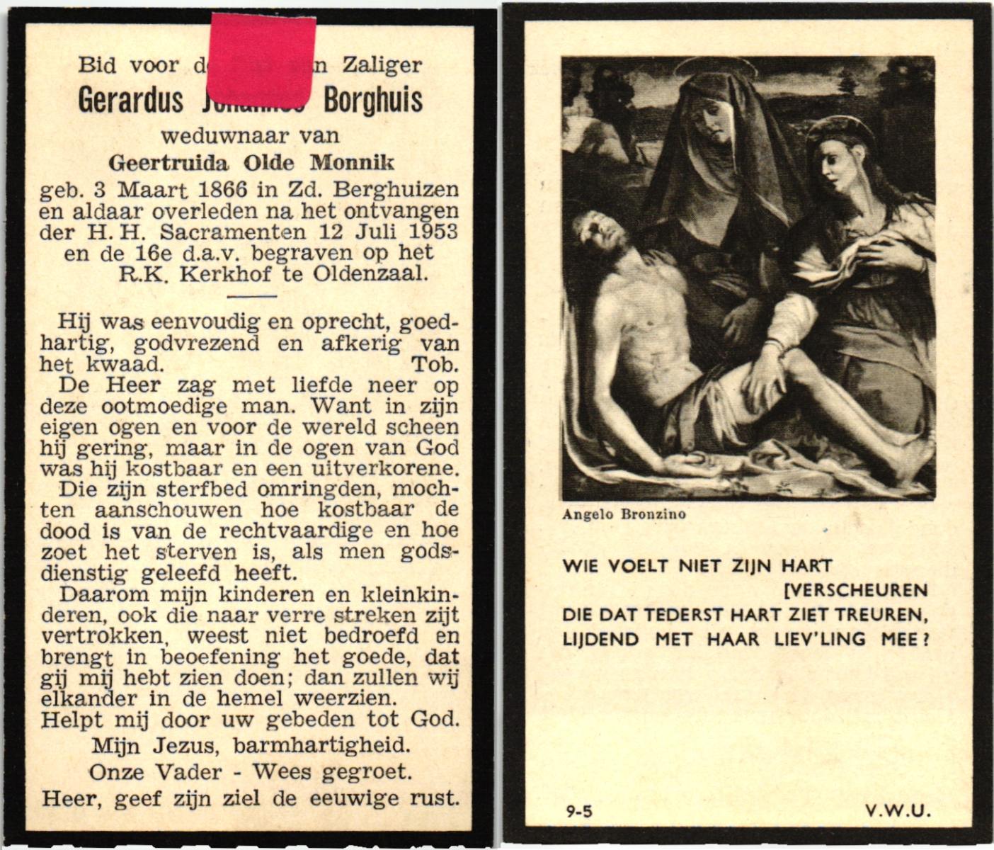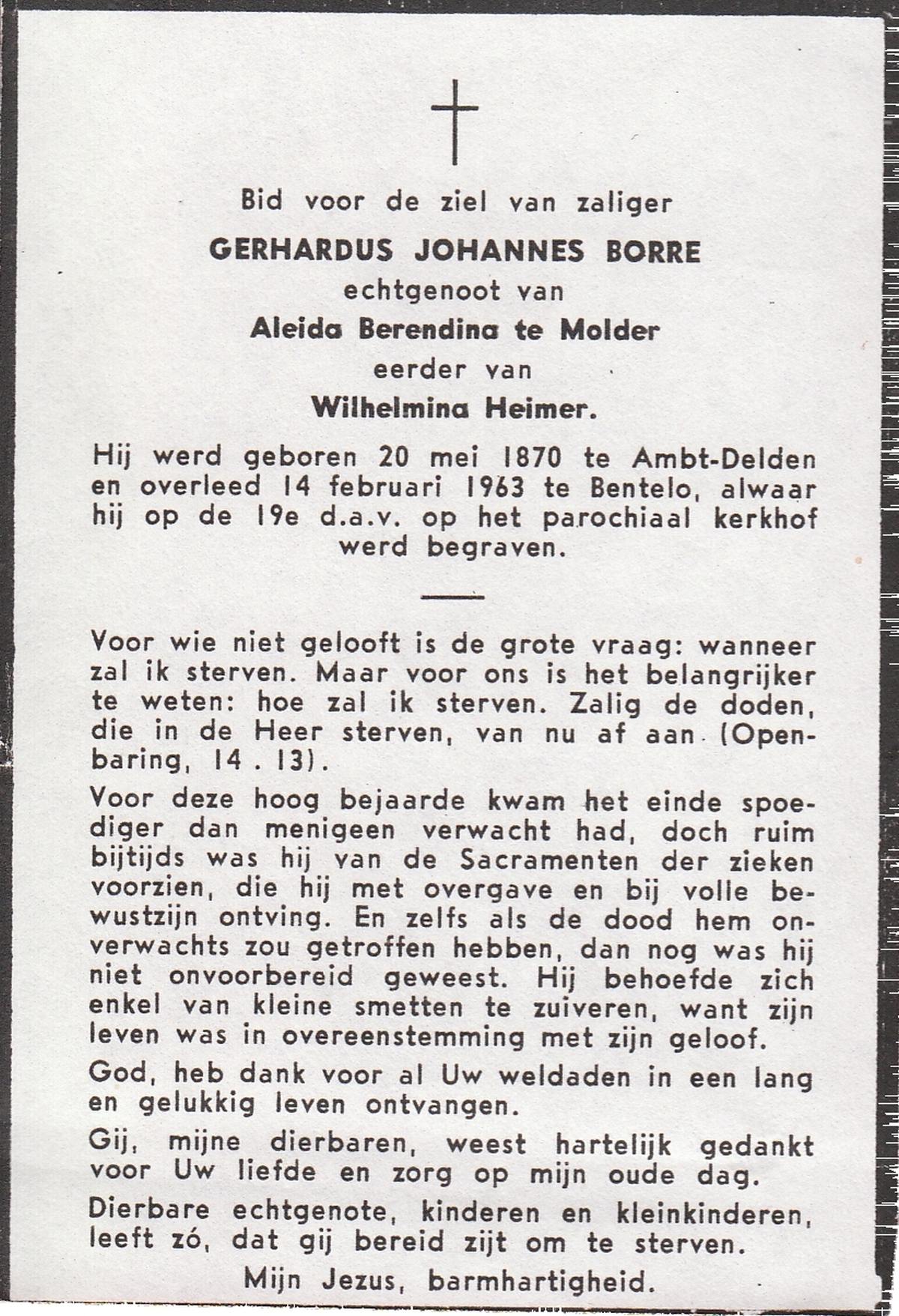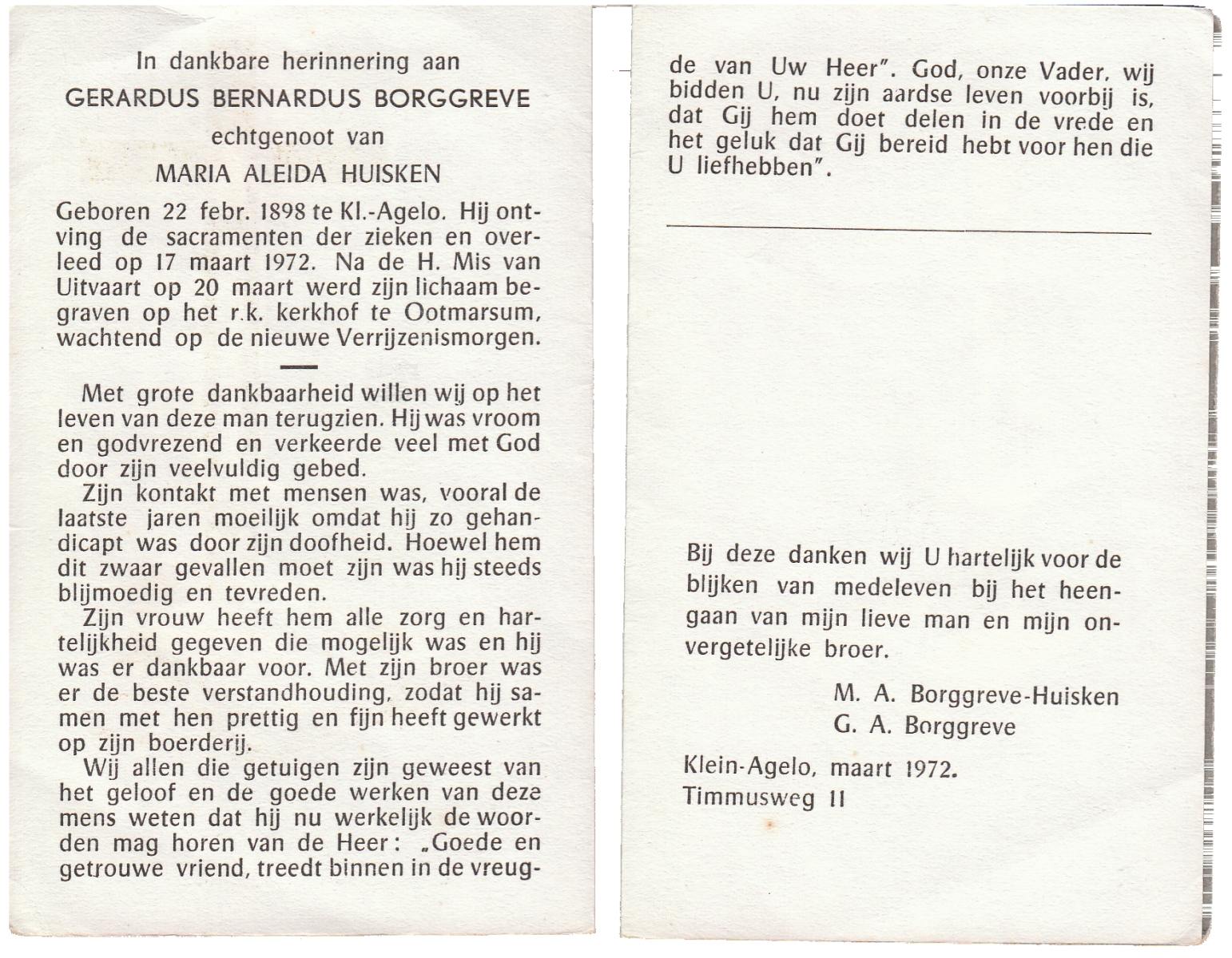 BORGGREVE, Gerardus Bernardus, geboren op 22-02-1898 te Kl. Agelo, overleden op 17-3-1972 op 74-jarige leeftijd, begraven op 20-3-1972 te Ootmarsum.