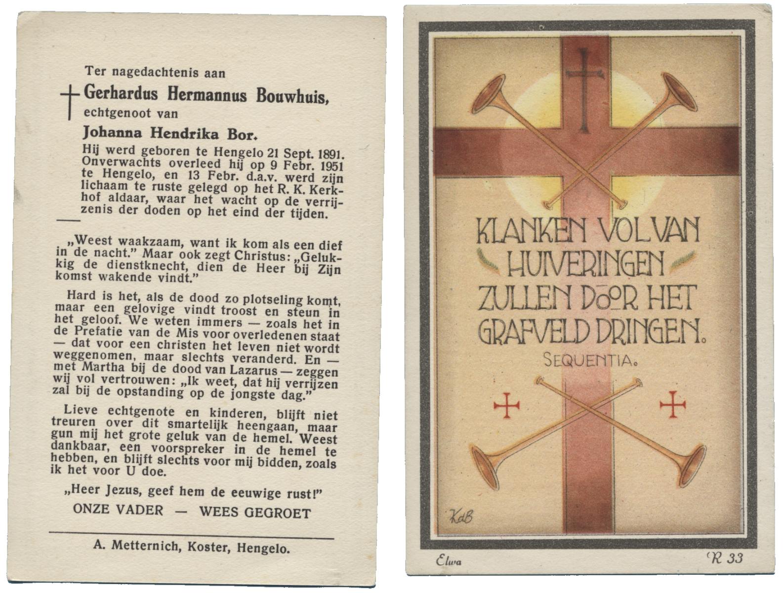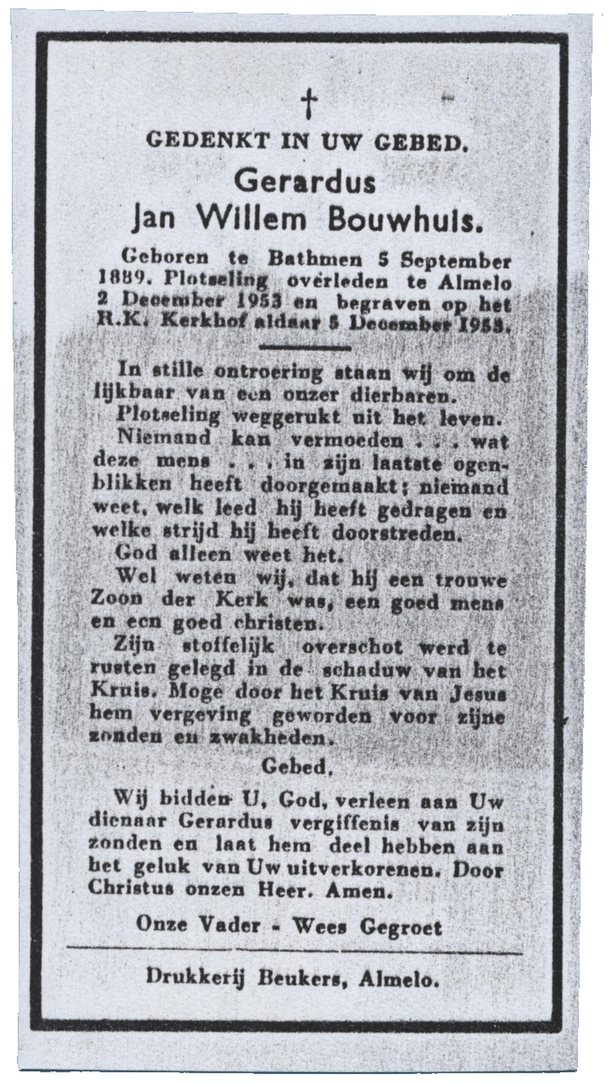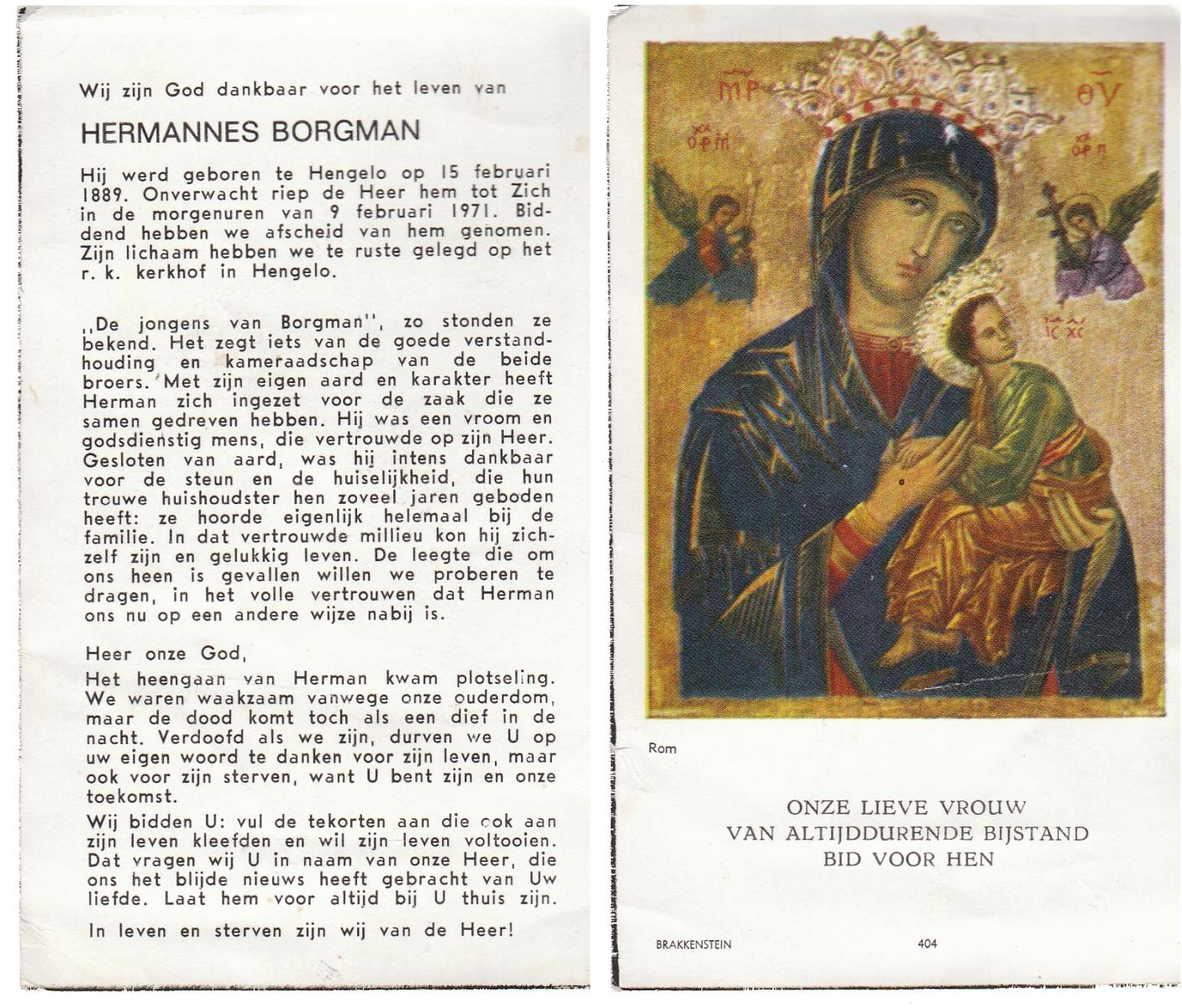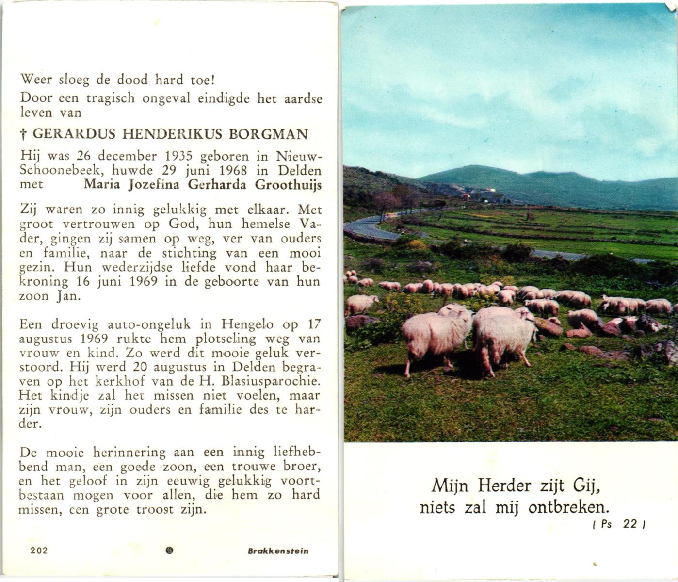 BORGGREVE, Gerardus Bernardus, geboren op 22-02-1898 te Kl. Agelo, overleden op 17-3-1972 op 74-jarige leeftijd, begraven op 20-3-1972 te Ootmarsum.