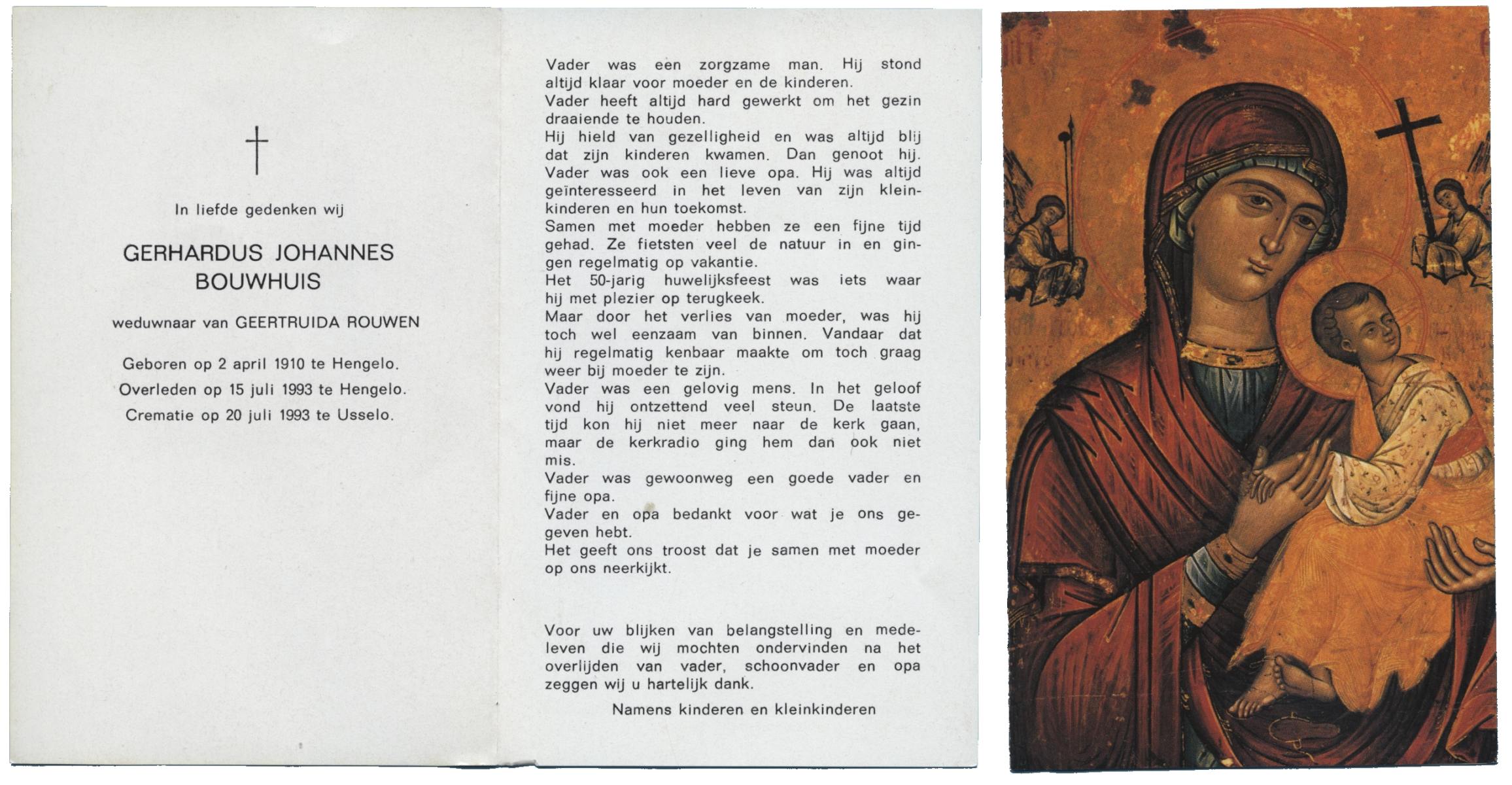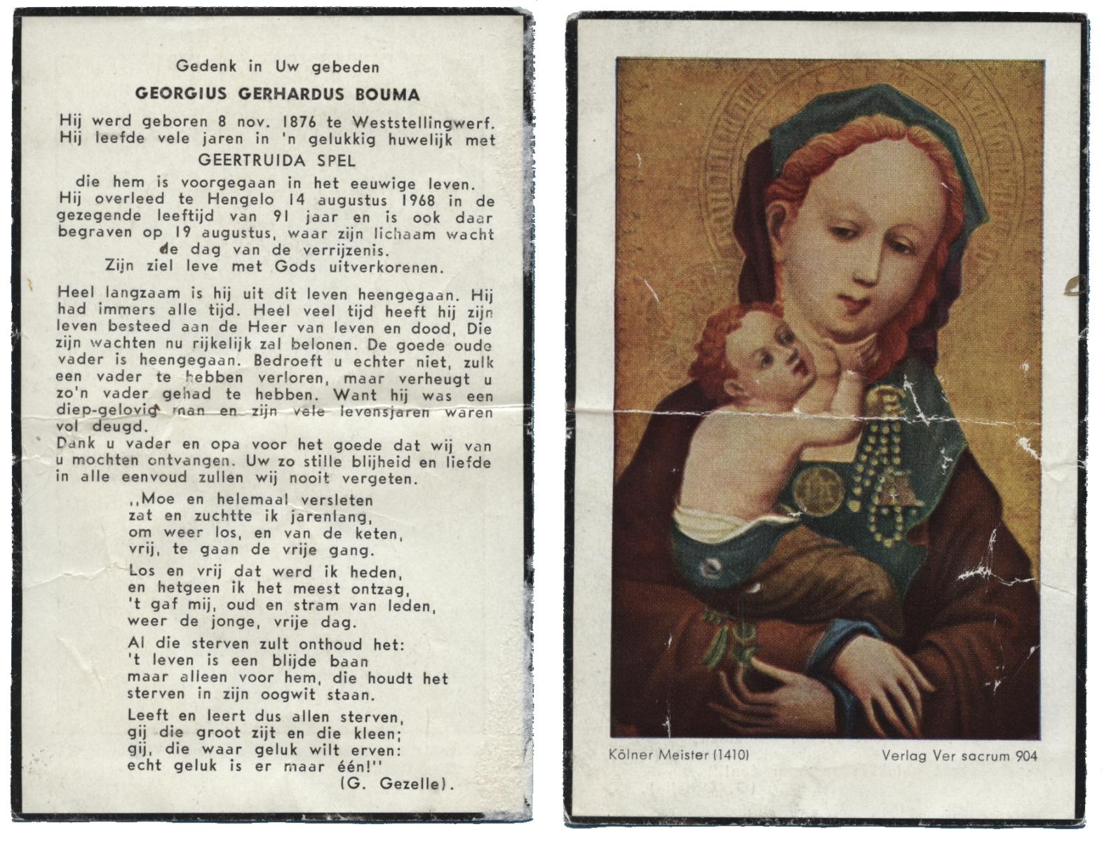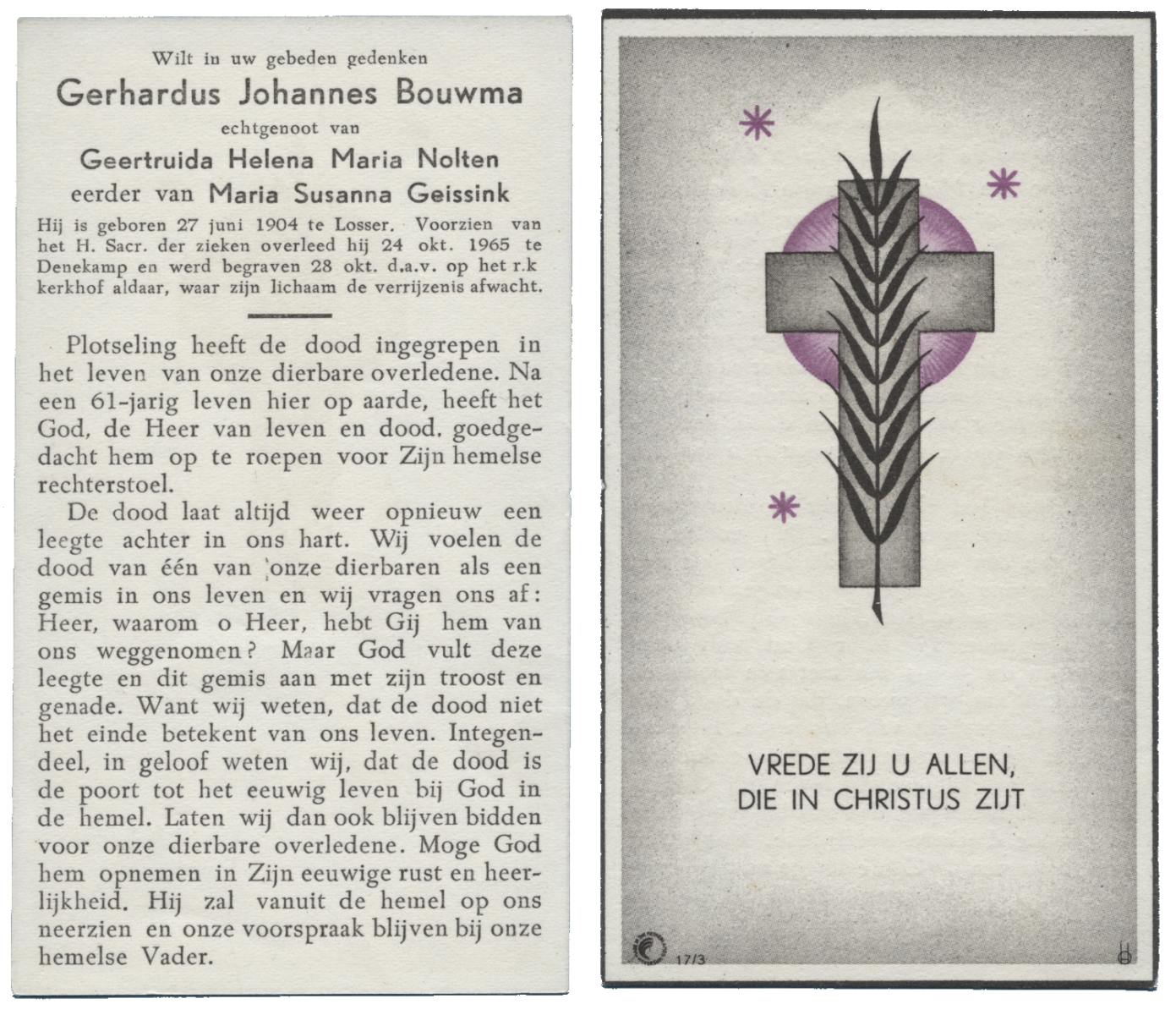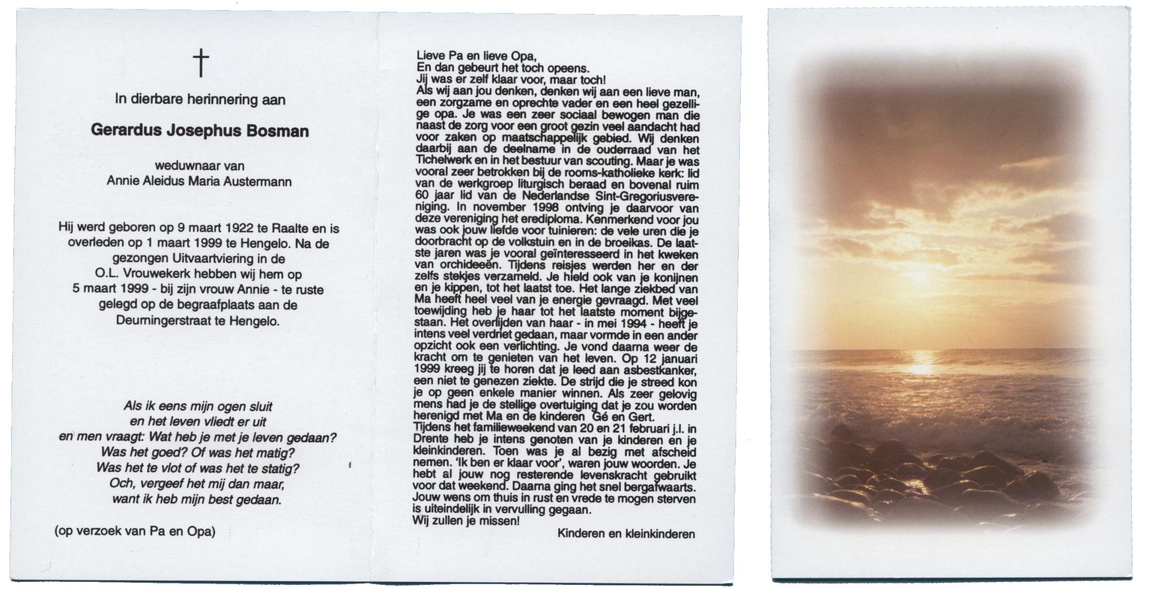 BORGGREVE, Gerardus Bernardus, geboren op 22-02-1898 te Kl. Agelo, overleden op 17-3-1972 op 74-jarige leeftijd, begraven op 20-3-1972 te Ootmarsum.