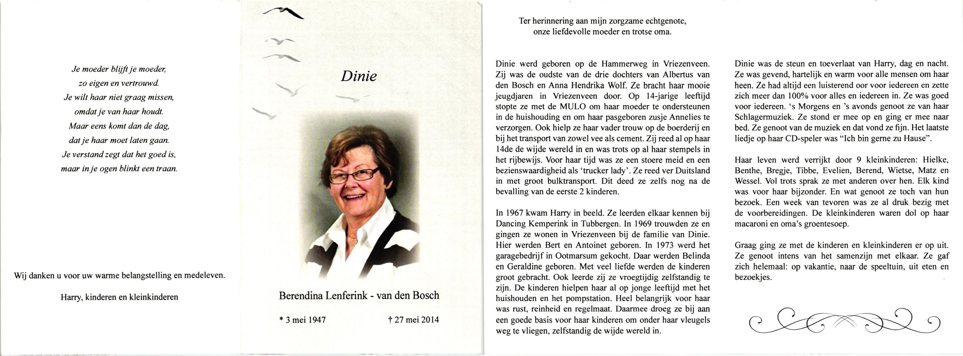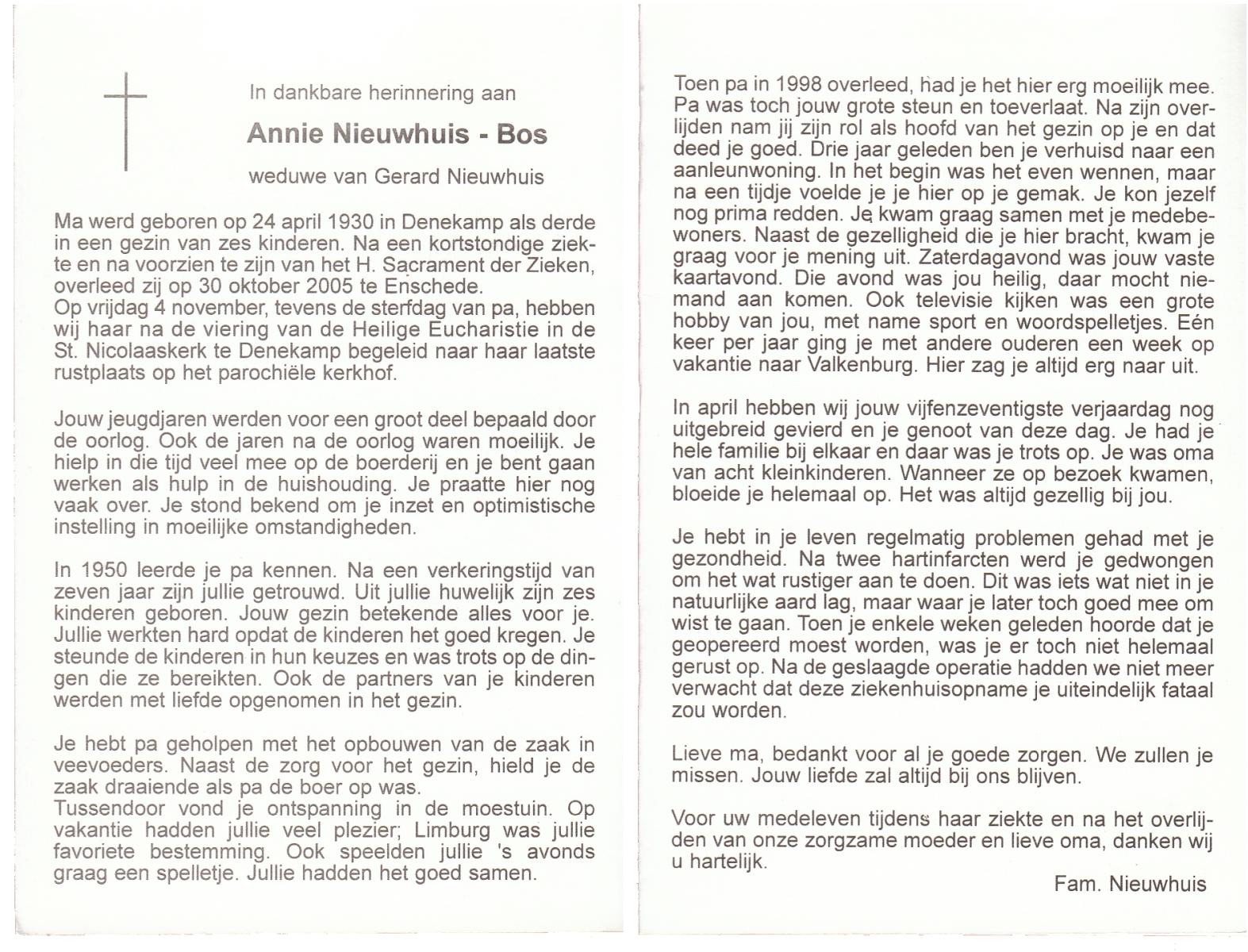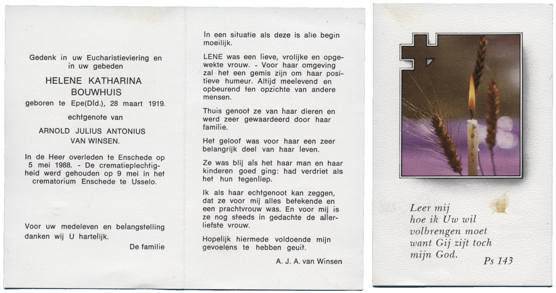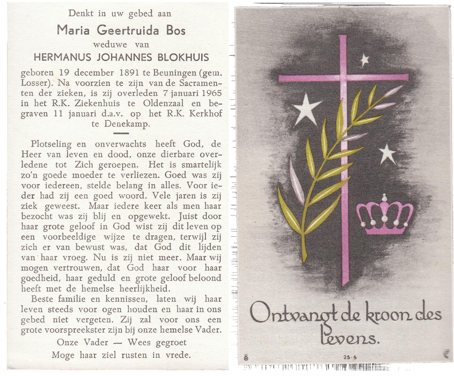 BRAAKHUIS, Geertruida, geboren op 9-2-1917 te Mander, overleden op 31-7-2000 te Denekamp op 83-jarige leeftijd, begraven op 4-8-2000 te Denekamp R.K.kerkhof.