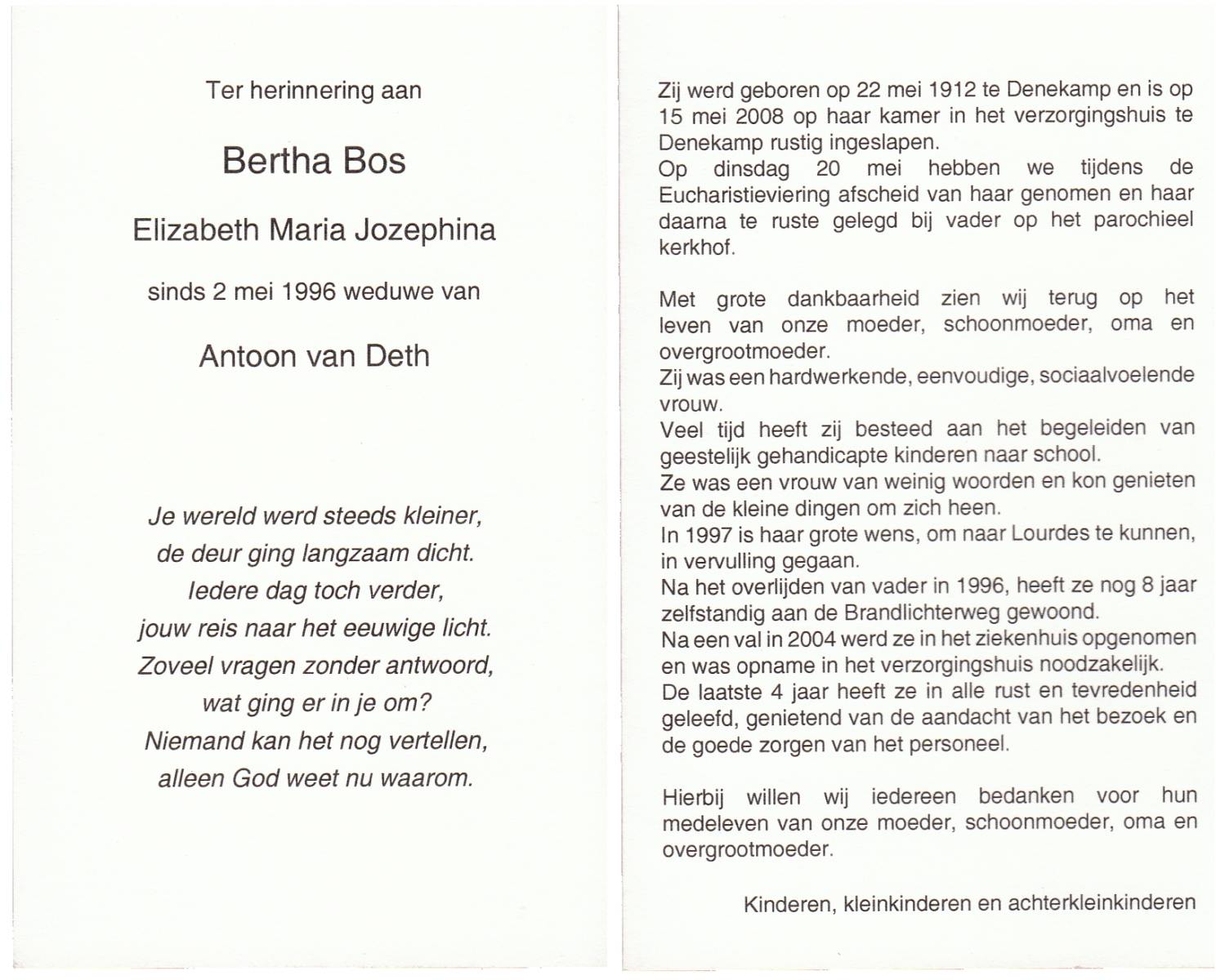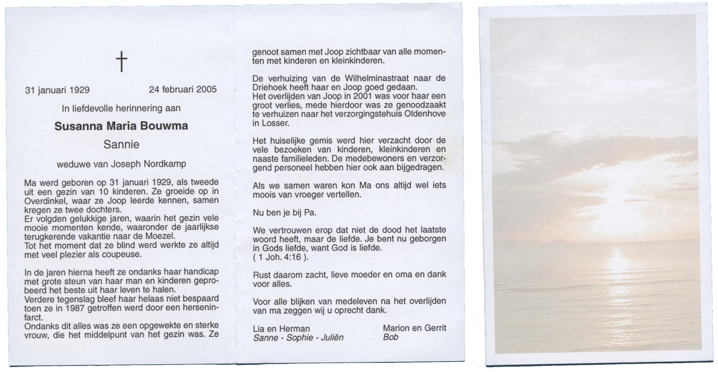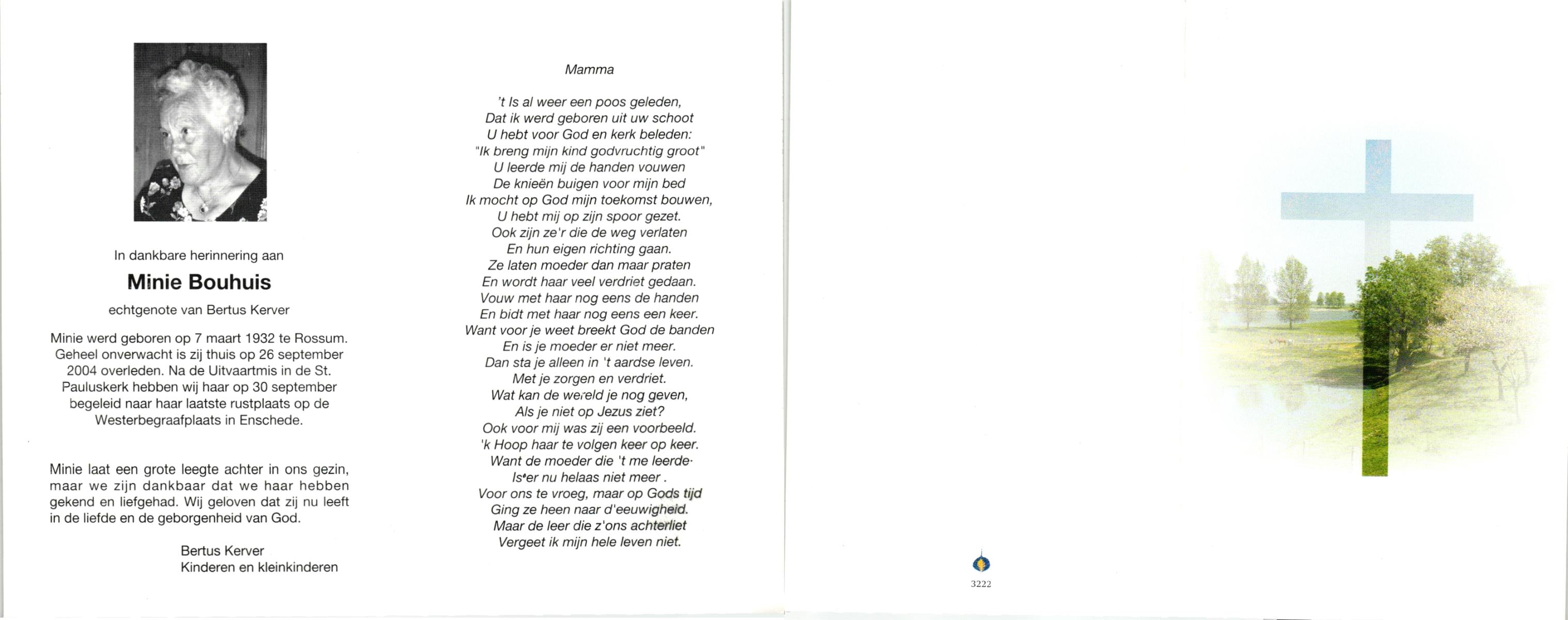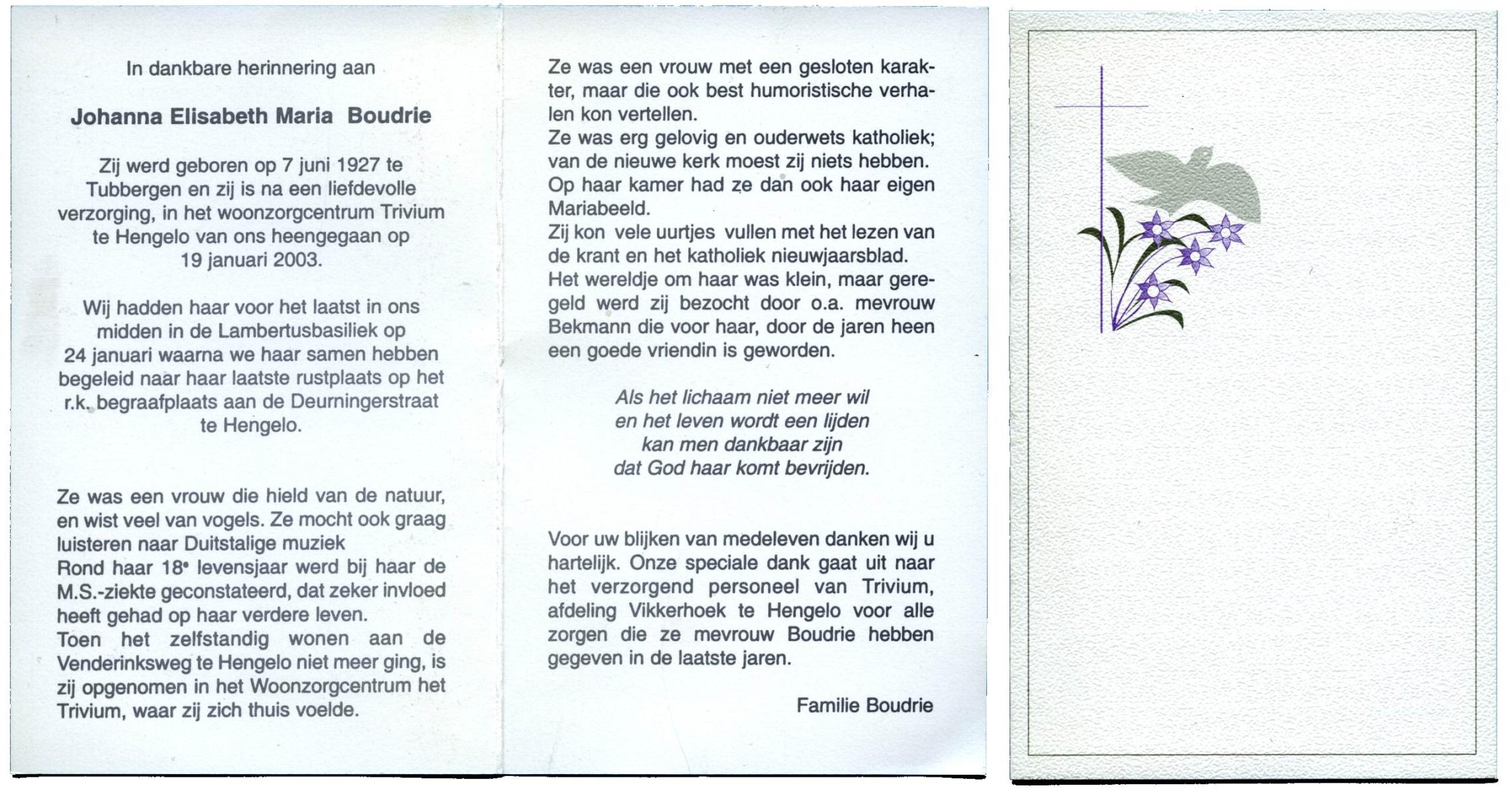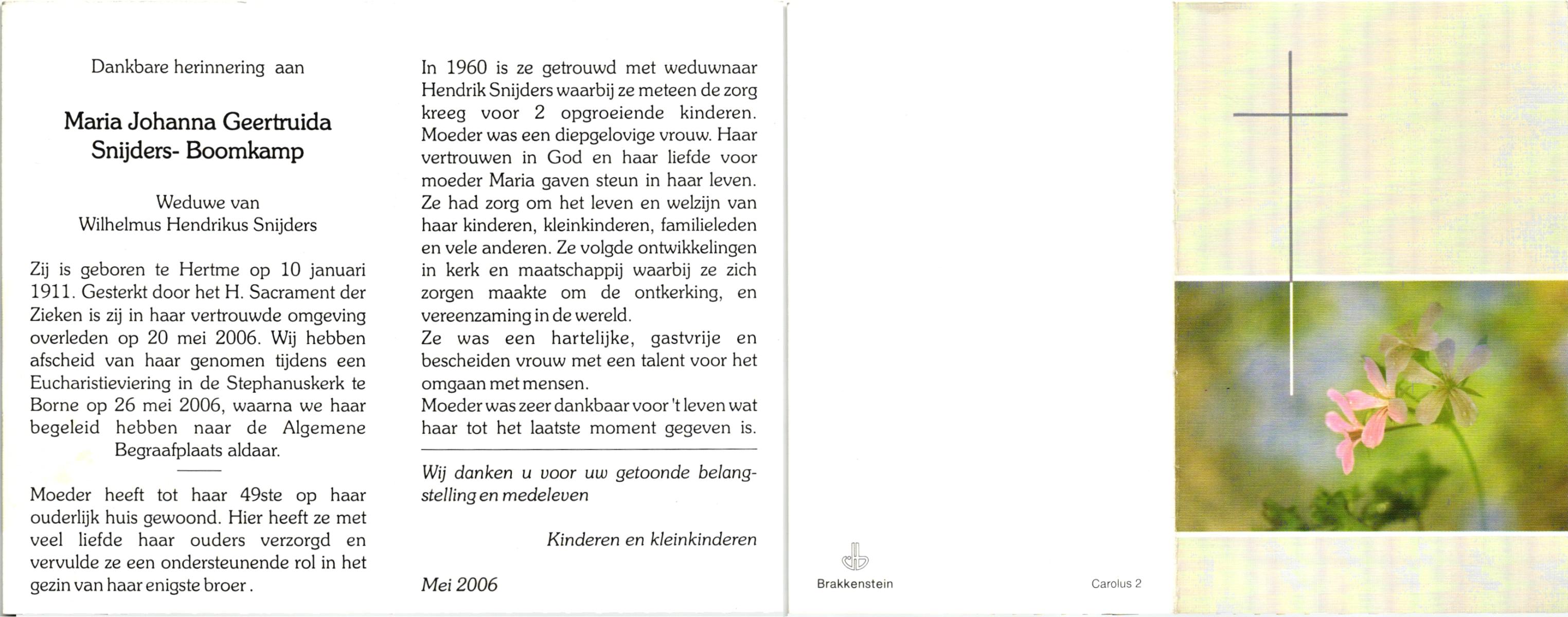 BOOMKAMP, , Maria Johanna Geertruida, geboren op 10-1-1911 te Hertme, overleden op 20-5-2006 op 95-jarige leeftijd, begraven op 26-5-2006 te Borne.