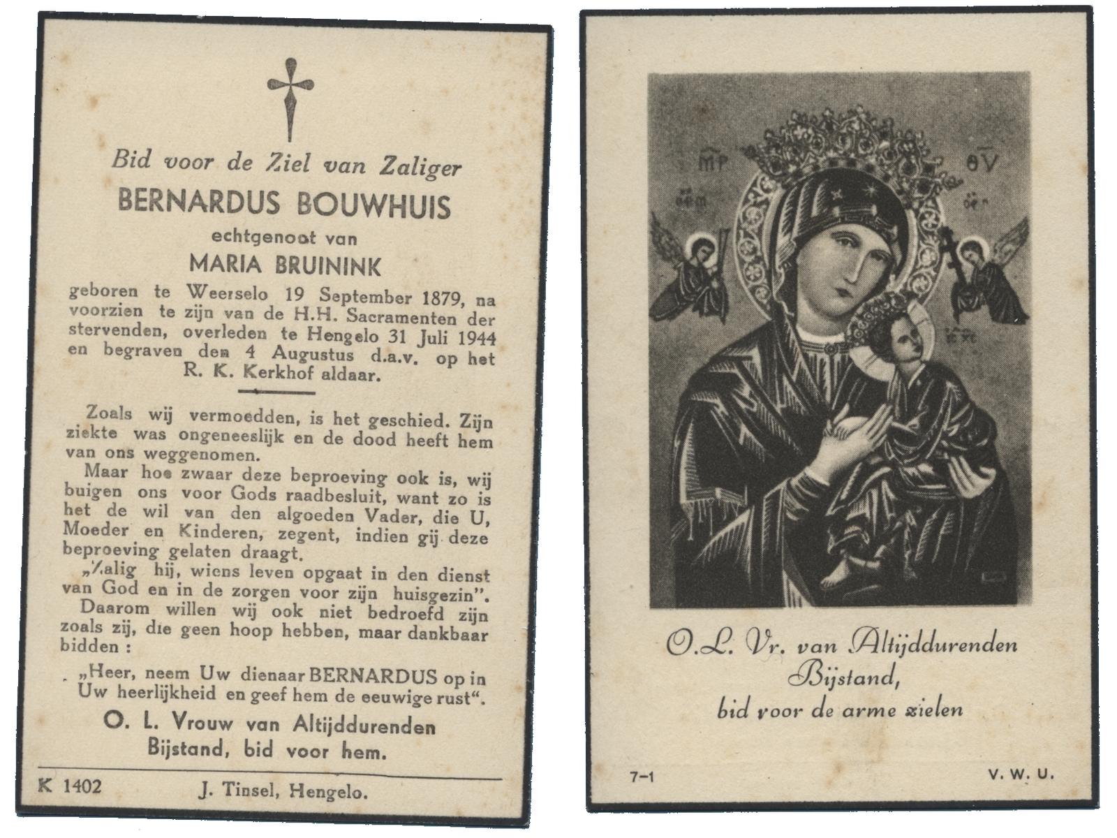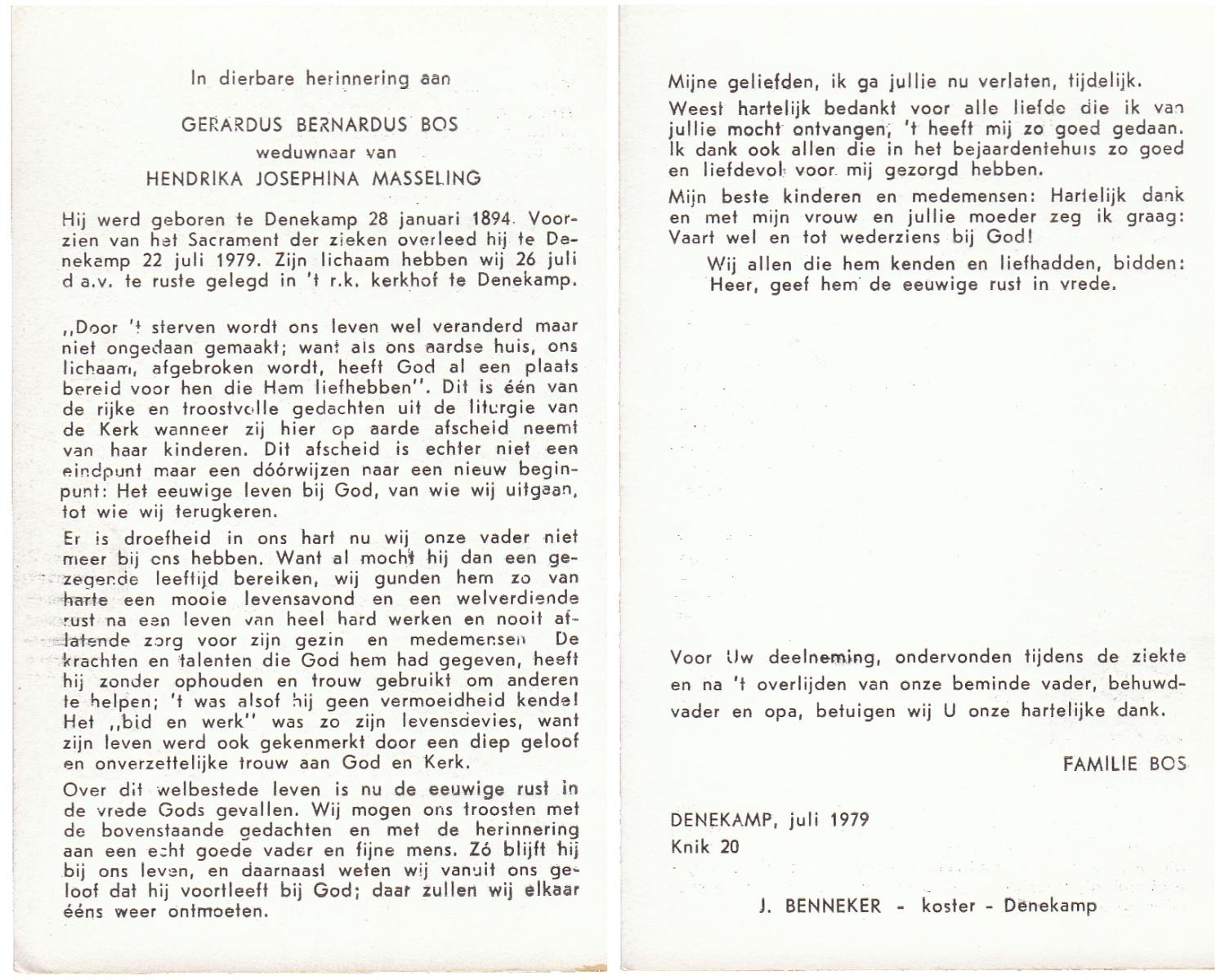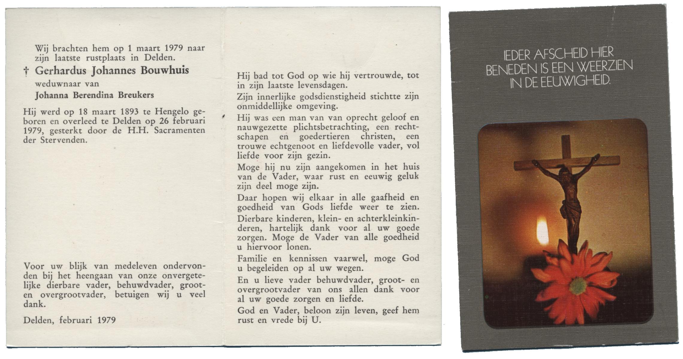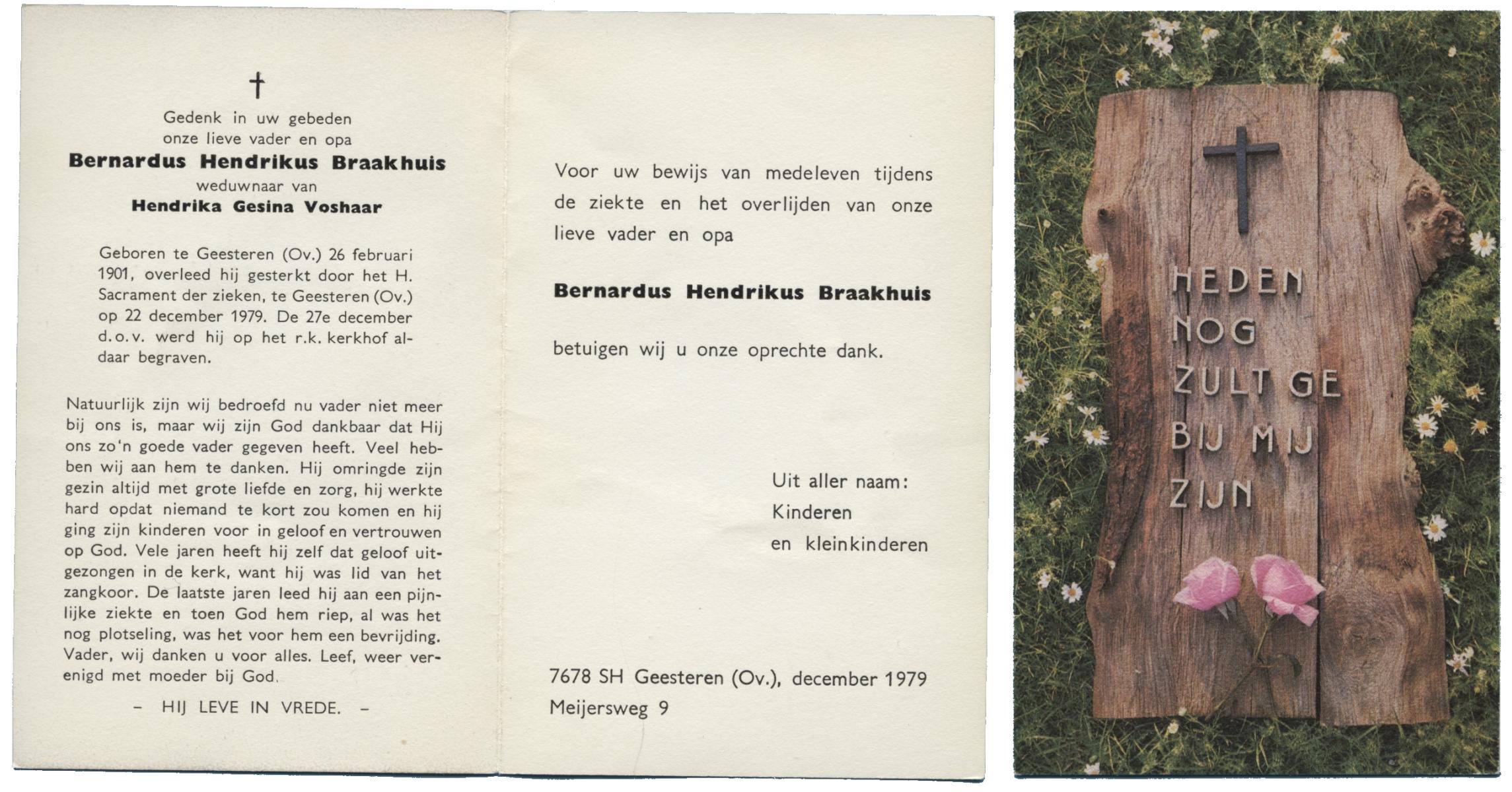BRAAKHUIS, Bernardus Hendrikus, geboren op 26-2-1901 te Geesteren (Ov.), overleden op 22-12-1979 te Geesteren op 78-jarige leeftijd, begraven op 27-12-1979 te Geesteren.
